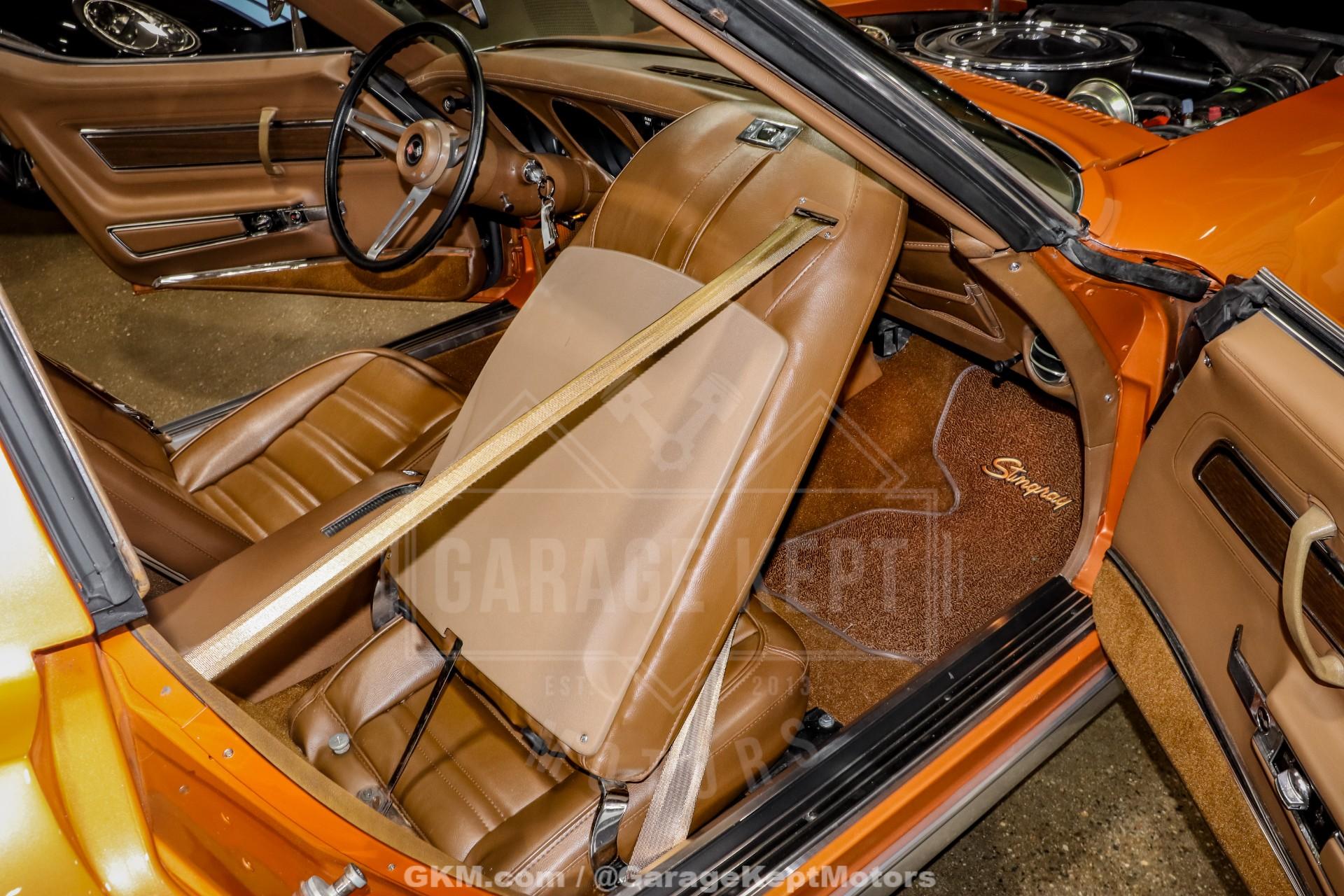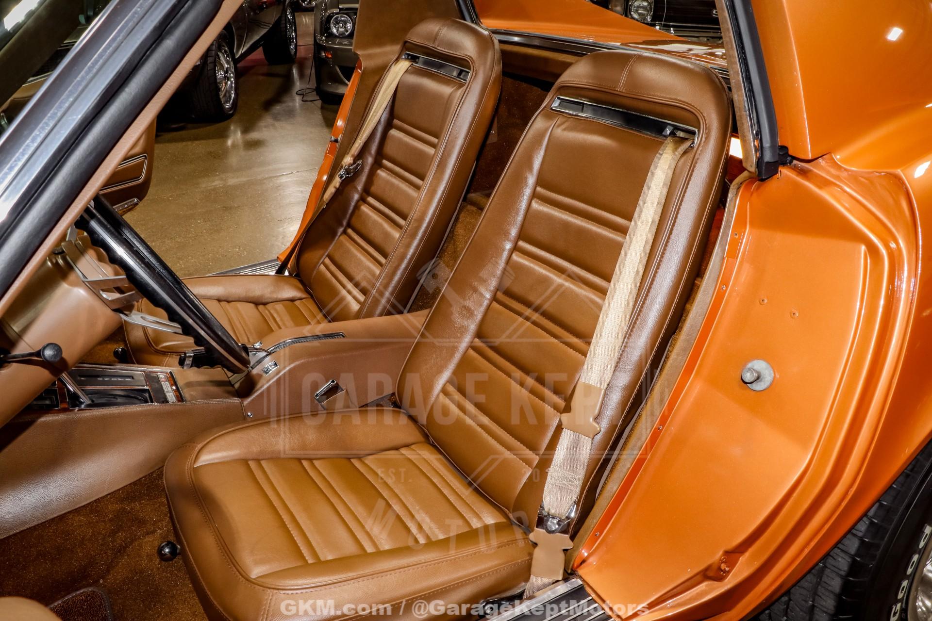 1972 Chevrolet Corvette Stingray Coupe- Final Year of the C3 Chrome Bumpers- Only 2 Registered Owners Since New- Factory Ontario Orange Firemist Paint (code 987)- Factory Saddle Leather Interior (code 421)- Numbers Matching 350ci/200hp V8- Automatic Transmission- Removable Color Matching T Tops- Rebuilt and Functioning Factory Air Conditioning- Power Steering and Power Windows- Power 4-Wheel Disc Brakes- Original Owners Manuals and Protect-O-Plate- Acquired from Mershon Corvette World in Ohio- Stunning Third Gen Example- 89k Original Miles The 1972 Chevrolet Corvette Stingray Coupe represents a celebrated chapter in American automotive history, standing proudly as the final year of the C3 generation's iconic chrome bumpers. This example exudes classic Corvette attitude with a sleek, muscular body and unmistakable profile that defined an era of performance and design. It remains exceptionally well-preserved, having had only two registered owners since new, a rarity that highlights its careful stewardship over the decades.Finished in its factory-correct Ontario Orange Firemist paint (code 987), the car radiates with a deep metallic glow that captures attention from every angle. The vibrant exterior pairs beautifully with the original factory Saddle leather interior (code 421), delivering a warm and timeless color combination that epitomizes early-1970s Corvette styling. The removable, color-matched T-Tops add an additional layer of versatility, allowing the driver to enjoy the open-air experience when desired.Beneath the hood lies its numbers-matching 350ci V8, factory-rated at 200 horsepower, mated to a smooth automatic transmission for confident cruising. This Corvette is properly equipped for both performance and comfort, featuring power steering, power windows, and power four-wheel disc brakes. Additionally, the factory air conditioning system has been rebuilt and is fully functional, an important detail for collectors seeking originality without sacrificing usability.With 89k original miles, this Stingray has been driven and enjoyed responsibly, maintaining its integrity and authentic character. It comes documented with its original owner's manuals and Protect-O-Plate, further validating its well-preserved history. Acquired from Mershon Corvette World in Ohio, it stands as a strong example of a well-maintained and properly presented classic.Overall, this stunning 1972 Stingray Coupe offers a unique blend of originality, desirable features, and classic Corvette performance. As the last of the chrome bumper Corvettes, it represents a pivotal moment in the brand's evolution and remains highly sought after by enthusiasts and collectors alike. Bold in appearance and rich in provenance, it is a standout third-generation Corvette ready to continue its legacy on the road or in any collection.