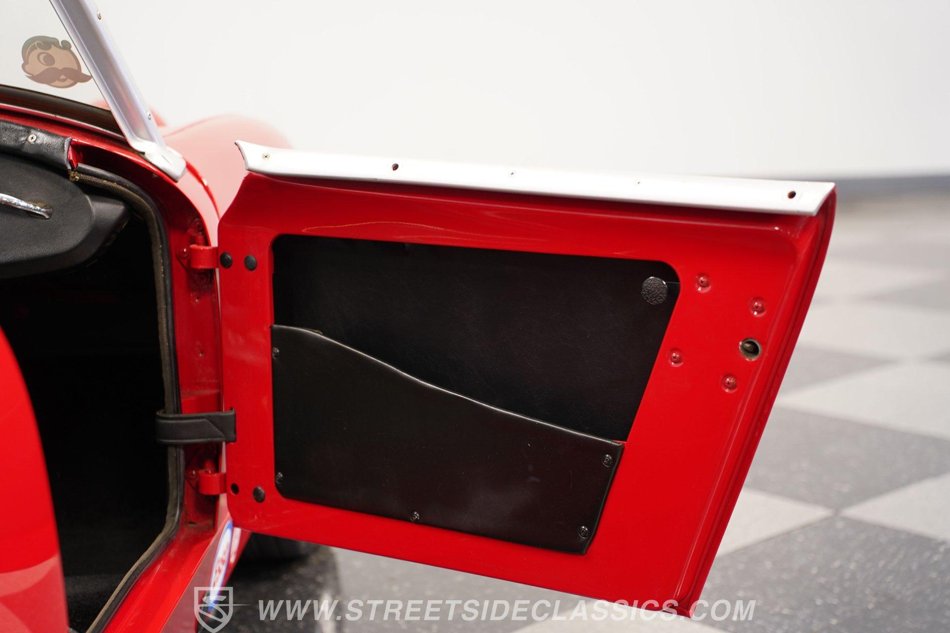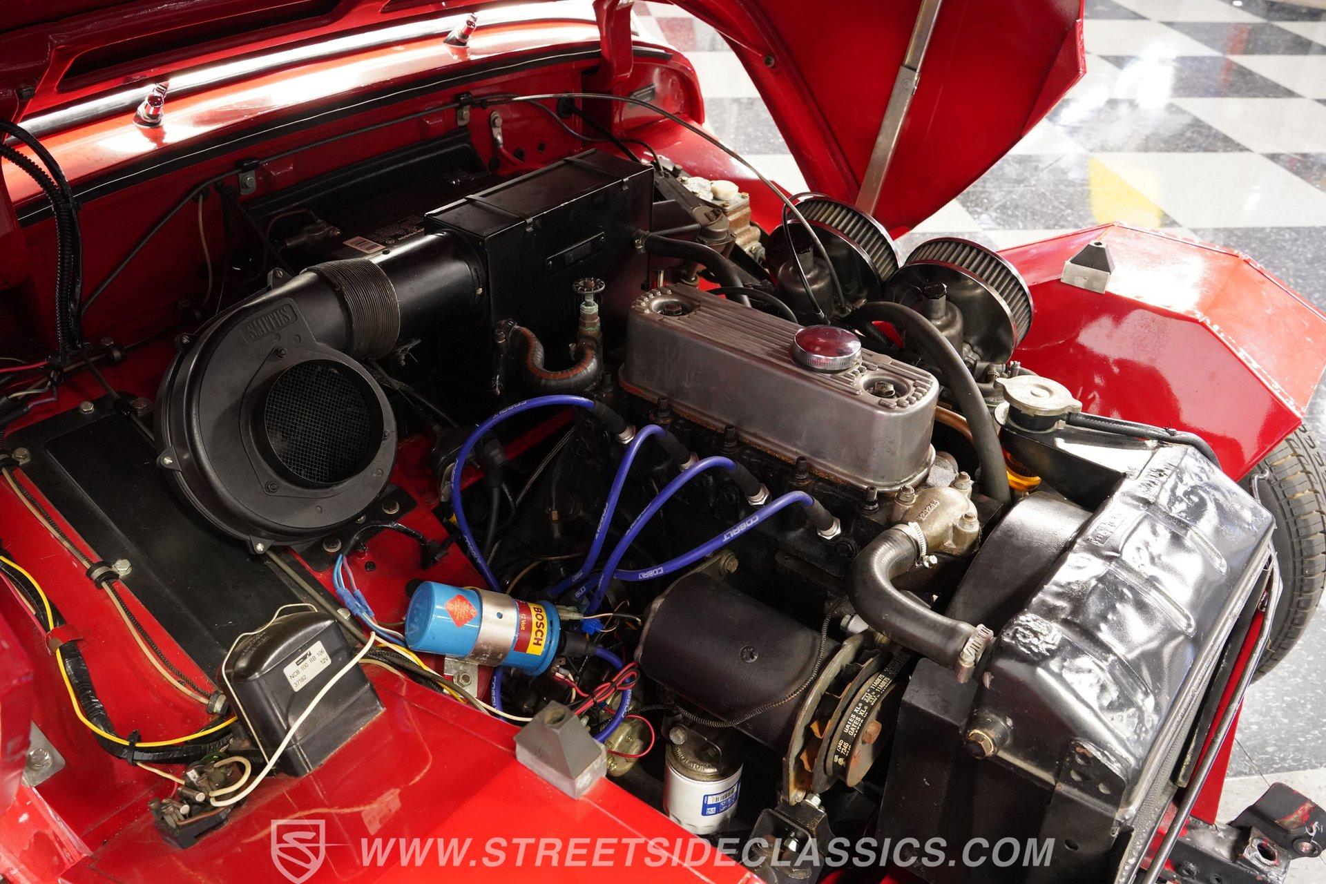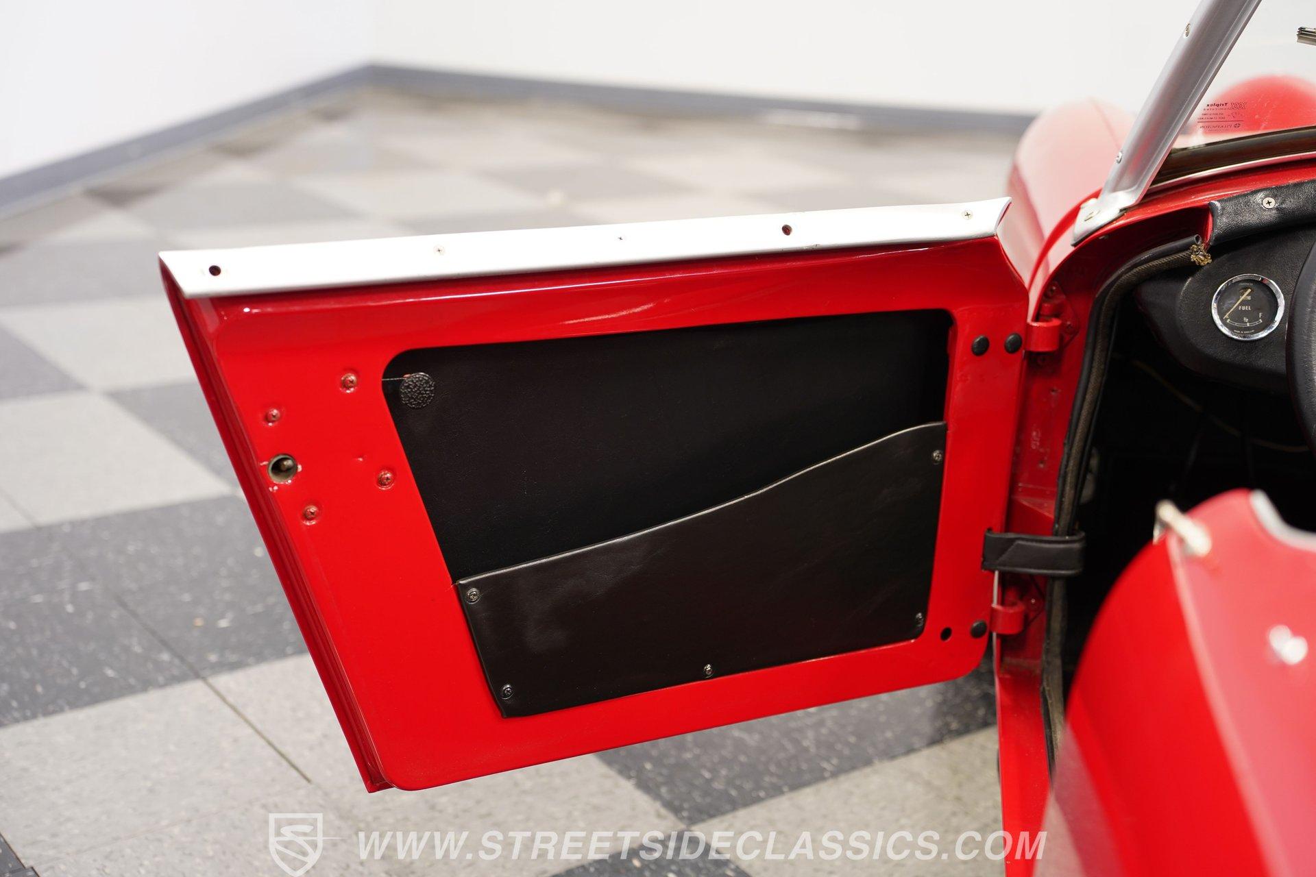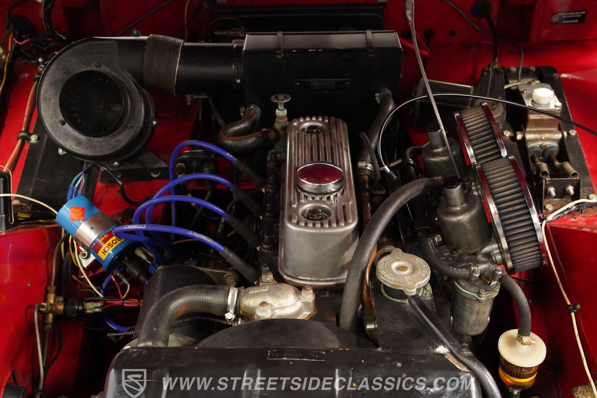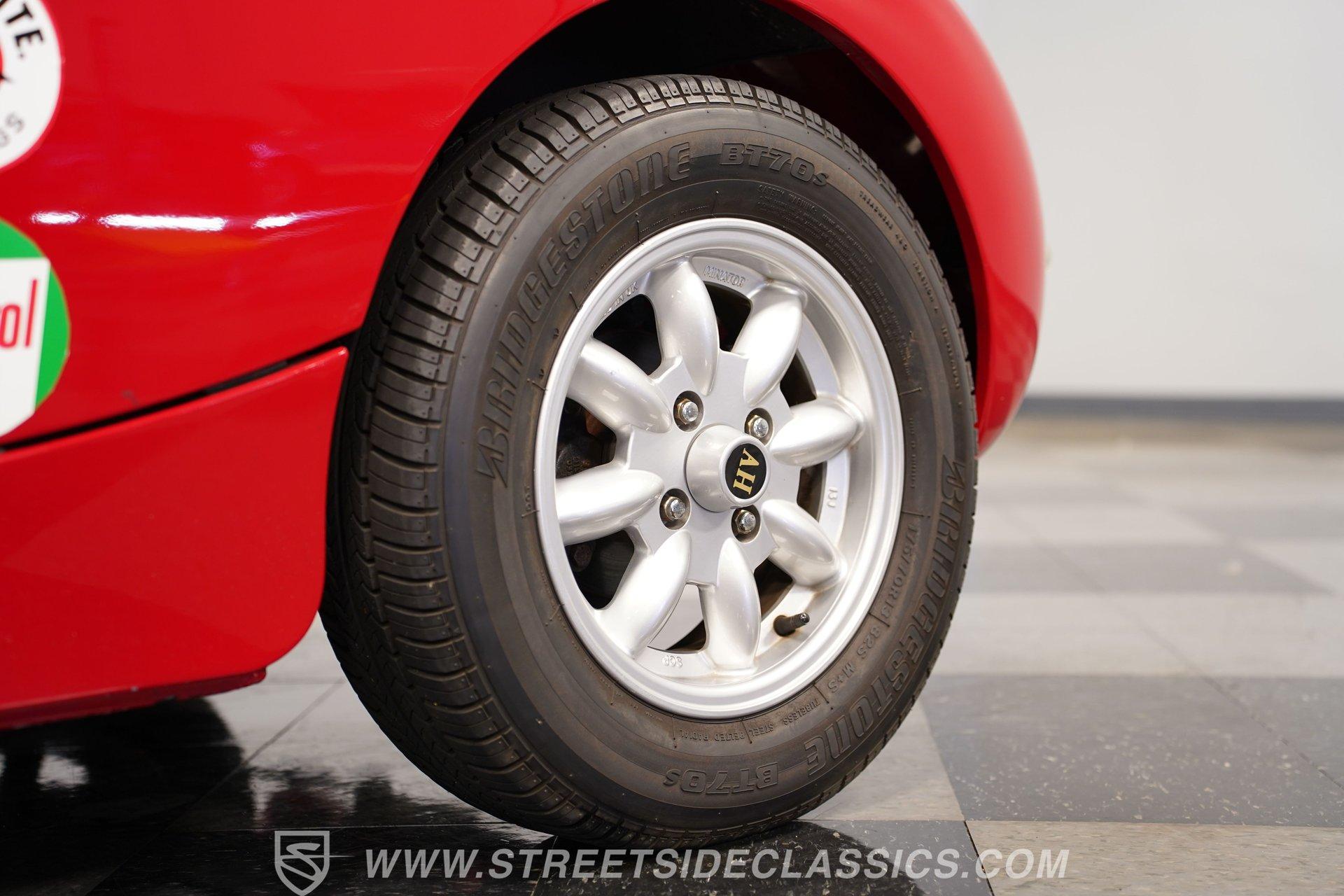 It's not all that often that you can say a car possesses true personality, but this 1960 Austin Healey Sprite MK1 Bugeye represents one of those rare instances. Dressed in vibrant red paint that's ornamented with a collection of decals conveying an authentically vintage racing appearance, this compact ride looks like it just hopped off the screen of a recent "Cars" movie. Those signature headlights from which this British classic gets its nickname are in fine shape, and they're accompanied by a pair of "flamethrower"-style driving lights that not only light the way ahead in more unforgiving driving conditions, but are also still in good form as well, as is the collection of bright work. Should the skies threaten rain when you're behind the wheel, the featured black canvas convertible top fits well and includes side curtains that make driving a whole lot easier in such conditions. Climb inside and you'll be surrounded by a no-frills, but very functional driving environment that's been left in factory configuration and is in perfect keeping with this car's rally-inspired identity. The vinyl-clad bucket seats still have plenty of life left in them and are outfitted with racing-style lap belts. Up front, the instrument panel features a collection of factory-issue gauges that are still easily readable through clear lenses. The shifter is positioned within easy reach and beckons you to grab hold and put this classic through its paces. This automotive icon delivers on its promise of unadorned driving fun. Weighing less than 1500lbs and outfitted with a period-correct 1298-cc 4-cylinder engine that's fed by a pair of dual SU carburetors, it's an enthusiastic performer with go-cart-like responsiveness. Its 4-speed manual shifts very smoothly via a well-adjusted clutch, and its braking system features discs up front, bringing it to a stop in short order. And, owing to its low center of gravity and modest curb weight that rides on a factory suspension in good working order, you have a ride that's an absolute blast to take through corners. A look below will reveal an undercarriage that's still structurally sound after more than 60 years of service. HIGHLIGHTS PERIOD-CORRECT 1298-CC 4 CYLINDER ENGINE DUAL 2-BARREL SU CARBURETORS 4-SPEED MANUAL TRANSMISSION FRONT DISC BRAKES VIBRANT RED EXTERIOR WITH VINTAGE RACING DECALS BLACK CANVAS CONVERTIBLE TOP, WITH SIDE CURTAINS 13" AFTERMARKET WHEELS PERIOD-CORRECT "FLAMETHROWER-STYLE" DRIVING LIGHTS BLACK VINYL UPHOLSTERY BUCKET SEATS Riding on a clean set of 13" aftermarket wheels, wrapped with Bridgestone tires that appear to have plenty of tread left, this 1960 Austin Healey Sprite MK1 Bugeye is the true epitome of a classic sports car. It would be a perfect fit for the collector seeking an unadorned yet exhilarating driving experience. Call today!