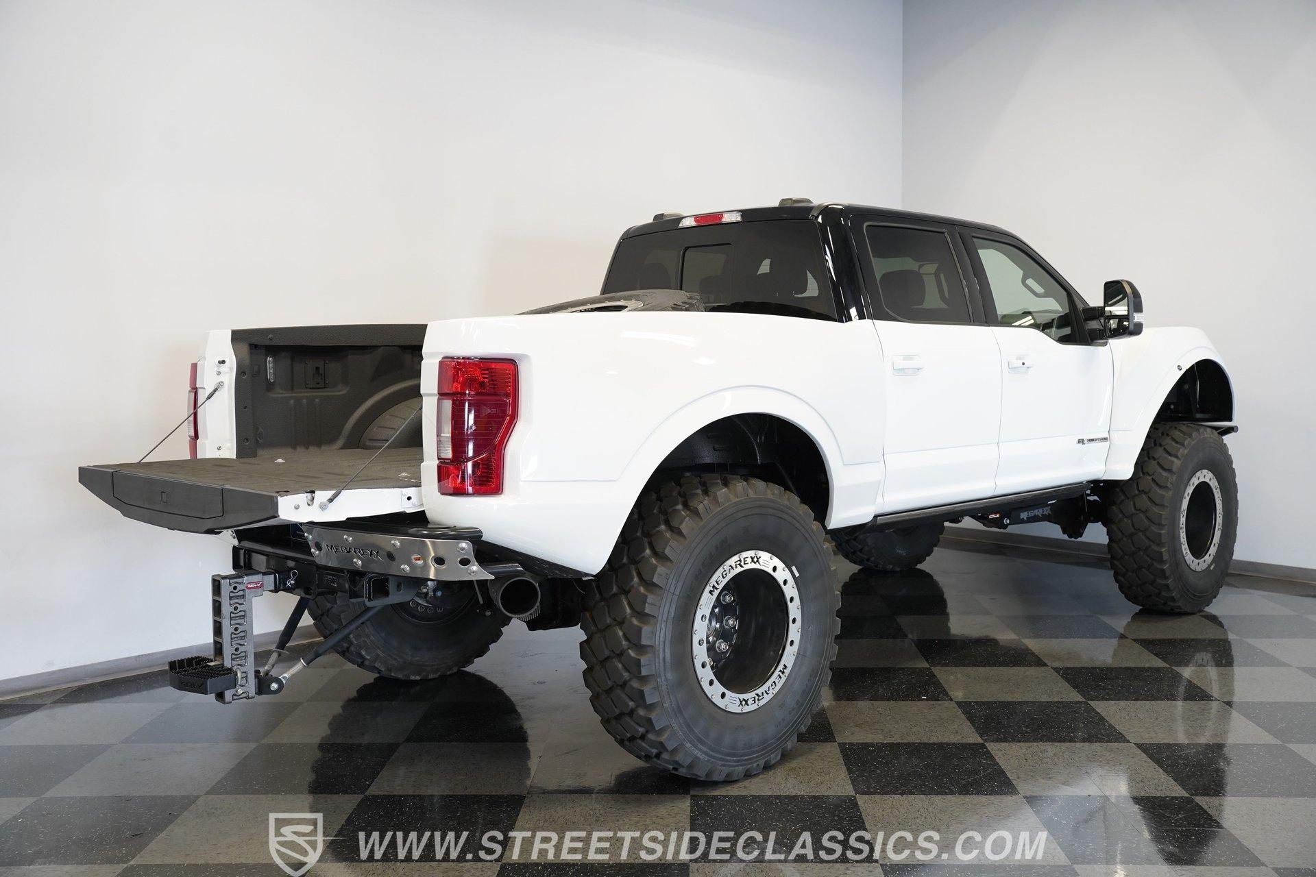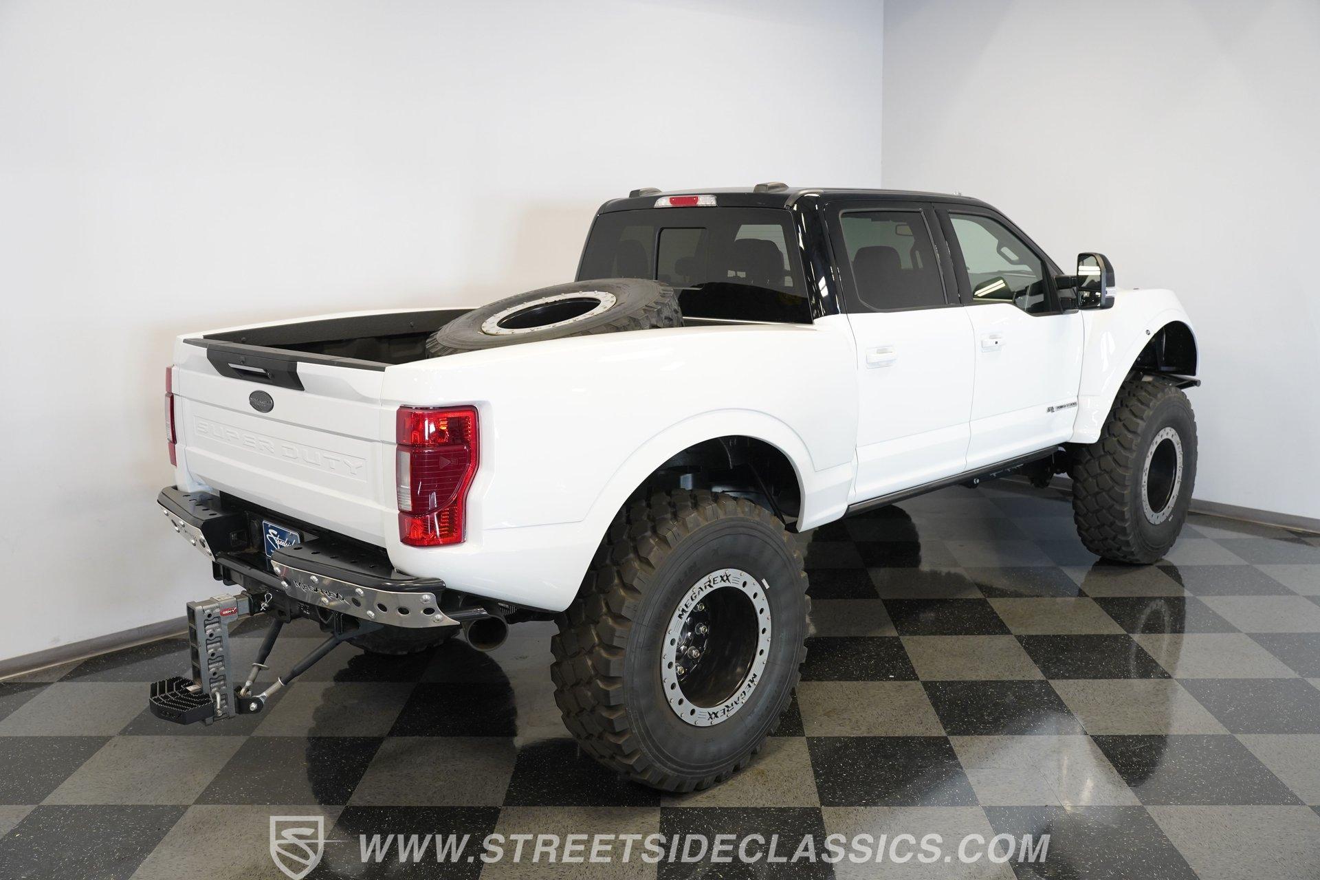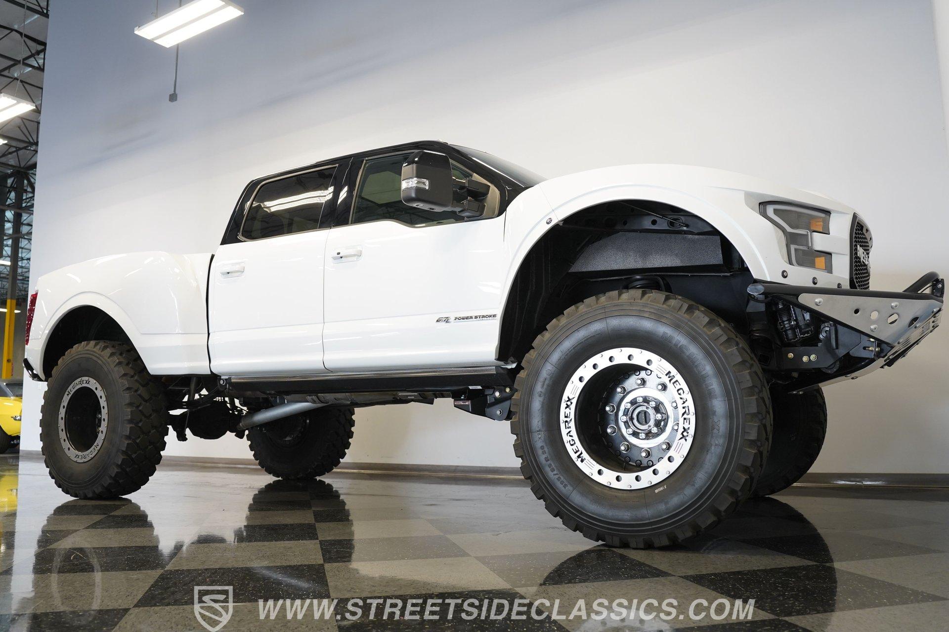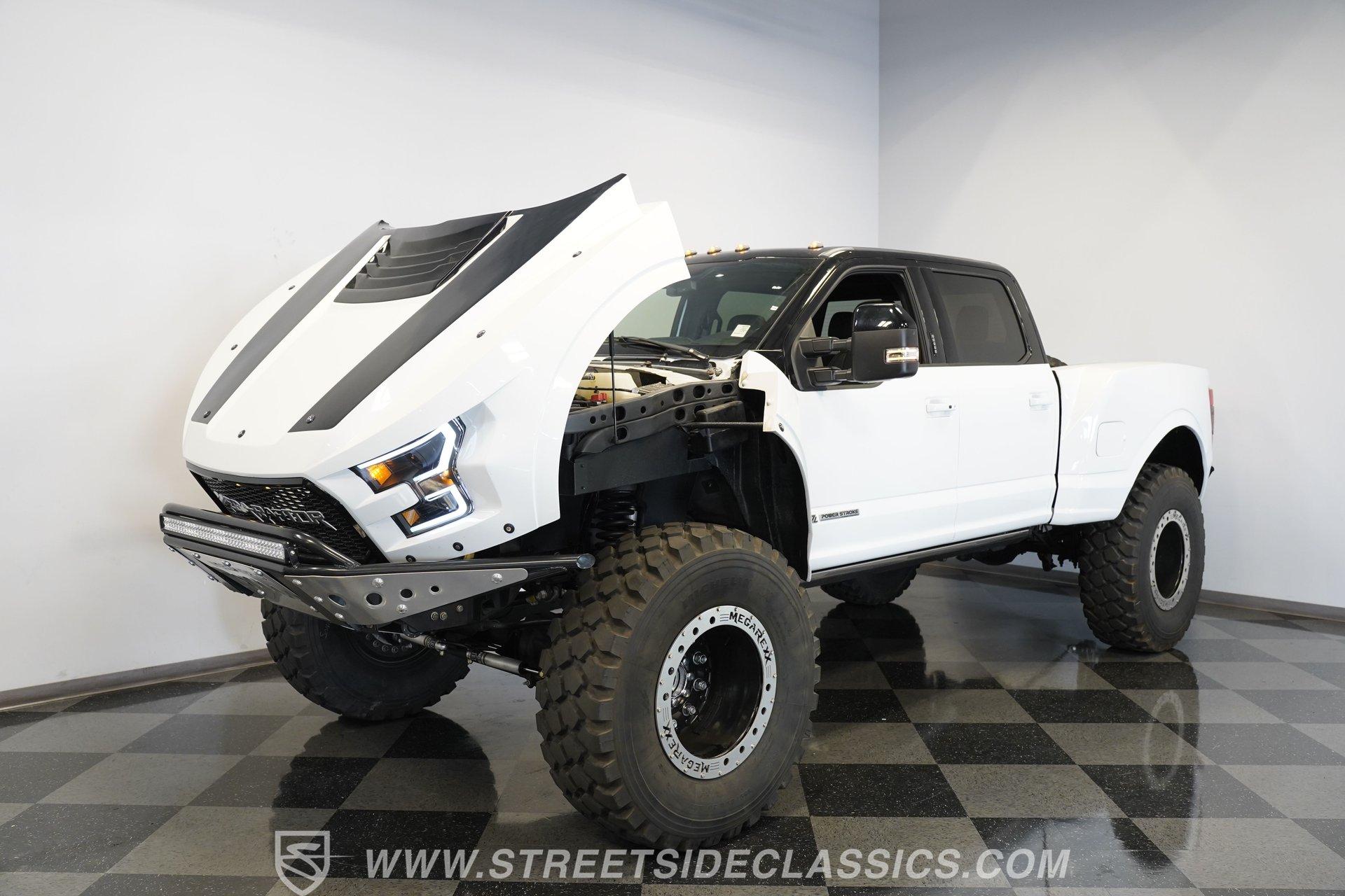 Only a short while ago, the idea of a 'muscle truck' was limited to watching Bigfoot or Gravedigger pummel junk cars at a monster truck rally. But, then, with trucks like the GMC Syclone in the 1990s, the Ford SVT Lightning, and the Dodge Ram SRT-10 in the 2000s, we all could get behind the idea of a fast truck. This 2022 Ford F-250 MegaRexx MegaRaptor we have for you today may be the pinnacle of what the perfect muscle truck could, and should be. One look at its beautiful Oxford White exterior, complete with its one-piece, tilt-action fiberglass front clip, color-matched fenders and steel bumpers, and it's easy to see why. Sitting high up on its high-performance suspension, this Raptor's mega-aggressive demeanor screams, "Get out of my way!" And with a shocking 3,122 actual miles on the odometer, this muscle truck won't be atrophying anytime soon. Step inside this Raptor's expansive interior, and you'll be treated to an enchanting mix of supple leather and advanced technology. A huge center console offers plenty of storage, separating a pair of power and heated bucket seats. Power mirrors, windows, locks, and moonroof, along with navigation, cruise control, air conditioning, backup camera, and an AM/FM/AUX/Satellite/Bluetooth infotainment center, offer all of the modern amenities anyone could want in a late-model truck. Under the hood, we find a version of Ford's powerful 6.7-liter Power Stroke Turbo Diesel V8 engine. With its graphite-iron block and lightweight aluminum heads, this massive motor pumps out an impressive 475 horsepower at 2,600 rpm and a ridiculous 1,050 pound-feet of torque at just 1,600 rpm. That power is then routed through Ford's 10-speed automatic transmission before being sent out to either the rear wheels or all four corners, should four-wheel drive be engaged for maximum traction. HIGHLIGHTS: 3,122 Actual Miles Built on Ford F250 Super Duty Crew Cab One Piece Tilt Fiberglass Front Clip Fiberglass Bed Sides High Approach Front and Rear Bumpers LED Lighting 6.7-Liter Power Stroke Turbo Diesel 475 HP 1,050 LB FT 10 Speed Auto 4.5in Dual Rate Front Coils 5in Full Progressive Rear Leaf Springs Remote Adjustable Shocks Military Spec 3 Piece Wheels Aluminum Rock Rings 46in Michelins Four Wheel Power Discs Dana Front Axle Leather Interior Power Everything Moonroof Navigation AM/FM/AUX Satellite Radio Bluetooth Factory Build Sheet Original Window Sticker Owner's Manual This 2022 Ford F-250 MegaRexx MegaRaptor rides on a suspension that features 4.5-inch high-performance, dual-rate front coil springs, 5-inch full-progressive rear leaf springs, four-wheel remote adjustable reservoir shocks, upgraded radius arms, dual stabilizer bars, and adjustable track bars and bump stops. Military-spec MRAP 3-piece aluminum wheels and custom MegaRexx aluminum rock rings help the massive 46x15.5 inch (395/85R-20) Michelin XZL tires tackle anything you can throw at them. Whatever your goals are with this Raptor happen to be, whether that's taking on the Baja, or just looking good in the Home Depot parking lot, there is no doubt you'll achieve them behind the wheel of this muscle truck. Call today!