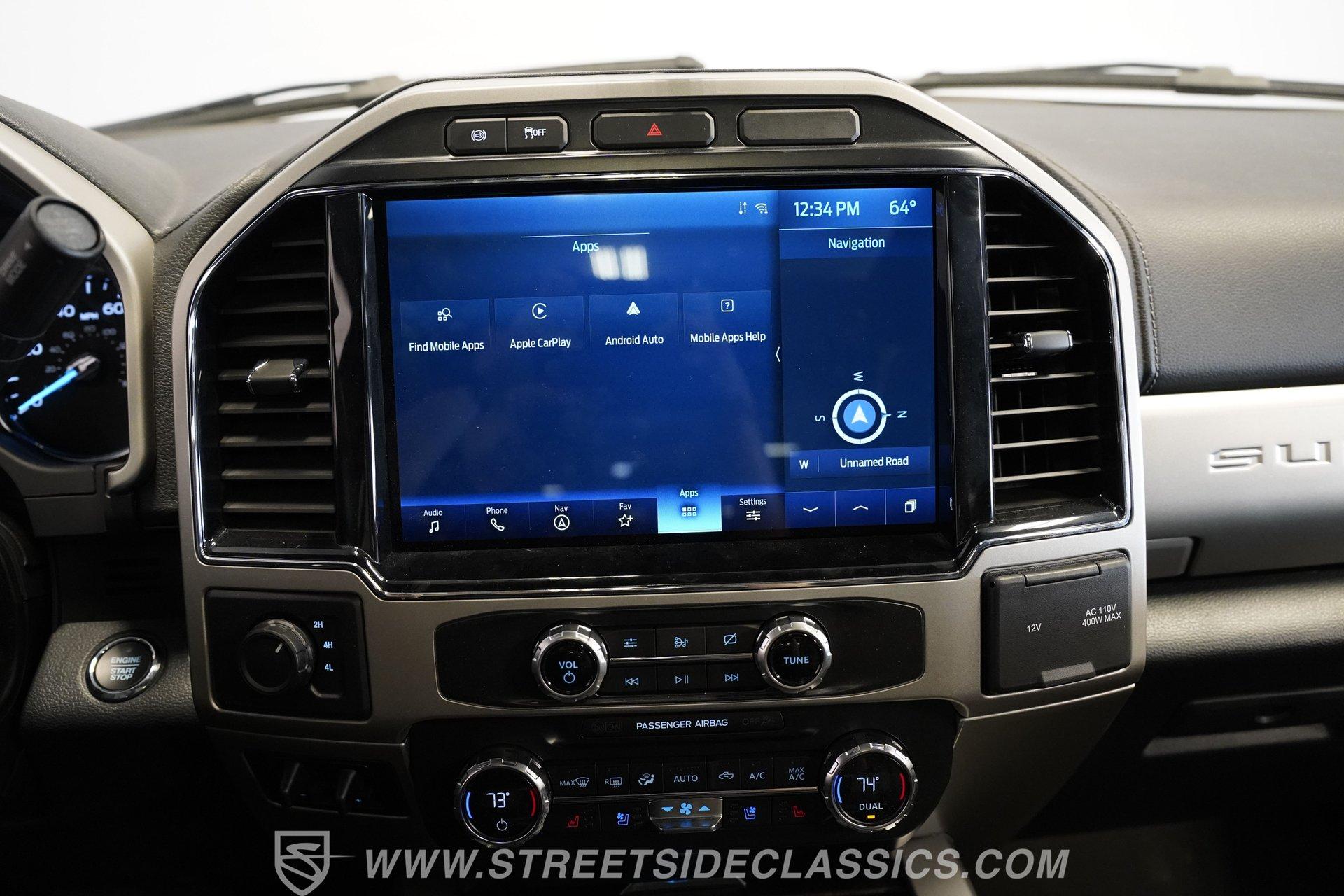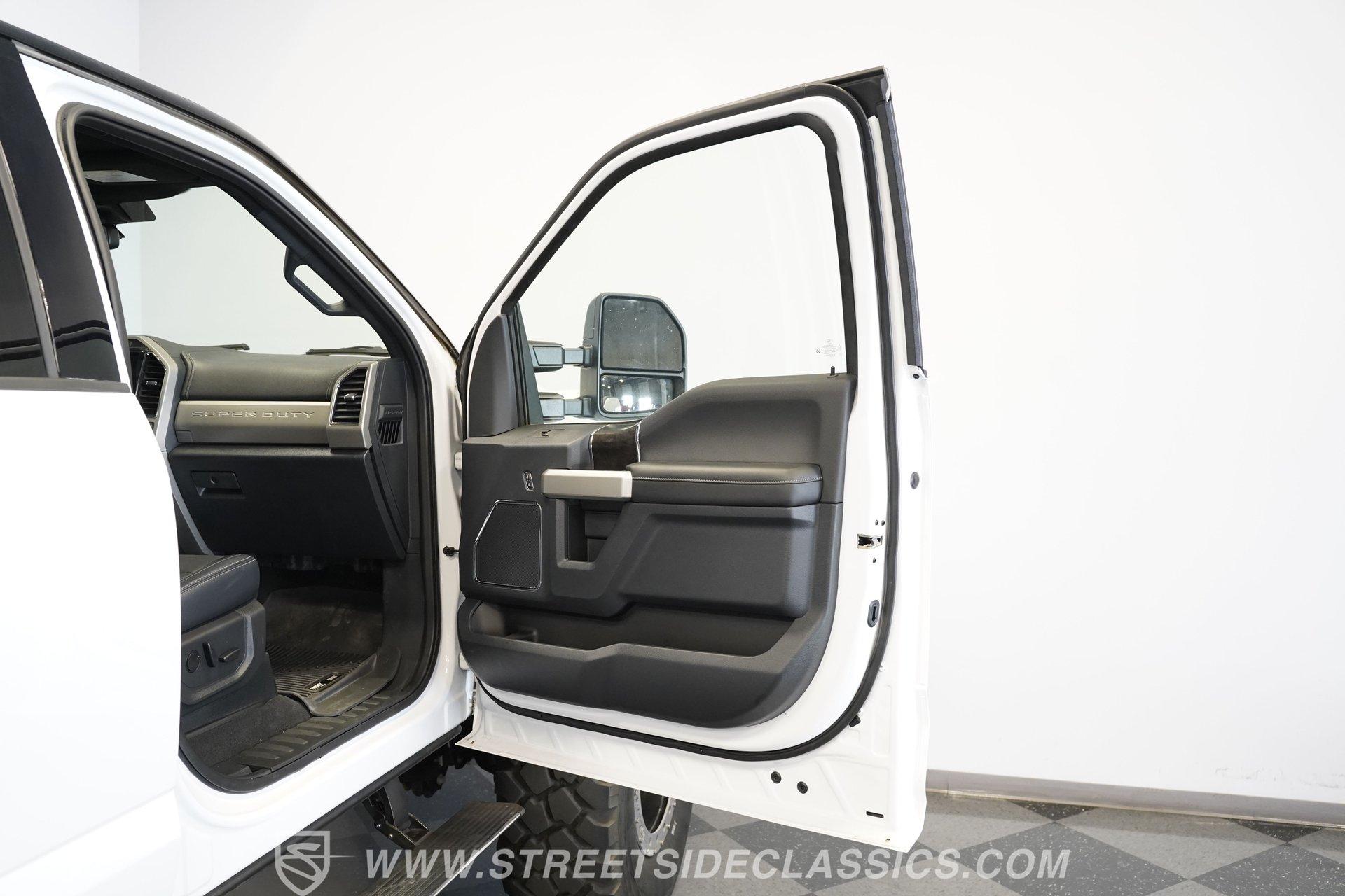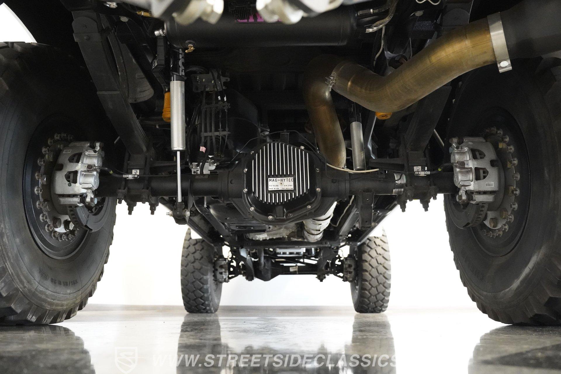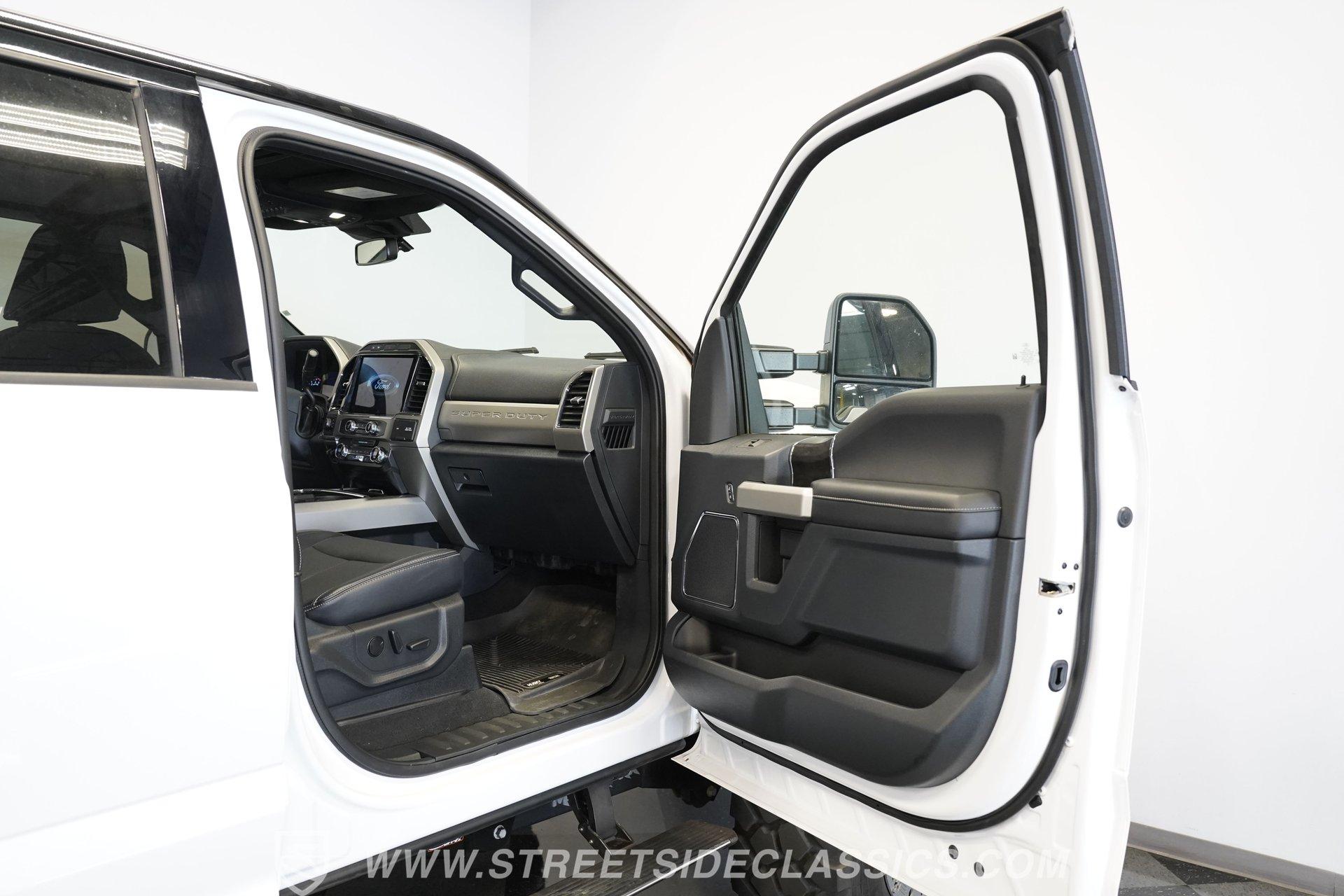 Only a short while ago, the idea of a 'muscle truck' was limited to watching Bigfoot or Gravedigger pummel junk cars at a monster truck rally. But, then, with trucks like the GMC Syclone in the 1990s, the Ford SVT Lightning, and the Dodge Ram SRT-10 in the 2000s, we all could get behind the idea of a fast truck. This 2022 Ford F-250 MegaRexx MegaRaptor we have for you today may be the pinnacle of what the perfect muscle truck could, and should be. One look at its beautiful Oxford White exterior, complete with its one-piece, tilt-action fiberglass front clip, color-matched fenders and steel bumpers, and it's easy to see why. Sitting high up on its high-performance suspension, this Raptor's mega-aggressive demeanor screams, "Get out of my way!" And with a shocking 3,122 actual miles on the odometer, this muscle truck won't be atrophying anytime soon. Step inside this Raptor's expansive interior, and you'll be treated to an enchanting mix of supple leather and advanced technology. A huge center console offers plenty of storage, separating a pair of power and heated bucket seats. Power mirrors, windows, locks, and moonroof, along with navigation, cruise control, air conditioning, backup camera, and an AM/FM/AUX/Satellite/Bluetooth infotainment center, offer all of the modern amenities anyone could want in a late-model truck. Under the hood, we find a version of Ford's powerful 6.7-liter Power Stroke Turbo Diesel V8 engine. With its graphite-iron block and lightweight aluminum heads, this massive motor pumps out an impressive 475 horsepower at 2,600 rpm and a ridiculous 1,050 pound-feet of torque at just 1,600 rpm. That power is then routed through Ford's 10-speed automatic transmission before being sent out to either the rear wheels or all four corners, should four-wheel drive be engaged for maximum traction. HIGHLIGHTS: 3,122 Actual Miles Built on Ford F250 Super Duty Crew Cab One Piece Tilt Fiberglass Front Clip Fiberglass Bed Sides High Approach Front and Rear Bumpers LED Lighting 6.7-Liter Power Stroke Turbo Diesel 475 HP 1,050 LB FT 10 Speed Auto 4.5in Dual Rate Front Coils 5in Full Progressive Rear Leaf Springs Remote Adjustable Shocks Military Spec 3 Piece Wheels Aluminum Rock Rings 46in Michelins Four Wheel Power Discs Dana Front Axle Leather Interior Power Everything Moonroof Navigation AM/FM/AUX Satellite Radio Bluetooth Factory Build Sheet Original Window Sticker Owner's Manual This 2022 Ford F-250 MegaRexx MegaRaptor rides on a suspension that features 4.5-inch high-performance, dual-rate front coil springs, 5-inch full-progressive rear leaf springs, four-wheel remote adjustable reservoir shocks, upgraded radius arms, dual stabilizer bars, and adjustable track bars and bump stops. Military-spec MRAP 3-piece aluminum wheels and custom MegaRexx aluminum rock rings help the massive 46x15.5 inch (395/85R-20) Michelin XZL tires tackle anything you can throw at them. Whatever your goals are with this Raptor happen to be, whether that's taking on the Baja, or just looking good in the Home Depot parking lot, there is no doubt you'll achieve them behind the wheel of this muscle truck. Call today!