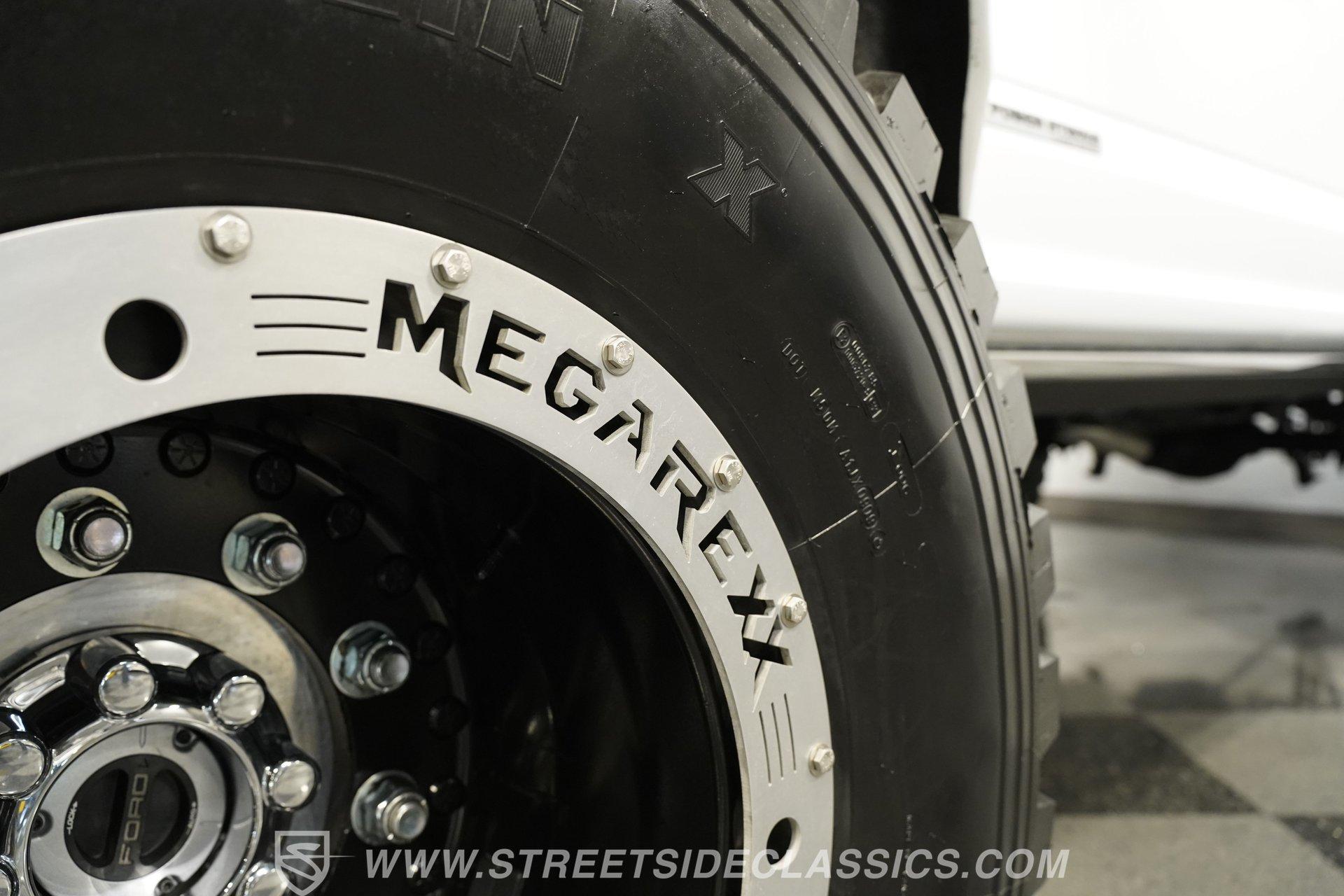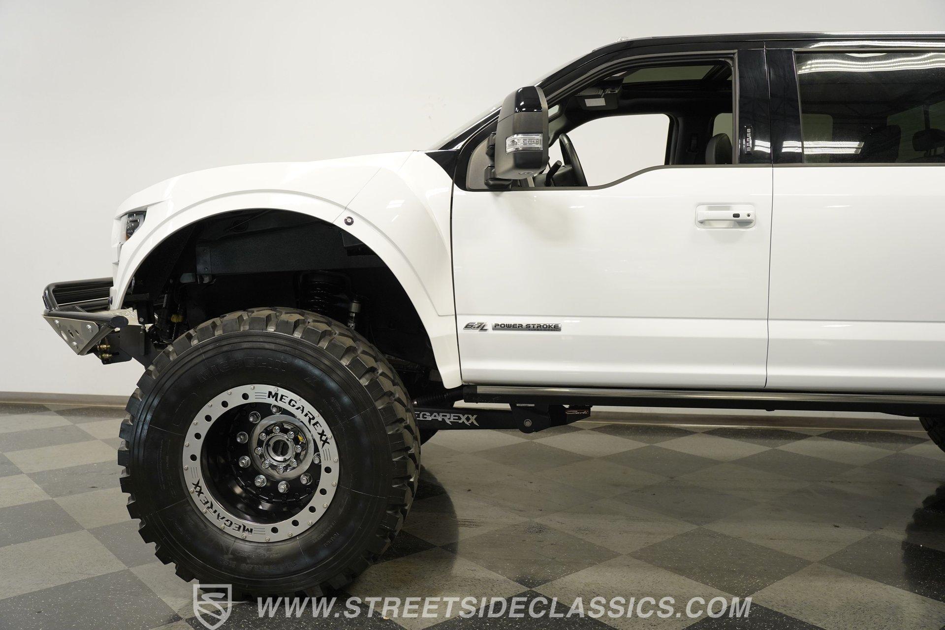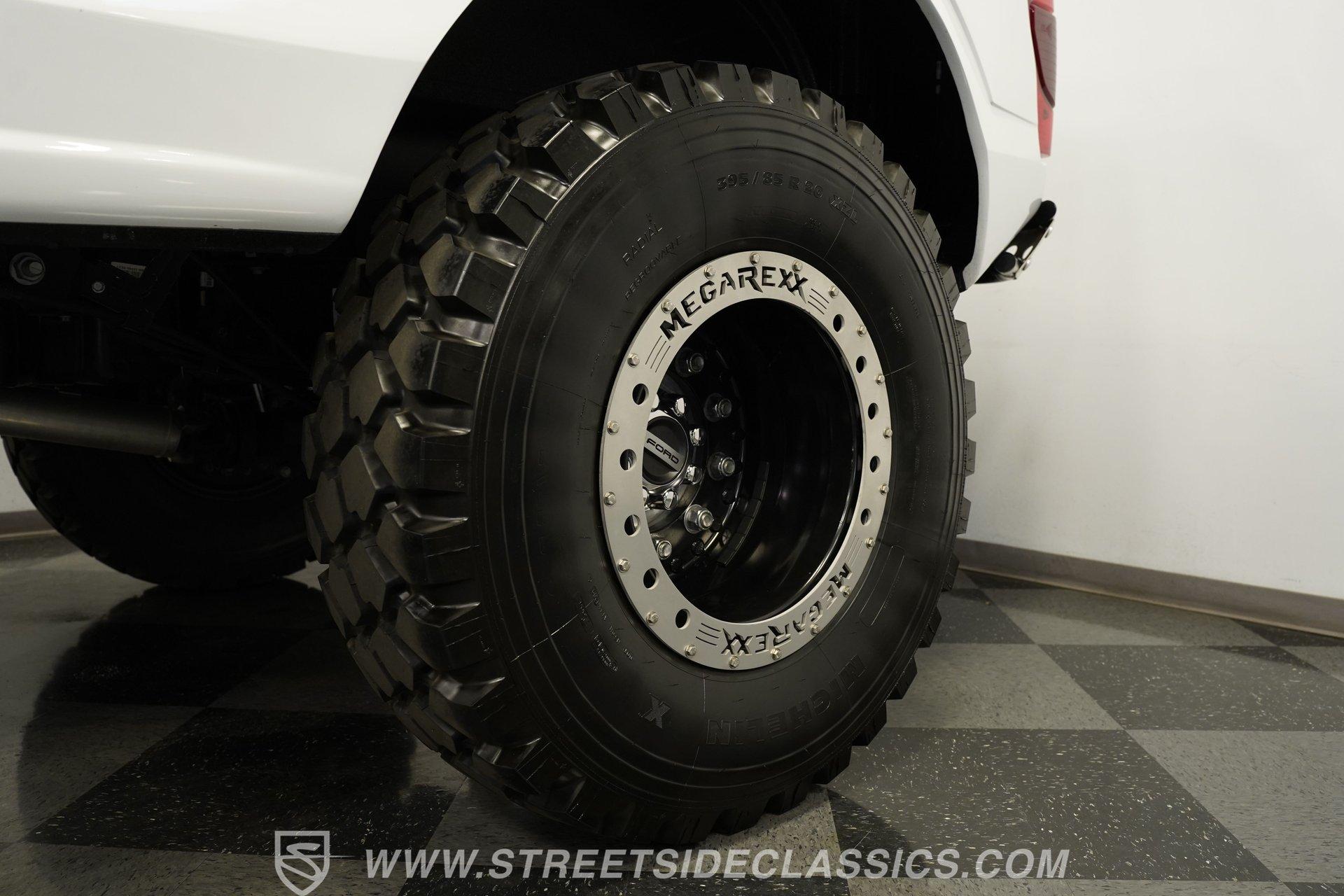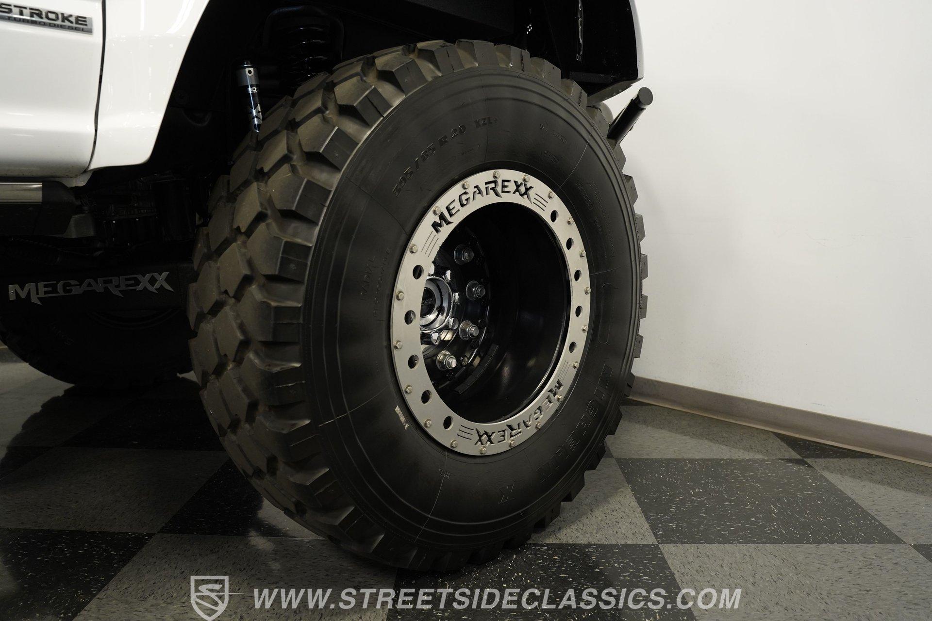 This 2022 Ford F-250 MegaRexx MegaRaptor rides on a suspension that features 4.5-inch high-performance, dual-rate front coil springs, 5-inch full-progressive rear leaf springs, four-wheel remote adjustable reservoir shocks, upgraded radius arms, dual stabilizer bars, and adjustable track bars and bump stops. Military-spec MRAP 3-piece aluminum wheels and custom MegaRexx aluminum rock rings help the massive 46x15.5 inch (395/85R-20) Michelin XZL tires tackle anything you can throw at them. Whatever your goals are with this Raptor happen to be, whether that's taking on the Baja, or just looking good in the Lowe's parking lot, there is no doubt you'll achieve them behind the wheel of this muscle truck. Call today!