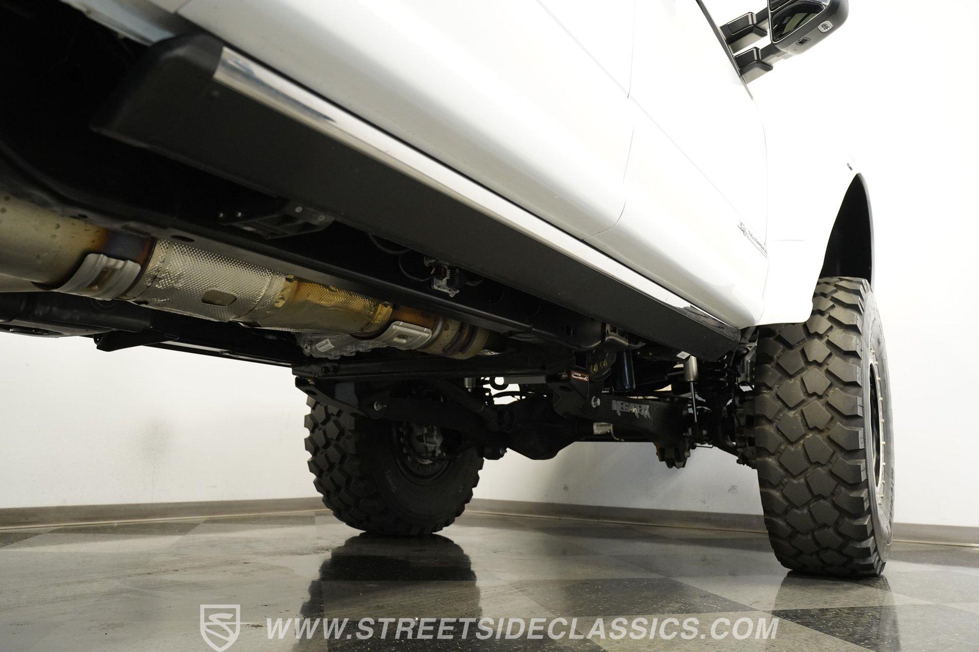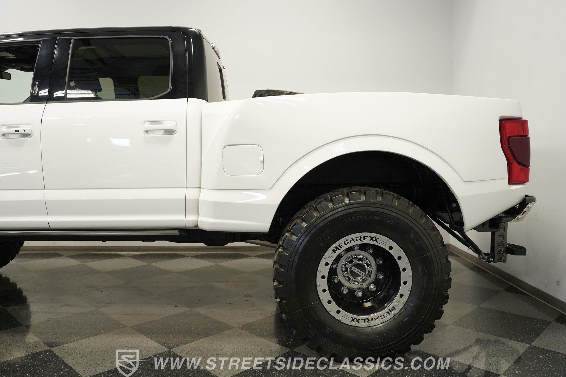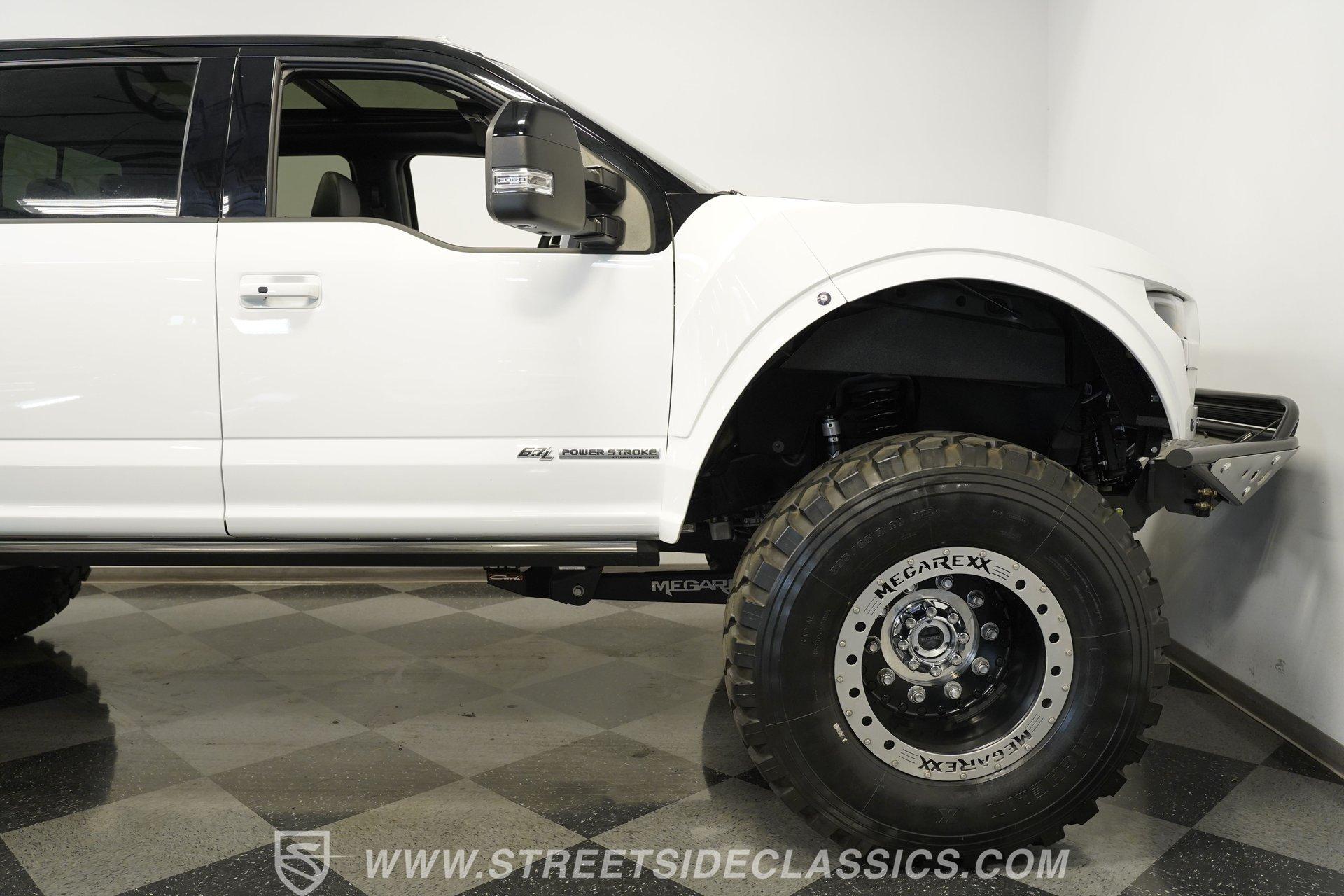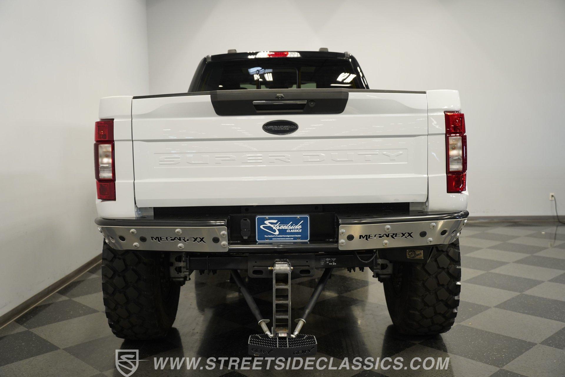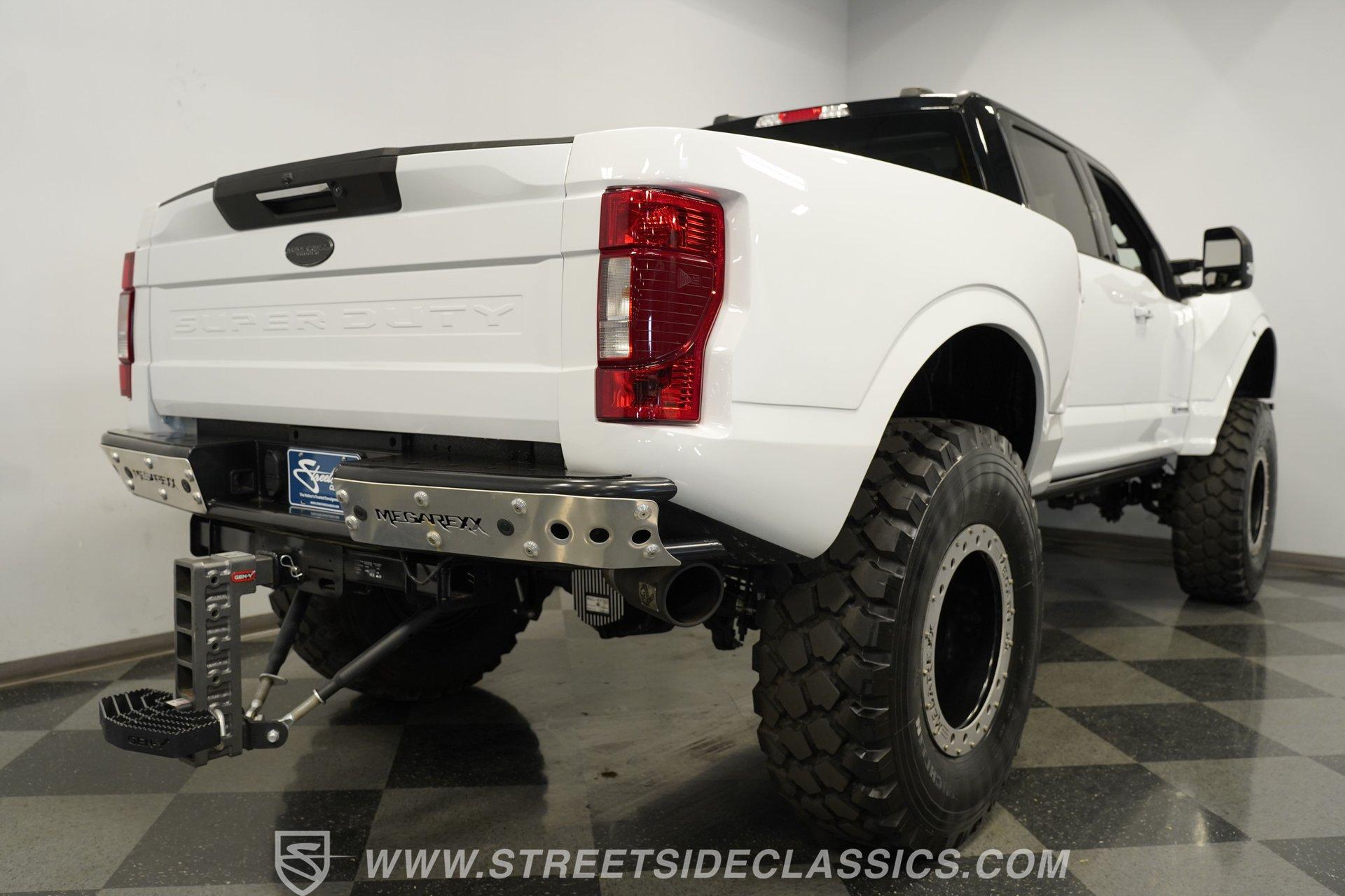 This 2022 Ford F-250 MegaRexx MegaRaptor rides on a suspension that features 4.5-inch high-performance, dual-rate front coil springs, 5-inch full-progressive rear leaf springs, four-wheel remote adjustable reservoir shocks, upgraded radius arms, dual stabilizer bars, and adjustable track bars and bump stops. Military-spec MRAP 3-piece aluminum wheels and custom MegaRexx aluminum rock rings help the massive 46x15.5 inch (395/85R-20) Michelin XZL tires tackle anything you can throw at them. Whatever your goals are with this Raptor happen to be, whether that's taking on the Baja, or just looking good in the Lowe's parking lot, there is no doubt you'll achieve them behind the wheel of this muscle truck. Call today!