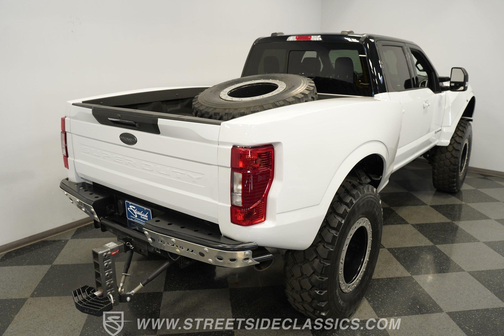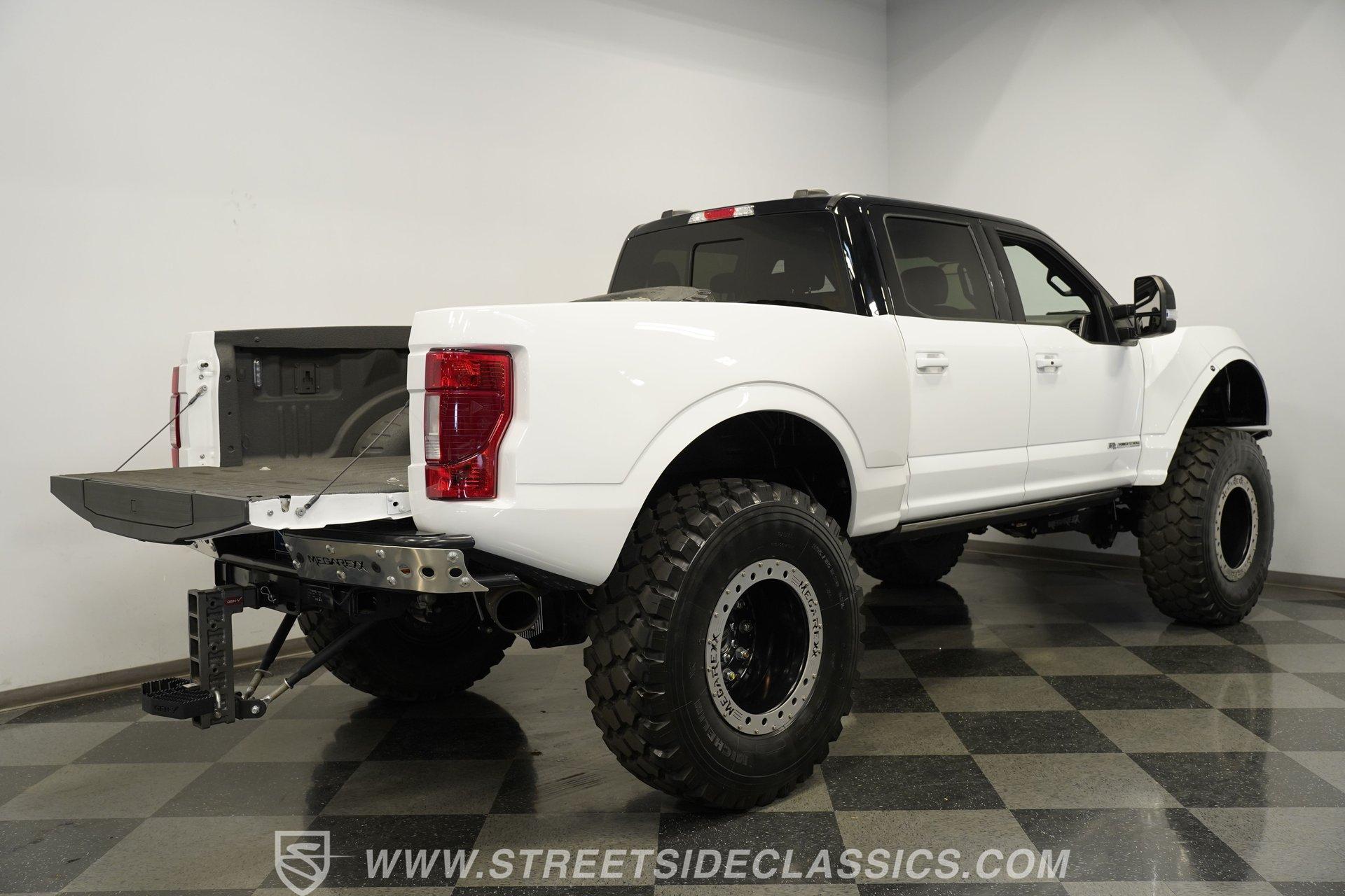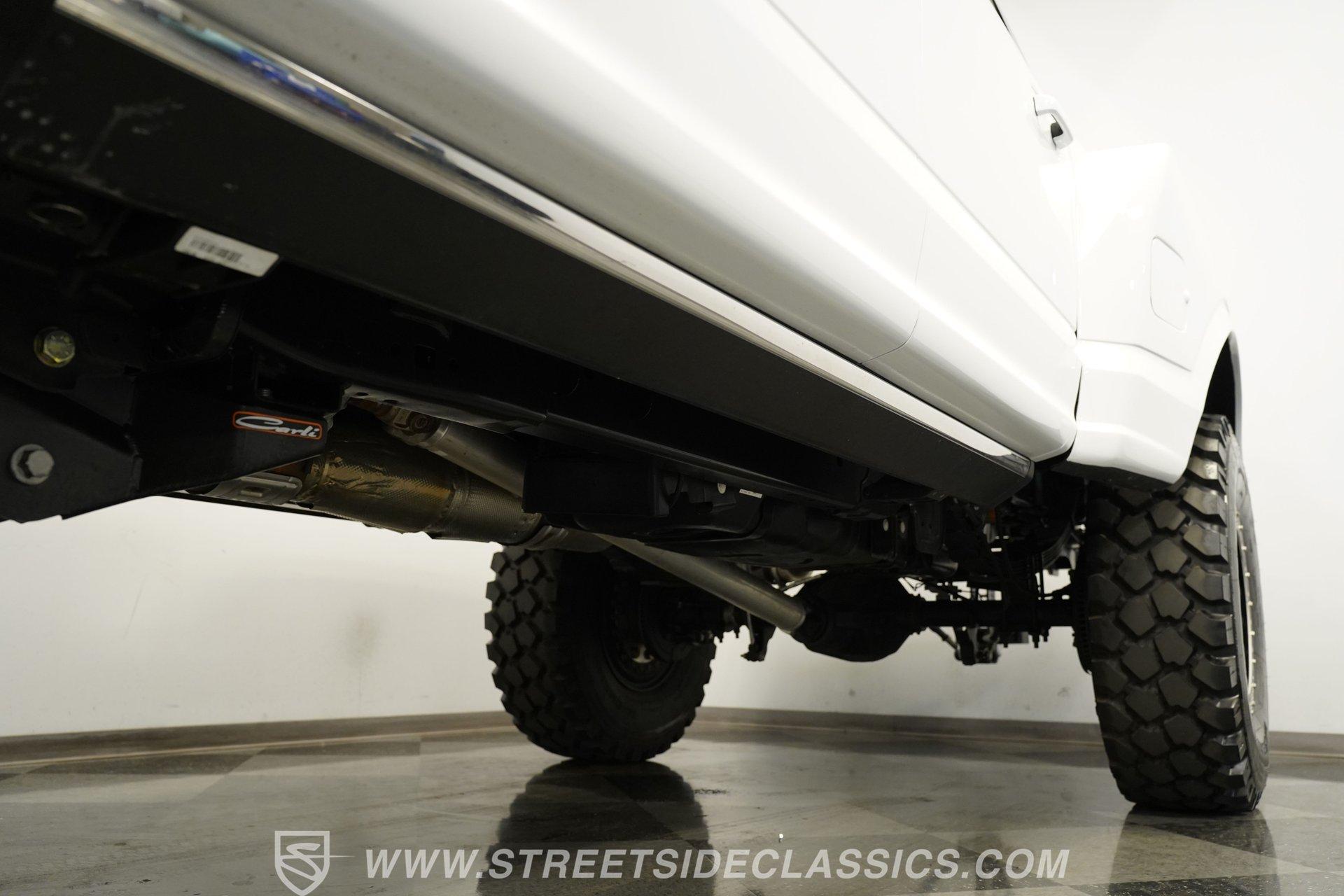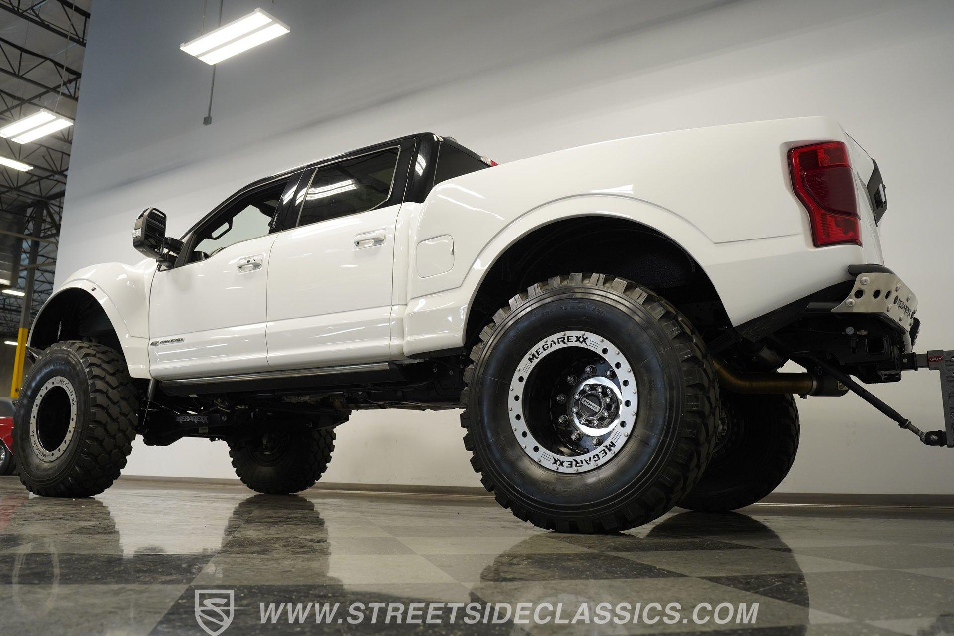This 2022 Ford F-250 MegaRexx MegaRaptor rides on a suspension that features 4.5-inch high-performance, dual-rate front coil springs, 5-inch full-progressive rear leaf springs, four-wheel remote adjustable reservoir shocks, upgraded radius arms, dual stabilizer bars, and adjustable track bars and bump stops. Military-spec MRAP 3-piece aluminum wheels and custom MegaRexx aluminum rock rings help the massive 46x15.5 inch (395/85R-20) Michelin XZL tires tackle anything you can throw at them. Whatever your goals are with this Raptor happen to be, whether that's taking on the Baja, or just looking good in the Lowe's parking lot, there is no doubt you'll achieve them behind the wheel of this muscle truck. Call today!