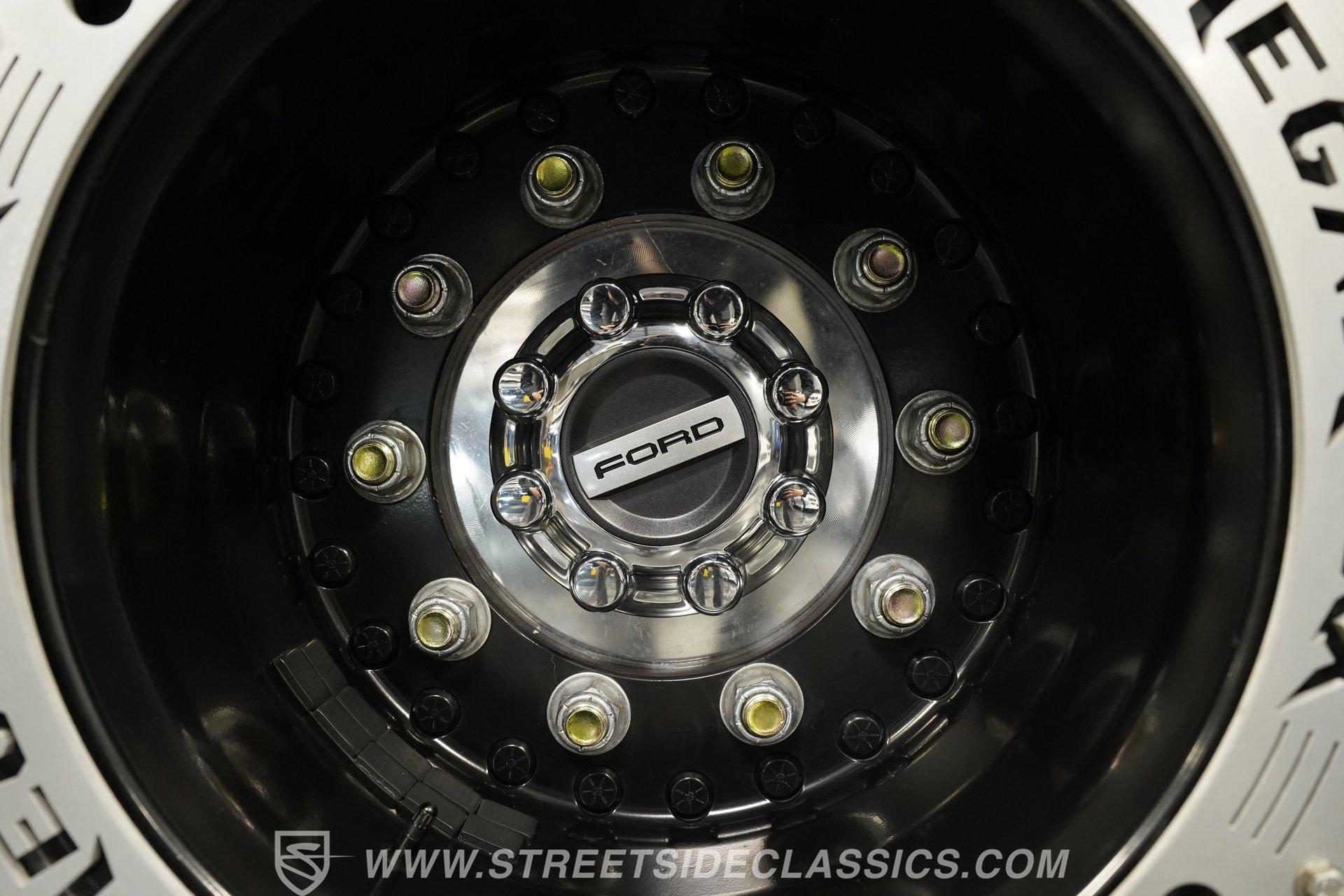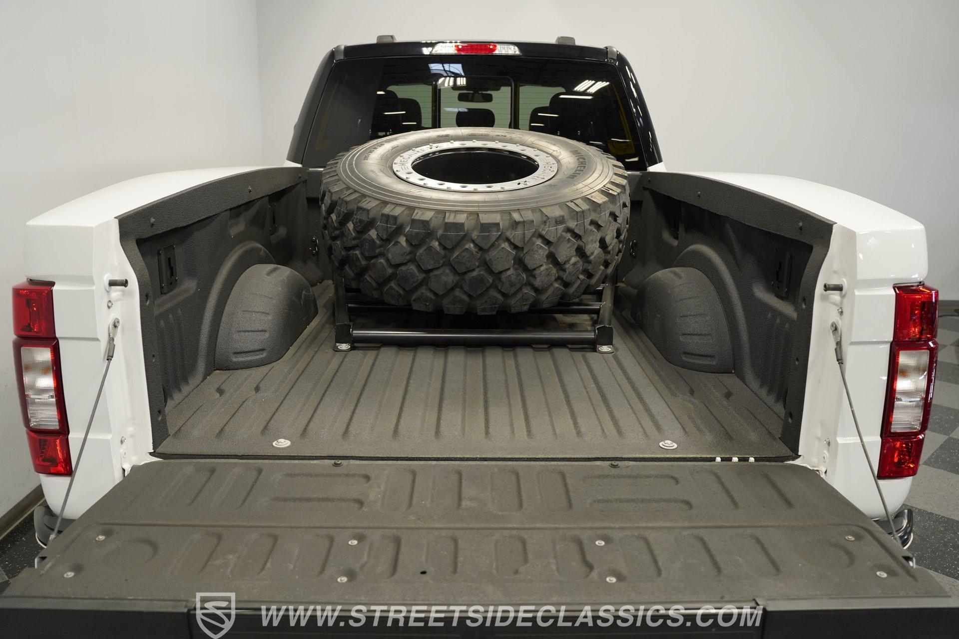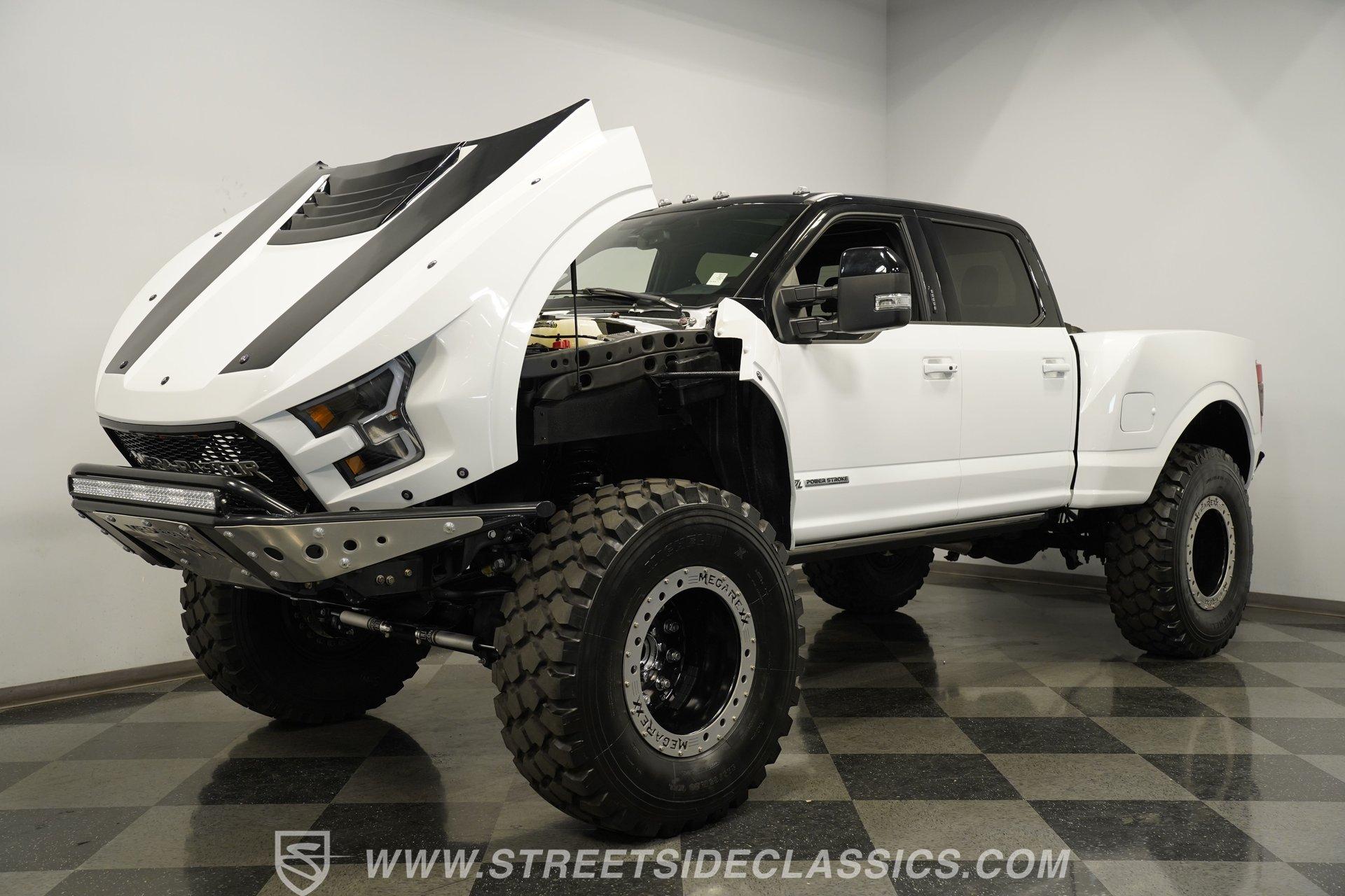 Only a short while ago, the idea of a 'muscle truck' was limited to watching Bigfoot or Gravedigger pummel junk cars at a monster truck rally. But, then, with trucks like the GMC Syclone in the 1990s, the Ford SVT Lightning, and the Dodge Ram SRT-10 in the 2000s, we all could get behind the idea of a fast truck. This 2022 Ford F-250 MegaRexx MegaRaptor we have for you today may be the pinnacle of what the perfect muscle truck could, and should be. One look at its beautiful Oxford White exterior, complete with its one-piece, tilt-action fiberglass front clip, color-matched fenders and steel bumpers, and it's easy to see why. Sitting high up on its high-performance suspension, this Raptor's mega-aggressive demeanor screams, ''Get out of my way!'' And with a shocking 3,122 actual miles on the odometer, this muscle truck won't be atrophying anytime soon.