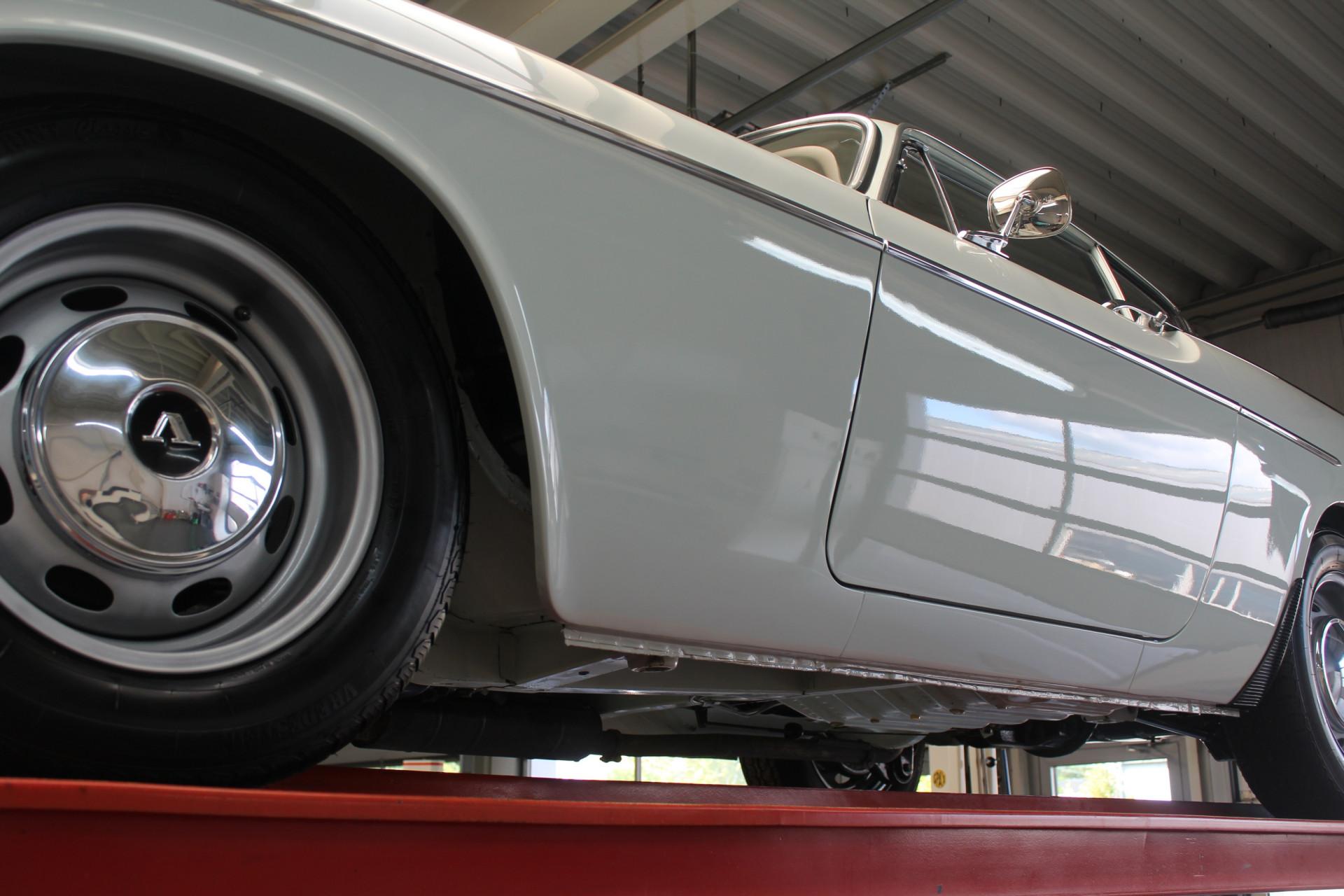 The paintwork, finished in the correct factory color, presents beautifully with a deep gloss and no noteworthy imperfections. The chrome, including the bumpers, is superb—thankfully not “over-restored” as is too often the case. Inside, the cabin delights with fine details, elegant carpets, and fresh upholstery. The wood steering wheel completes the picture.