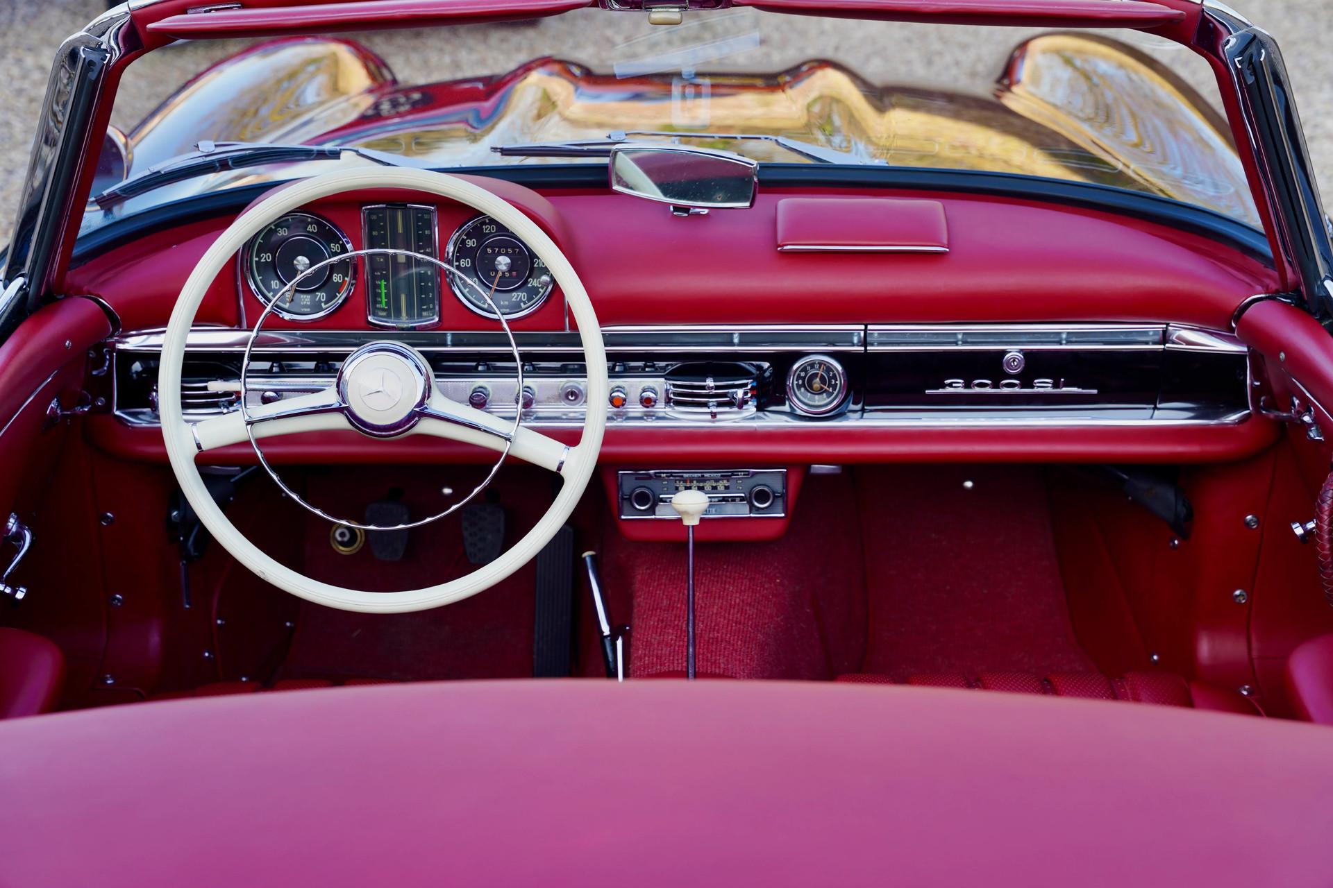 The 3.0-liter inline-six engine, featuring Bosch direct fuel injection, produces 215 horsepower, allowing this Roadster to achieve speeds that were unheard of in the 1950s and 1960s. With its original matching numbers engine in outstanding condition, this 300 SL offers a pure and authentic driving experience.