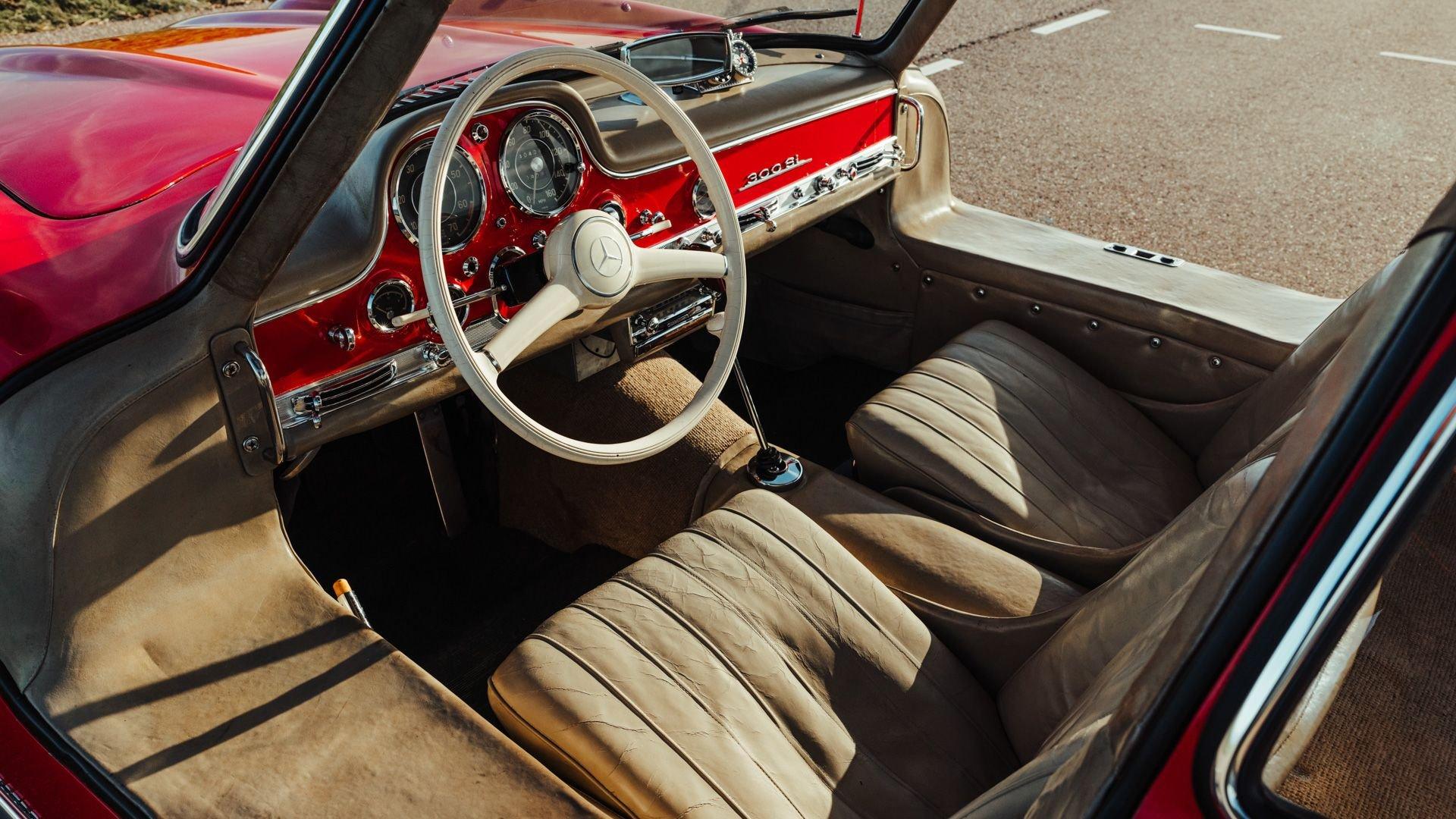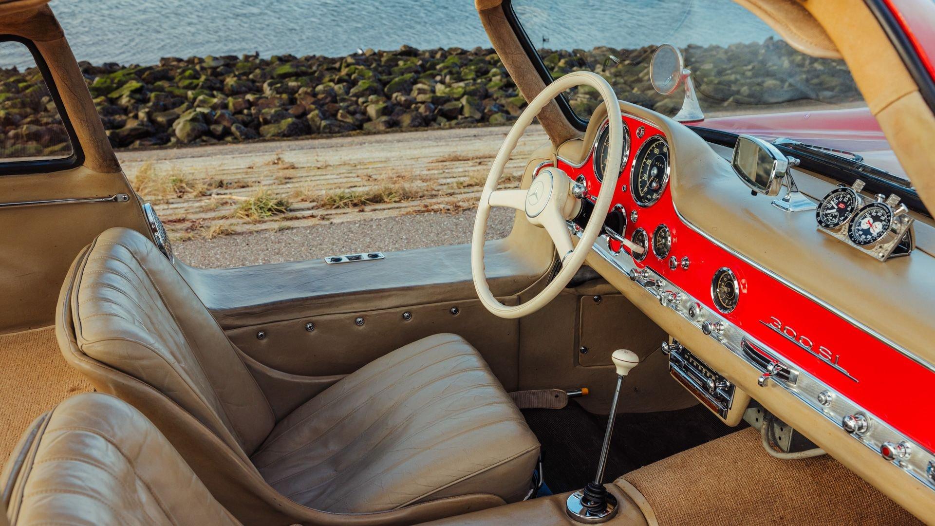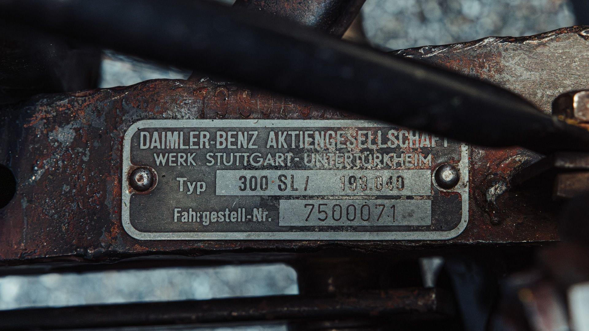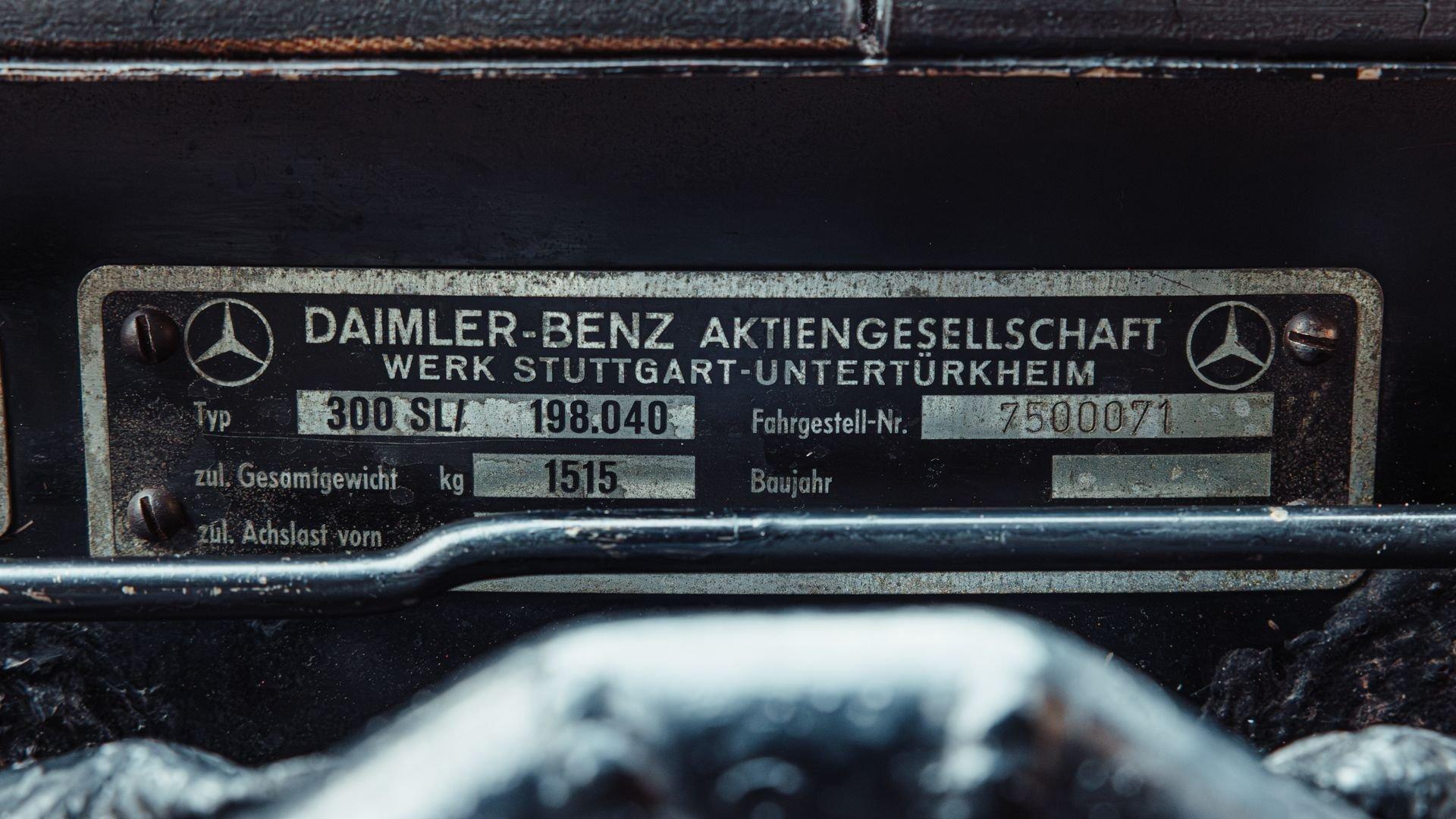 Engine No. 198.980.7500075 Body No. A198.040.7500068 Transmission No. 7500085 Front Spindles No. 7500075 Rear axle No. 7500077 Born from a remarkable confluence of racing ingenuity and market insight, the Mercedes-Benz 300 SL Gullwing emerged as one of the most consequential sports cars of the twentieth century. Its lineage traces directly to the W194 Coupe, the 1952 competition machine conceived by Mercedes-Benz engineers to reassert the marque's post-war dominance against Alfa Romeo, Ferrari, and Lancia. Chief Engineer Fritz Nallinger, Test Department manager Rudolf Uhlenhaut, and construction engineer Joseph Müller created an exceptionally light and rigid 70-kilogram tubular space frame to support the proven single-overhead-cam inline-six from the stately Mercedes 300 series. The frame's high side members, essential to the car's structural integrity, made conventional doors impossible, giving rise instead to the now-legendary roof-hinged "gullwing" design. The W194's competition record was immediate and emphatic: second place at the Mille Miglia, a dominant sweep at the Grand Prix of Berne, and a 1-2 finish at Le Mans—after which the cars were famously driven back to Stuttgart. These successes caught the attention of New York importer Max Hoffman, who recognized the American appetite for a road-going version of this formidable machine. His advocacy proved decisive. Mercedes-Benz approved a production sports car, unveiling the 300 SL at the 1954 New York International Motor Sports Show. For the road, the 300 SL Coupe adopted a streamlined body and introduced Bosch direct mechanical fuel injection, which elevated output by 25 PS over the carbureted racer. The engine was angled 50 degrees to the left, along with dry sump lubrication, to lower the hood line and improve aerodynamic efficiency. With its lightweight construction—just 1,300 kilograms—the Gullwing could reach 260 km/h, earning its reputation as the fastest German production sports car of its day. Beginning as order 856 350, this 300 SL Coupe, chassis 7500071, completed production on 13 May 1957. Only 70 Gullwings were produced in the final production year of 1957 with this car being the ninth-to-last chassis ever produced by Mercedes and, more importantly, the penultimate Gullwing delivered from the factory according to Eric Le Moine’s register. Ordered in Fire Engine Red (534) over a special-order Cream Leather (1060) interior, it was additionally equipped with a Becker Mexico radio, automatic antenna, bumper overriders, sealed-beam headlights, and instrumentation with English lettering. It also features the desirable 3.64 rear axle ratio for higher speed at lower revs, whereas 3.89 was standard for US-specification examples. It was then shipped to Los Angeles, California USA, on 21 May, where it was bought new by Donald H. Bueermann of Portland, Oregon. Having recently completed his Master of Business Administration from Stanford in 1955, Bueermann was an up-and-coming stockbroker when he purchased the Mercedes at just 28 years old. The Gullwing remained in Portland when it passed through the care of Howard Hanna before heading to Spokane, Washington, with Arthur L.W. True. It is believed that during this period, the original Cream Leather was surface dyed in black. The Mercedes remained in True's care until his passing in 1967, when his family donated the already collectible vintage car just 10 years after production his collection to the acclaimed Henry Ford Museum of Dearborn, Michigan. With the museum focused on American innovation, ingenuity, and resourcefulness, it was decided to sell the Gullwing in 1968, where it was acquired by Richard F. Silcher of Jackson, Michigan. Wanting to put the car on public display, Silcher brought it to Auburn, Indiana, where it was displayed in the Special Interest Gallery of the Auburn Cord Duesenberg (ACD) Automobile Museum. After 50 years on display at the ACD Museum, Silcher made the decision to part with his 300 SL in 2018. Remarkably, the car displayed just 36,375 miles, which was recorded as the total when it entered the museum in 1968. Its current caretaker brought the Gullwing back across the Atlantic, returning it to Europe for the first time since May 1957. Under their care, the car received mechanical attention to ensure its roadworthiness after decades of preservation. Additional work included a comprehensive detailing that revealed the true extent of the car's impressive level of originality. While only minor areas of the rear end lower parts were resprayed during the past 68 years, most of the bodywork proudly wears its original, factory applied coat of Fire Engine Red paintwork. Inside, the original Roser leather was expertly cleaned to remove the black surface dye that was applied early in its life revealing its original Cream color underneath. The engine compartment and undercarriage retains many original factory-applied paint markings along with the original tags and stickers still affixed to the coolant, oil reservoir, and fuel tank. The car was inspected into the finest detail by noted 300 SL expert Ben Valkenburg who was impressed not only by the car’s condition, but the level of original detail still present. Ben is noted by saying “You can never get a 300SL to drive and handle like an unrestored one coming from the factory. The few people who have got the change today to still have an engine from the factory that has never been opened know the difference. There is nothing like it.” He also noted that it is likely one of the most original examples extant. Surely impressed by the current owner, has thoroughly enjoyed this remarkable 300 SL, covering over 4,000 memorable miles in it, with the added peace of mind that the original tool kit and jack are still present should the need arise. Today, the car shows an astonishing low odometer reading of just 40,420 original miles or approximately 65,000 kilometers at the time of consignment with the bodywork 