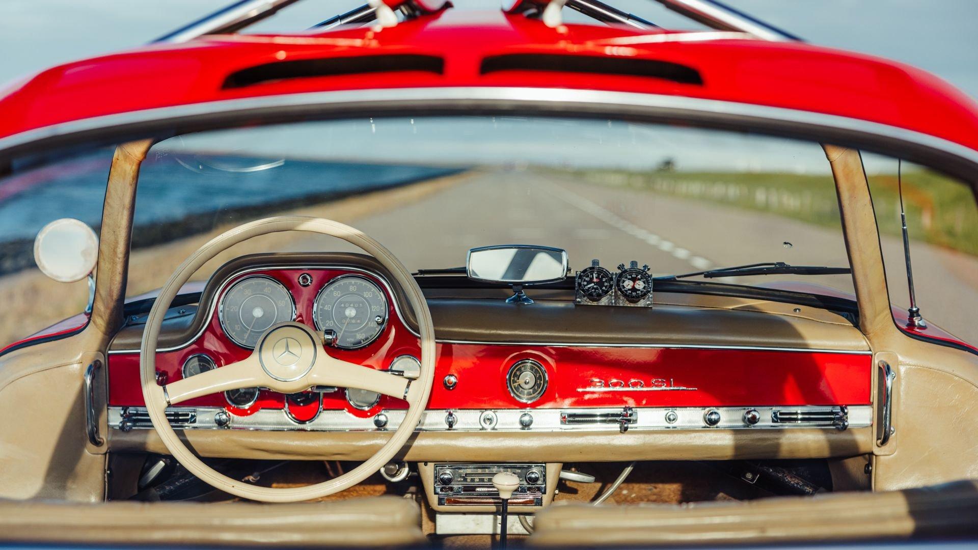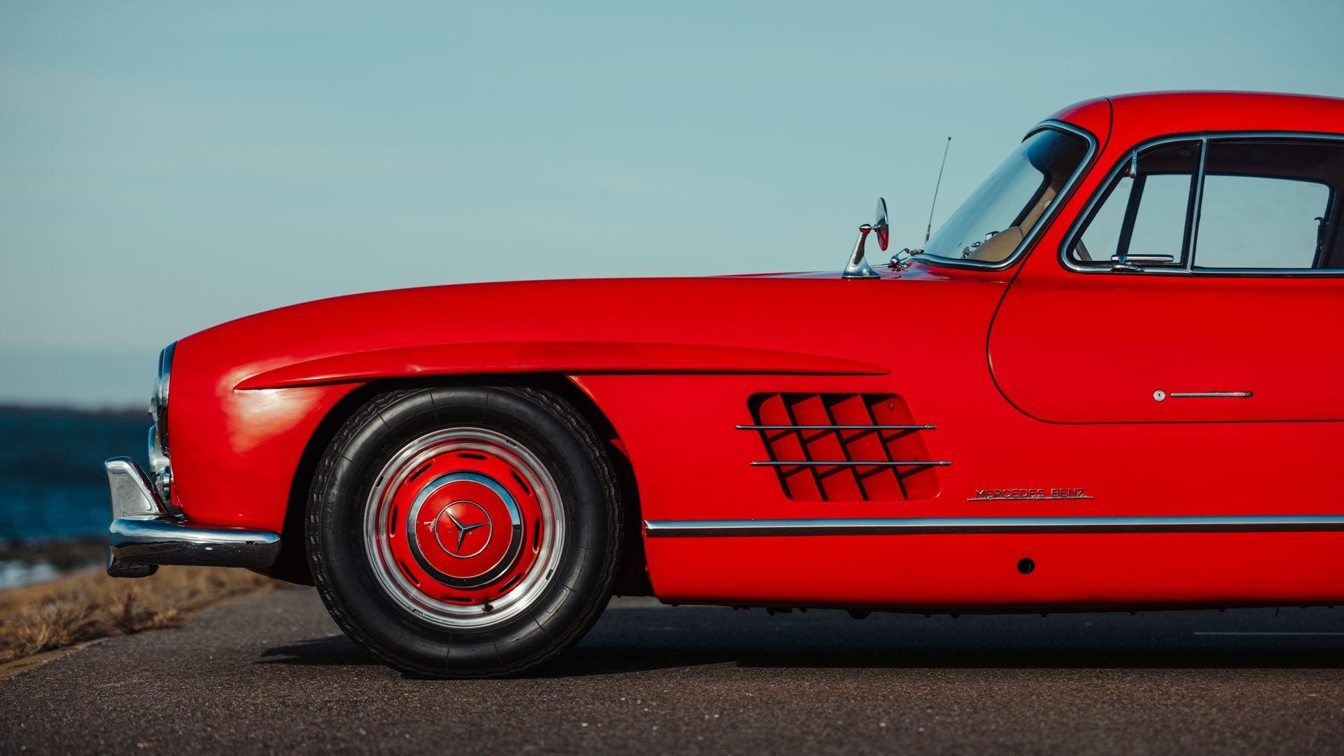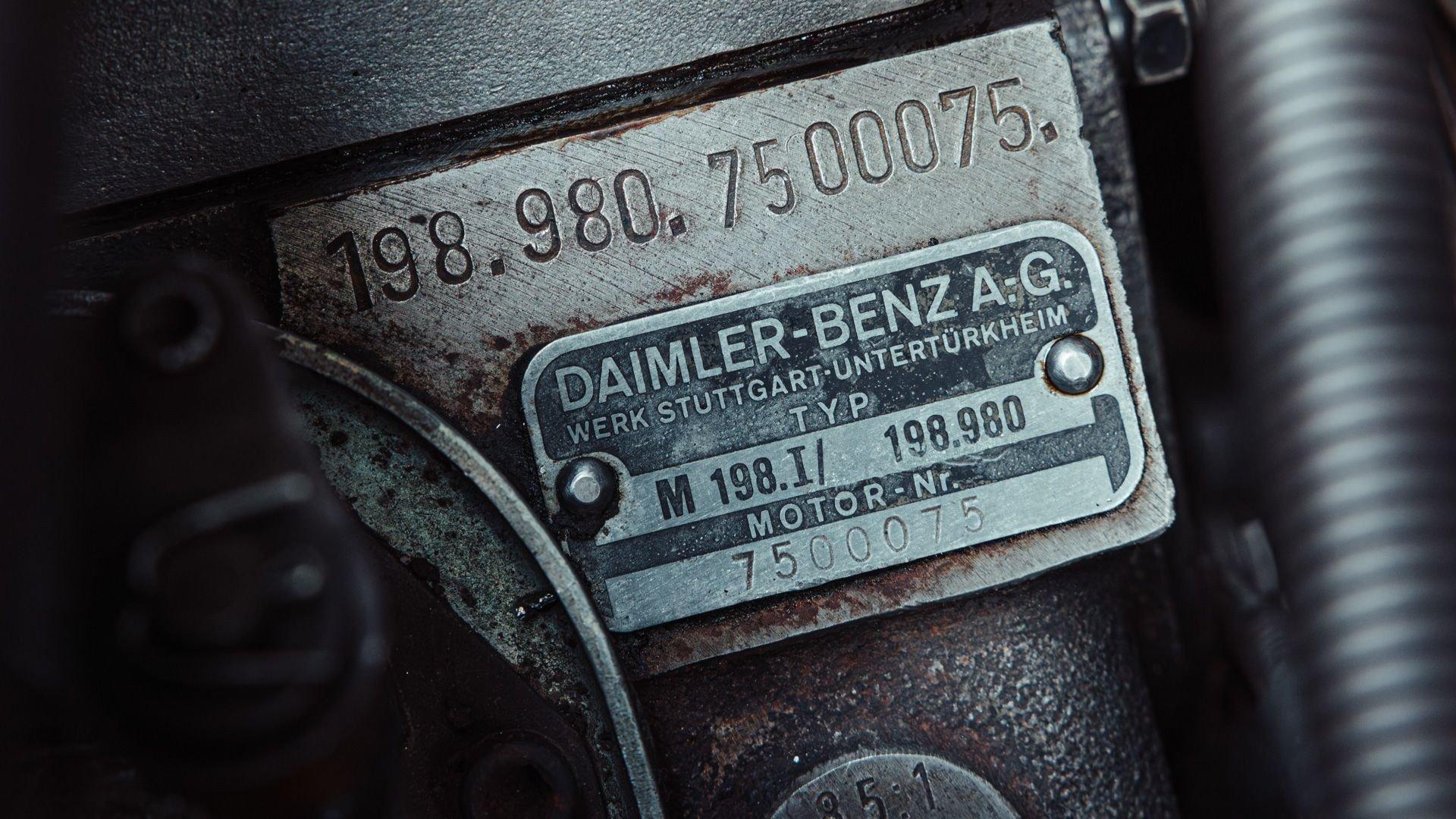 Engine No. 198.980.7500075 Body No. A198.040.7500068 Transmission No. 7500085 Front Spindles No. 7500075 Rear axle No. 7500077 Born from a remarkable confluence of racing ingenuity and market insight, the Mercedes-Benz 300 SL Gullwing emerged as one of the most consequential sports cars of the twentieth century. Its lineage traces directly to the W194 Coupe, the 1952 competition machine conceived by Mercedes-Benz engineers to reassert the marque's post-war dominance against Alfa Romeo, Ferrari, and Lancia. Chief Engineer Fritz Nallinger, Test Department manager Rudolf Uhlenhaut, and construction engineer Joseph Müller created an exceptionally light and rigid 70-kilogram tubular space frame to support the proven single-overhead-cam inline-six from the stately Mercedes 300 series. The frame's high side members, essential to the car's structural integrity, made conventional doors impossible, giving rise instead to the now-legendary roof-hinged "gullwing" design. The W194's competition record was immediate and emphatic: second place at the Mille Miglia, a dominant sweep at the Grand Prix of Berne, and a 1-2 finish at Le Mans—after which the cars were famously driven back to Stuttgart. These successes caught the attention of New York importer Max Hoffman, who recognized the American appetite for a road-going version of this formidable machine. His advocacy proved decisive. Mercedes-Benz approved a production sports car, unveiling the 300 SL at the 1954 New York International Motor Sports Show. For the road, the 300 SL Coupe adopted a streamlined body and introduced Bosch direct mechanical fuel injection, which elevated output by 25 PS over the carbureted racer. The engine was angled 50 degrees to the left, along with dry sump lubrication, to lower the hood line and improve aerodynamic efficiency. With its lightweight construction—just 1,300 kilograms—the Gullwing could reach 260 km/h, earning its reputation as the fastest German production sports car of its day. Beginning as order 856 350, this 300 SL Coupe, chassis 7500071, completed production on 13 May 1957. Only 70 Gullwings were produced in the final production year of 1957 with this car being the ninth-to-last chassis ever produced by Mercedes and, more importantly, the penultimate Gullwing delivered from the factory according to Eric Le Moine’s register. Ordered in Fire Engine Red (534) over a special-order Cream Leather (1060) interior, it was additionally equipped with a Becker Mexico radio, automatic antenna, bumper overriders, sealed-beam headlights, and instrumentation with English lettering. It also features the desirable 3.64 rear axle ratio for higher speed at lower revs, whereas 3.89 was standard for US-specification examples. It was then shipped to Los Angeles, California USA, on 21 May, where it was bought new by Donald H. Bueermann of Portland, Oregon. Having recently completed his Master of Business Administration from Stanford in 1955, Bueermann was an up-and-coming stockbroker when he purchased the Mercedes at just 28 years old. The Gullwing remained in Portland when it passed through the care of Howard Hanna before heading to Spokane, Washington, with Arthur L.W. True. It is believed that during this period, the original Cream Leather was surface dyed in black. The Mercedes remained in True's care until his passing in 1967, when his family donated the already collectible vintage car just 10 years after production his collection to the acclaimed Henry Ford Museum of Dearborn, Michigan. With the museum focused on American innovation, ingenuity, and resourcefulness, it was decided to sell the Gullwing in 1968, where it was acquired by Richard F. Silcher of Jackson, Michigan. Wanting to put the car on public display, Silcher brought it to Auburn, Indiana, where it was displayed in the Special Interest Gallery of the Auburn Cord Duesenberg (ACD) Automobile Museum. After 50 years on display at the ACD Museum, Silcher made the decision to part with his 300 SL in 2018. Remarkably, the car displayed just 36,375 miles, which was recorded as the total when it entered the museum in 1968. Its current caretaker brought the Gullwing back across the Atlantic, returning it to Europe for the first time since May 1957. Under their care, the car received mechanical attention to ensure its roadworthiness after decades of preservation. Additional work included a comprehensive detailing that revealed the true extent of the car's impressive level of originality. While only minor areas of the rear end lower parts were resprayed during the past 68 years, most of the bodywork proudly wears its original, factory applied coat of Fire Engine Red paintwork. Inside, the original Roser leather was expertly cleaned to remove the black surface dye that was applied early in its life revealing its original Cream color underneath. The engine compartment and undercarriage retains many original factory-applied paint markings along with the original tags and stickers still affixed to the coolant, oil reservoir, and fuel tank. The car was inspected into the finest detail by noted 300 SL expert Ben Valkenburg who was impressed not only by the car’s condition, but the level of original detail still present. Ben is noted by saying “You can never get a 300SL to drive and handle like an unrestored one coming from the factory. The few people who have got the change today to still have an engine from the factory that has never been opened know the difference. There is nothing like it.” He also noted that it is likely one of the most original examples extant. Surely impressed by the current owner, has thoroughly enjoyed this remarkable 300 SL, covering over 4,000 memorable miles in it, with the added peace of mind that the original tool kit and jack are still present should the need arise. Today, the car shows an astonishing low odometer reading of just 40,420 original miles or approximately 65,000 kilometers at the time of consignment with the bodywork 
