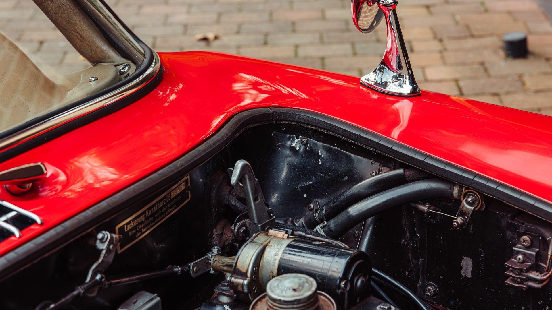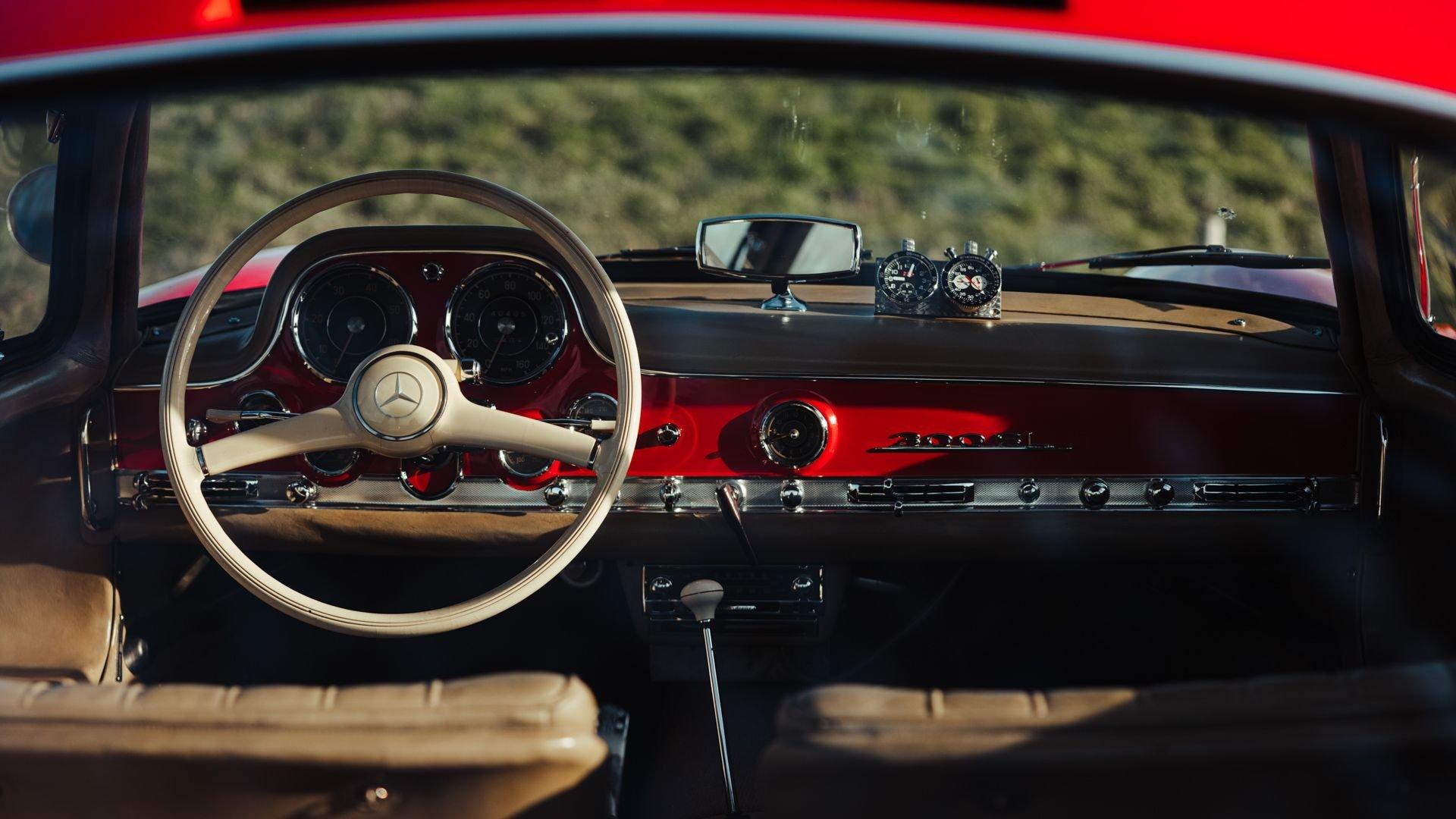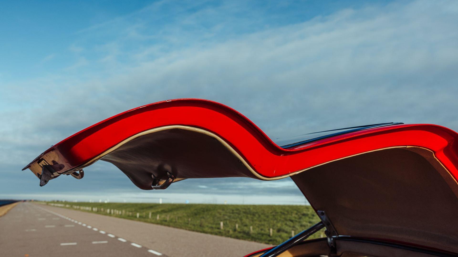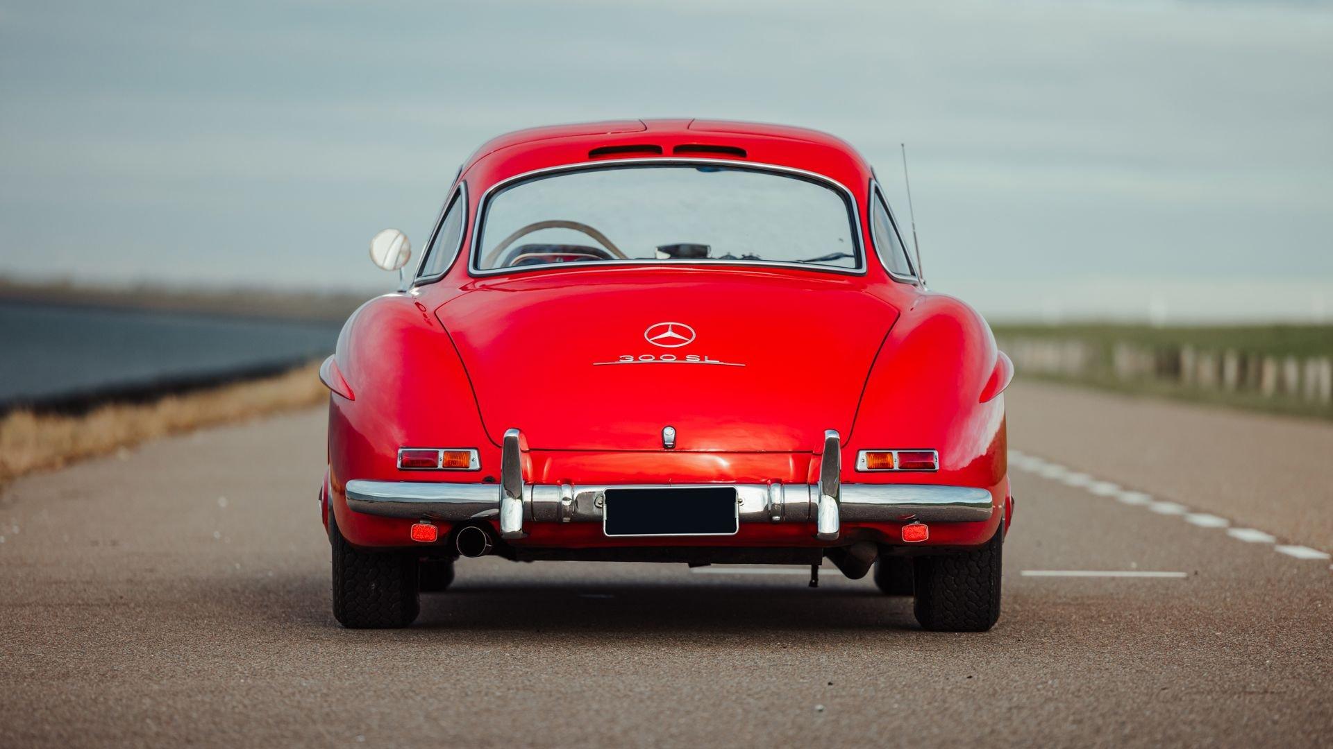 Engine No. 198.980.7500075 Body No. A198.040.7500068 Transmission No. 7500085 Front Spindles No. 7500075 Rear axle No. 7500077 Born from a remarkable confluence of racing ingenuity and market insight, the Mercedes-Benz 300 SL Gullwing emerged as one of the most consequential sports cars of the twentieth century. Its lineage traces directly to the W194 Coupe, the 1952 competition machine conceived by Mercedes-Benz engineers to reassert the marque's post-war dominance against Alfa Romeo, Ferrari, and Lancia. Chief Engineer Fritz Nallinger, Test Department manager Rudolf Uhlenhaut, and construction engineer Joseph Müller created an exceptionally light and rigid 70-kilogram tubular space frame to support the proven single-overhead-cam inline-six from the stately Mercedes 300 series. The frame's high side members, essential to the car's structural integrity, made conventional doors impossible, giving rise instead to the now-legendary roof-hinged "gullwing" design. The W194's competition record was immediate and emphatic: second place at the Mille Miglia, a dominant sweep at the Grand Prix of Berne, and a 1-2 finish at Le Mans—after which the cars were famously driven back to Stuttgart. These successes caught the attention of New York importer Max Hoffman, who recognized the American appetite for a road-going version of this formidable machine. His advocacy proved decisive. Mercedes-Benz approved a production sports car, unveiling the 300 SL at the 1954 New York International Motor Sports Show. For the road, the 300 SL Coupe adopted a streamlined body and introduced Bosch direct mechanical fuel injection, which elevated output by 25 PS over the carbureted racer. The engine was angled 50 degrees to the left, along with dry sump lubrication, to lower the hood line and improve aerodynamic efficiency. With its lightweight construction—just 1,300 kilograms—the Gullwing could reach 260 km/h, earning its reputation as the fastest German production sports car of its day. Beginning as order 856 350, this 300 SL Coupe, chassis 7500071, completed production on 13 May 1957. Only 70 Gullwings were produced in the final production year of 1957 with this car being the ninth-to-last chassis ever produced by Mercedes and, more importantly, the penultimate Gullwing delivered from the factory according to Eric Le Moine’s register. Ordered in Fire Engine Red (534) over a special-order Cream Leather (1060) interior, it was additionally equipped with a Becker Mexico radio, automatic antenna, bumper overriders, sealed-beam headlights, and instrumentation with English lettering. It also features the desirable 3.64 rear axle ratio for higher speed at lower revs, whereas 3.89 was standard for US-specification examples. It was then shipped to Los Angeles, California USA, on 21 May, where it was bought new by Donald H. Bueermann of Portland, Oregon. Having recently completed his Master of Business Administration from Stanford in 1955, Bueermann was an up-and-coming stockbroker when he purchased the Mercedes at just 28 years old. The Gullwing remained in Portland when it passed through the care of Howard Hanna before heading to Spokane, Washington, with Arthur L.W. True. It is believed that during this period, the original Cream Leather was surface dyed in black. The Mercedes remained in True's care until his passing in 1967, when his family donated the already collectible vintage car just 10 years after production his collection to the acclaimed Henry Ford Museum of Dearborn, Michigan. With the museum focused on American innovation, ingenuity, and resourcefulness, it was decided to sell the Gullwing in 1968, where it was acquired by Richard F. Silcher of Jackson, Michigan. Wanting to put the car on public display, Silcher brought it to Auburn, Indiana, where it was displayed in the Special Interest Gallery of the Auburn Cord Duesenberg (ACD) Automobile Museum. After 50 years on display at the ACD Museum, Silcher made the decision to part with his 300 SL in 2018. Remarkably, the car displayed just 36,375 miles, which was recorded as the total when it entered the museum in 1968. Its current caretaker brought the Gullwing back across the Atlantic, returning it to Europe for the first time since May 1957. Under their care, the car received mechanical attention to ensure its roadworthiness after decades of preservation. Additional work included a comprehensive detailing that revealed the true extent of the car's impressive level of originality. While only minor areas of the rear end lower parts were resprayed during the past 68 years, most of the bodywork proudly wears its original, factory applied coat of Fire Engine Red paintwork. Inside, the original Roser leather was expertly cleaned to remove the black surface dye that was applied early in its life revealing its original Cream color underneath. The engine compartment and undercarriage retains many original factory-applied paint markings along with the original tags and stickers still affixed to the coolant, oil reservoir, and fuel tank. The car was inspected into the finest detail by noted 300 SL expert Ben Valkenburg who was impressed not only by the car’s condition, but the level of original detail still present. Ben is noted by saying “You can never get a 300SL to drive and handle like an unrestored one coming from the factory. The few people who have got the change today to still have an engine from the factory that has never been opened know the difference. There is nothing like it.” He also noted that it is likely one of the most original examples extant. Surely impressed by the current owner, has thoroughly enjoyed this remarkable 300 SL, covering over 4,000 memorable miles in it, with the added peace of mind that the original tool kit and jack are still present should the need arise. Today, the car shows an astonishing low odometer reading of just 40,420 original miles or approximately 65,000 kilometers at the time of consignment with the bodywork 