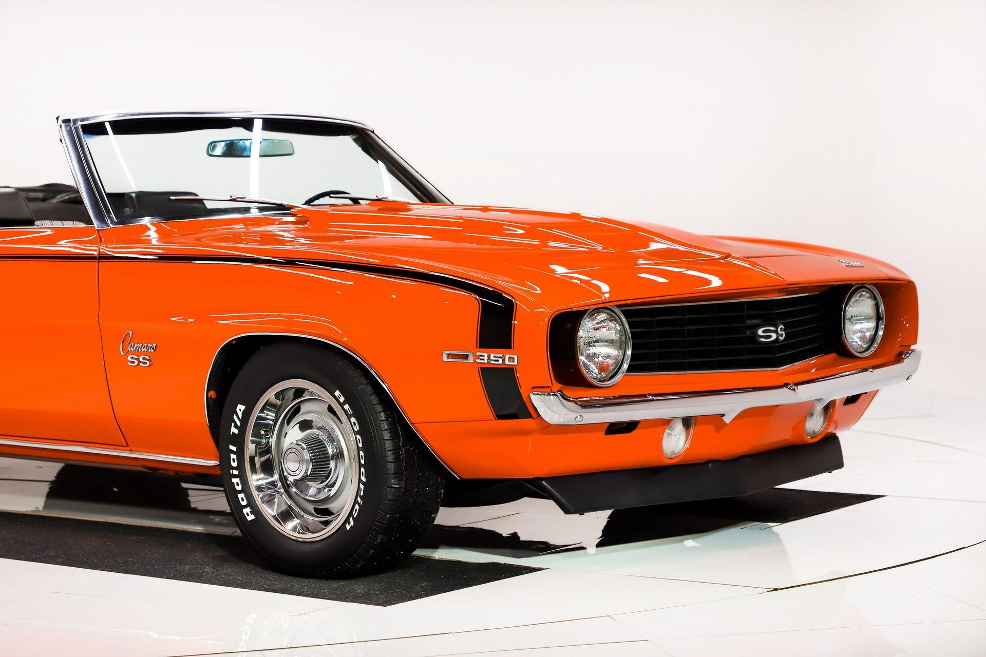 Celebrating our 65 year anniversary! This family owned and operated business was established in 1960, making us the oldest classic car dealership in America. Special thank you to all our customers for entrusting us to park the car of your dreams in your driveway while preserving automotive history for future generations to embrace and enjoy. -Grams family & Volo Museum staff INTRODUCTION: Real SS 350, code X55, real Hugger Orange code 72, #s match motor, factory a/c in a 69 Camaro convertible! This is a home run right here! It has all that you want and more than you need. EXTERIOR: This body's looking really good! It is nice and straight; it's even smooth along the bottoms. It fits nicely and is decked out with a cowl hood and spoilers. Repainted its original Hugger Orange and the paint is polished very smooth and glossy. The hockey stick stripe is painted on smooth to the touch. The chrome and trim is shiny and straight, the windshield is very clear, weatherstrips have been replaced. The power black convertible top is in excellent shape and it has a boot for when it's down. It is rolling on a set of classic 15 inch rally wheels with shiny trim and they're wrapped in BFG tires. INTERIOR: Inside is pretty darn nice too! It has the deluxe interior which includes molded door panels and the seats have the nostalgic houndstooth upholstery (stays cooler in the sun too). It also features a factory tachometer and gauges in the console. That AM/FM radio actually is upgraded with modern internals including Bluetooth! It is in overall very good condition and stock from the seatbelts to the staple shifter. ENGINE COMPARTMENT: There are some very nice features going on in here! It has a # matching original motor, factory air conditioning, power steering and brakes. The 350 was rebuilt and balanced by Borowski Race Engines. It has Scat rods, Howard hydraulic roller cam, roller tip rockers, completely rebuilt heads and is probably making more than its original 300hp. The a/c had a recent major service and is ready to be enjoyed. It has a stock and clean appearance. The manifolds, valve covers, air cleaner, fuel filter, radiator, shroud, hood insulation are all correct. TRUNK COMPARTMENT: Under the trunk lid and the jamb are painted slick, inside is solid with a spatter finish paint. It has a reproduction trunk mat and weatherstrip, a rally wheel for a spare and a trunk light. UNDERSIDE: It's very clean and restored to original condition. The steering and suspension has been rebuilt as needed and was recently inspected. The brakes have been redone, and have discs in front, new brake lines and e-brake cable. It has the optional chambered exhaust system providing a great sound. The fuel system was replaced including the tank and the lines. Looking up at the motor it is clean Chevy Orange, the starter looks fresh and it has a flywheel cover. The transmission is the heavy duty Turbo 400 automatic and the rebuilt driveshaft connects to a 12 bolt rear end. The floors have been replaced. There's no rust and they're painted gloss black. SERVICE: We take pride in our cars and reputation. Therefore, we built a 2 million dollar, 10,000 square ft service center, and hired a team of technicians to service the essentials on every car we sell. CONCLUSION: It's going to be difficult to replace this if you miss it, there are others but not a # match SS350 with air and nice options like his one has. Contact sales today! For nearly 30 years, I, Jay Grams, have personally written the highlights for almost every car in our collection. What I provide is my professional opinion based on my experience with these vehicles. However, opinions can vary, and I strongly recommend a personal inspection to form your own view. Our sales team is always available to answer any questions you may have. One great option is to request a personalized walk-around video, where we can showcase the car and share our team’s insights. **Our cars are displayed within a museum setting. If you are interested in a specific vehicle, please schedule an appointment with a salesperson to view it. Without an appointment, there is an admission fee to enter the showroom. If you decide to purchase a car, your admission will be refunded, and you'll receive a one-year museum membership. ☎️ 815 385 3644 9-5 central ? Sales@volocars.com Answered ASAP Air conditioning Power disc brakes Power steering Chambered exhaust Deluxe interior Houndstooth upholstery Console Factory gauges Factory tachometer Am-Fm Bluetooth Power top Spoilers Hockey stick stripes Cowl hood Rally wheels