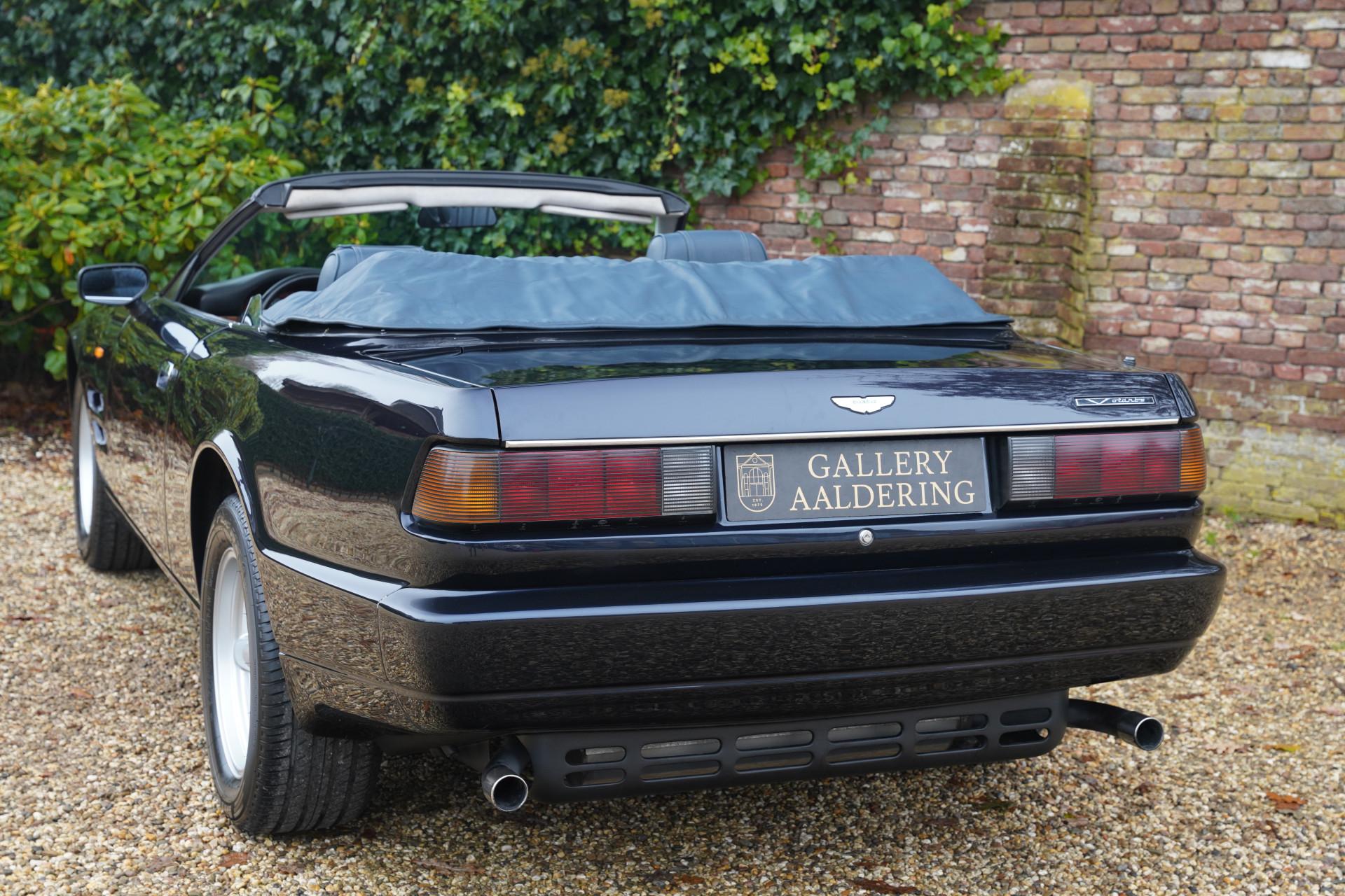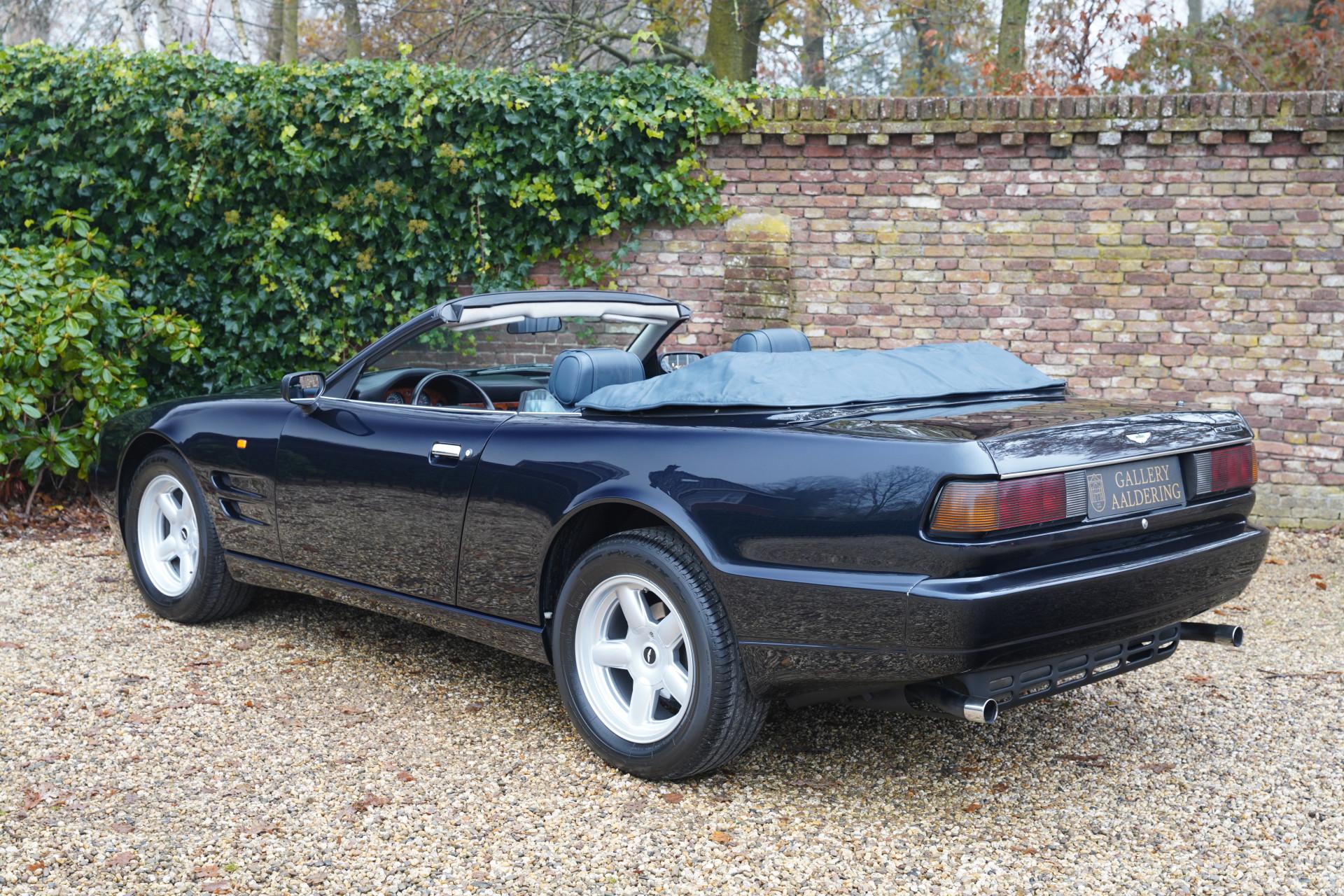 The Virage you see here is from 1994, a very late example, which means that the Porsche Nachtblau convertible is equipped with the modern four-speed automatic available until 1993.