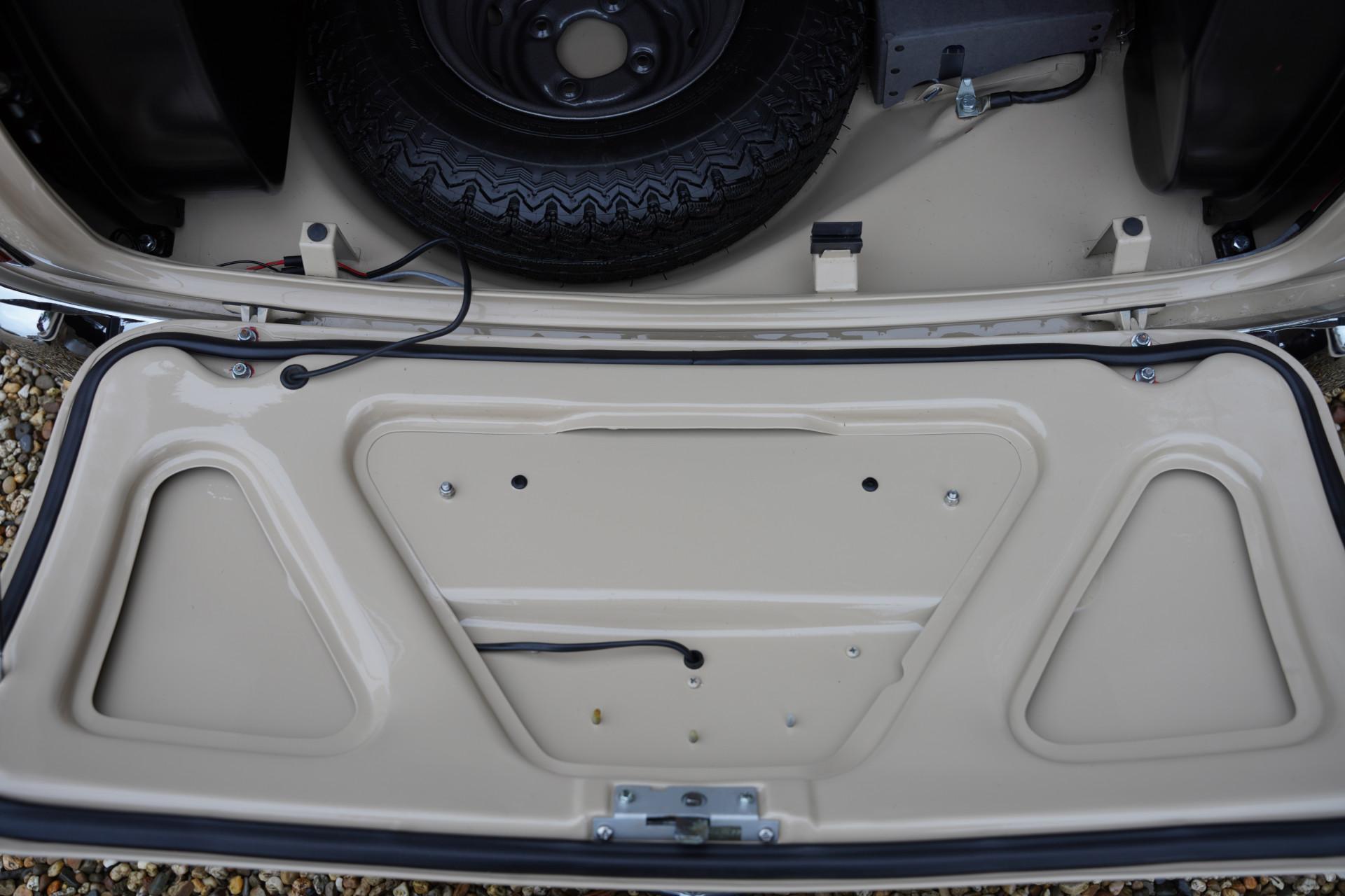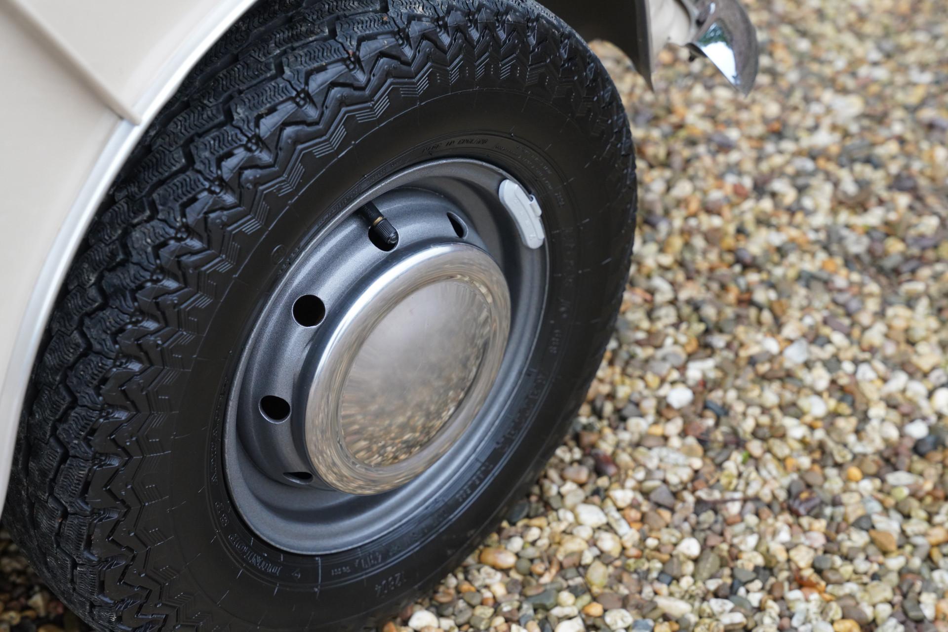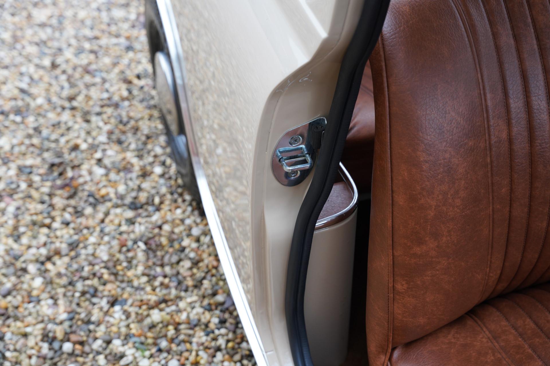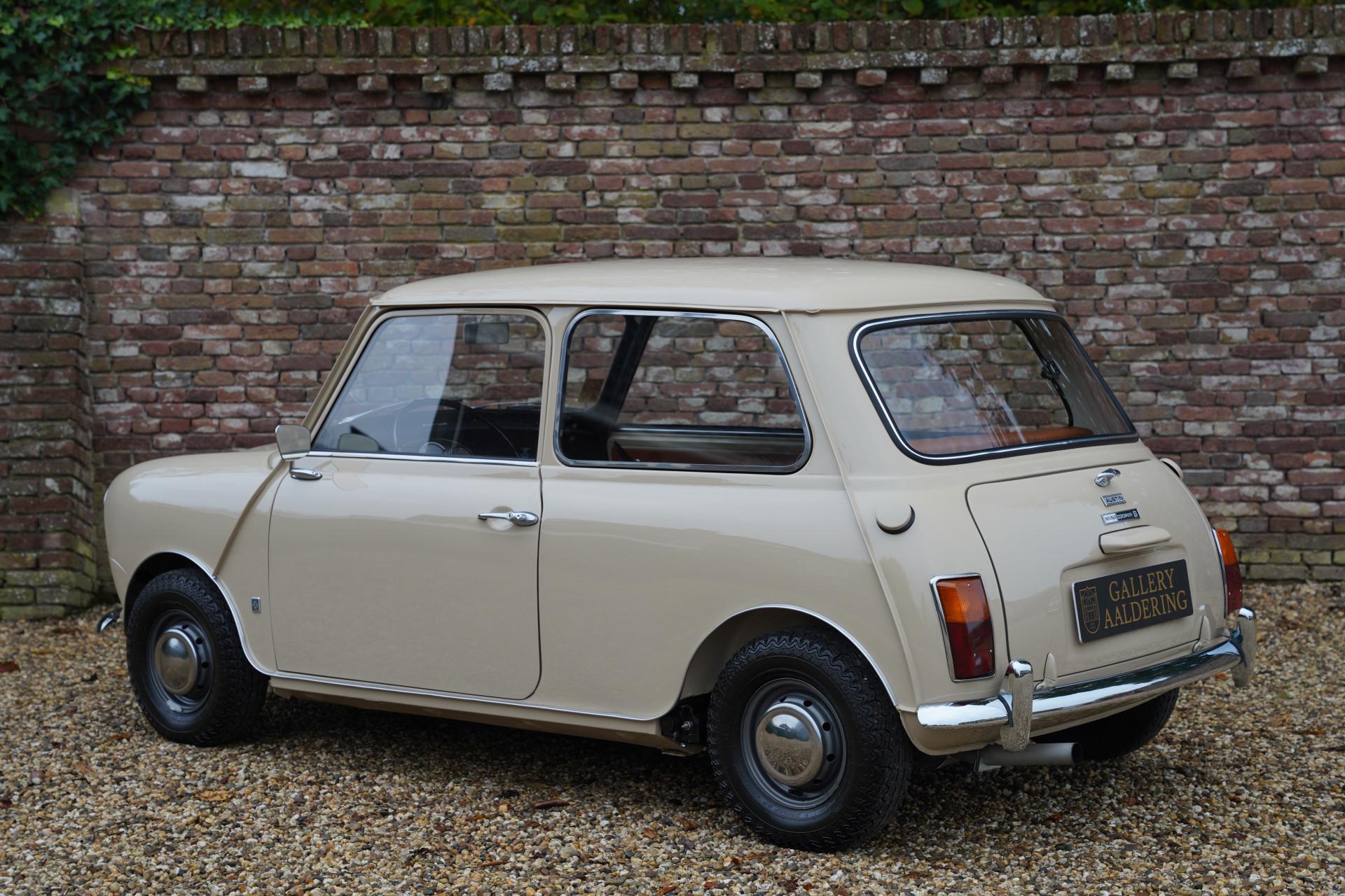 The entire car is immaculate. The exterior has been resprayed in the original color with which this Mini was delivered in 1970: Bedouin. With sleek sheet metal and beautiful chrome parts, the exterior is a beauty! The same goes for the interior. The original upholstery color, Autumn Leaf (what a beautiful name), is stunning, and everything has been completely renewed. As a result, the interior also looks magnificent.