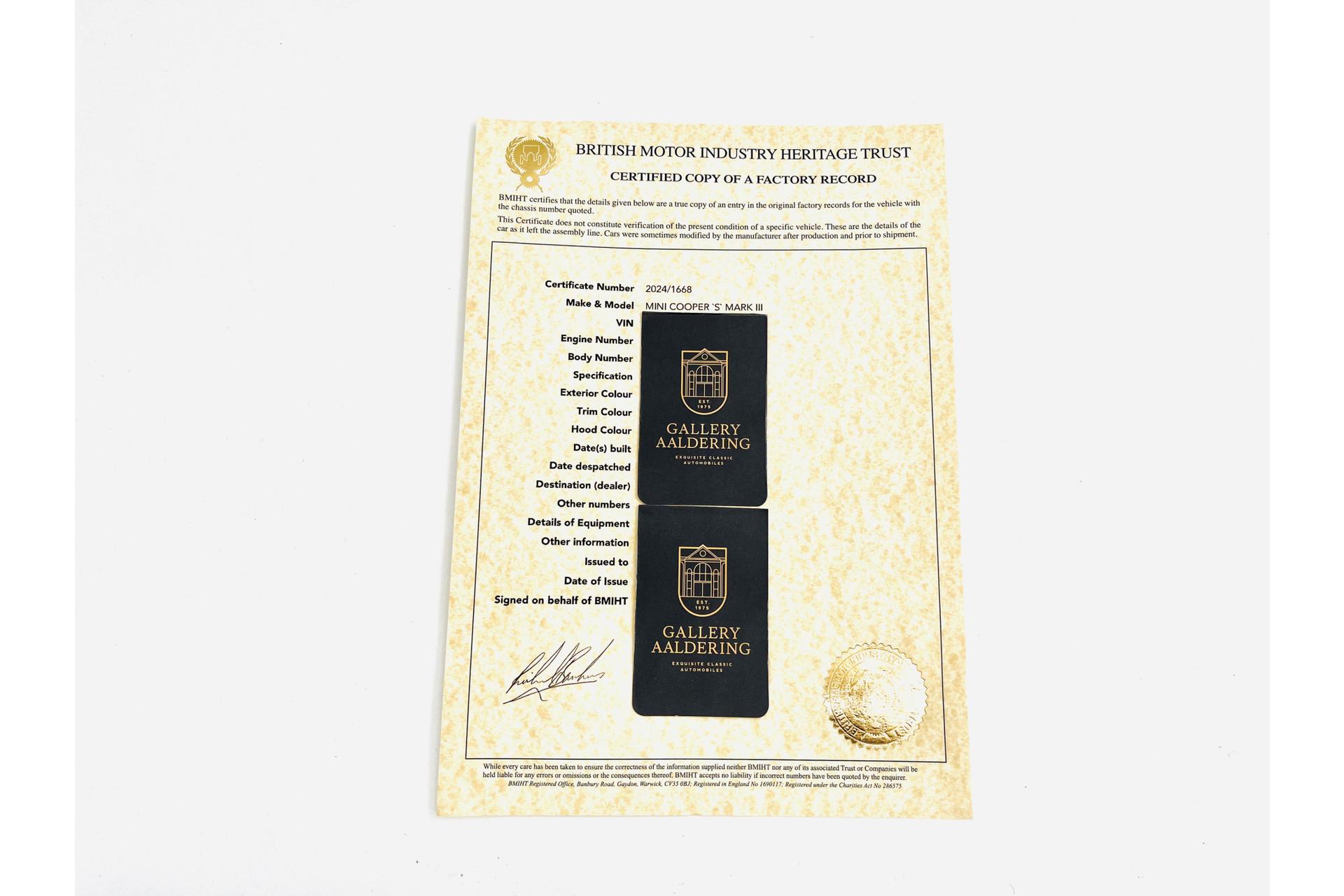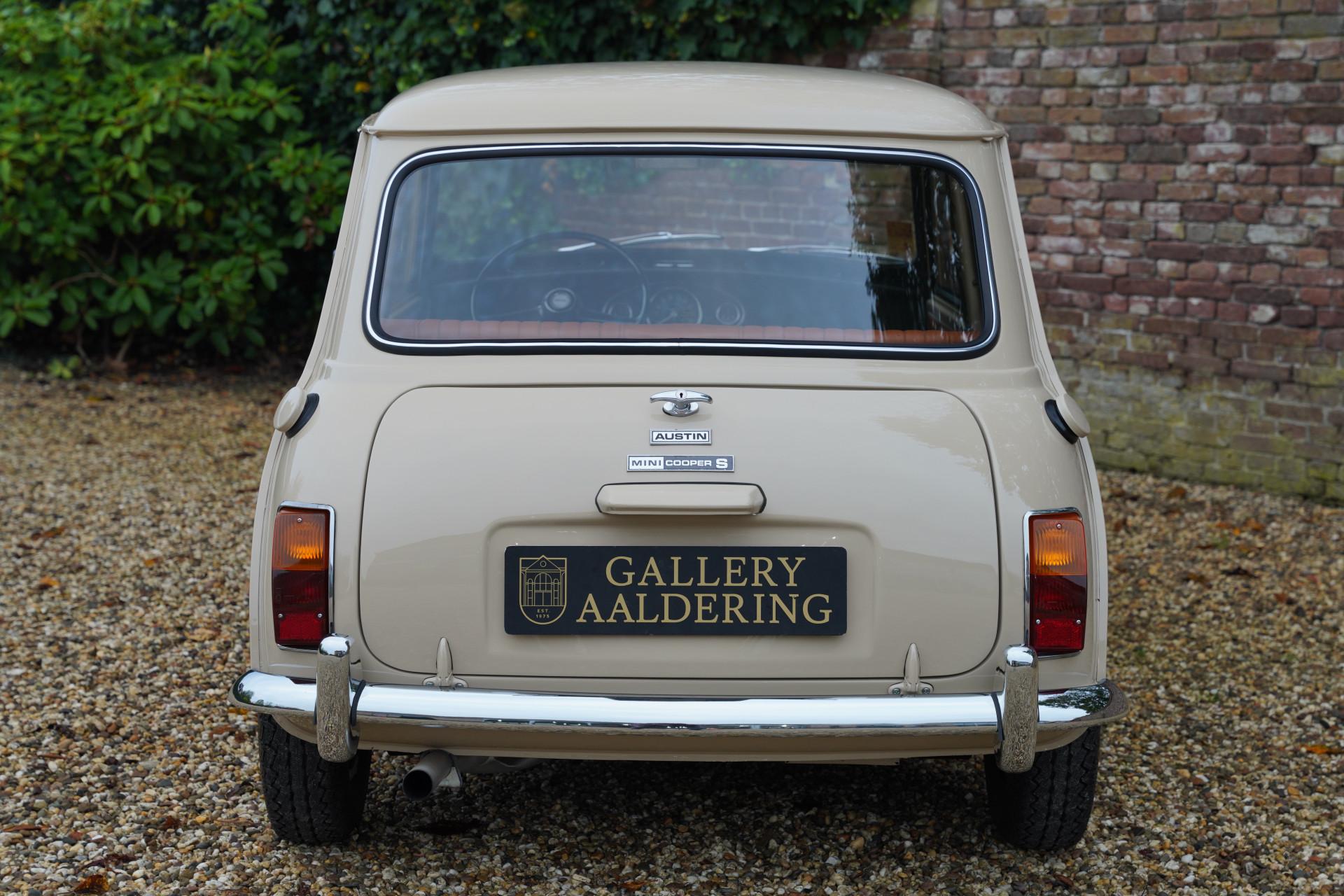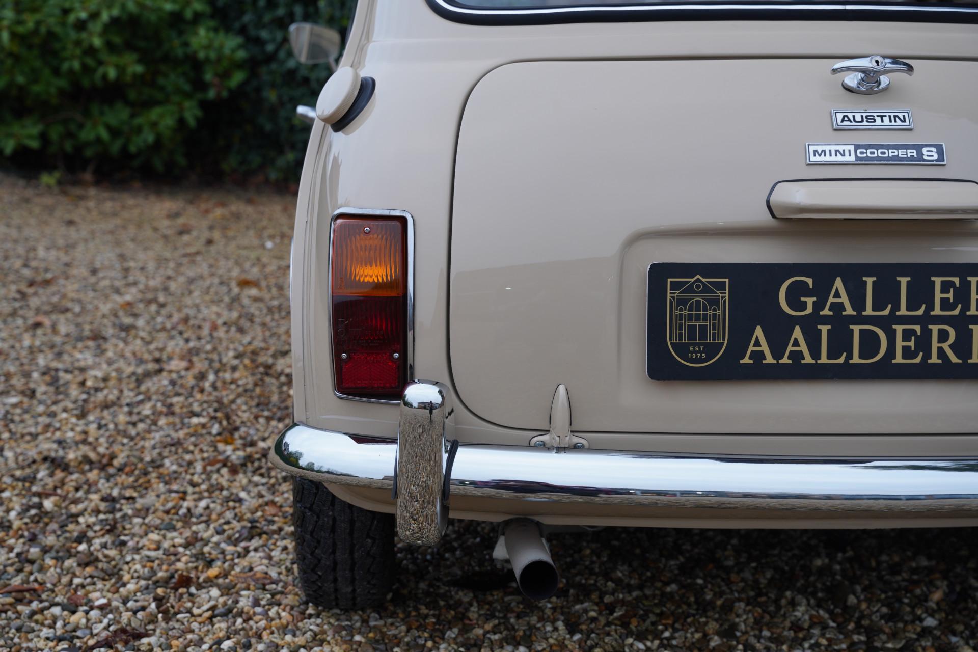 This Mini Cooper S is a stunning 1970 Cooper, fully restored to factory specifications. That means the restoration was carried out with meticulous attention to detail—and it shows! On our website, you can find several photos of the restoration that give a good impression of the work done. This also reveals that we provide this Mini with extensive documentation, including photos of the restoration and overhaul, as well as the British Heritage Certificate. The certificate makes it crystal clear that this Mini has matching numbers and features the correct color scheme as it left the factory.