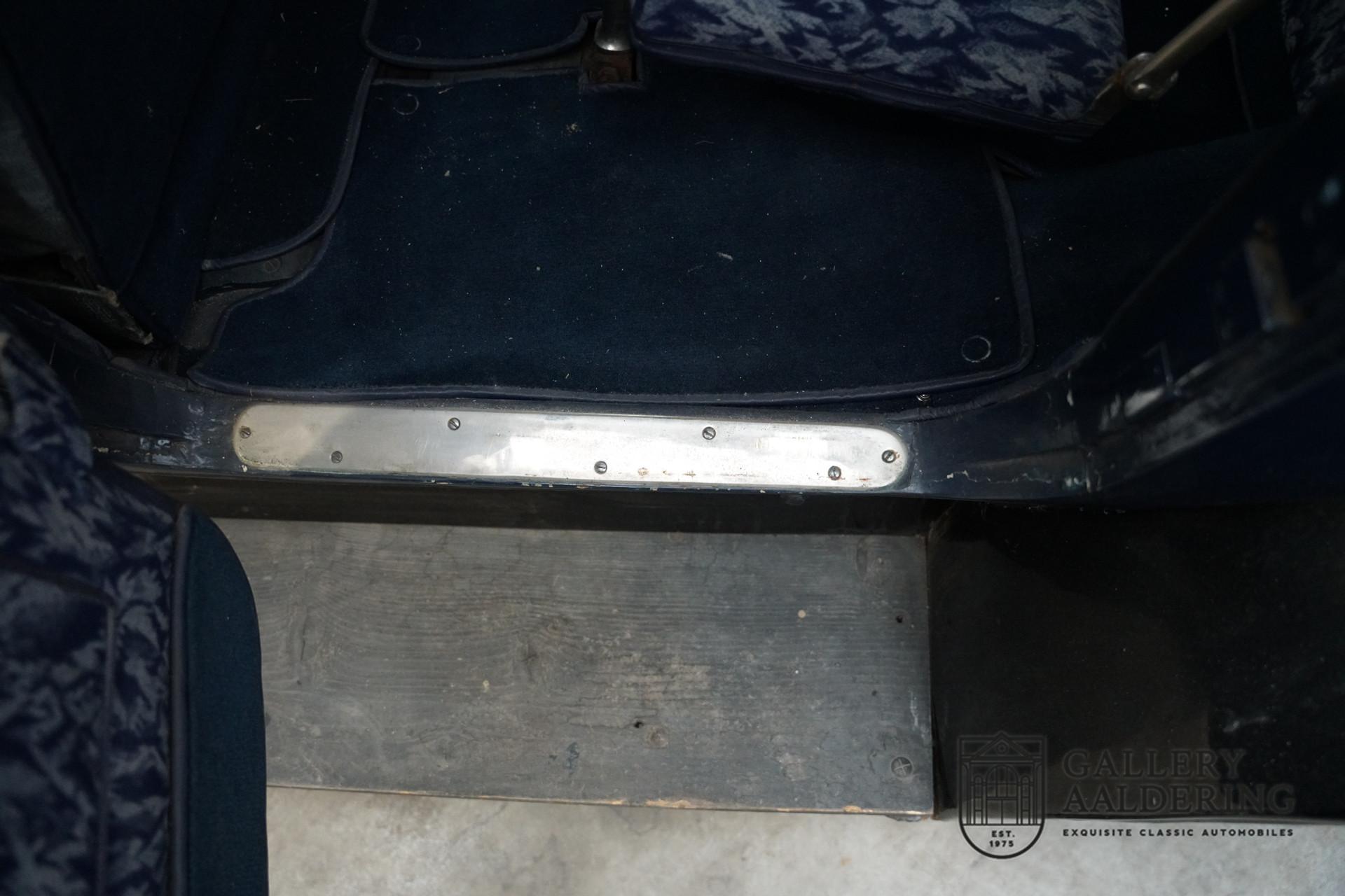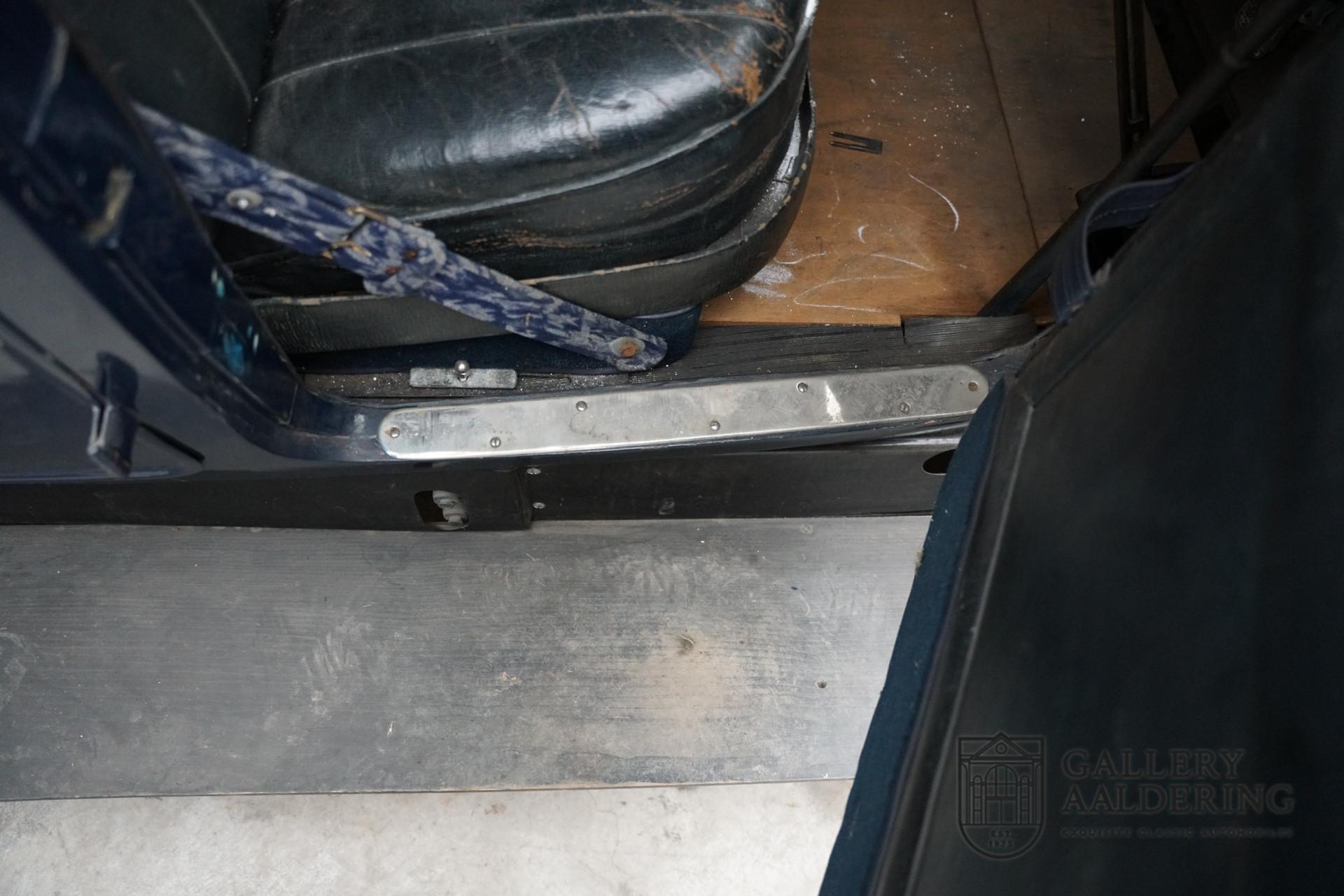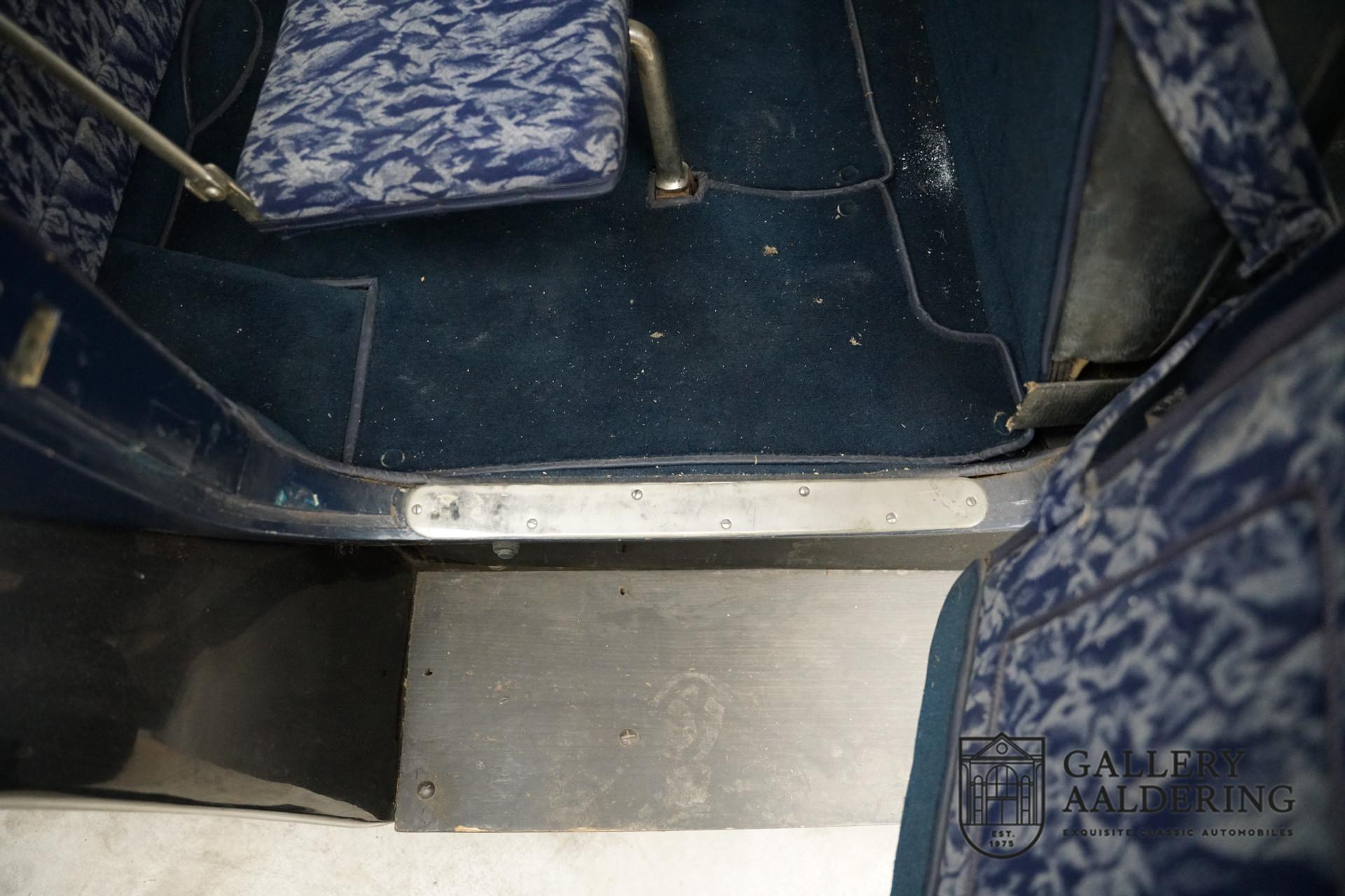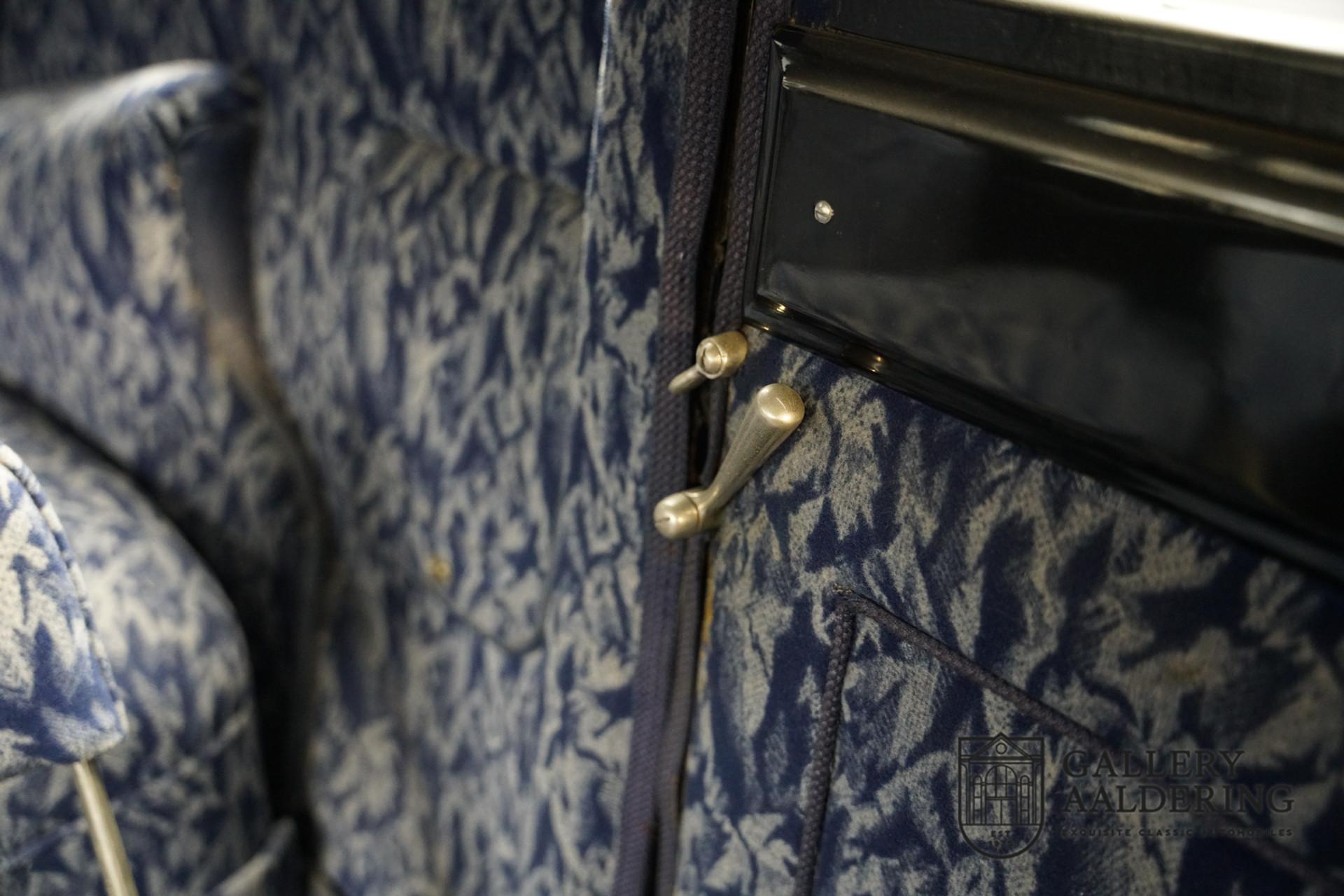 For its age, the bodywork is remarkably good shape. The car is even partly original with correct alignment. The C1 was given a blue finish at the time. The paintwork still looks good with only minor signs of the effect the years have had. The interior trim consists of black leather on the drivers and passengers seat with the typical Avions Voisin Art-Deco designed cloth upholstery in the back. It certainly creates an absolutely unique look. Just as special are the two little stool in front of the rear bench that doubles up as footstools for the rear passengers.