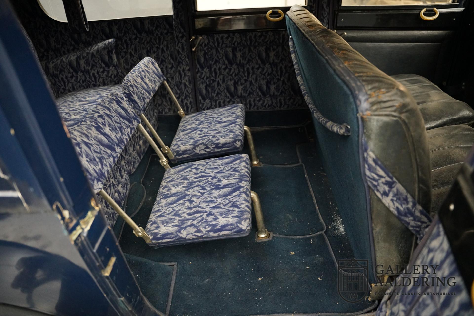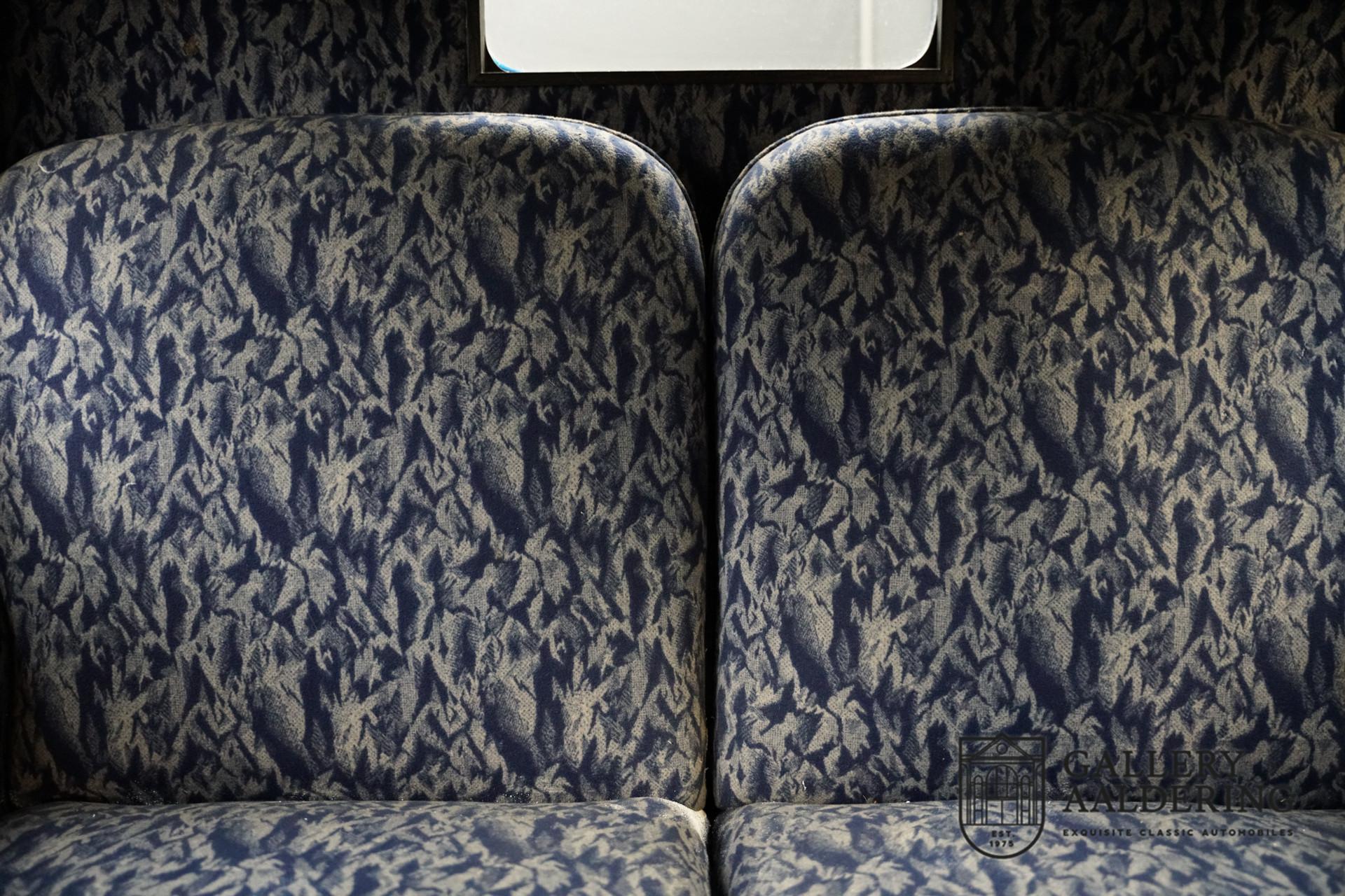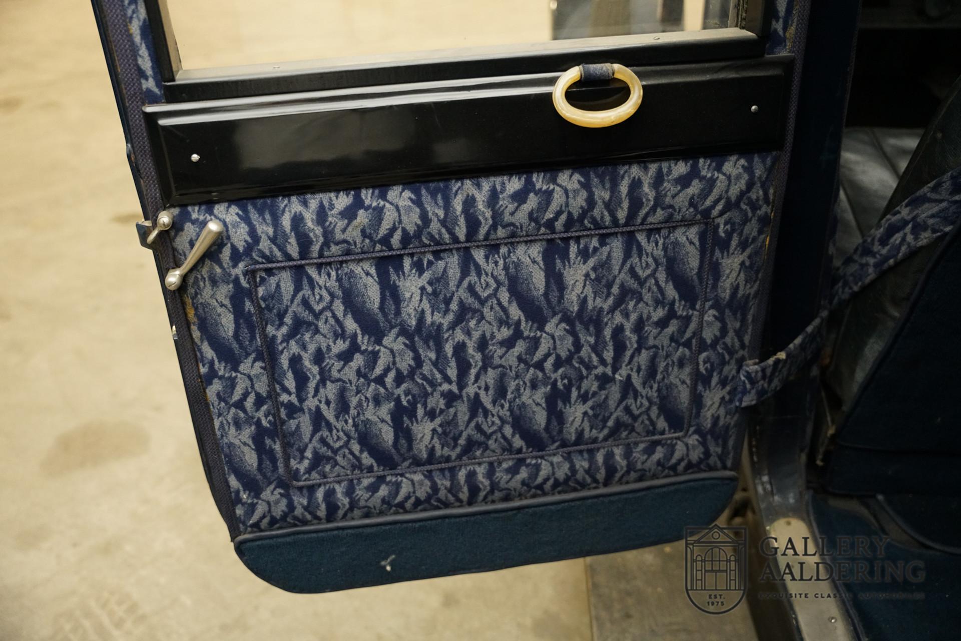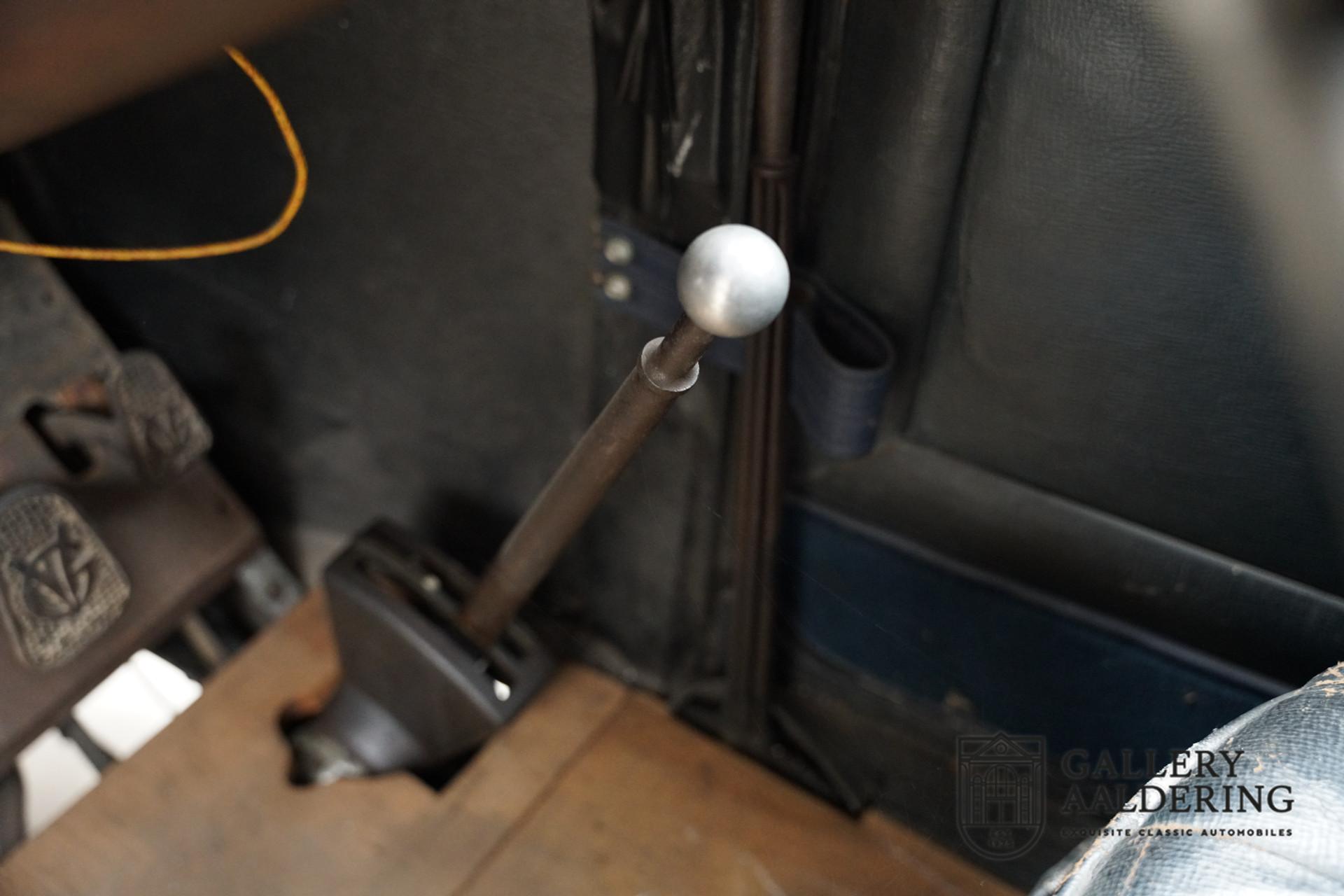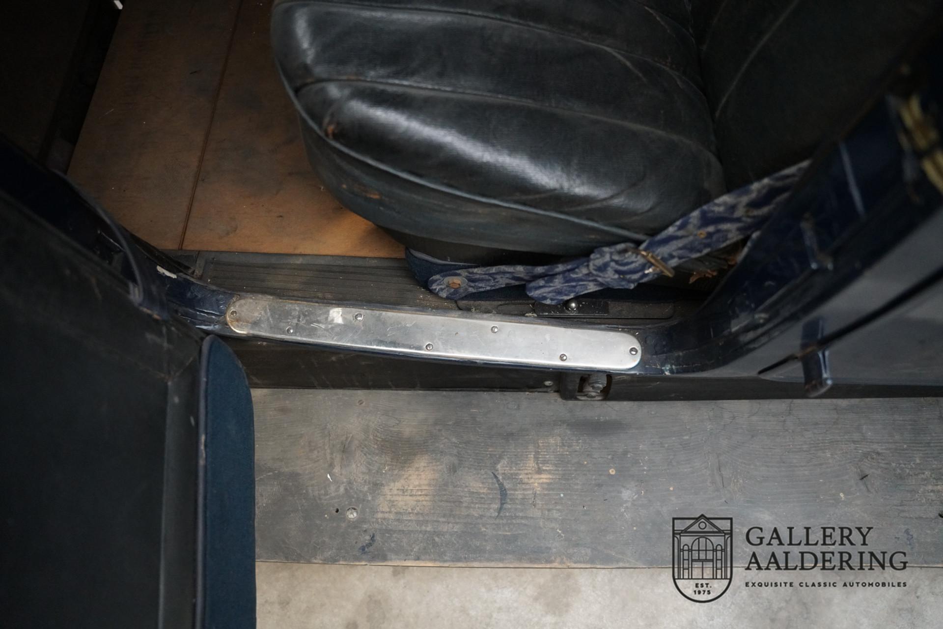 For its age, the bodywork is remarkably good shape. The car is even partly original with correct alignment. The C1 was given a blue finish at the time. The paintwork still looks good with only minor signs of the effect the years have had. The interior trim consists of black leather on the drivers and passengers seat with the typical Avions Voisin Art-Deco designed cloth upholstery in the back. It certainly creates an absolutely unique look. Just as special are the two little stool in front of the rear bench that doubles up as footstools for the rear passengers.