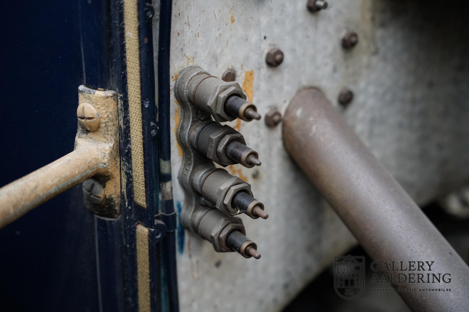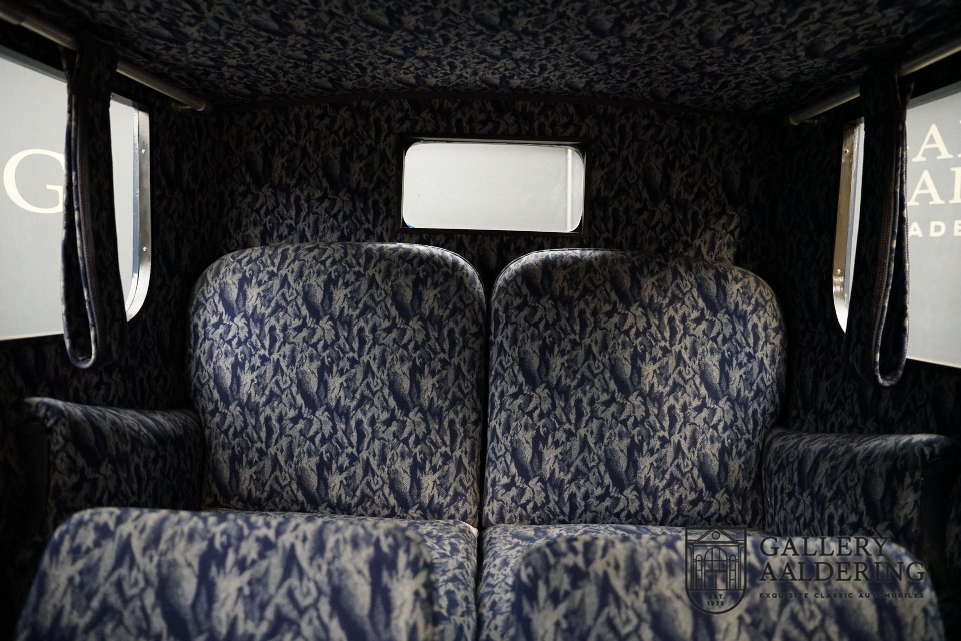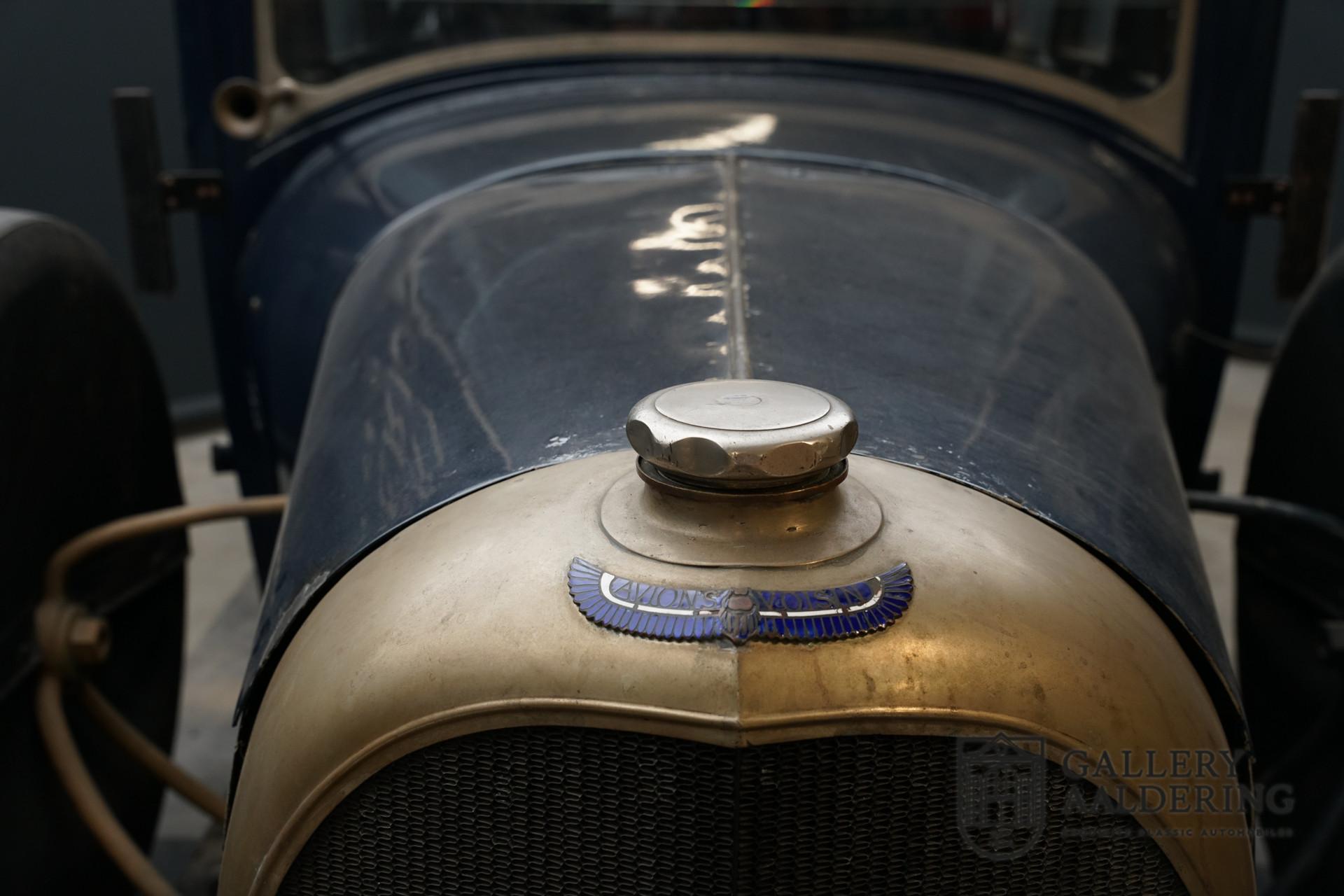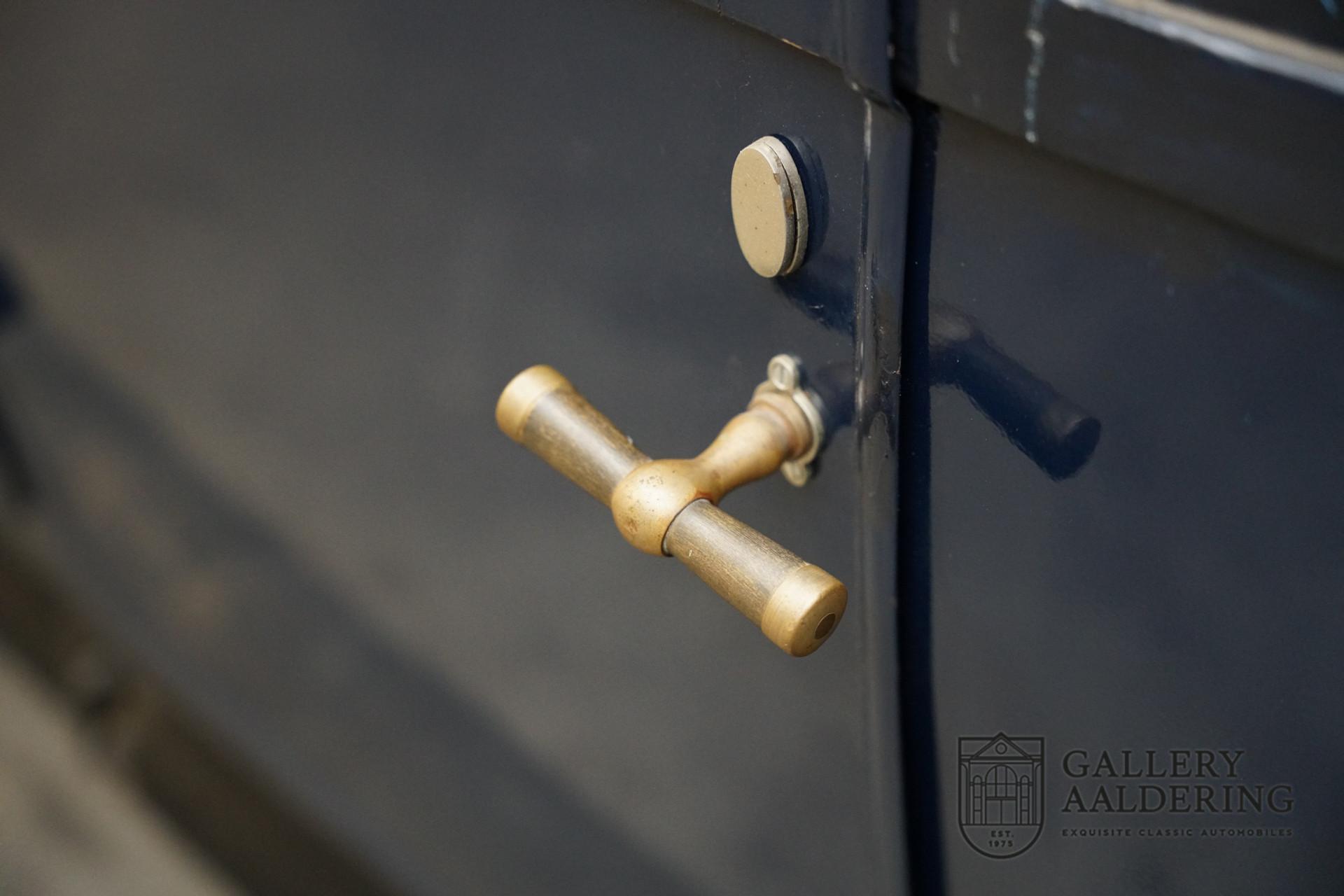 For its age, the bodywork is remarkably good shape. The car is even partly original with correct alignment. The C1 was given a blue finish at the time. The paintwork still looks good with only minor signs of the effect the years have had. The interior trim consists of black leather on the drivers and passengers seat with the typical Avions Voisin Art-Deco designed cloth upholstery in the back. It certainly creates an absolutely unique look. Just as special are the two little stool in front of the rear bench that doubles up as footstools for the rear passengers.