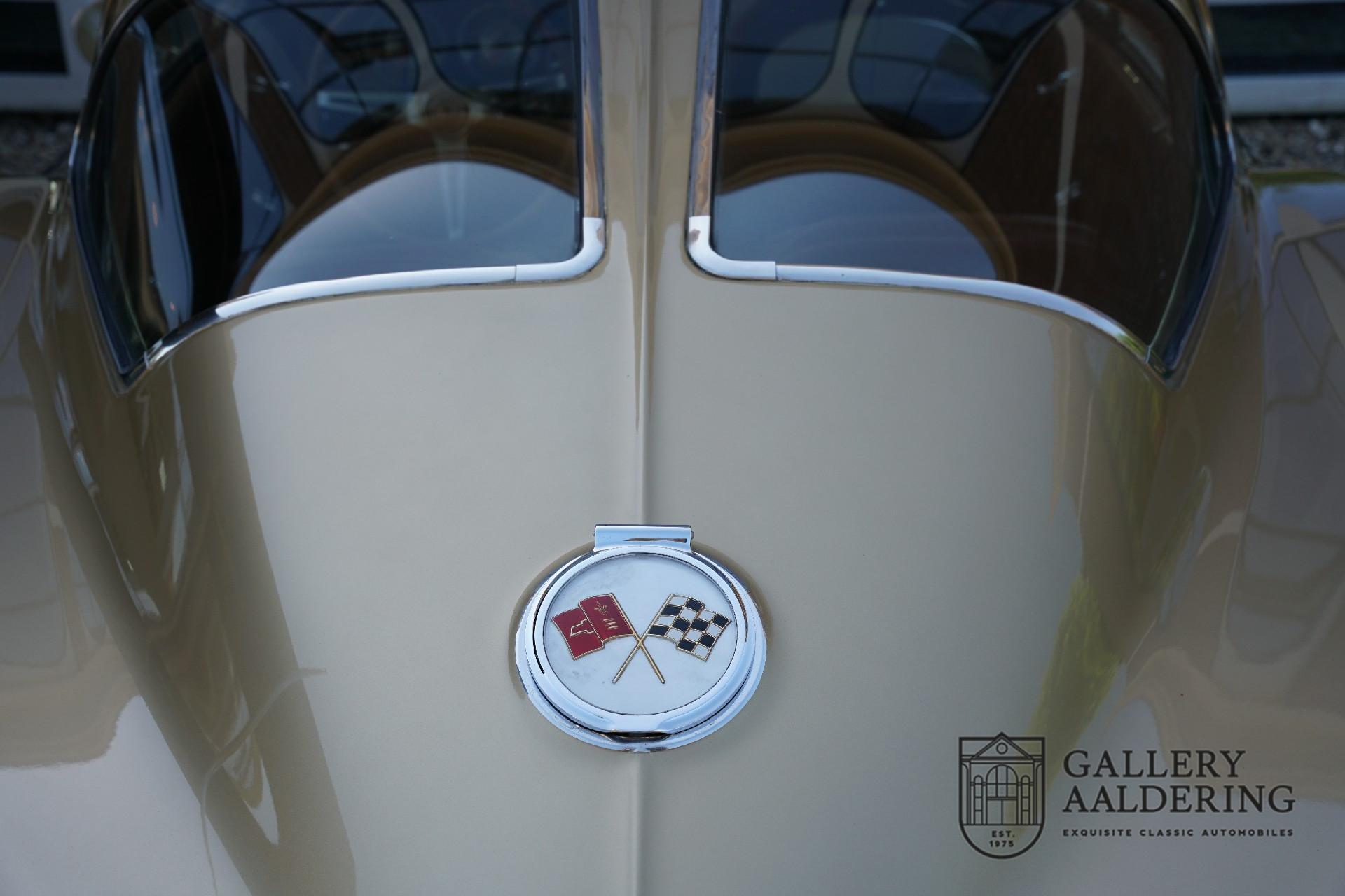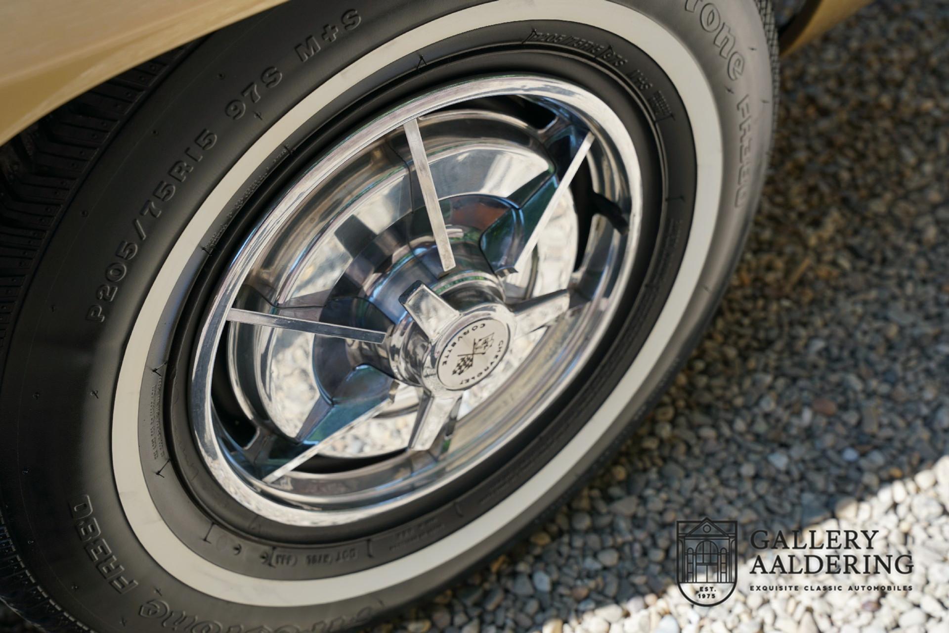 The inside of the Corvette was completely renewed during the restoration with great eye for originality. However, that is not what catches the eye the most when you open the door. This Chevrolet Corvette comes with the beloved four-speed manual transmission. In addition, the car is also equipped with an original Chevrolet radio. The headliner and dashboard also look beautiful. The seats were reupholstered with original vinyl at the time and the carpets were also completely refitted. The result is a beautifully cared-for interior that looks as if the car left the factory only a few years ago.
