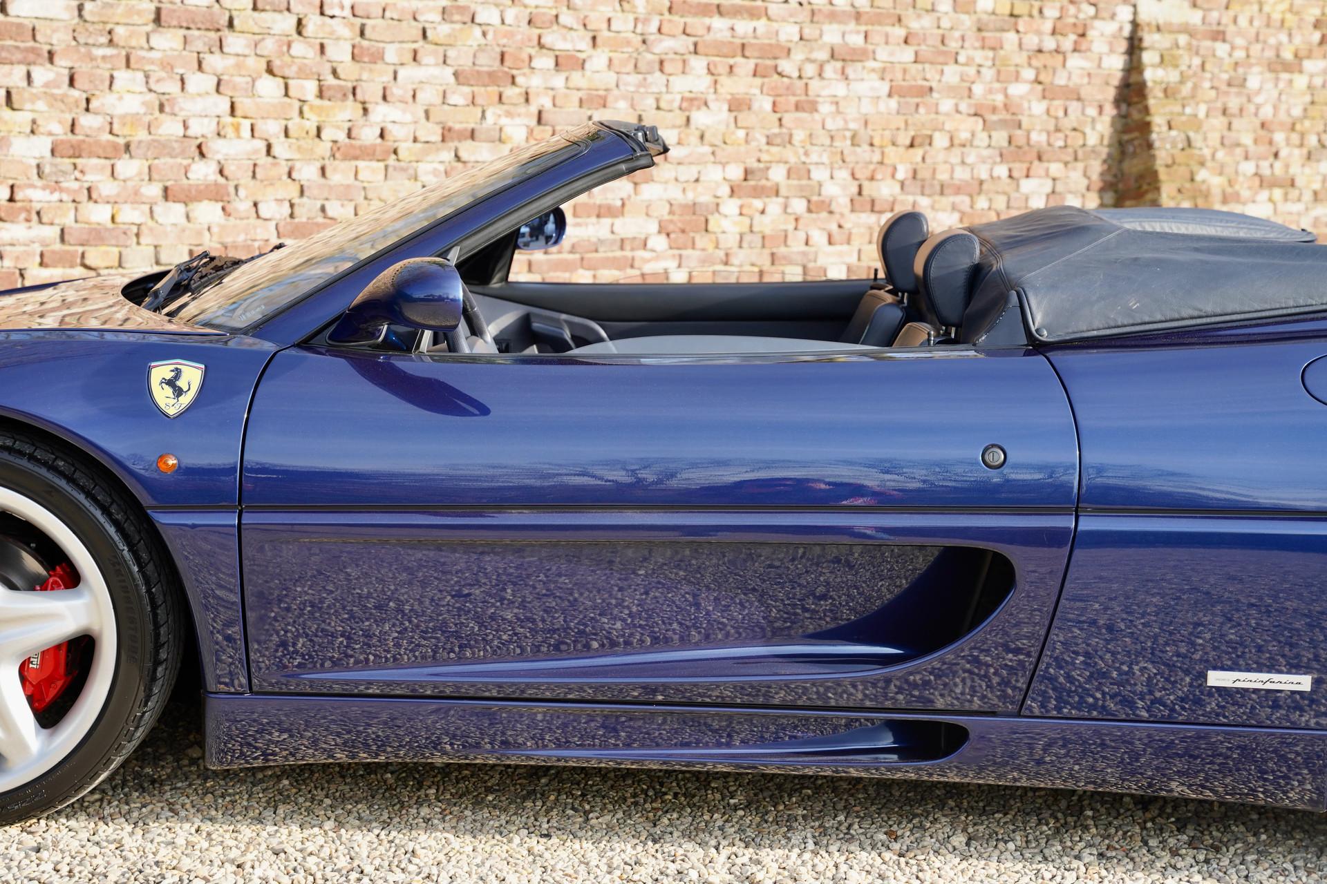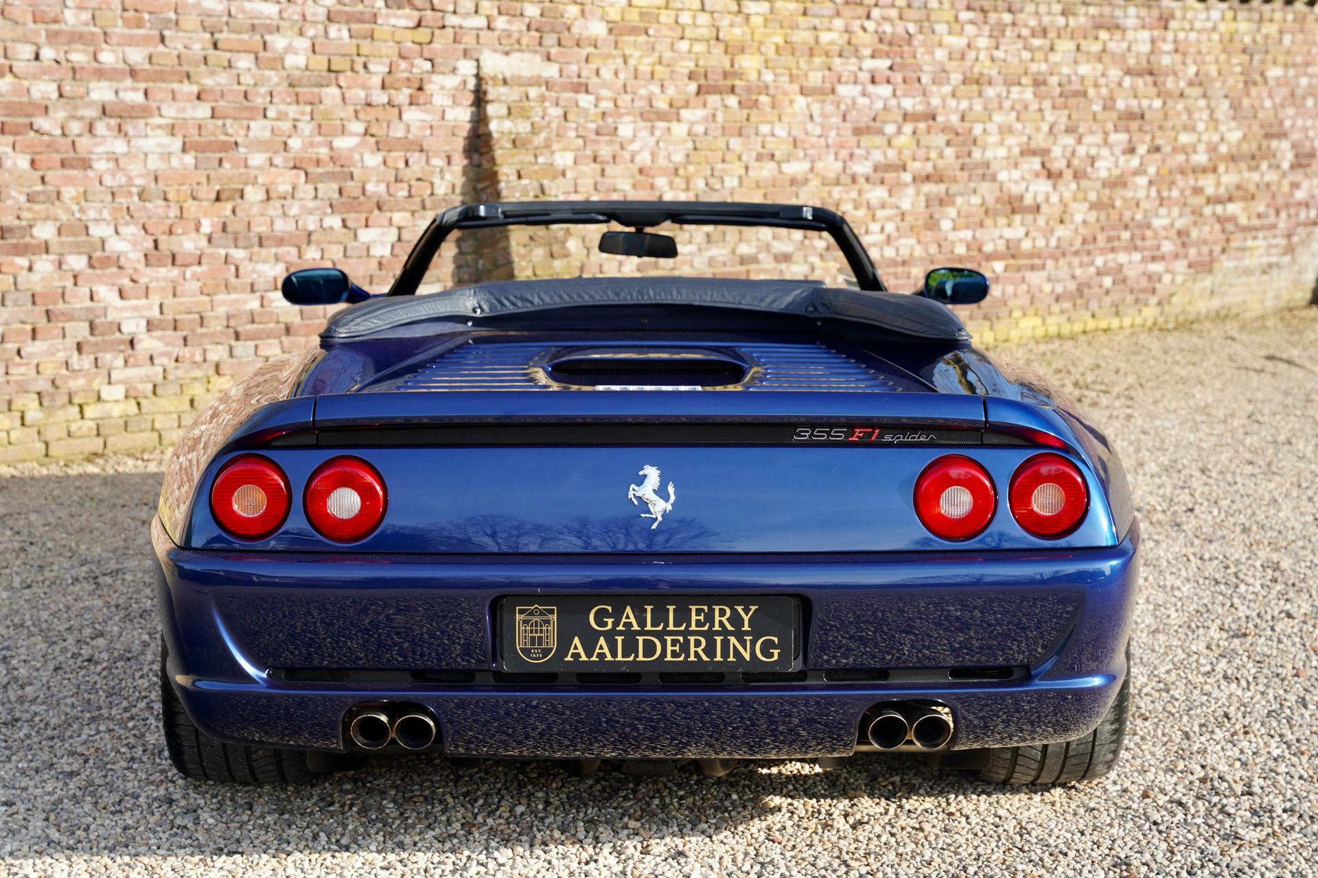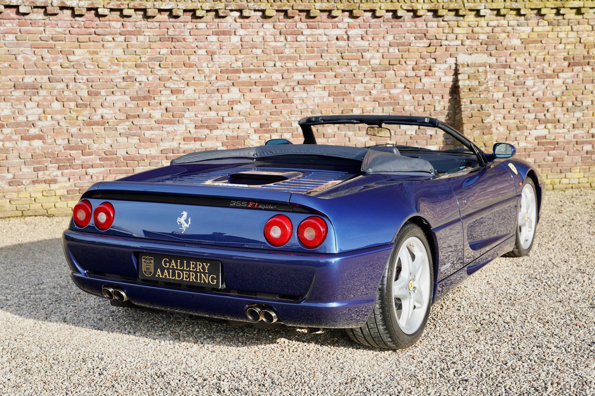 The Ferrari F355 Spider is the perfect example of the saying that fine wine gets better with age. And at Gallery Aaldering, we believe this holds true for this remarkable model. A stunning machine, with a color combination that makes it truly stand out—Blu Tour de France, perfectly complemented by a matching blue soft top. We always say the top should be down, but with this car, even with the top up, it's a beauty to behold!