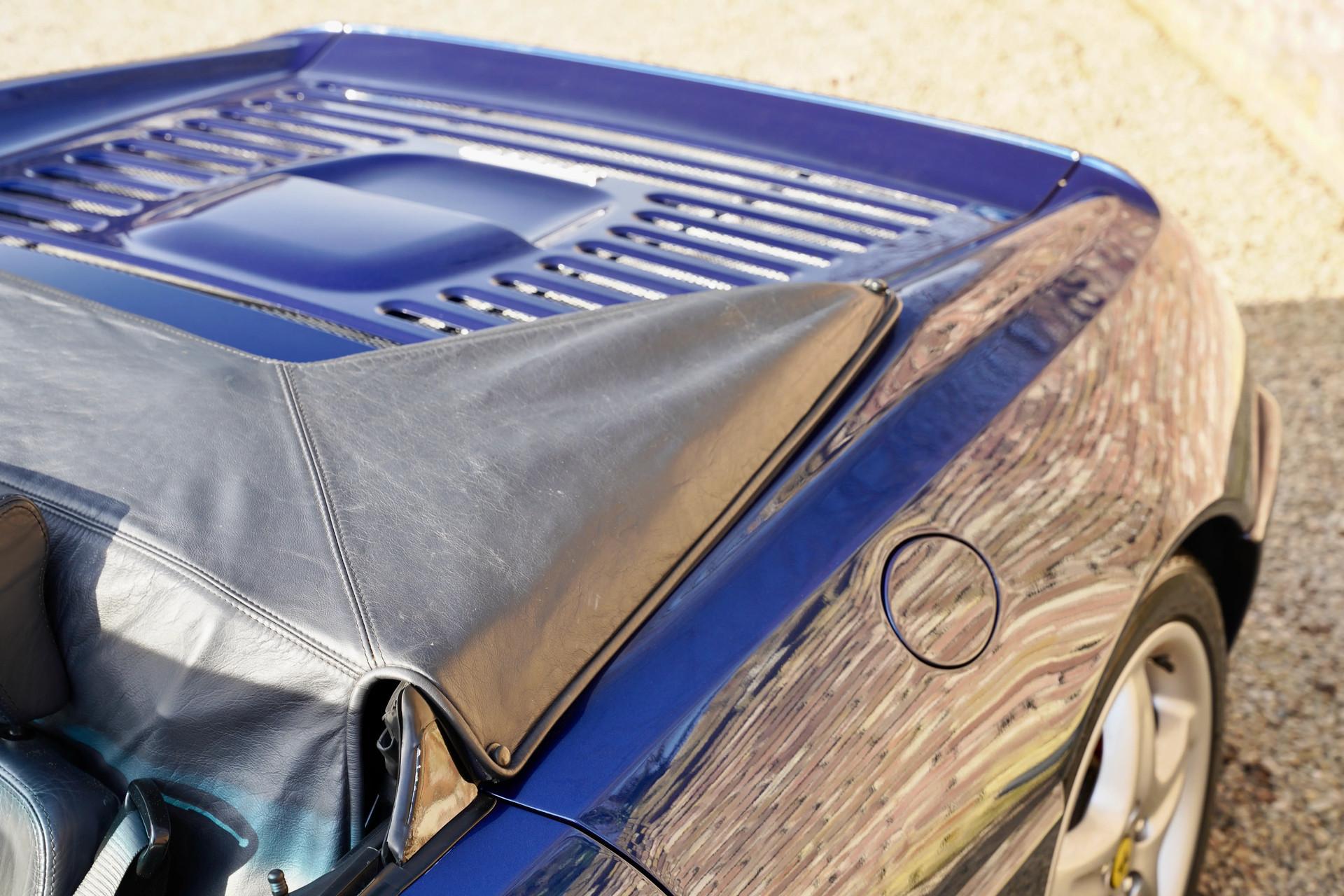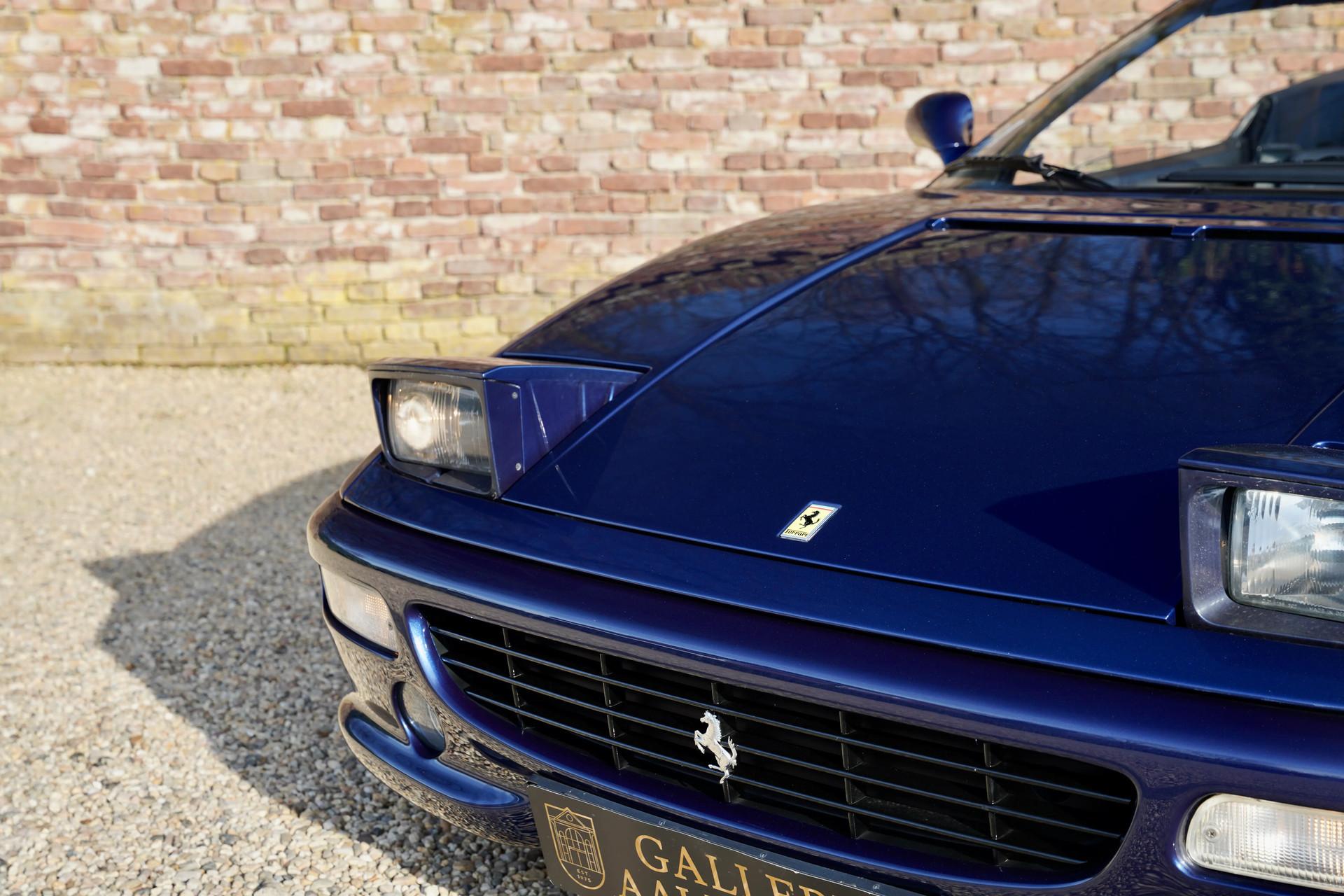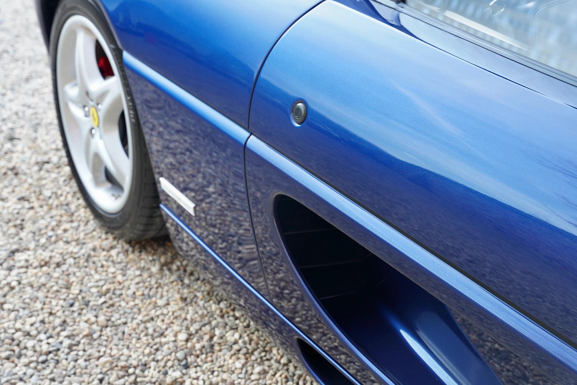 The Ferrari F355 Spider is the perfect example of the saying that fine wine gets better with age. And at Gallery Aaldering, we believe this holds true for this remarkable model. A stunning machine, with a color combination that makes it truly stand out—Blu Tour de France, perfectly complemented by a matching blue soft top. We always say the top should be down, but with this car, even with the top up, it's a beauty to behold!
