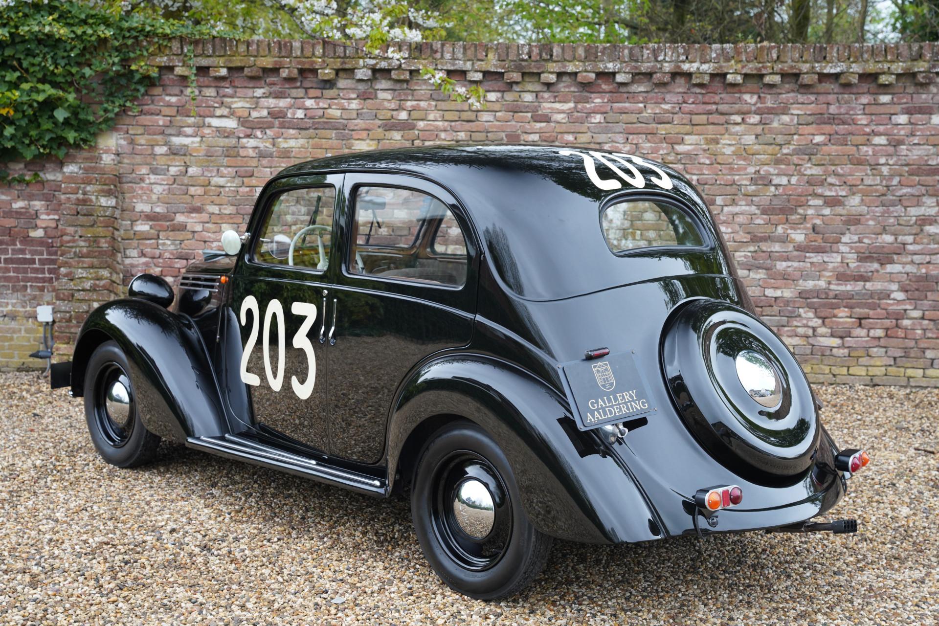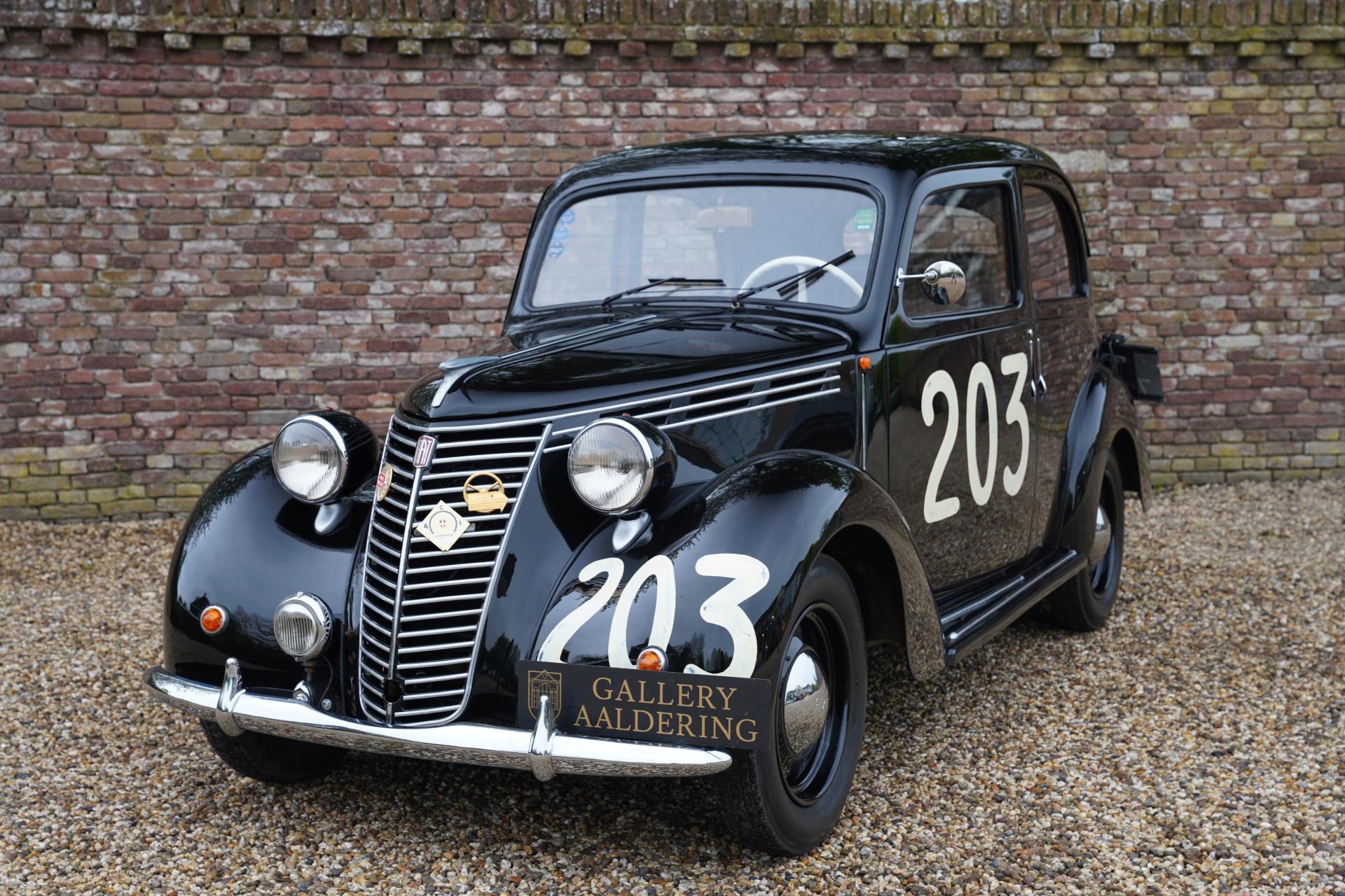 What makes it special? This very car competed in the 1949 Mille Miglia, the most legendary road race in the world. It completed the full route and crossed the finish line in a respectable 120th overall and 37th in class. That alone makes it a rolling piece of automotive history.