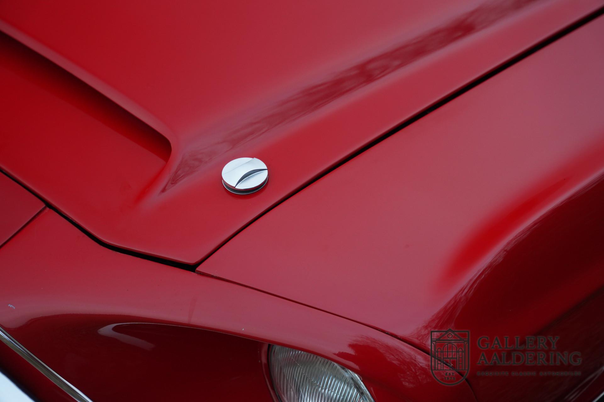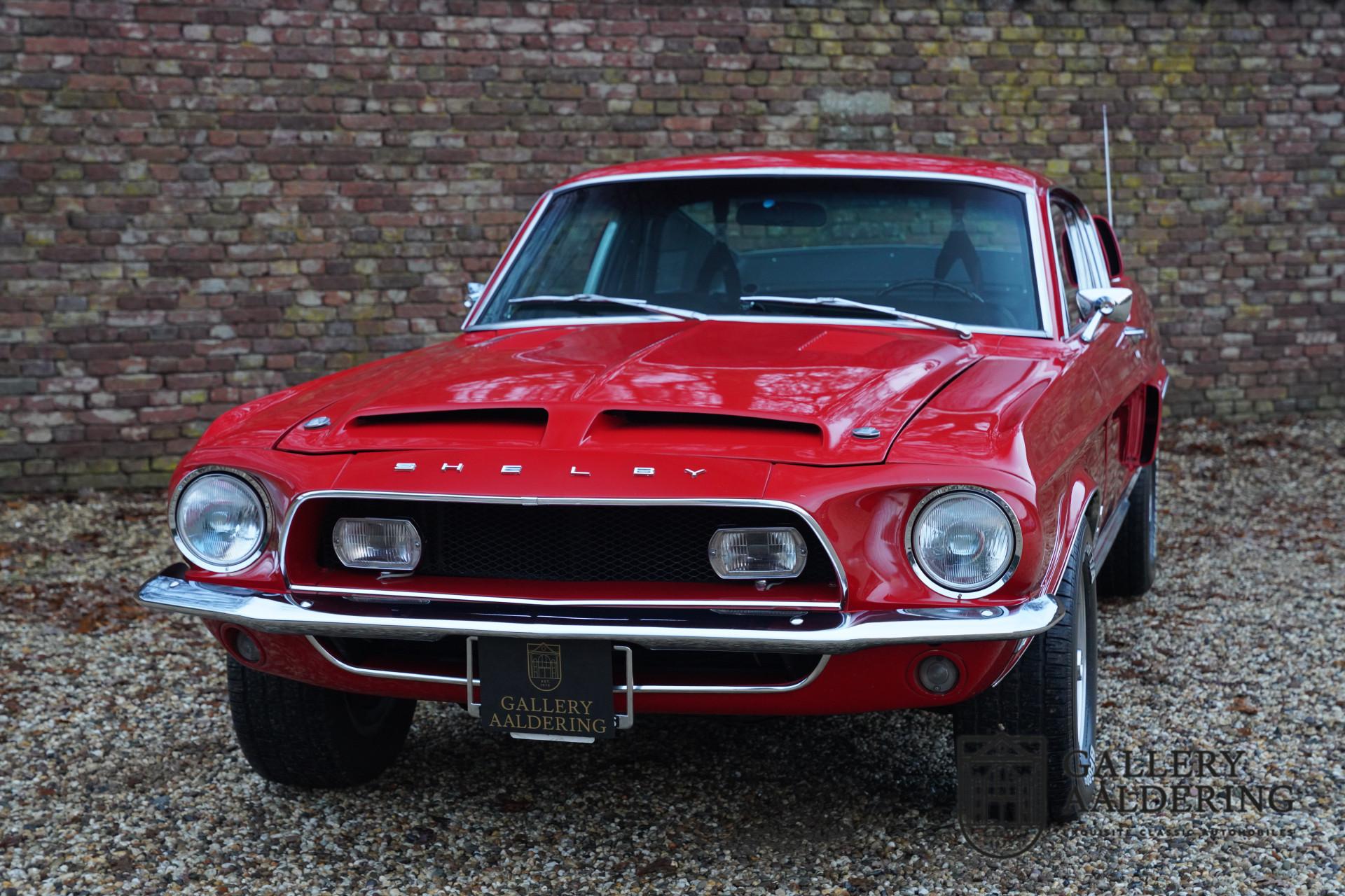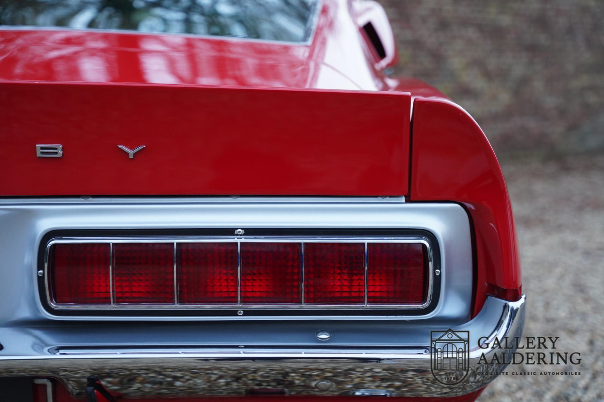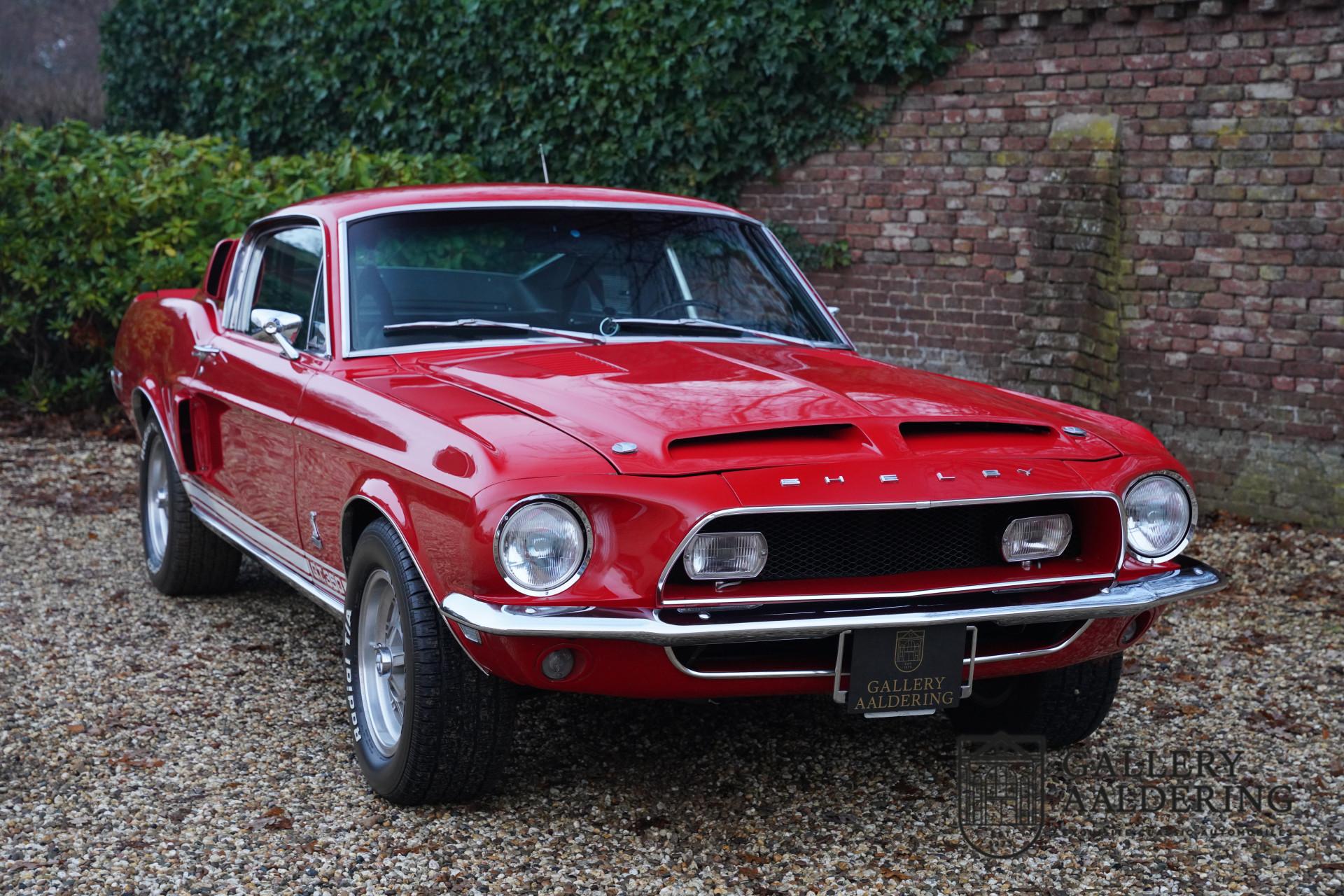 The example offered here, a stunning red 1968 Shelby GT350, is the ultimate specimen in a fantastic color scheme and in excellent condition. Painted in the eye-catching and classic Candy Apple Red and adorned with original Cobra logos, this car exudes both pure power and elegance. The bodywork has been perfectly restored, featuring the signature Shelby details such as the lightweight hood with air vents, the optional ten-spoke wheels, and the original striping. The details are spot-on, ensuring that this example has the correct appearance, which is so important for a car of this caliber.