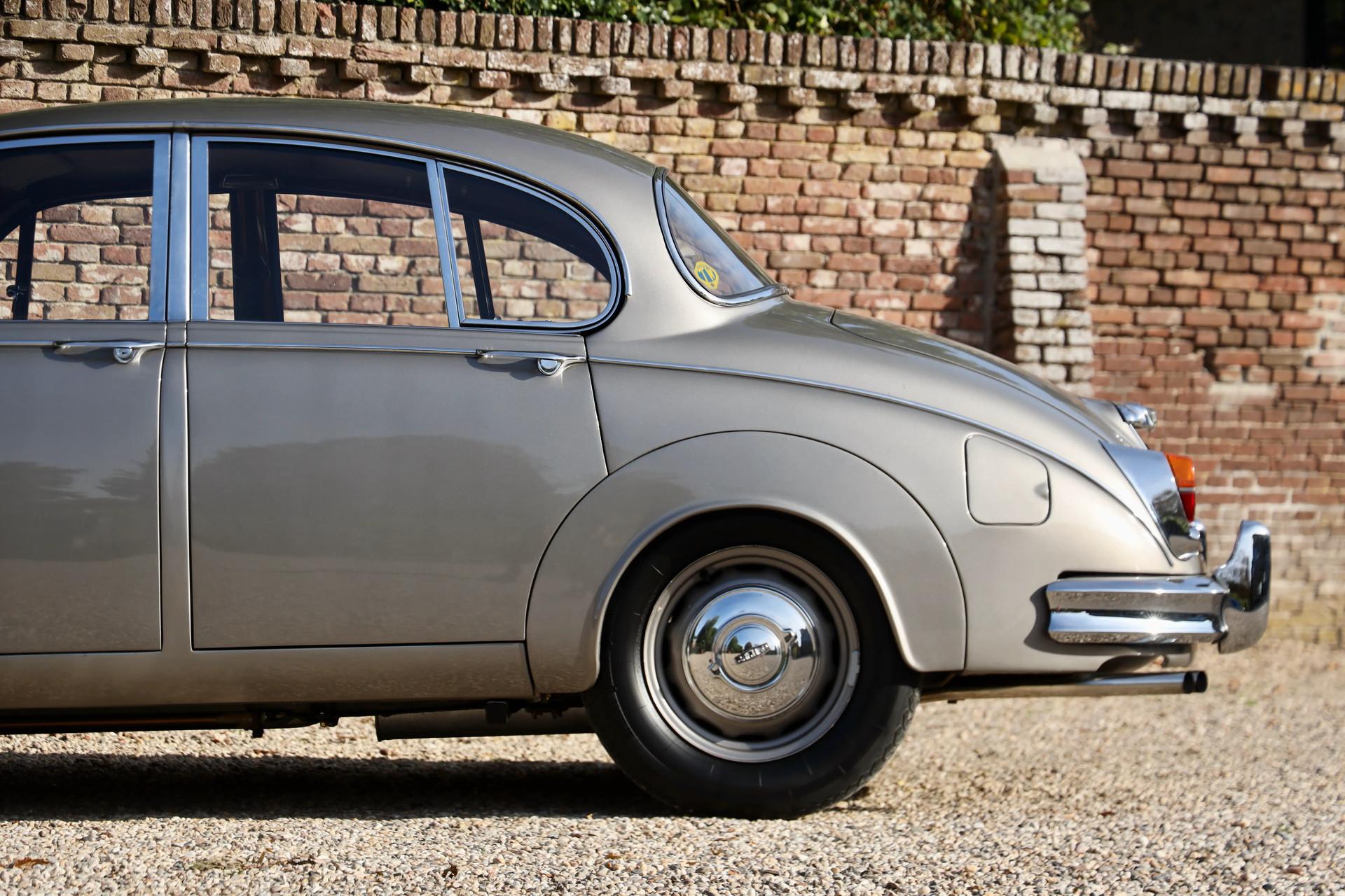 Twin SU carburetors ensure smooth engine performance, and paired with the manual gearbox, the driving experience feels mechanical, tactile, and deeply engaging. Turn the key, and the full-bodied exhaust note is unmistakably Jaguar—not harsh or raw, but a constant reminder of the engine's ample reserves. The MK 2 will cruise along effortlessly, yet press the accelerator with intent, and it reveals itself as a born sprinter. The engine in this particular example runs beautifully and delivers a wonderfully satisfying drive.