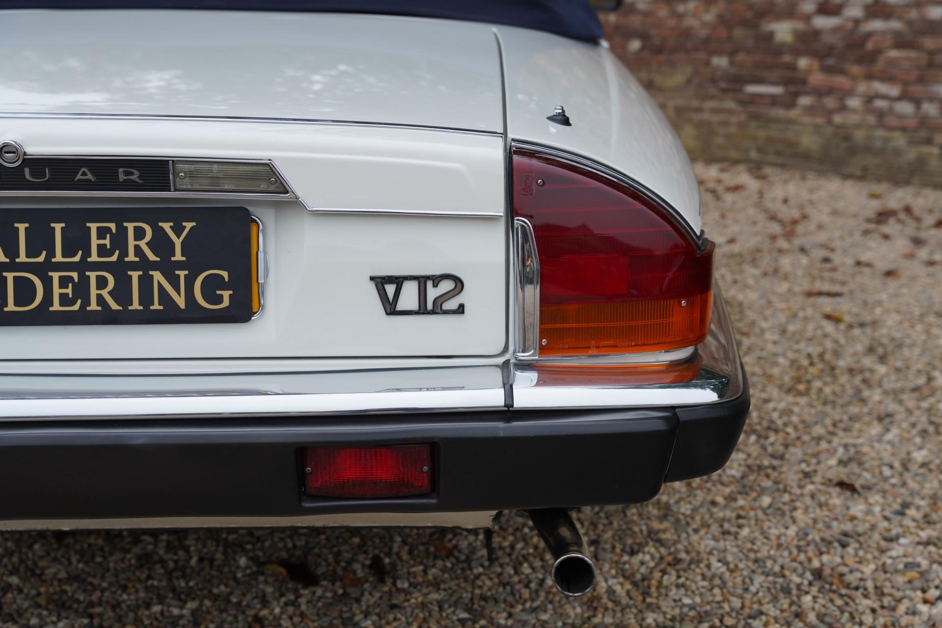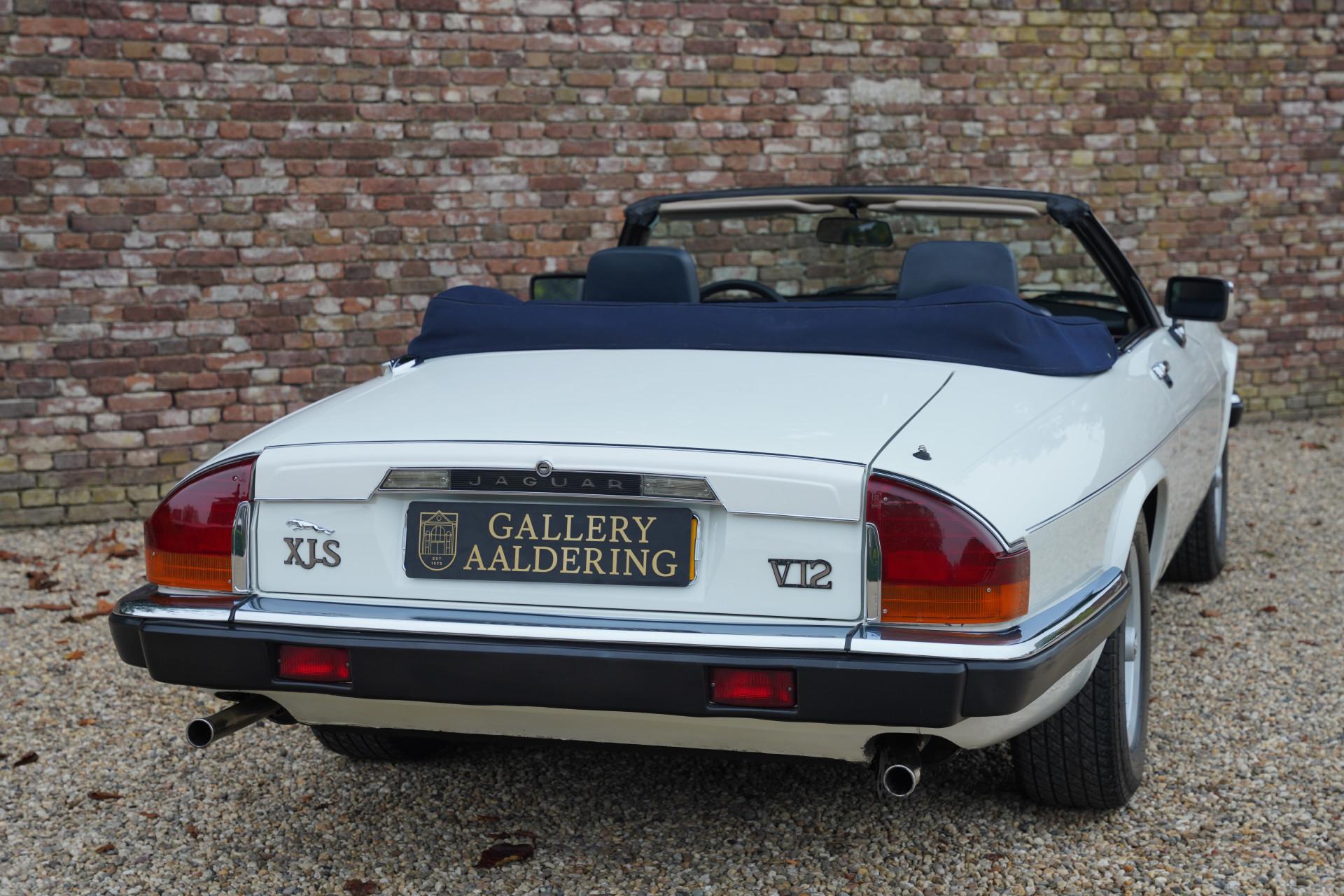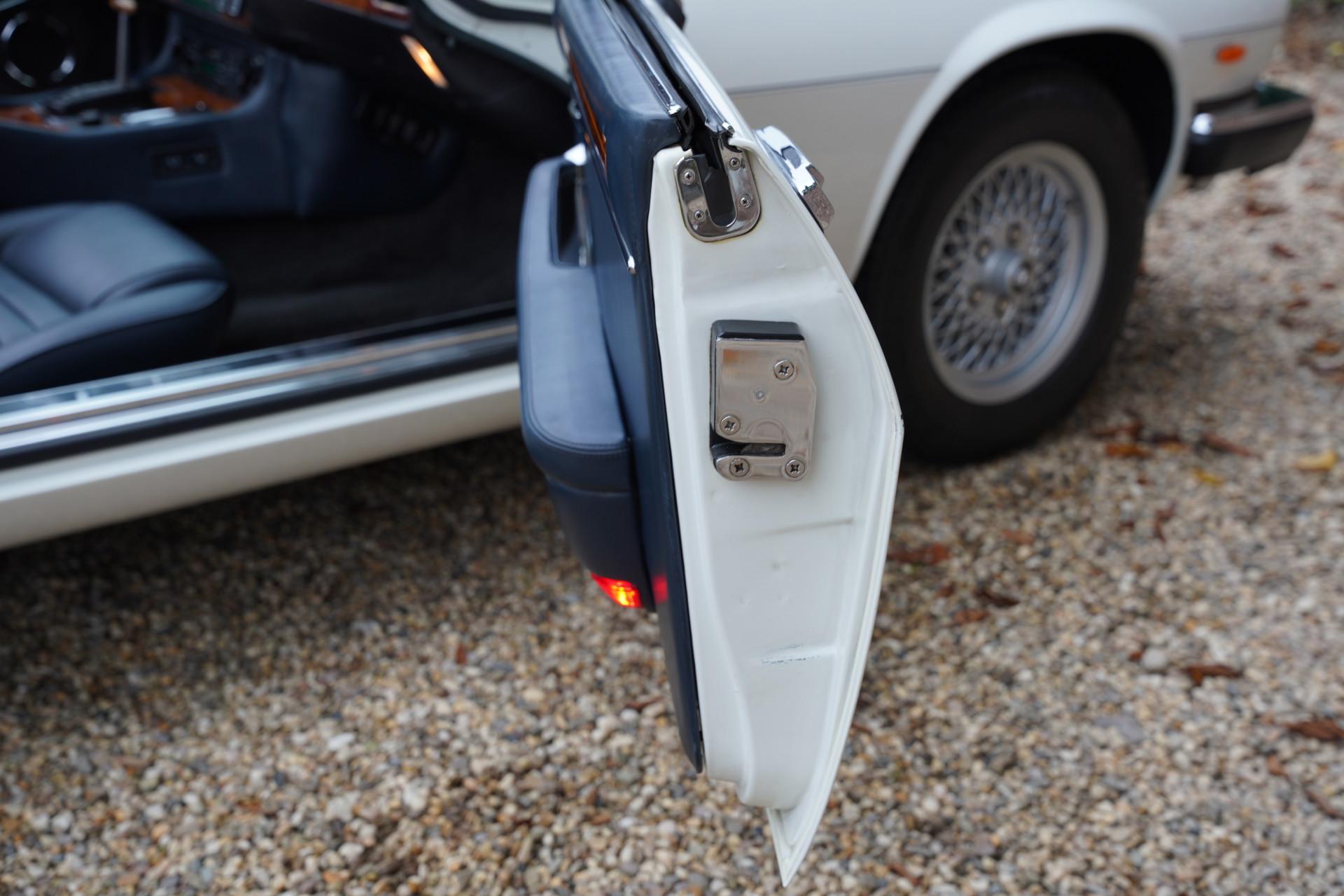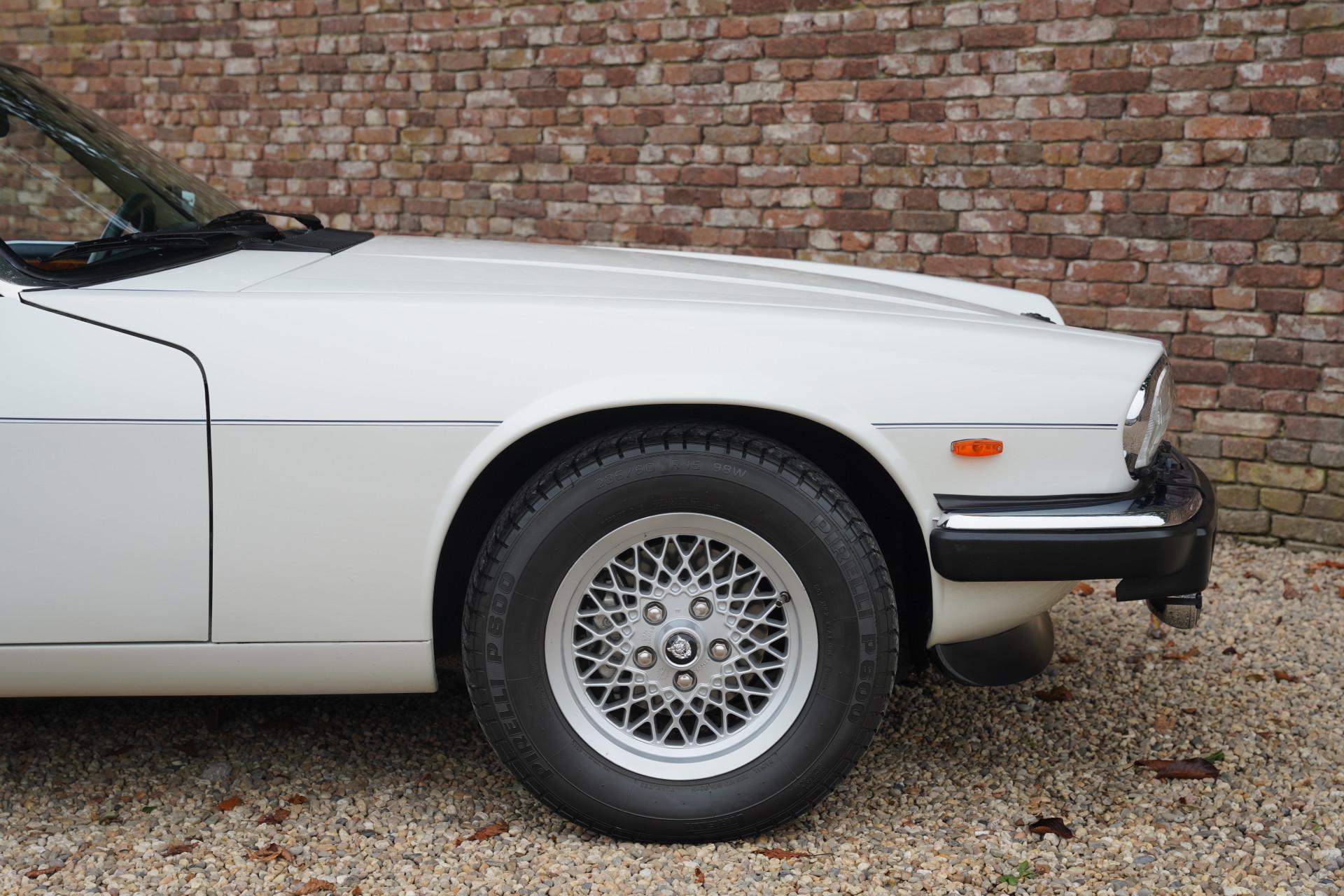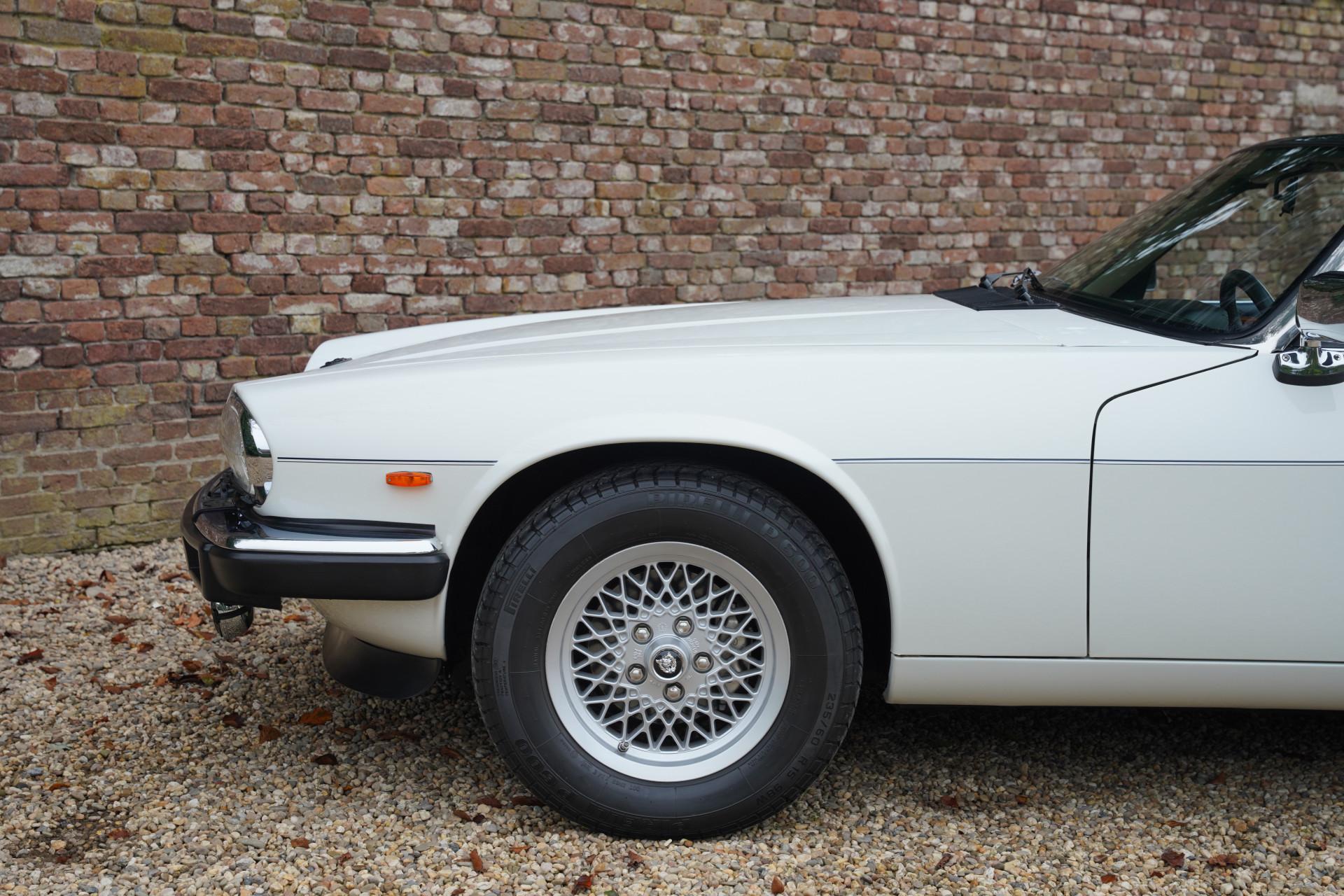 This Jaguar XJS was originally delivered in Germany and has always enjoyed careful maintenance by its few owners. The car comes with the original leather storage pouch with manuals. The beautiful blue soft top is in perfect condition and forms a splendid combination with the white bodywork. The interior is impressively well-maintained; the leather upholstery looks very fresh and soft, the controls are in excellent condition, and even the carpets look like new, further emphasizing the high-quality state of this car. Extra comfort is provided by the seat heating, making this convertible not only stylish but also practical for all seasons.