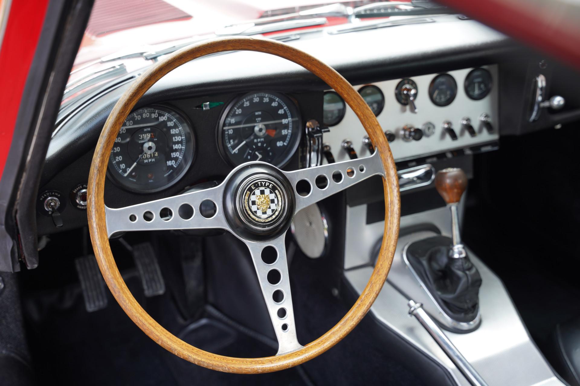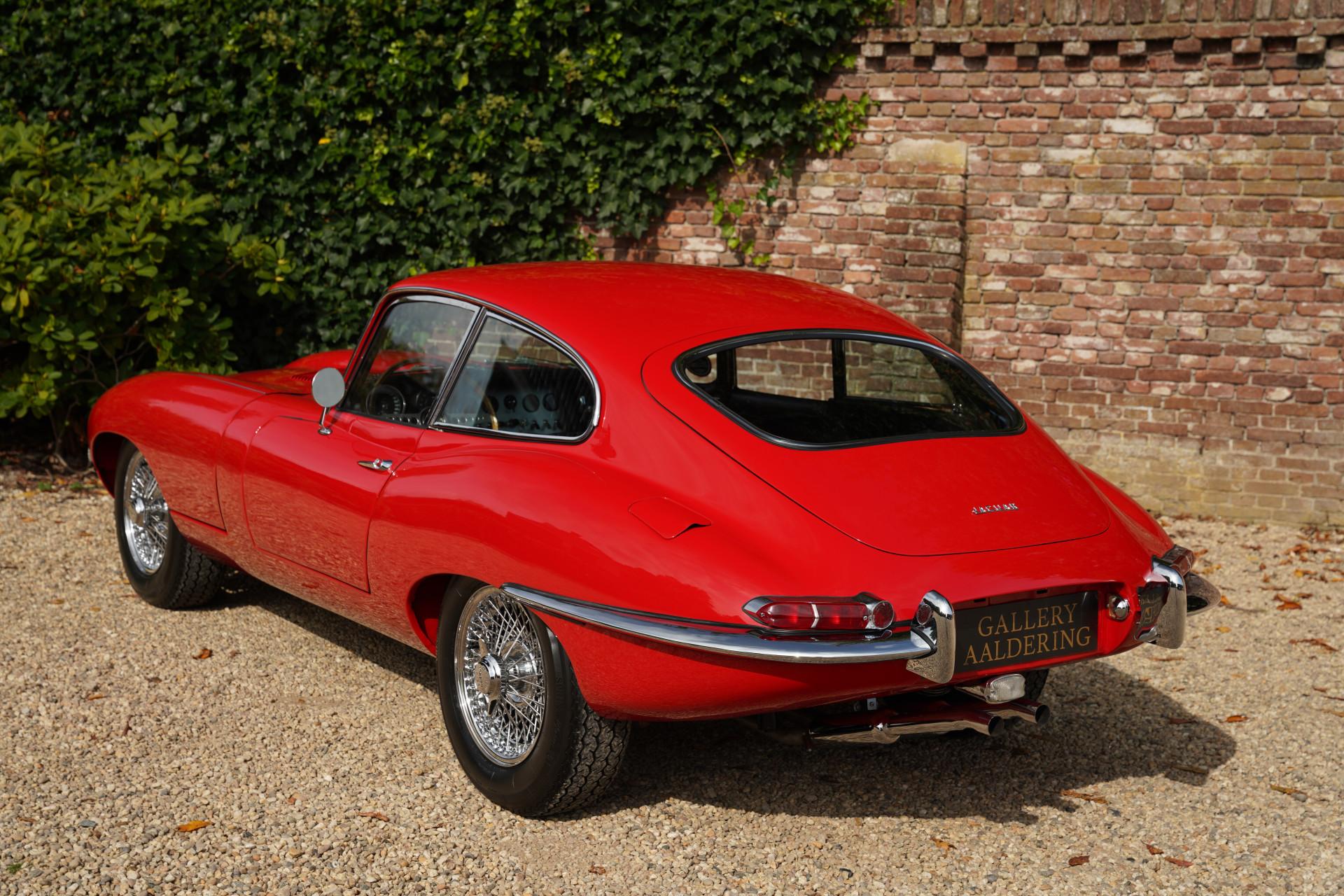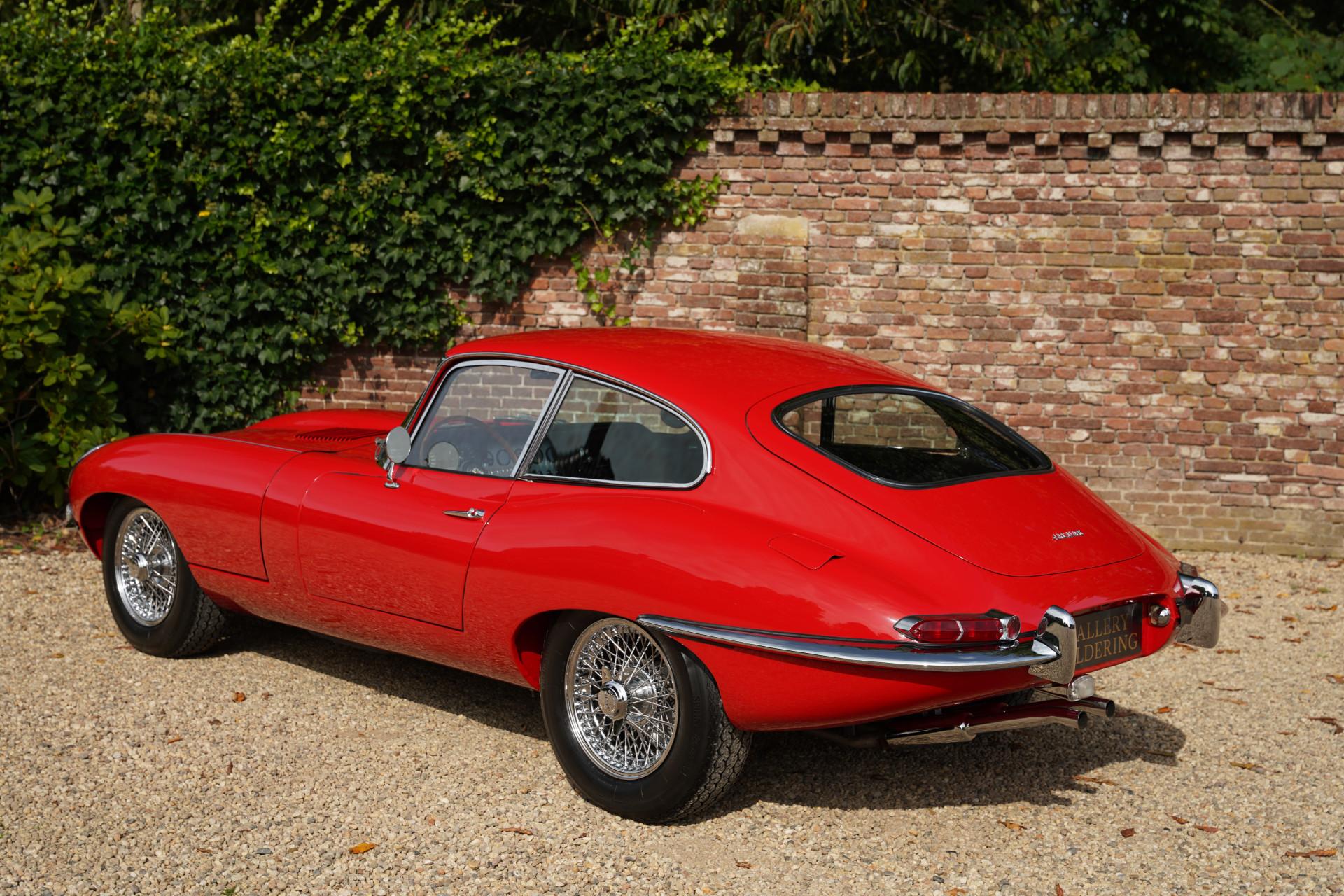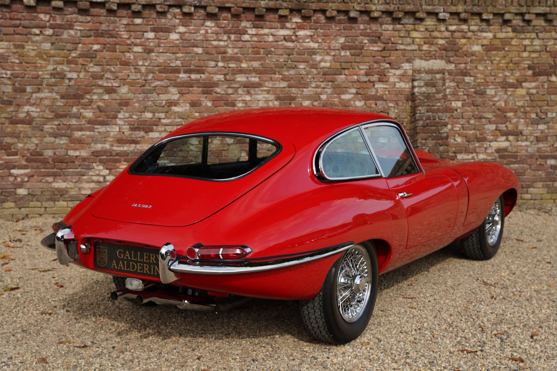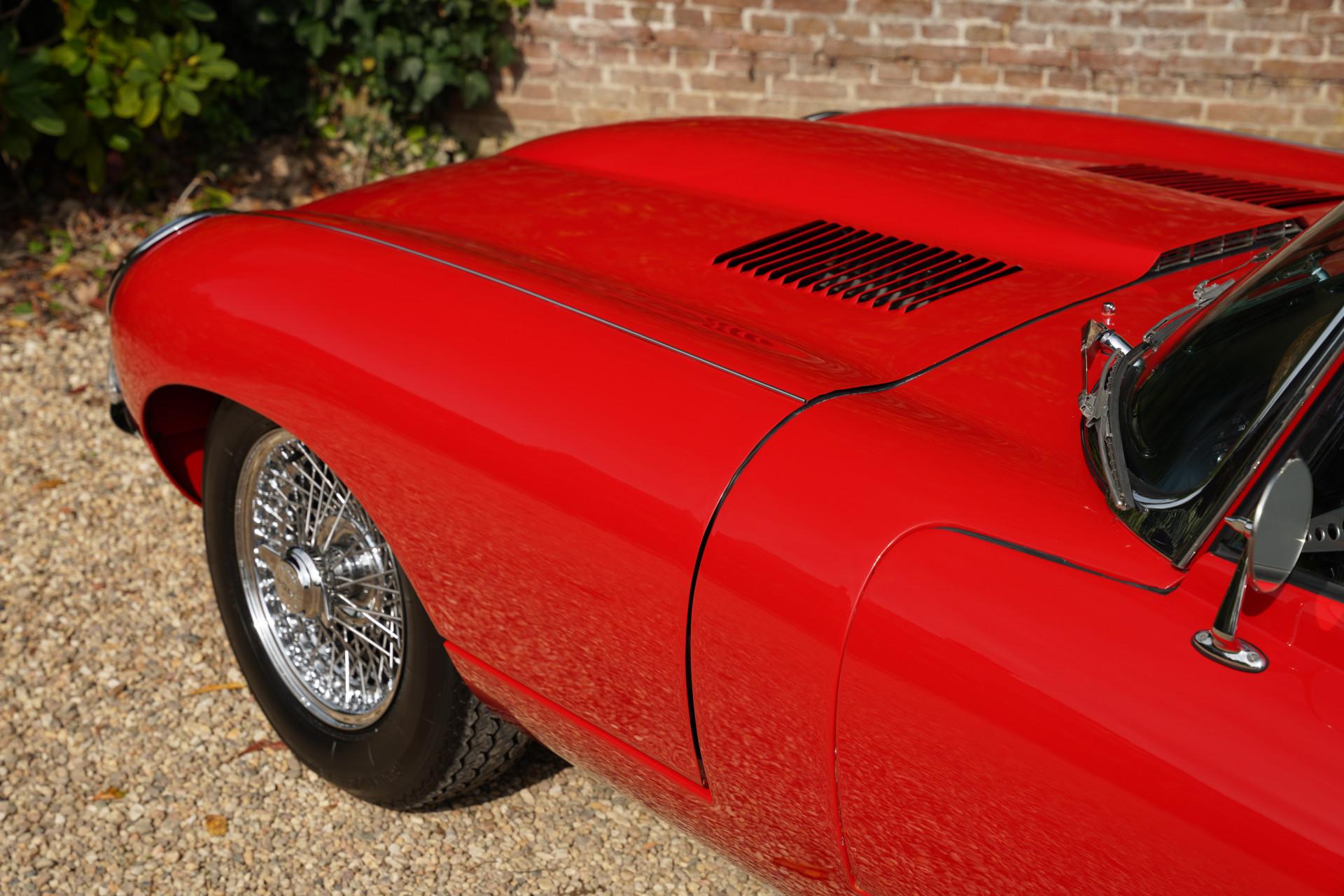 About fifteen years ago, this E-type was restored down to the smallest detail and to the highest level. The previous owner owned the car for a very long time. The E-type is finished in Carmen Red, over a black leather interior. Beautiful paintwork adorns the E-type, the bodywork of which is also in formidable condition under the paint. The fits are fantastic, doors and hinged parts close optimally. Literally beautiful chrome completes the exceptional condition of this car.