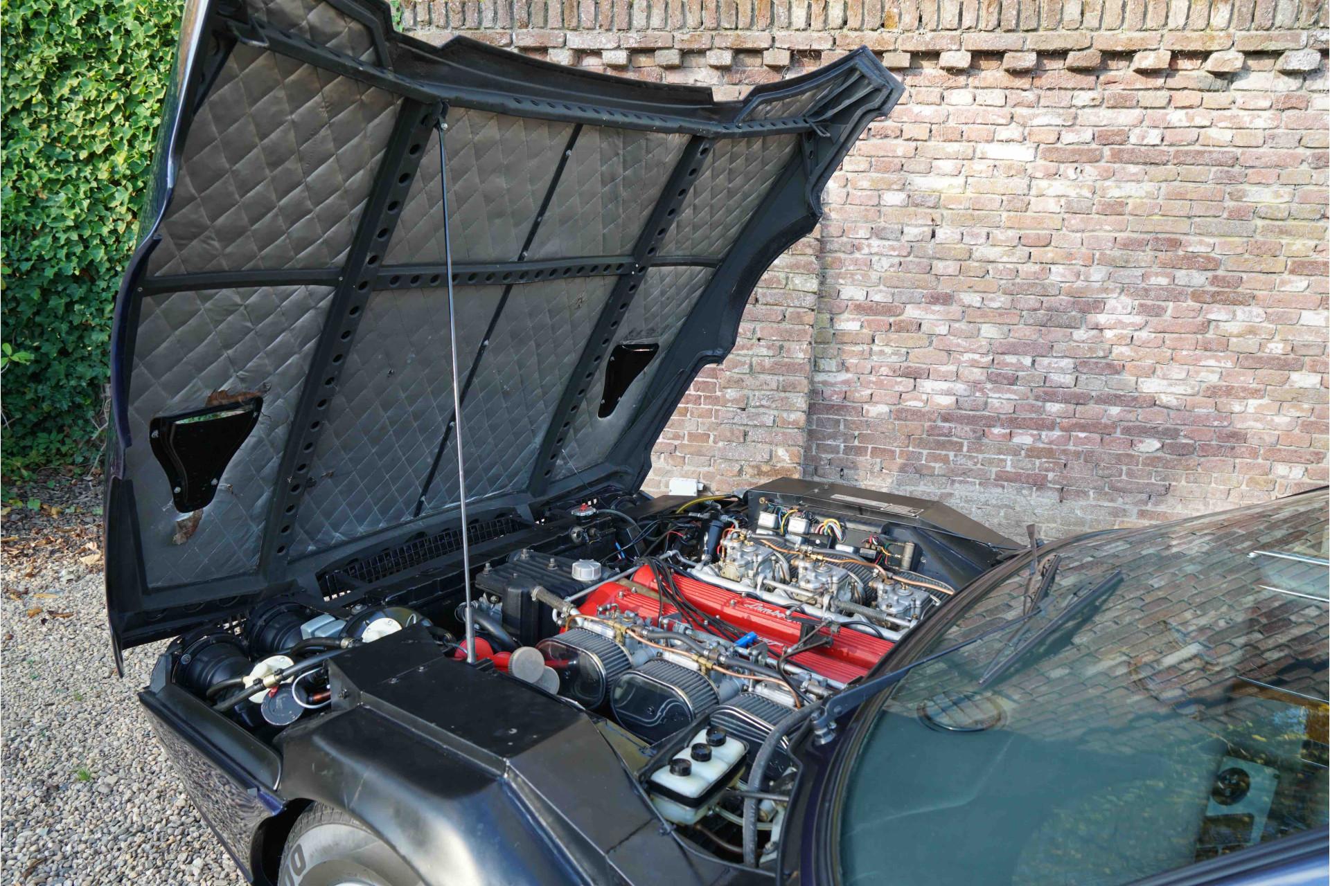 This Series 3 features a very beautiful and entirely original blue leather interior with period correct patina. Also equipped with tinted glass all around, air conditioning, the original wheels, and Lamborghini certificate. A beautiful Series 3 in a very nice condition!