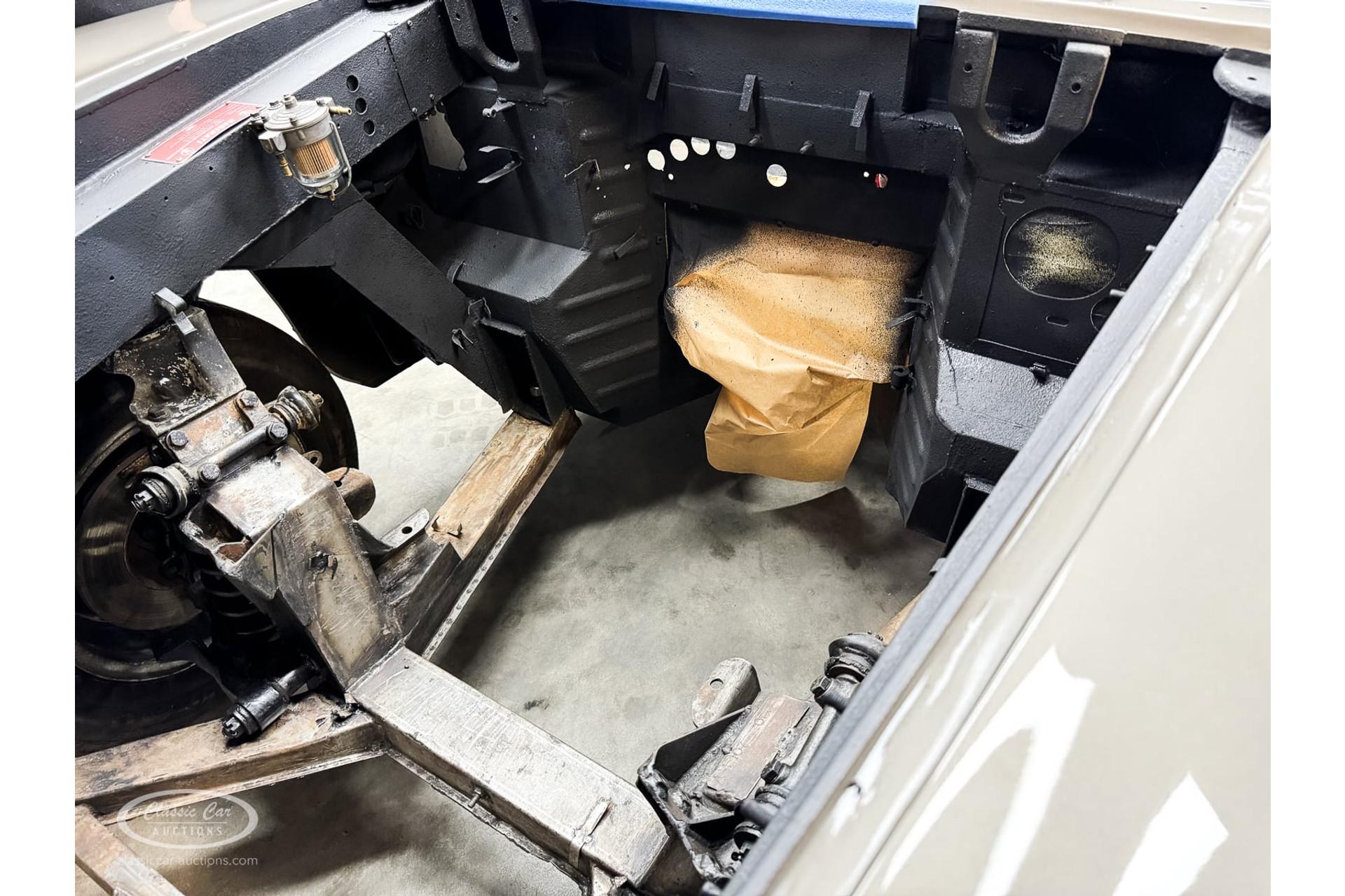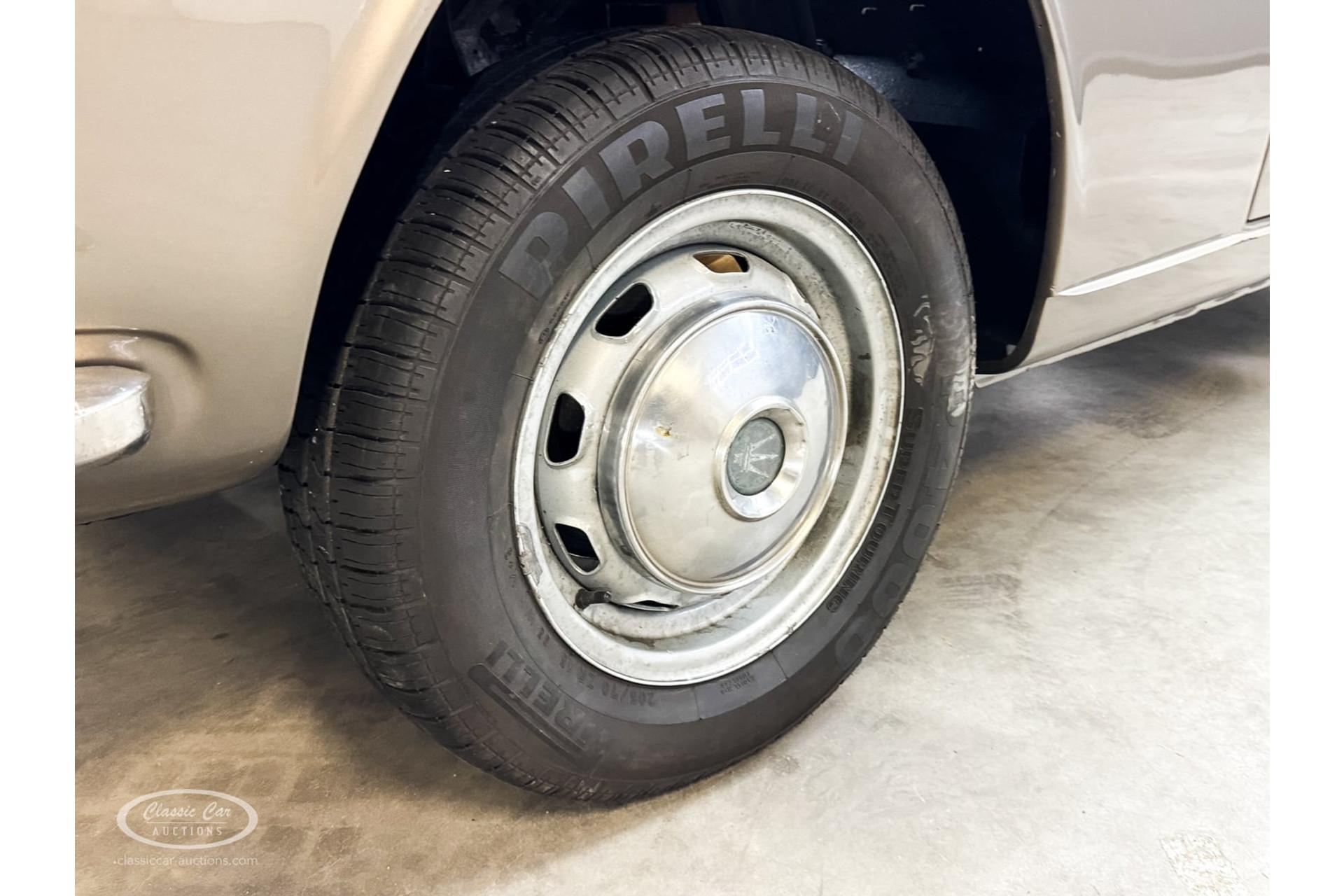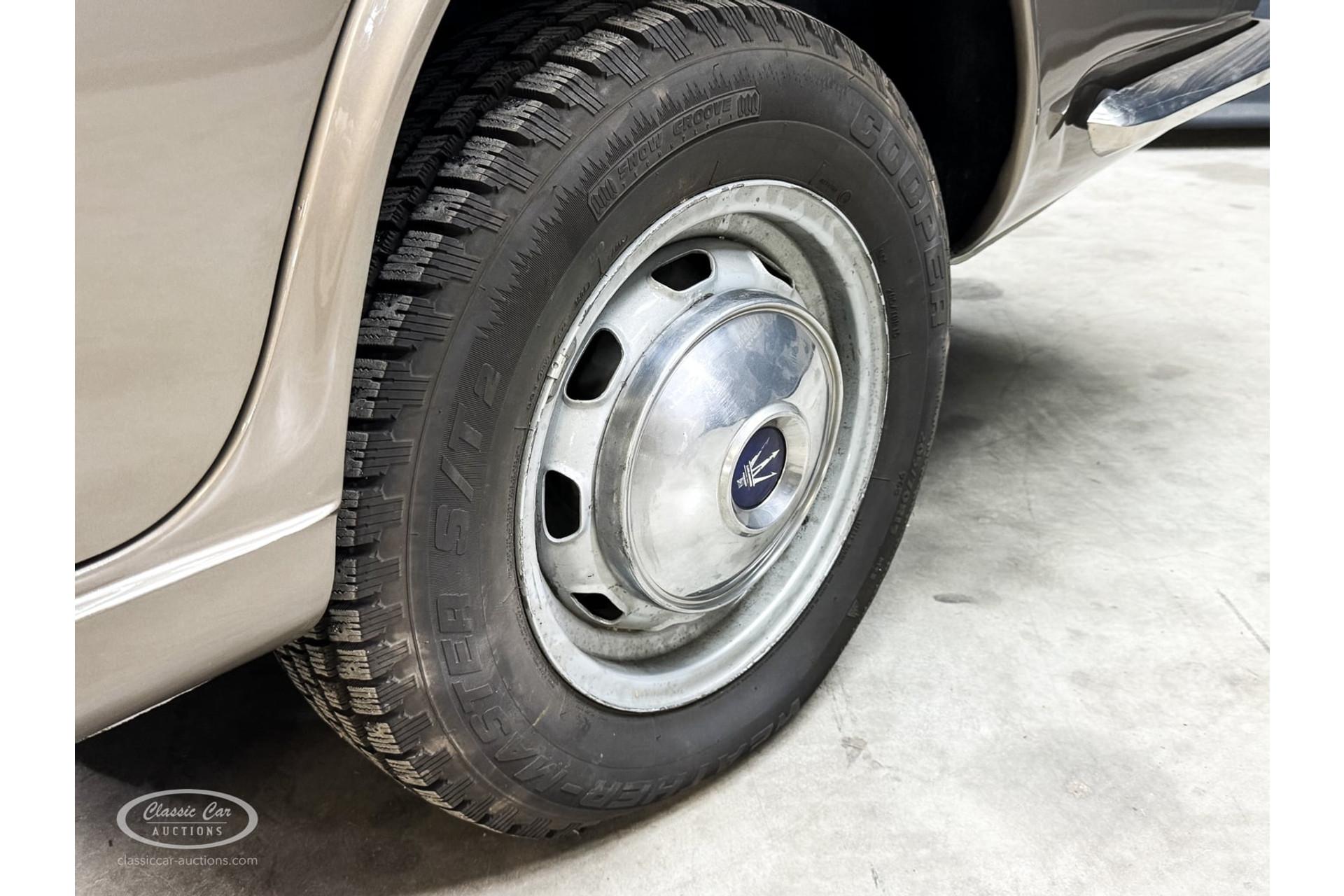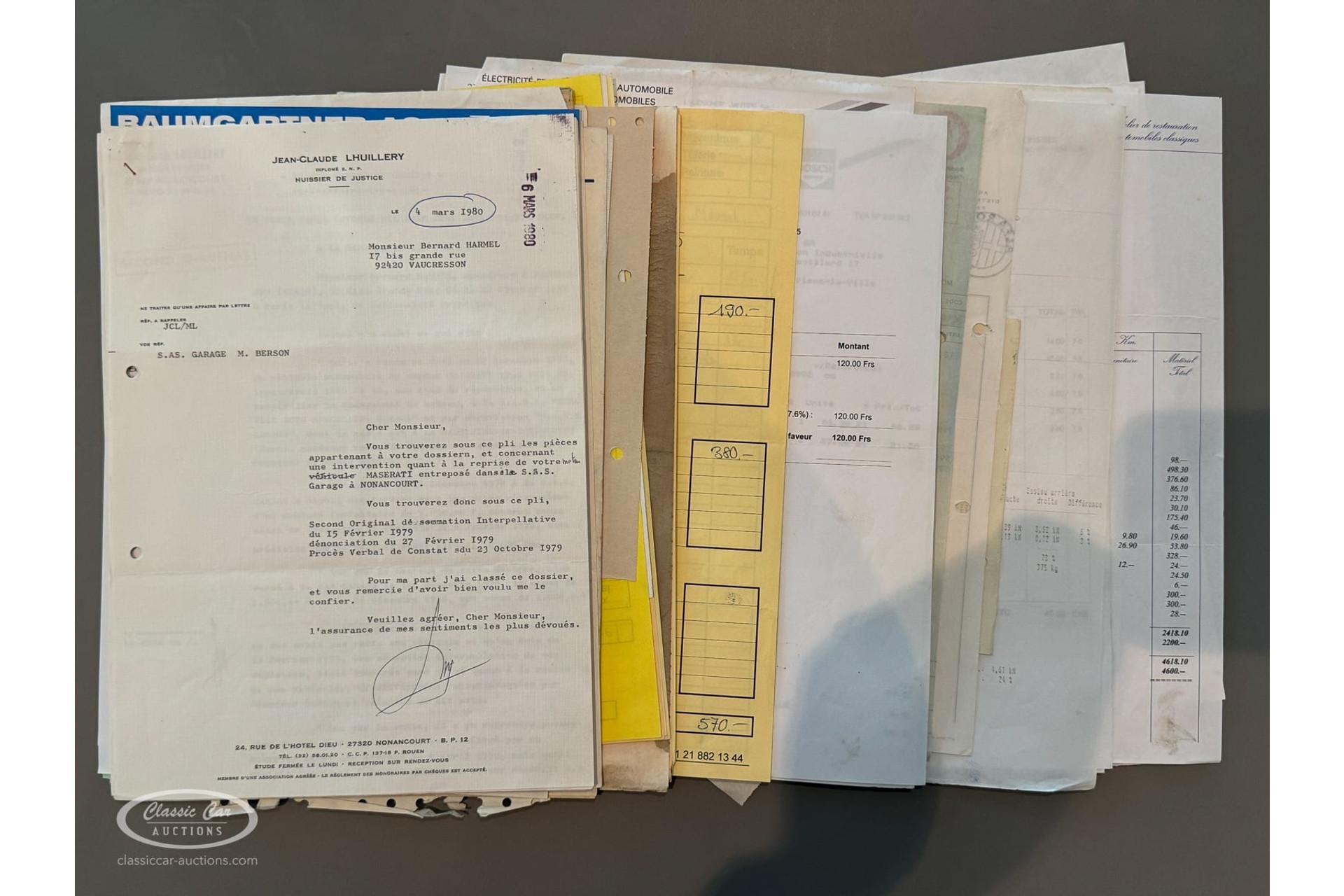 With its elegant bodywork and beautiful cognac-colored interior, this Maserati exudes style and craftsmanship. The interior has been kept original, adding a rare and authentic touch to this collectible model. The vehicle was used before the restoration and drove excellently, laying the foundation for a smooth ride upon completion of the current restoration. The extensive documentation confirms the Swiss past and offers a detailed look at the rich history of this car.