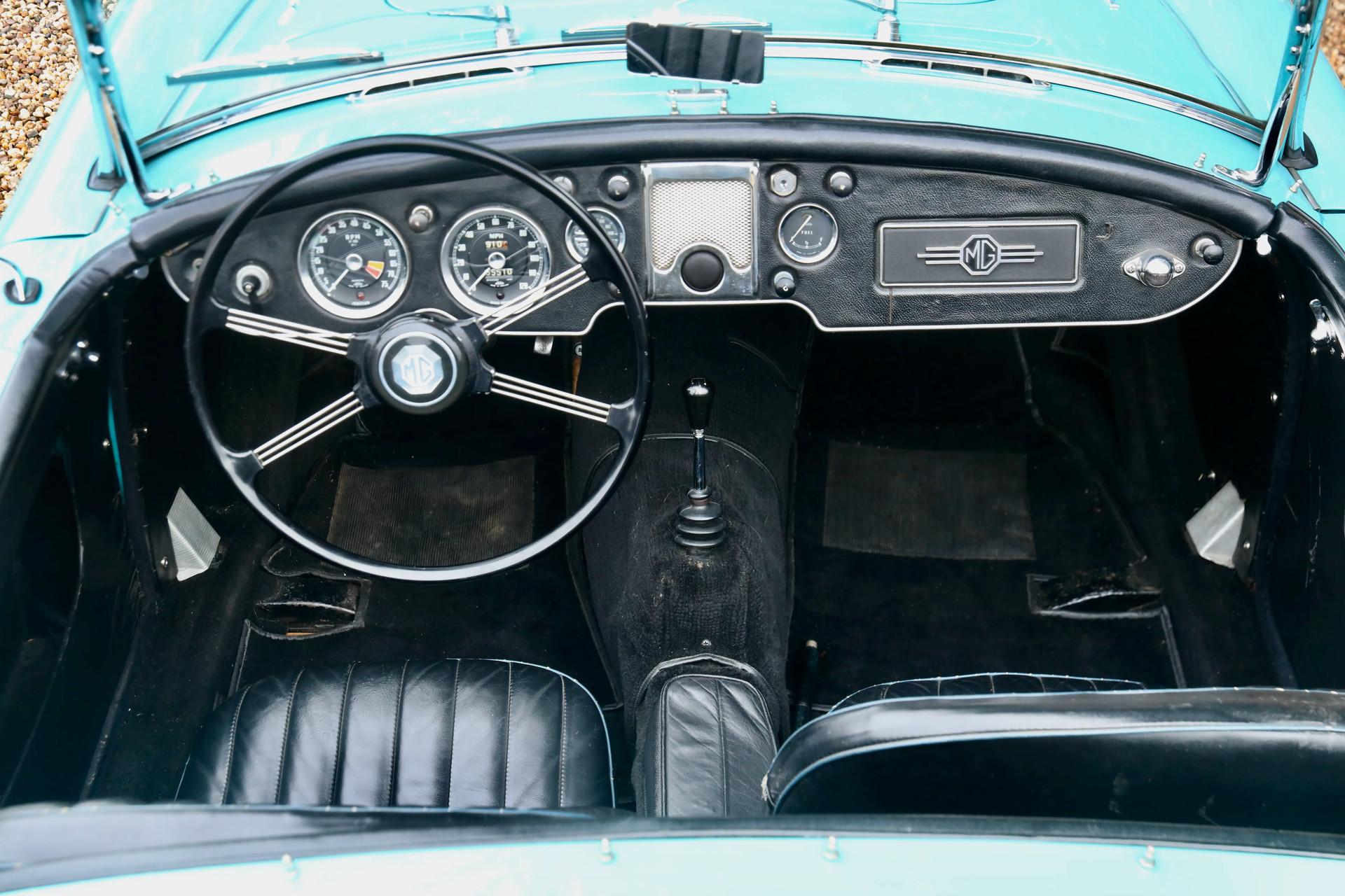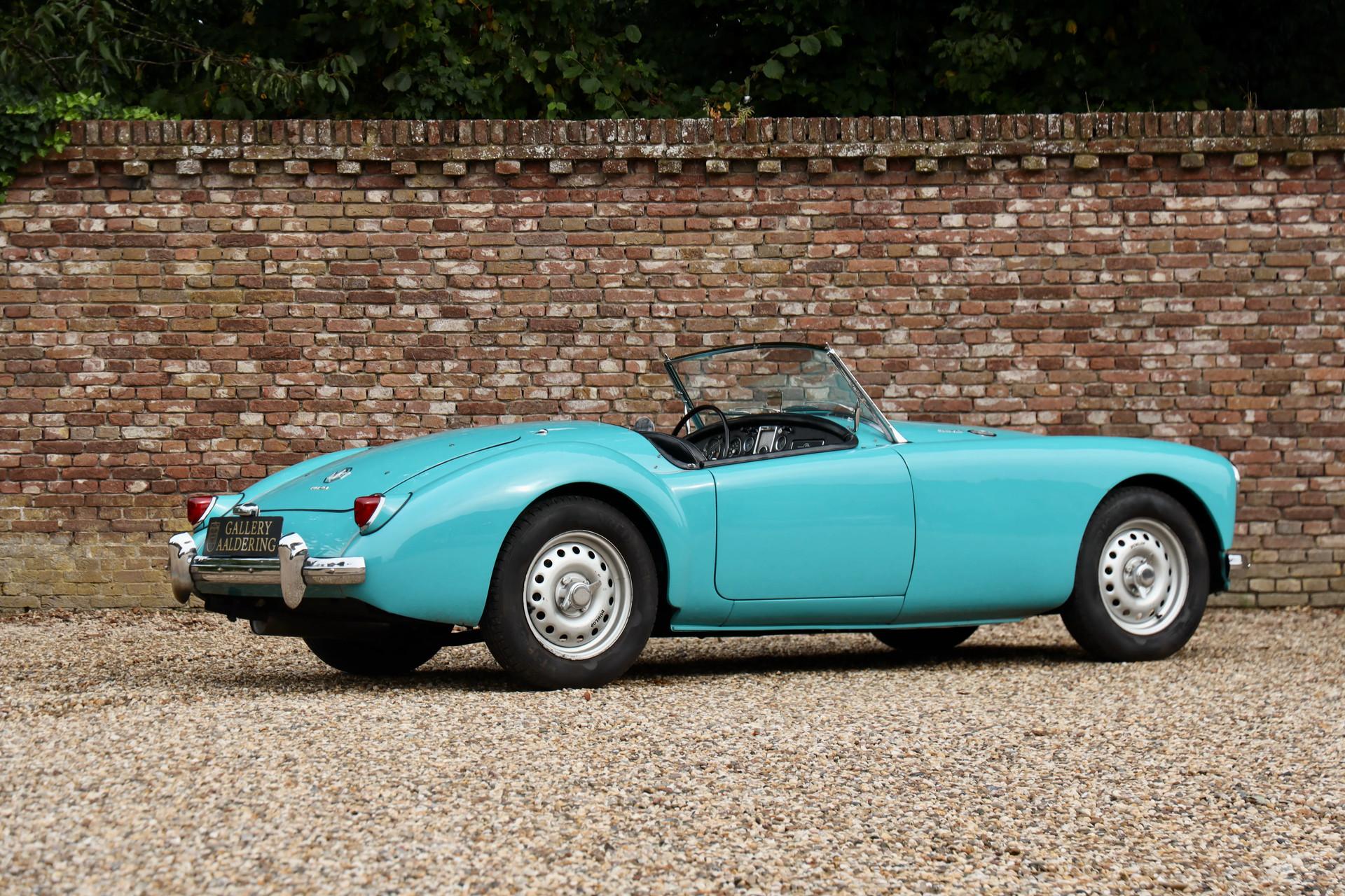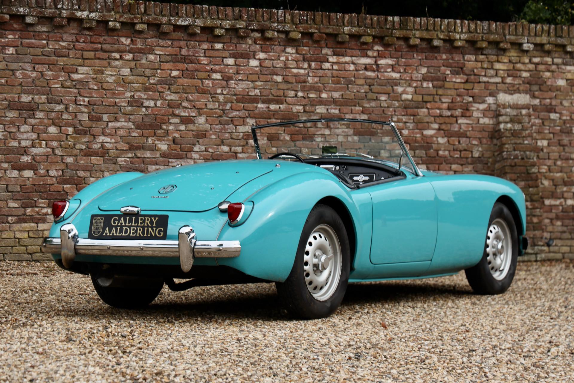Under the hood is the 108-hp Twin Cam engine, which runs smoothly and powerfully. Thanks to the extra power and Dunlop disc brakes, this MG A Twin Cam offers an impressive driving experience. The clutch pedal is light to operate, the brakes are well dosed, and the steering feel is sharp and direct, adding to the driving pleasure. With sporty bucket seats and 15-inch knock-off steel wheels, this roadster is perfectly prepared for participation in rally's and touring.