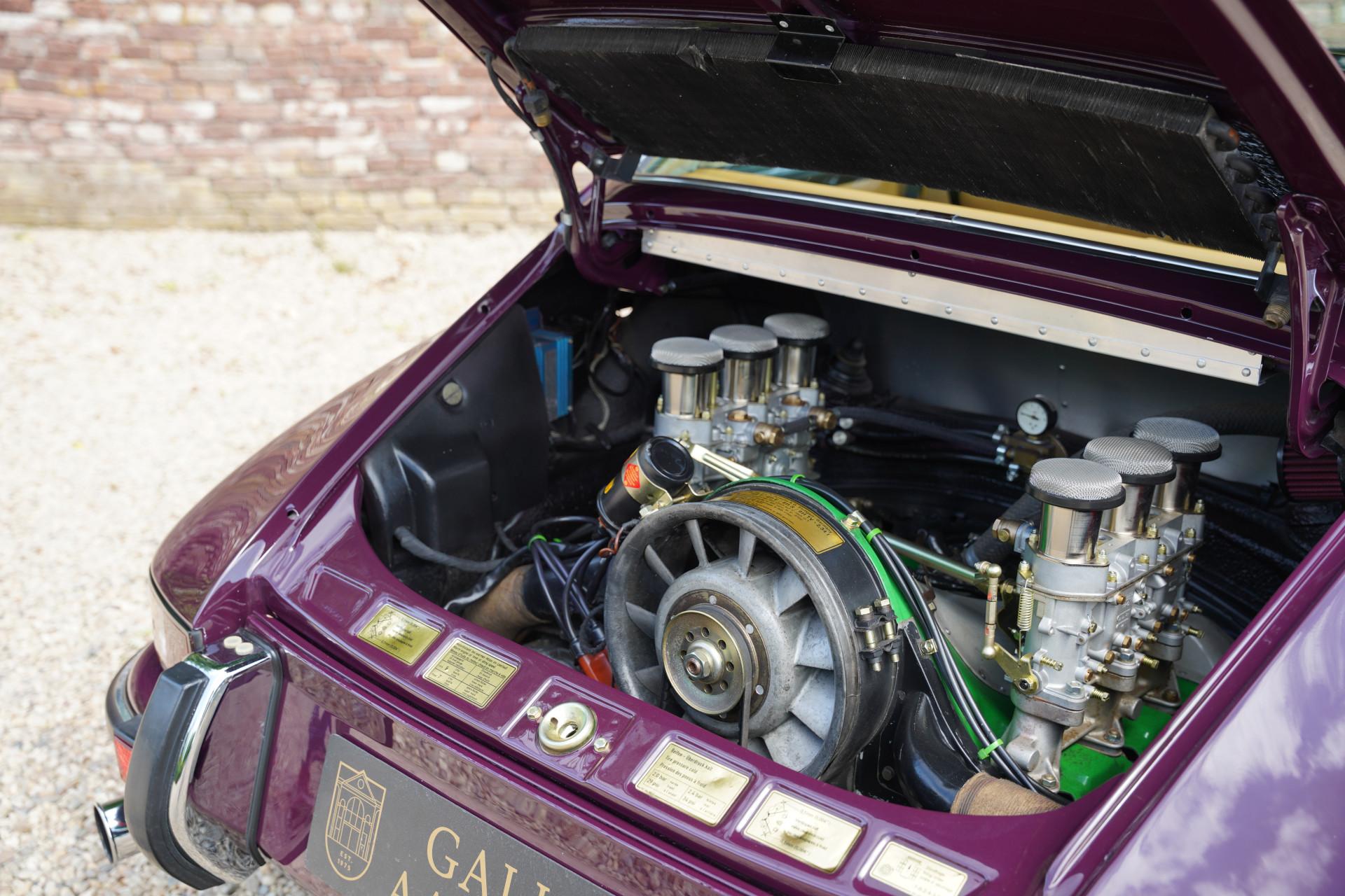 Under the hood is a beautiful 2.4 liter air-cooled 'flat six'. In this case, the six cylinders are fed by two triple Weber carburettors, which are not only a feast for the eyes with a beautiful chalice with grilles, but also provide a beautiful intake sound. Originally, the 'E', as the successor to the 'L', was fed by mechanical fuel injection, but no fan of classic cars will find this (rebuildable) modification annoying. The matching numbers power source has already been completely overhauled, including the five-speed gearbox.