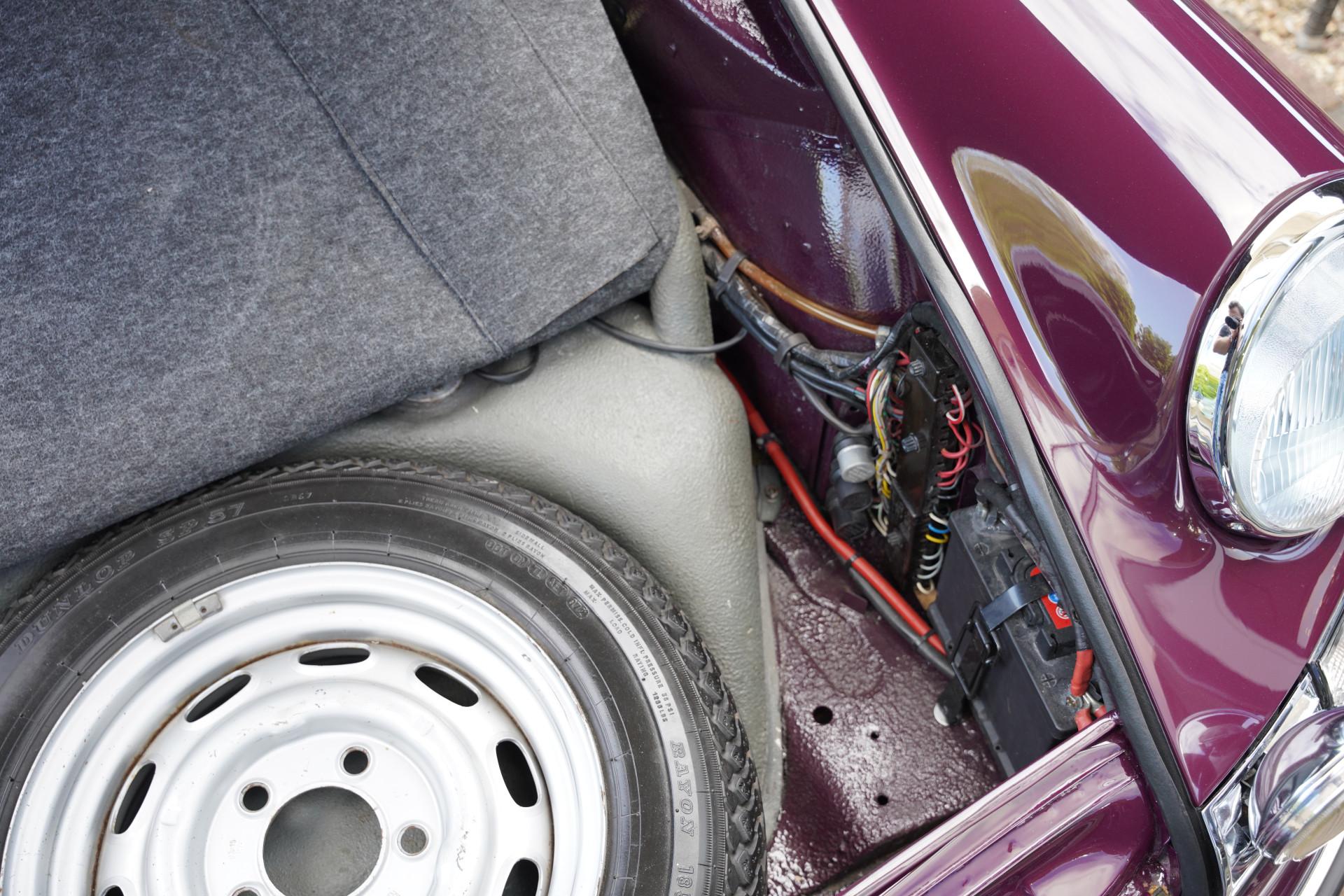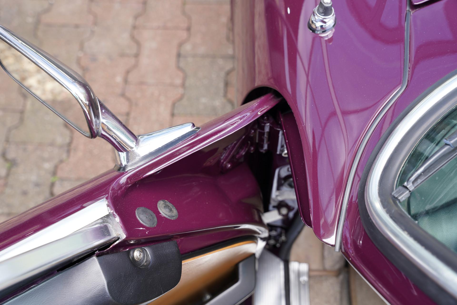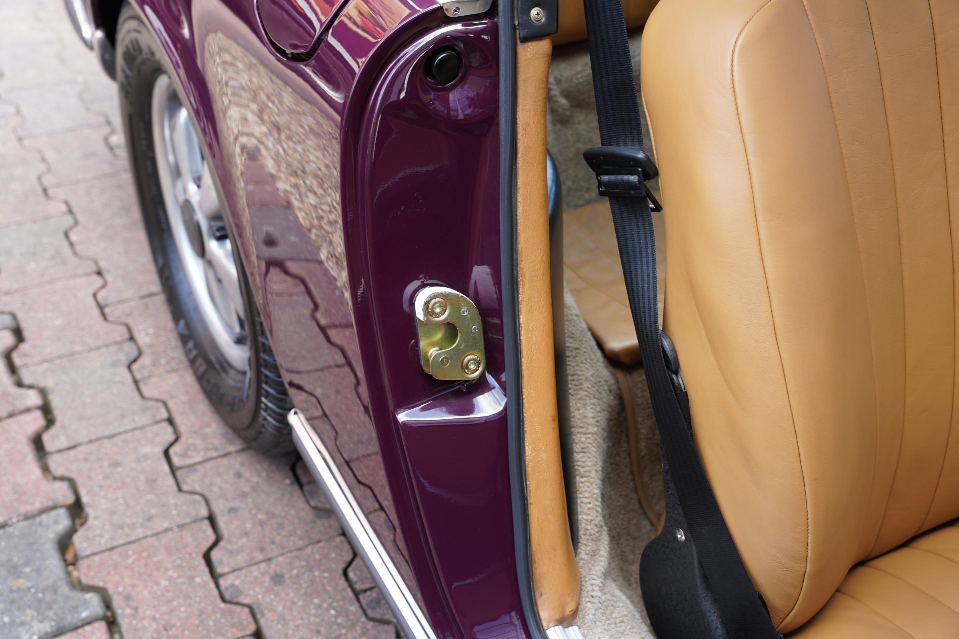 This 911 is executed in the popular and not very common color Aubergine. The olklappe has already been given a new coat of paint and the purple coat of paint still looks very fresh. We think 'like new' is just a bridge too far, with a minimal trace of use here or there, but it comes close. The Porsche makes a very pleasant impression, from whichever angle you look at the car. Also immediately noticeable are the perfect-looking 14” Fuchs wheels with a very fresh set of Cooper Cobra Radial G/T tires and the Touring spotlights available from the factory.