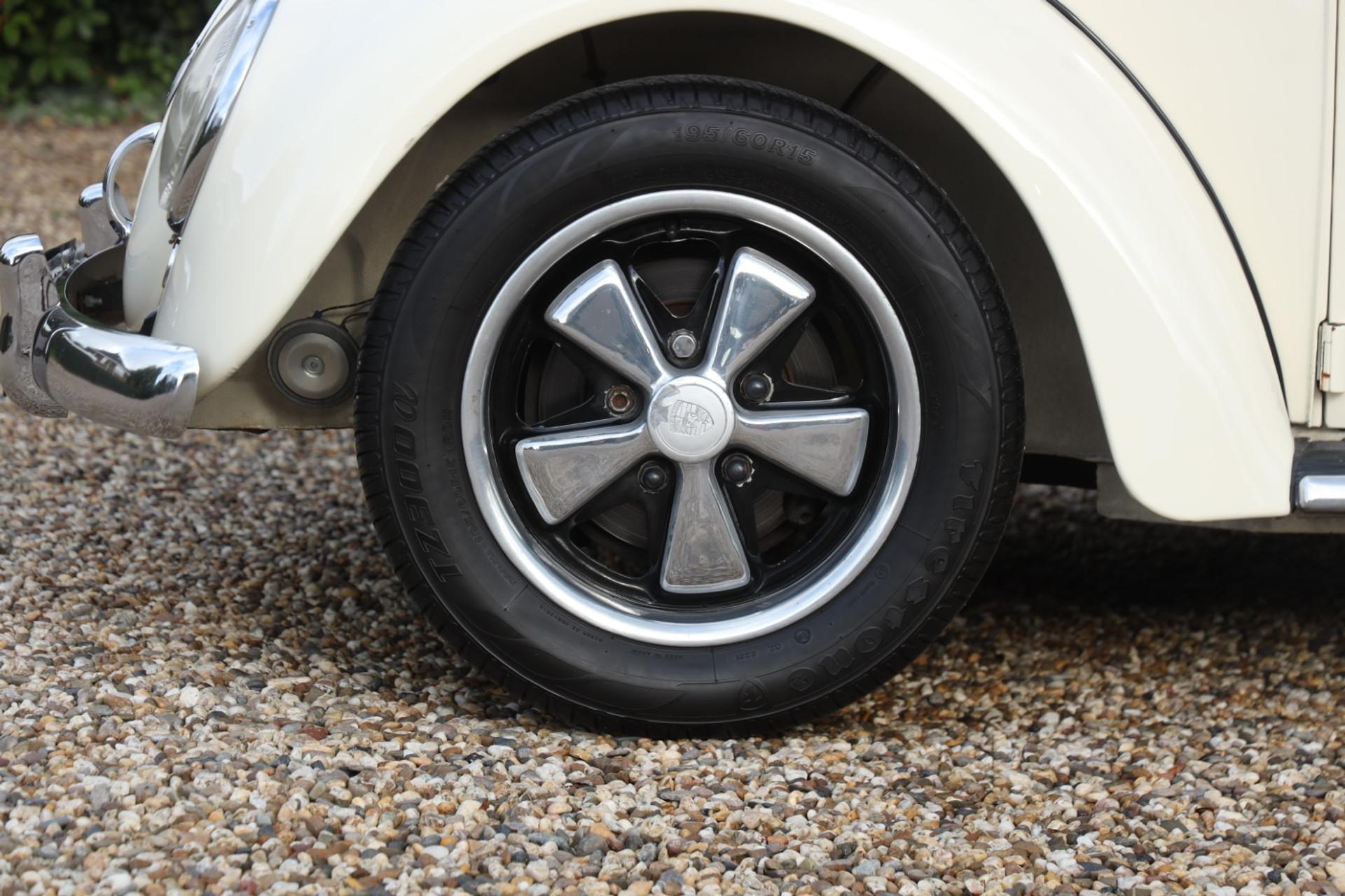 This 1967 Volkswagen Beetle 1500 Convertible is a truly unique example for classic car enthusiasts who value character and driving pleasure. The car has undergone a carefully executed older restoration and features tasteful Porsche modifications, including a 914 engine and iconic Fuchs wheels. These enhancements make it a Beetle that not only looks stunning but also drives with greater sportiness and dynamism than the original model.