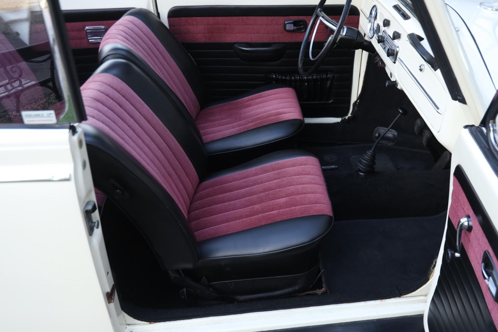 This example features the distinctive “horizontal headlights” and a classic convertible top, combining the timeless charm of a Beetle with an eye-catching and stylish twist. The exterior is finished in Pearl White, highlighting the car's elegant curves, while the interior blends black and deep red, creating a warm and authentic atmosphere that makes every drive enjoyable.