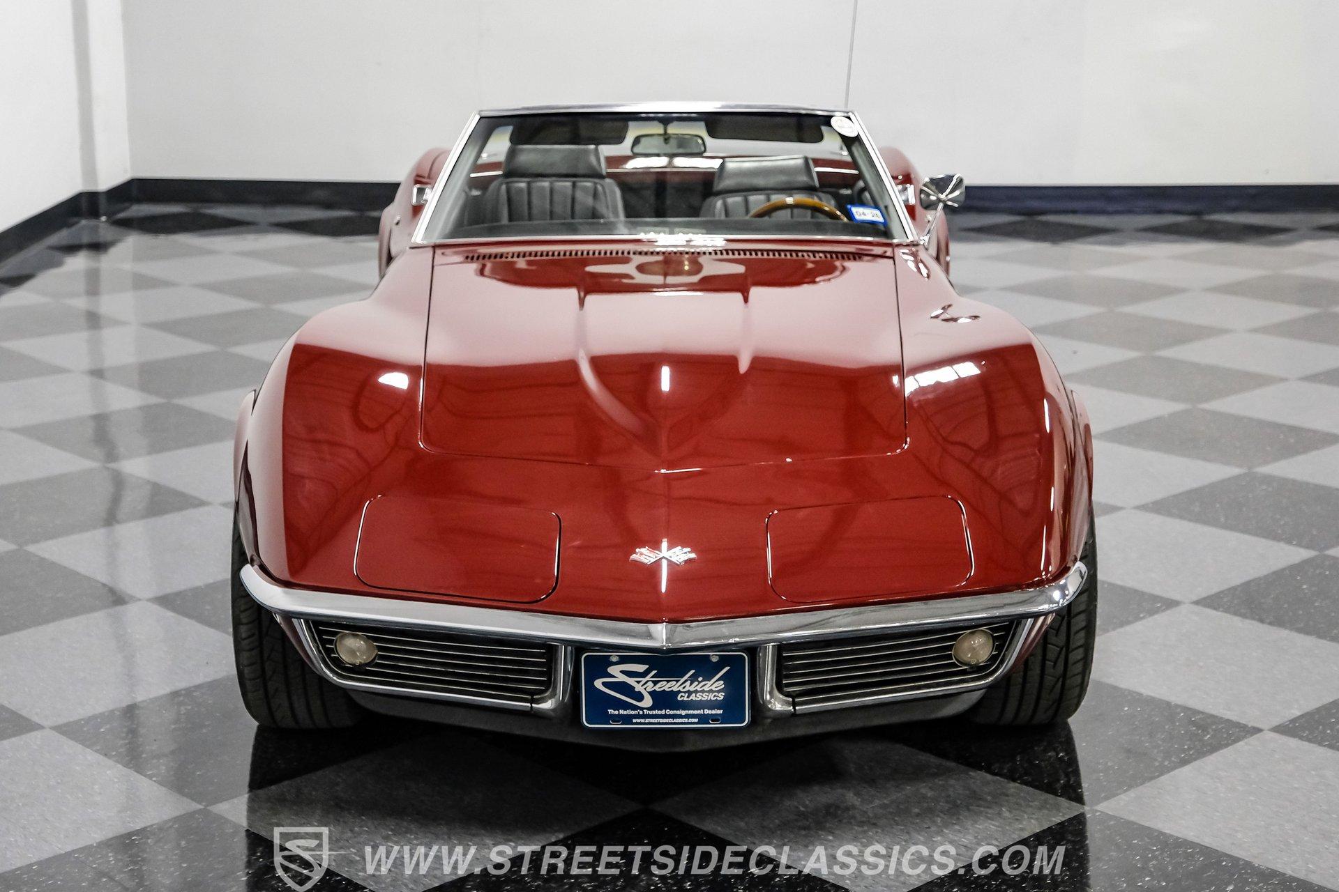 Step back in time and feel the thrill of a classic American icon fused with modern muscle. This 1969 Chevrolet Corvette Convertible tells a story of timeless style meeting contemporary performance. Imagine cruising with the wind in your hair, turning heads with its sleek Burgundy finish and chrome accents, while enjoying the power and reliability of a modern engine under the hood. It's more than just a car-it's a statement, a memory-maker, and a symbol of freedom on the open road. This 1969 Corvette Convertible LS3 Restomod invites you to own a piece of automotive history redefined for today's enthusiast. Inside, this Corvette offers a blend of vintage charm and modern comfort. The fully restored interior features black leather bucket seats and black carpeting that provide a luxurious feel. The factory dash is equipped with Autometer gauges, complemented by a woodgrain steering wheel on an Ididit tilt column for style and control. The center console houses a Hurst shifter, while a Pioneer AM/FM/Aux/Bluetooth radio with speakers in the rear package area ensures your soundtrack is always ready. Vintage Air conditioning keeps the cabin cool, making every drive enjoyable. Beneath the hood lies a powerhouse-a late model 6.2L LS3 V8 engine paired with a Tremec 5-speed manual transmission. This setup delivers strong acceleration and smooth shifting, offering a driving experience that's both thrilling and precise. The engine bay is very organized and visually impressive, reflecting the care taken in this build. Suspension upgrades include QA1 adjustable coilovers front and rear, along with a custom Shark Bite rear coilover system, enhancing handling and ride quality. Four-wheel disc brakes and power steering round out the mechanical features, ensuring responsive control and stopping power. Highlights Late Model 6.2L LS3 V8 Engine Tremec 5-Speed Manual Transmission 12,759 Miles Since Built Full Repaint Factory Correct Burgundy Color Matched Hard Top Black Soft Top Black Leather Bucket Seats Interior Woodgrain Steering Wheel on Tilt Column Pioneer AM/FM/Aux/Bluetooth Radio Vintage Air Conditioning System QA1 Adjustable Coilover Suspension Custom Shark Bite Rear Coilovers Four-Wheel Disc Brakes Power Steering 17" American Racing Torq Thrust Wheels Financing Available Vehicle Protection Plans Available Worldwide Shipping This 1969 Chevrolet Corvette Convertible LS3 Restomod combines classic style with modern performance upgrades, making it a fantastic choice for anyone looking to enjoy the best of both worlds. Don't miss your chance to own this unique and exciting vehicle. Call, email, or come visit our showroom today!