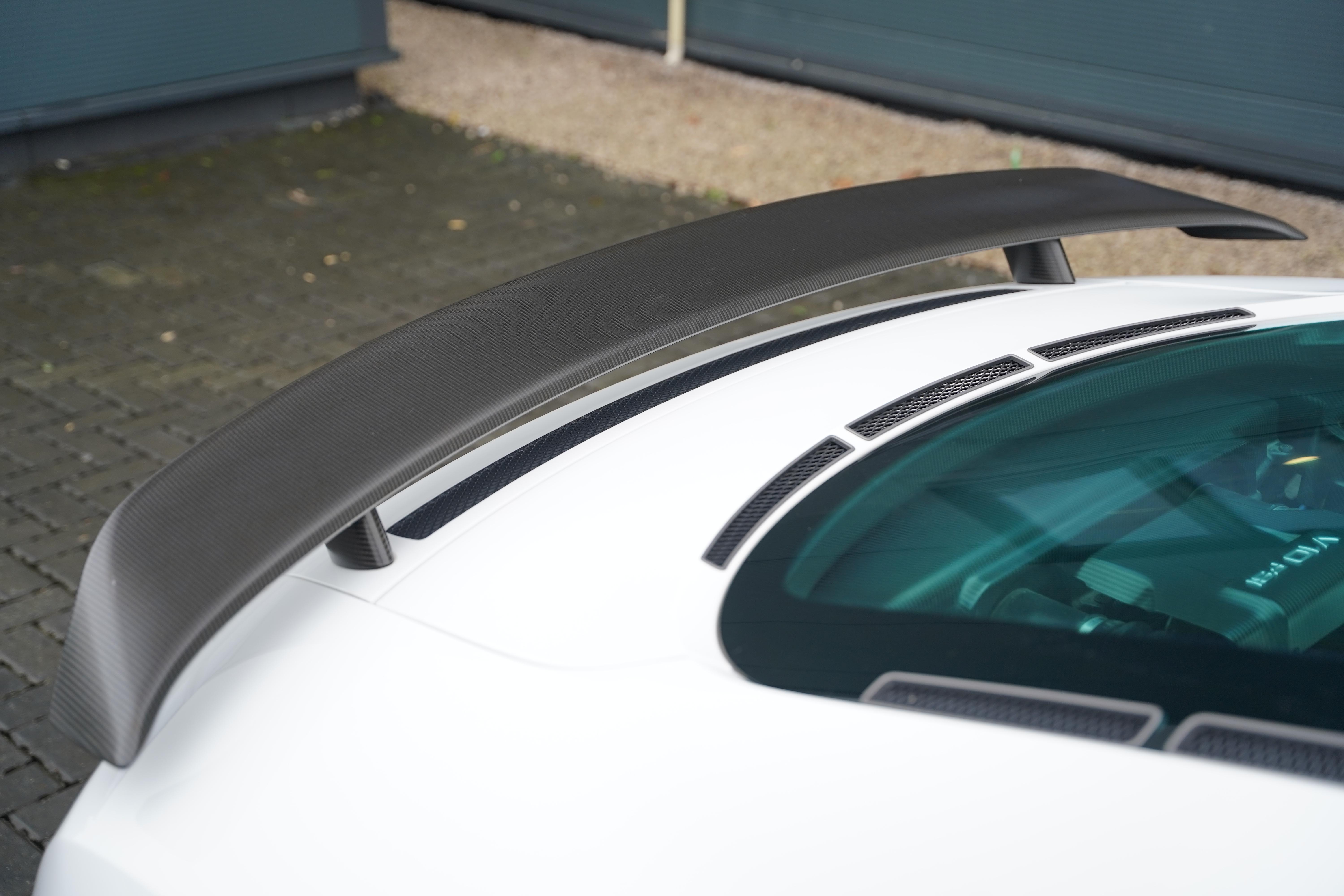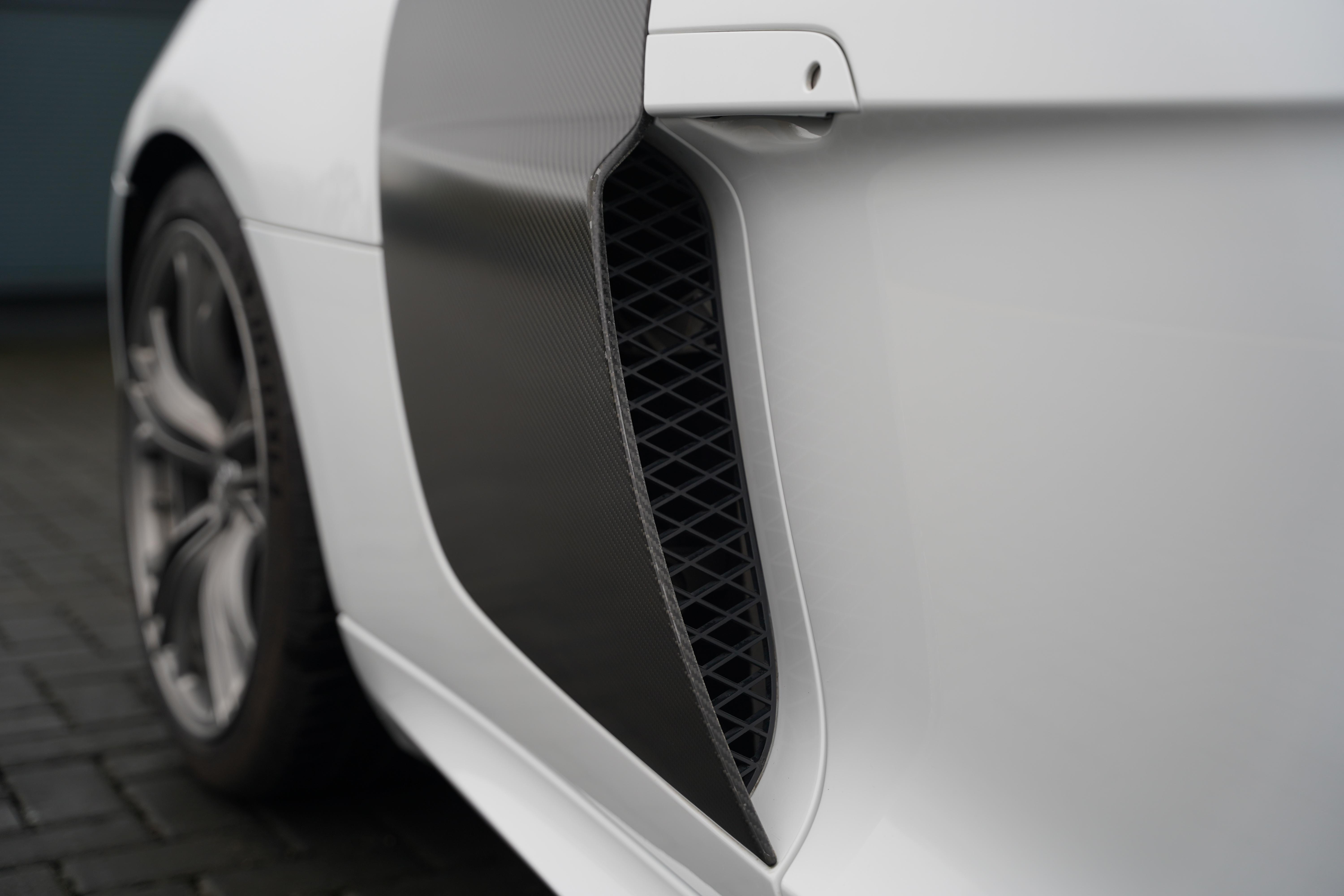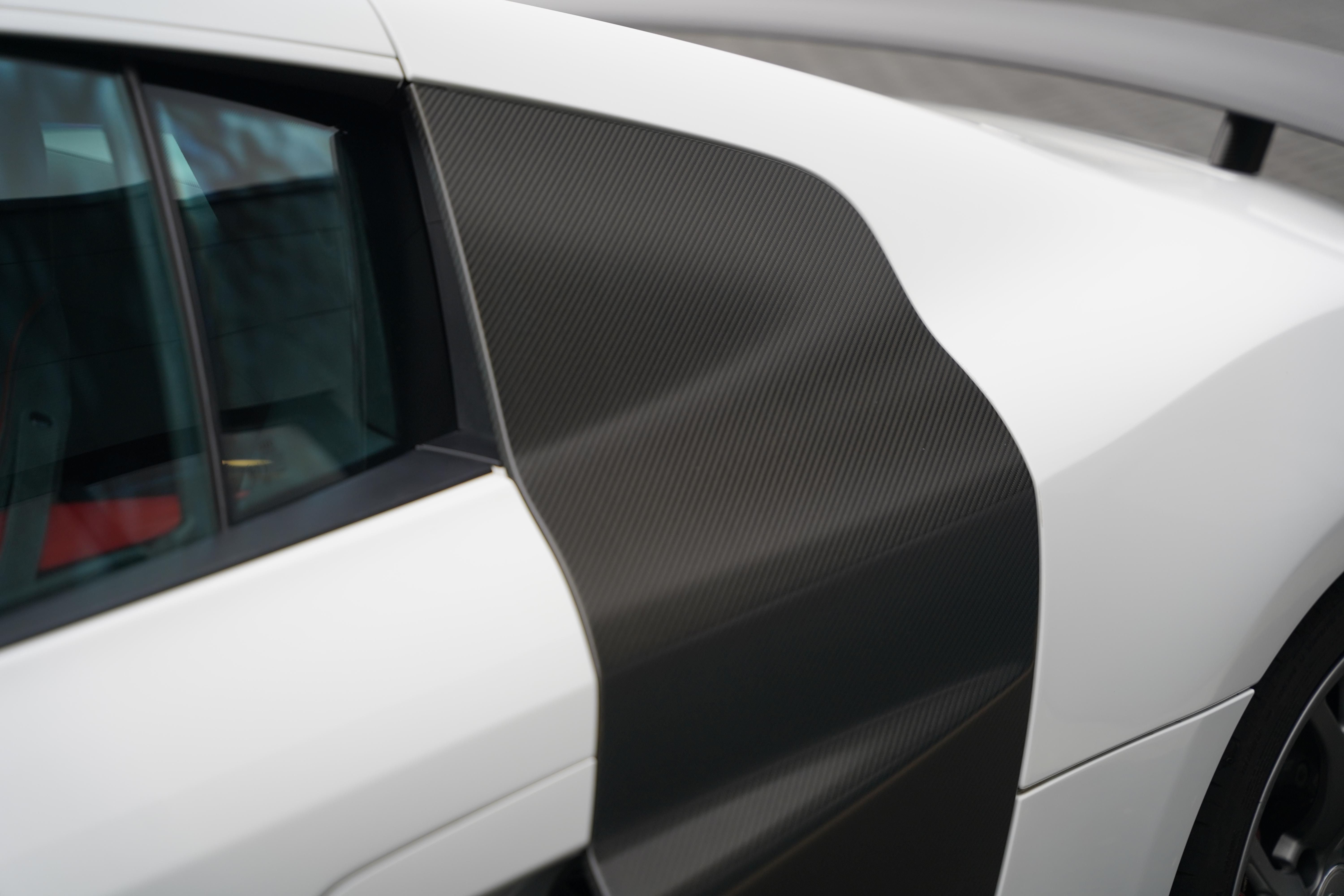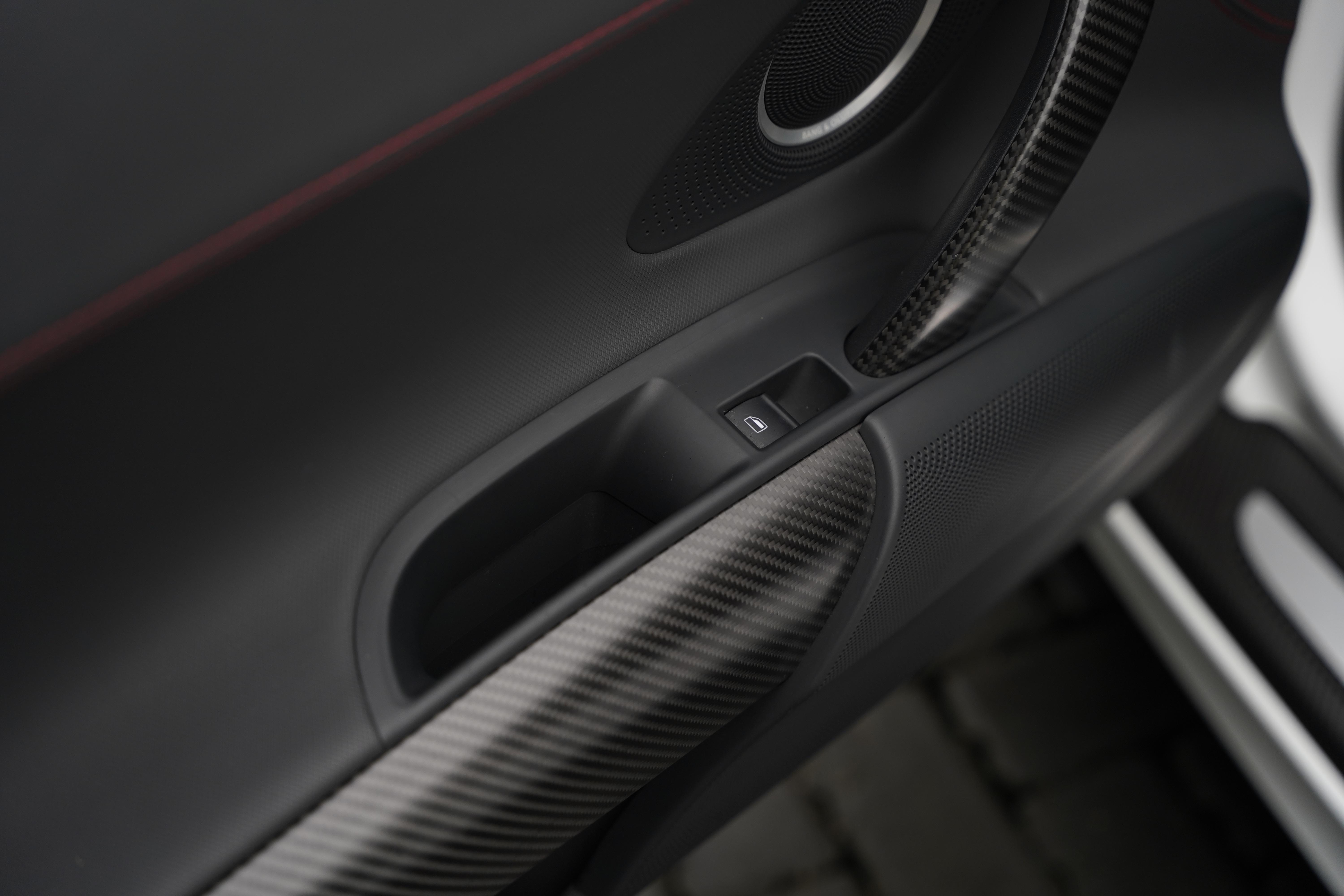 In order to lose this unwanted weight, Audi used large areas of carbon fibre up to and including, the rear deck, bumper, side blades, rear wing, rear diffuser, and aero components. This has also been combined with lightweight sheet metal being used for the bonnet.