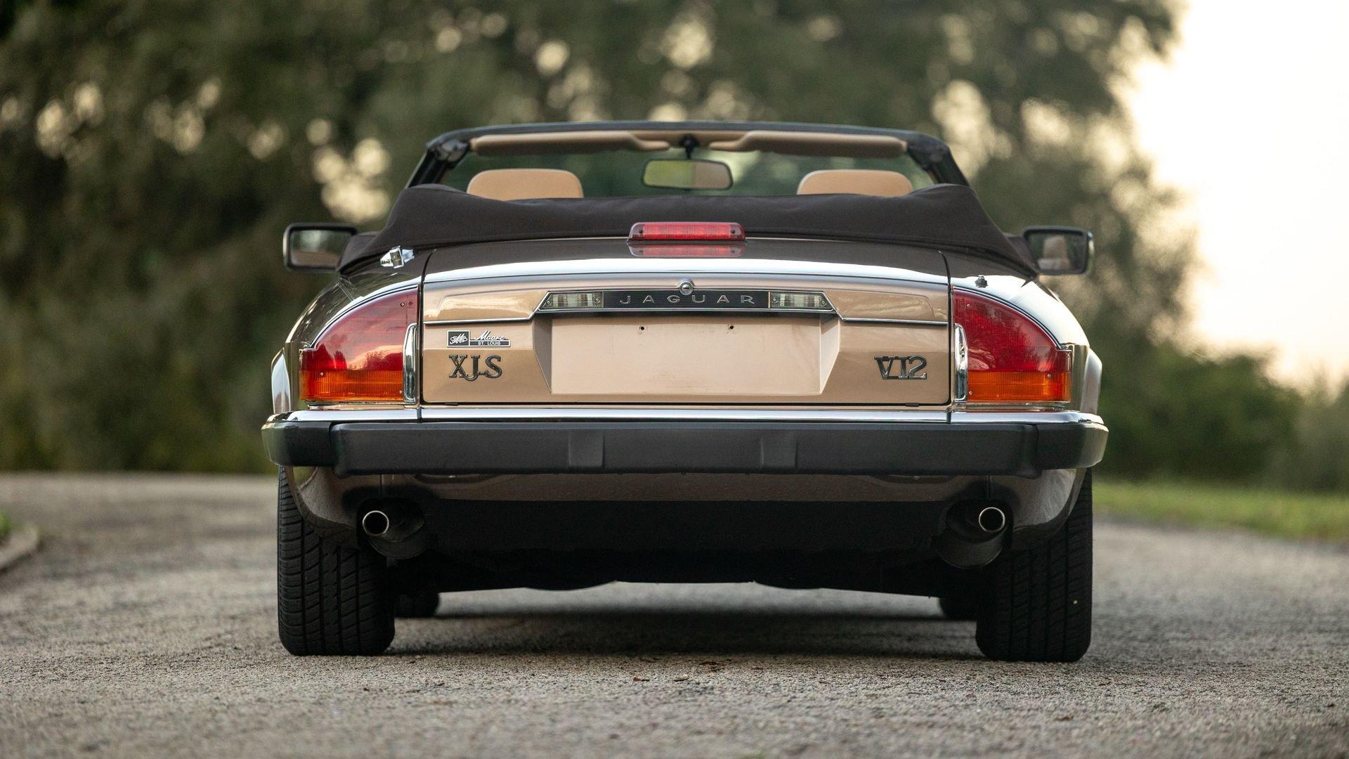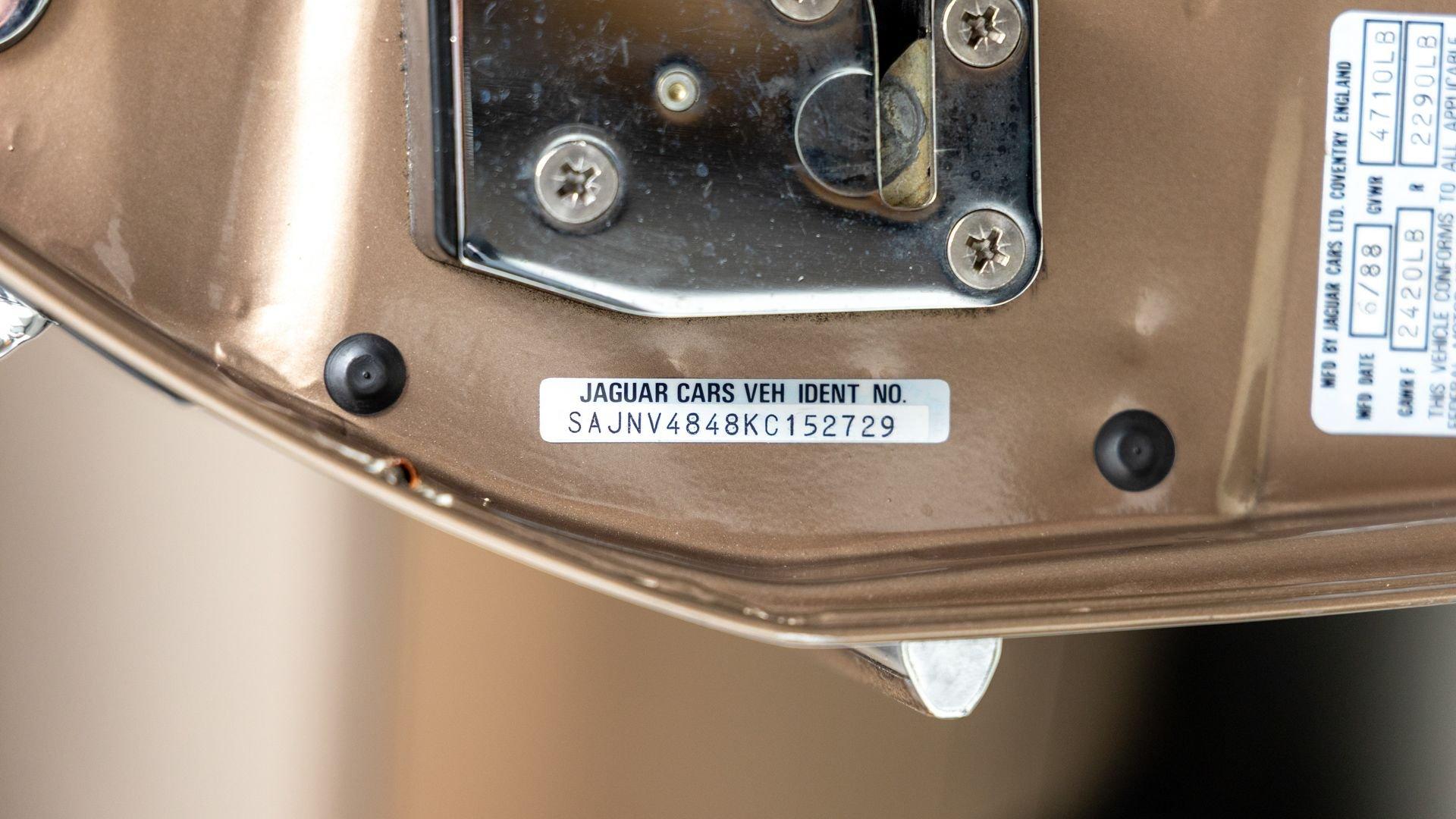 Chassis No. SAJNV4848KC152729 The XJS Convertible marked Jaguar's first true drop-top since the legendary E-Type ceased production at the end of 1974. Introduced initially in hardtop form in 1975, the XJS carried the torch forward as the E-Type's modernized successor; retaining its statement-making V12 while evolving over the next decade into a refined grand tourer. From 1981, the XJS was fitted with the High-Efficiency V12 that produced an improved 263 horsepower and far better fuel economy. The XJS Convertible arrived for the 1989 model year with a power-folding soft top plus meaningful upgrades such as anti-lock brakes, a revised steering rack with a tighter turning radius, fresh multi-spoke alloy wheels, central locking, and an elevated cabin featuring new burl walnut trim and power-adjustable heated sport seats—all of which only strengthened the XJS’ appeal. The most luxurious Jaguar model available at the time of its arrival, this 1989 Jaguar XJS Convertible is finished in its original Satin Beige Metallic with a Chocolate canvas power folding top over a Barley leather interior. It is heavily equipped as standard with a three-speed automatic transmission, 15-inch polished aluminum wheels, Lucas fog lights, air conditioning, leather bucket seats, power steering, power brakes power windows, power door locks, power mirrors, AM/FM cassette stereo, and cruise control. According to its clean CARFAX Vehicle History Report, this XJS was first registered in St. Louis, Missouri in September 1988 and remained in the state for more than 30 years under a small number of attentive owners. Regular servicing is documented by the report, including a substantial refresh at European car specialists GLM Motorworks in February 2021 where the front shock absorbers and bushings were replaced, the fuel system was serviced, and the fuel injectors were replaced. The Florida-based consignor acquired the car that July. It has since received additional care including a service in October 2025. Carefully maintained by a string of meticulous collectors, this example boasts just 6,726 miles from new. With collector mileage and a lifetime of documented, enthusiast-level care, this 1989 XJS Convertible is an as new example of Jaguar’s venerable V12 flagship.