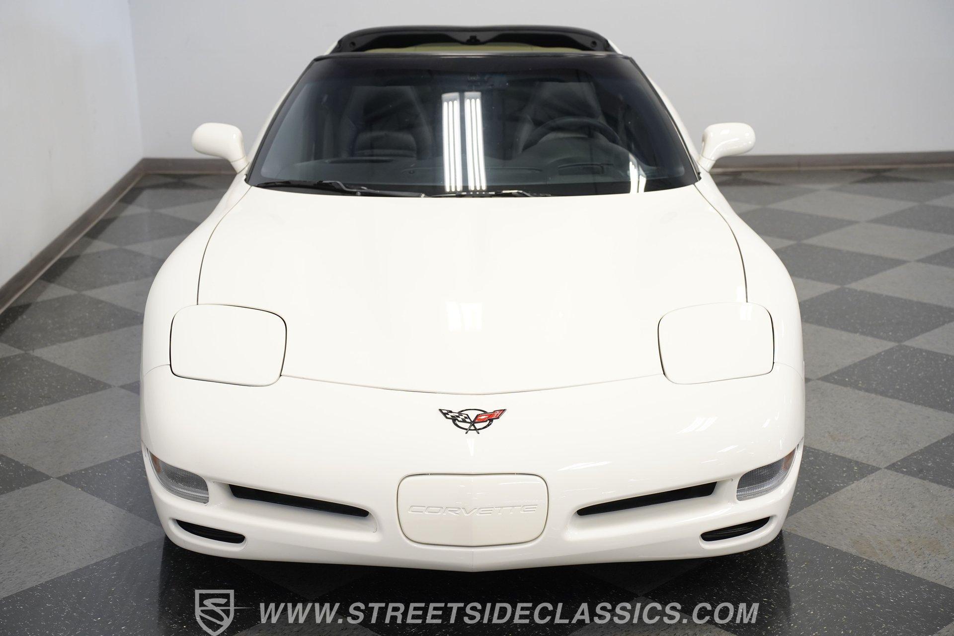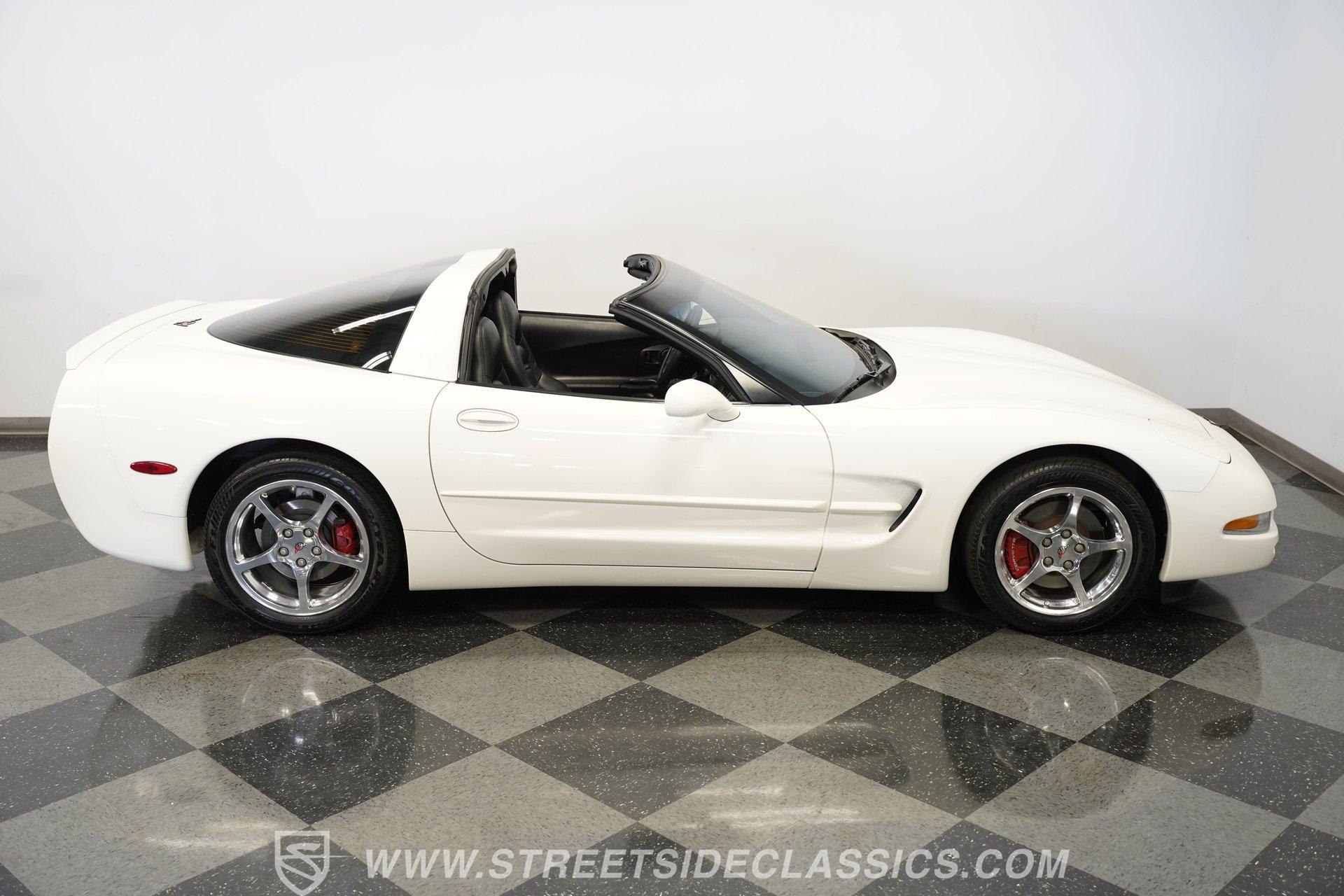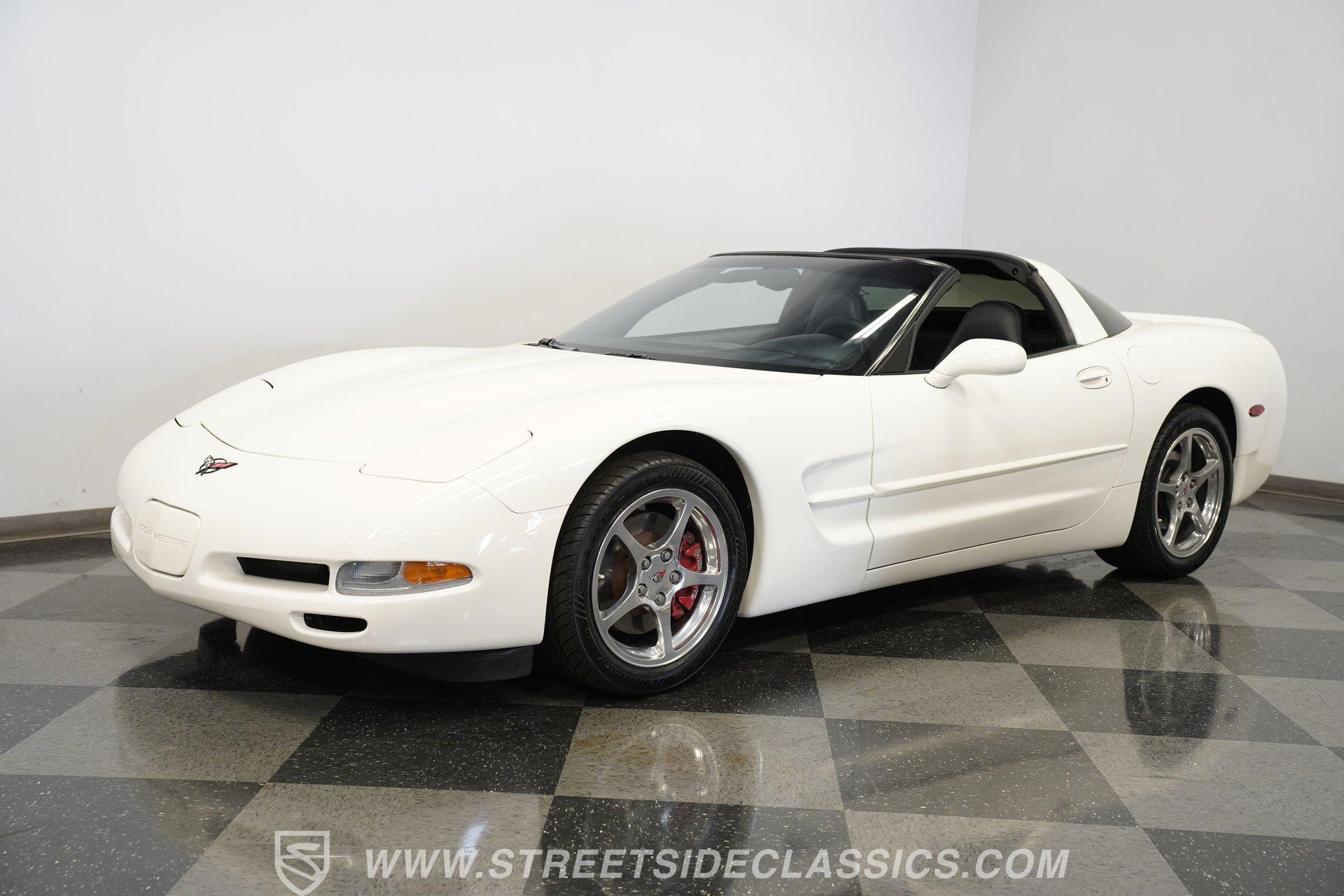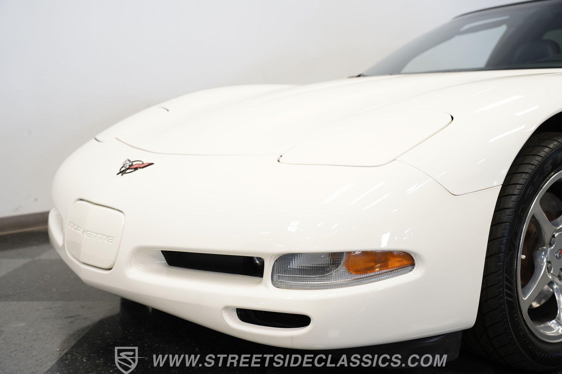 While technically not a 'classic' by insurance standards, the C5 Corvette is a landmark in Chevy's history, representing a turning point towards the future for Chevy. Any true Corvette enthusiast will tell you that finding one, regardless of condition, is always exciting, but finding one that is nearly completely stock sends heart rates to another level of happiness, which is why this numbers-matching 2002 Chevrolet Corvette has us smiling from ear to ear. With just 44,874 actual miles, this Speedway White beauty sports its original paint and body panels, with no accident history. Inside, the original black leather interior remains in great shape, with a center locking console separating plush power bucket seats. Power locks, mirrors, windows, a telescopic steering wheel, cruise control, air conditioning, an AM/FM/CD/AUX stereo, a heads-up display, and a clear view of the sky through its targa top. Pop the classic front-hinged hood of this C5, and you'll find its original 346 cubic-inch LS1 small-block V-8 in its stock condition. Mods aren't necessary when you have 350 horsepower and 360 pound-feet of torque on tap, but thanks to an added cold air intake and full Corsa cat-back exhaust. That power is then routed through its rear-mounted 4L60E four-speed automatic transmission, which looks to be original, before heading out to the 2.73-geared rear end. HIGHLIGHTS: 44,874 Actual Miles Rare Speedway White Believed Original Paint Believed Original Body Panels Rear Spoiler Targa Top Original LS1 V8 Cold Air Intake Full Corsa Cat Back 4L60E Four Speed Auto 2.73 Rear Original Black Leather Power Seats Power Windows Power Locks Power Mirrors Telescopic Wheel AC Cruise Heads Up Display AM/FM/CD/AUX Receipts Owner's Manual This 2002 Chevrolet Corvette rides on a factory-style suspension, with four-wheel power disc brakes all around. Staggered five-spoke chrome wheels measure 17 inches in front and 18 inches in the rear. This Speedway White C5 is a perfect example of the perfect collector's car. Unaltered in any significant way, no accidents, and the rarest exterior color of the 2002 model year, all make for a car that can be bought with confidence. With less than 45,000 miles on the odometer, this is also a car that can allow you to enjoy the magic of a C5 if you missed it the first time around, or simply want to relive it all over again. Call today!