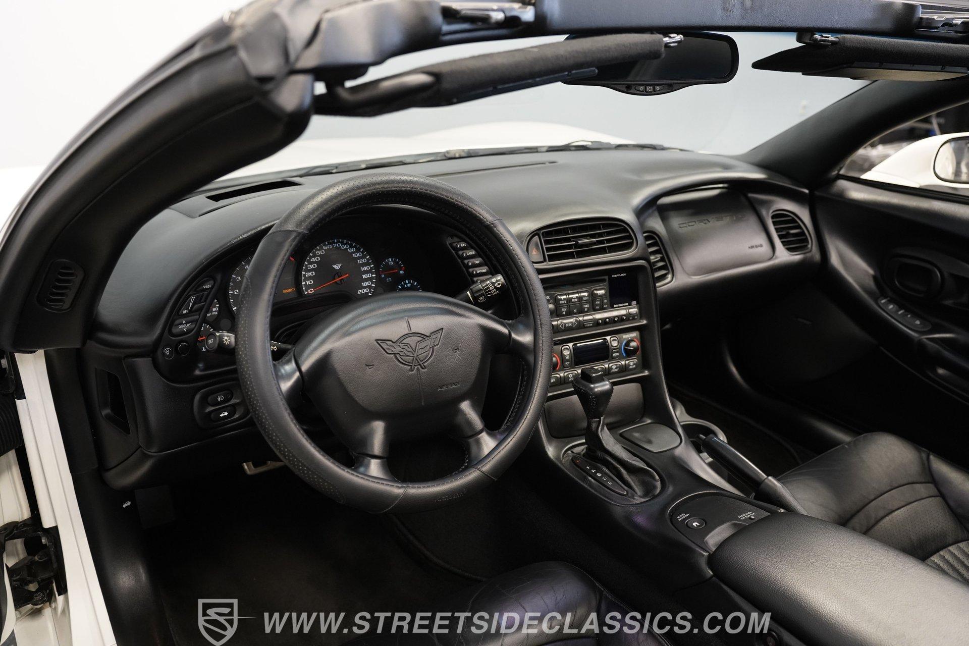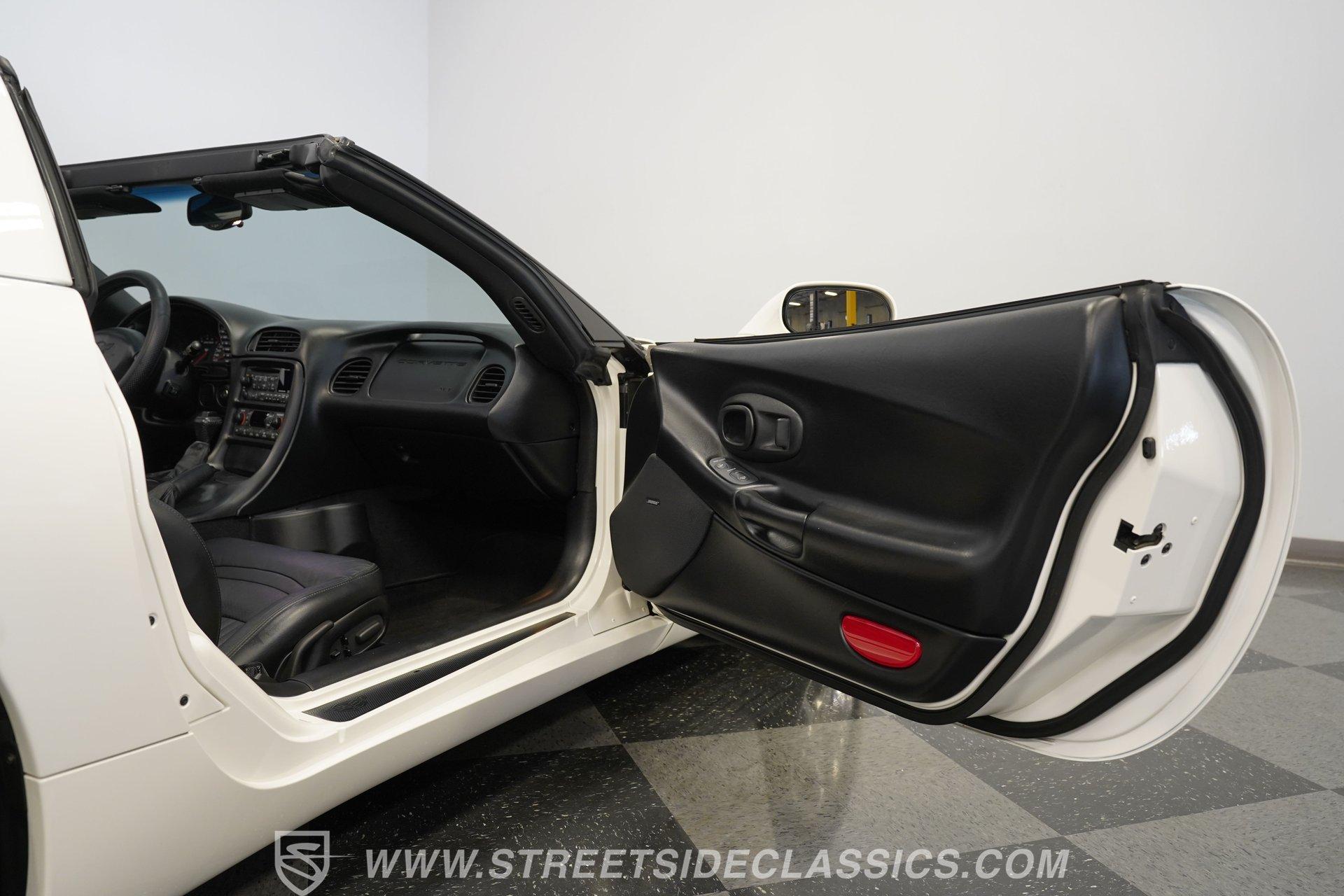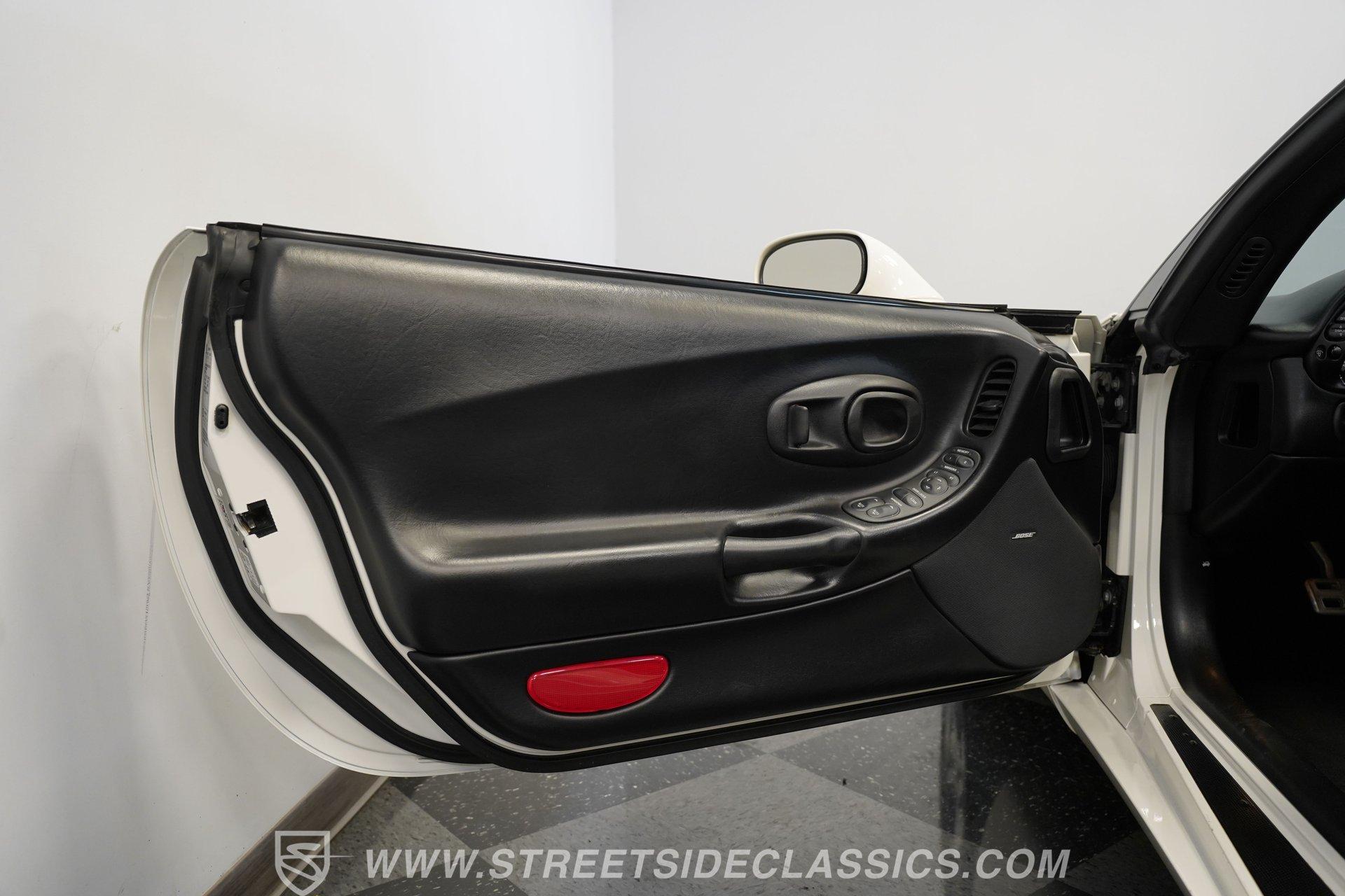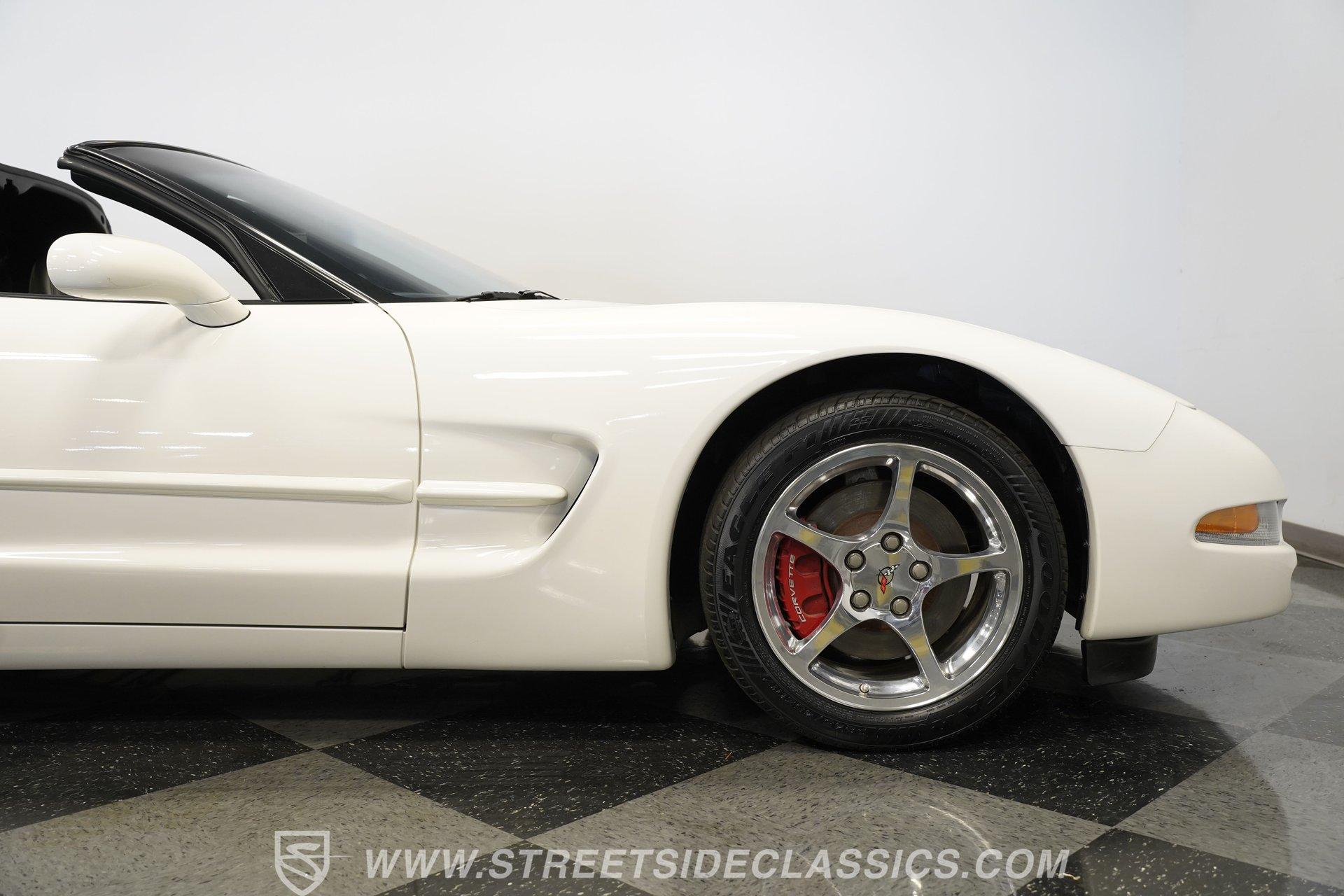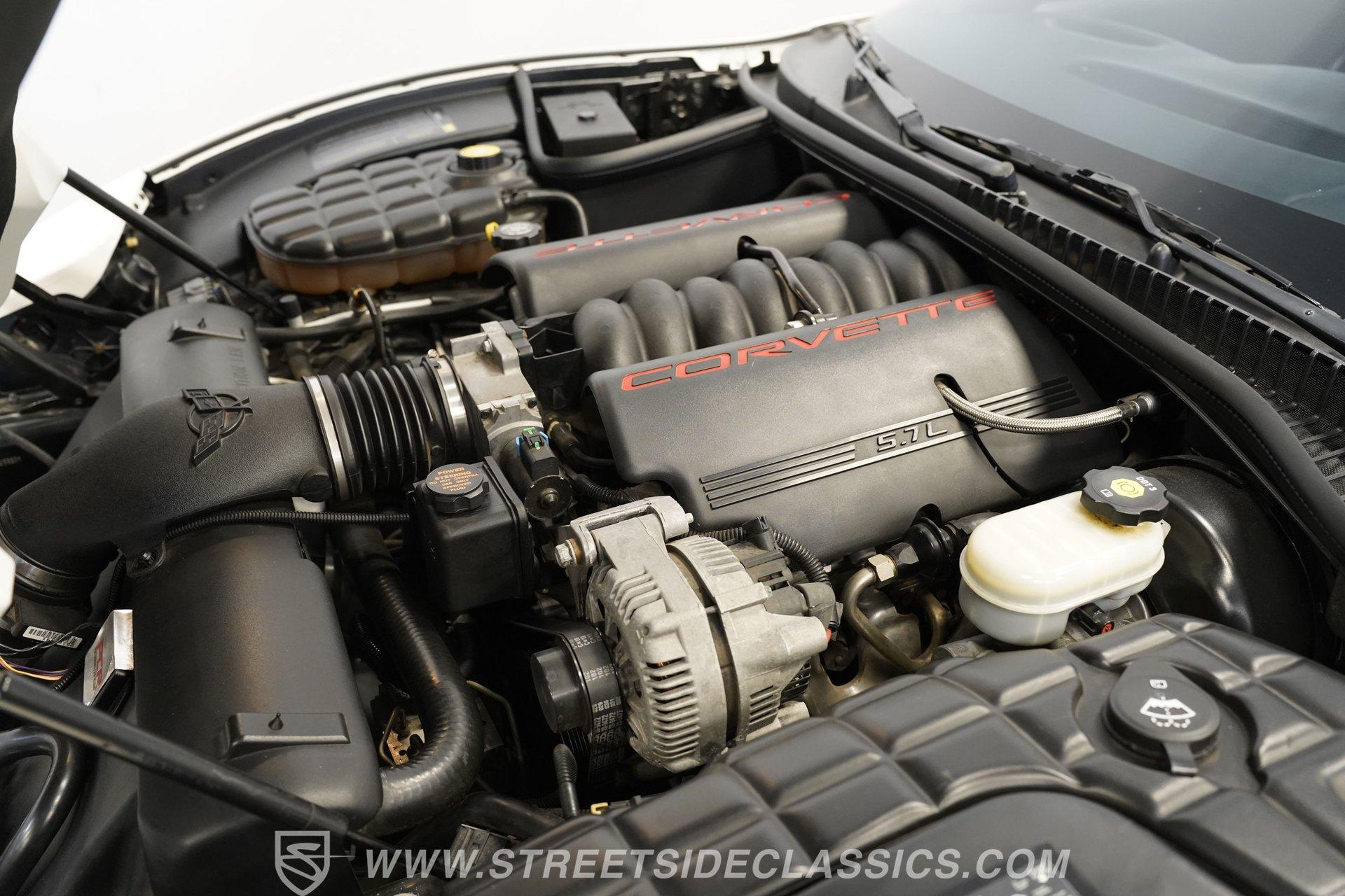 While technically not a 'classic' by insurance standards, the C5 Corvette is a landmark in Chevy's history, representing a turning point towards the future for Chevy. Any true Corvette enthusiast will tell you that finding one, regardless of condition, is always exciting, but finding one that is nearly completely stock sends heart rates to another level of happiness, which is why this numbers-matching 2002 Chevrolet Corvette has us smiling from ear to ear. With just 44,874 actual miles, this Speedway White beauty sports its original paint and body panels, with no accident history. Inside, the original black leather interior remains in great shape, with a center locking console separating plush power bucket seats. Power locks, mirrors, windows, a telescopic steering wheel, cruise control, air conditioning, an AM/FM/CD/AUX stereo, a heads-up display, and a clear view of the sky through its targa top. Pop the classic front-hinged hood of this C5, and you'll find its original 346 cubic-inch LS1 small-block V-8 in its stock condition. Mods aren't necessary when you have 350 horsepower and 360 pound-feet of torque on tap, but thanks to an added cold air intake and full Corsa cat-back exhaust. That power is then routed through its rear-mounted 4L60E four-speed automatic transmission, which looks to be original, before heading out to the 2.73-geared rear end. HIGHLIGHTS: 44,874 Actual Miles Rare Speedway White Believed Original Paint Believed Original Body Panels Rear Spoiler Targa Top Original LS1 V8 Cold Air Intake Full Corsa Cat Back 4L60E Four Speed Auto 2.73 Rear Original Black Leather Power Seats Power Windows Power Locks Power Mirrors Telescopic Wheel AC Cruise Heads Up Display AM/FM/CD/AUX Receipts Owner's Manual This 2002 Chevrolet Corvette rides on a factory-style suspension, with four-wheel power disc brakes all around. Staggered five-spoke chrome wheels measure 17 inches in front and 18 inches in the rear. This Speedway White C5 is a perfect example of the perfect collector's car. Unaltered in any significant way, no accidents, and the rarest exterior color of the 2002 model year, all make for a car that can be bought with confidence. With less than 45,000 miles on the odometer, this is also a car that can allow you to enjoy the magic of a C5 if you missed it the first time around, or simply want to relive it all over again. Call today!