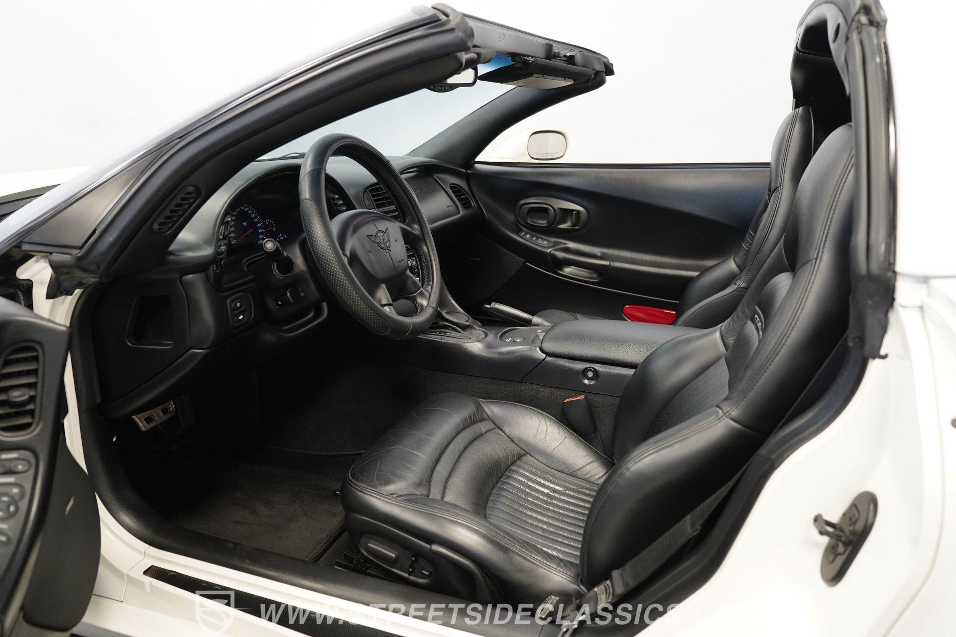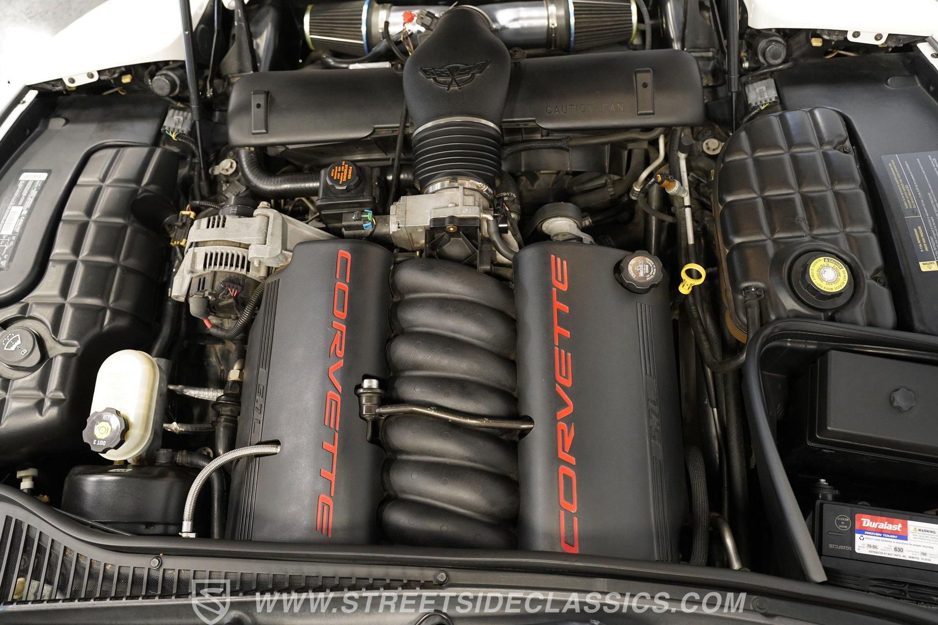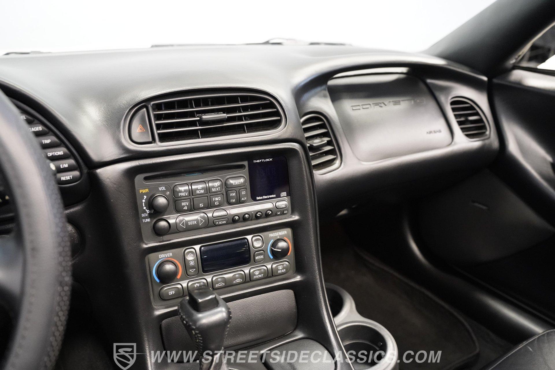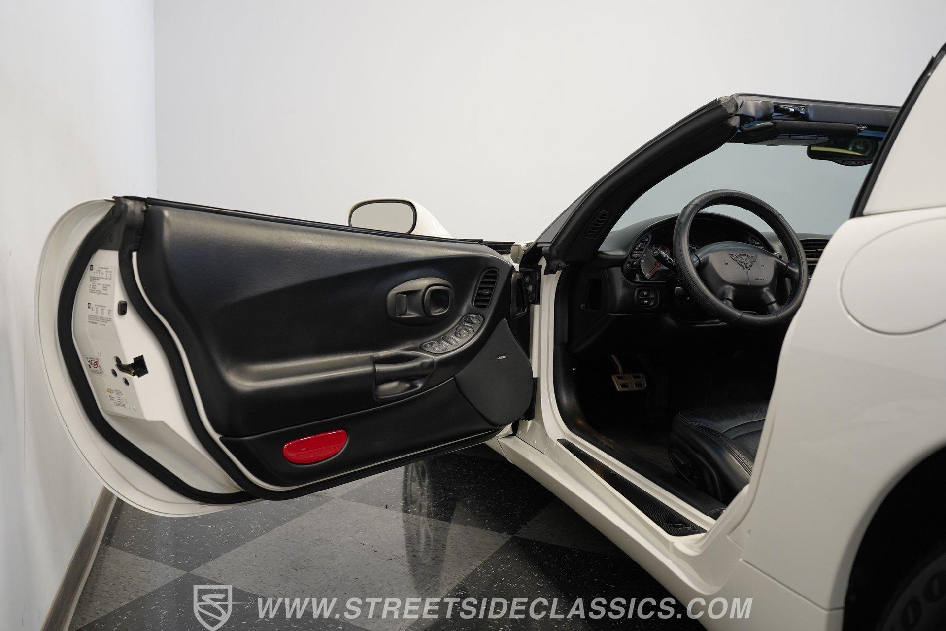 While technically not a 'classic' by insurance standards, the C5 Corvette is a landmark in Chevy's history, representing a turning point towards the future for Chevy. Any true Corvette enthusiast will tell you that finding one, regardless of condition, is always exciting, but finding one that is nearly completely stock sends heart rates to another level of happiness, which is why this numbers-matching 2002 Chevrolet Corvette has us smiling from ear to ear. With just 44,874 actual miles, this Speedway White beauty sports its original paint and body panels, with no accident history. Inside, the original black leather interior remains in great shape, with a center locking console separating plush power bucket seats. Power locks, mirrors, windows, a telescopic steering wheel, cruise control, air conditioning, an AM/FM/CD/AUX stereo, a heads-up display, and a clear view of the sky through its targa top. Pop the classic front-hinged hood of this C5, and you'll find its original 346 cubic-inch LS1 small-block V-8 in its stock condition. Mods aren't necessary when you have 350 horsepower and 360 pound-feet of torque on tap, but thanks to an added cold air intake and full Corsa cat-back exhaust. That power is then routed through its rear-mounted 4L60E four-speed automatic transmission, which looks to be original, before heading out to the 2.73-geared rear end. HIGHLIGHTS: 44,874 Actual Miles Rare Speedway White Believed Original Paint Believed Original Body Panels Rear Spoiler Targa Top Original LS1 V8 Cold Air Intake Full Corsa Cat Back 4L60E Four Speed Auto 2.73 Rear Original Black Leather Power Seats Power Windows Power Locks Power Mirrors Telescopic Wheel AC Cruise Heads Up Display AM/FM/CD/AUX Receipts Owner's Manual This 2002 Chevrolet Corvette rides on a factory-style suspension, with four-wheel power disc brakes all around. Staggered five-spoke chrome wheels measure 17 inches in front and 18 inches in the rear. This Speedway White C5 is a perfect example of the perfect collector's car. Unaltered in any significant way, no accidents, and the rarest exterior color of the 2002 model year, all make for a car that can be bought with confidence. With less than 45,000 miles on the odometer, this is also a car that can allow you to enjoy the magic of a C5 if you missed it the first time around, or simply want to relive it all over again. Call today!