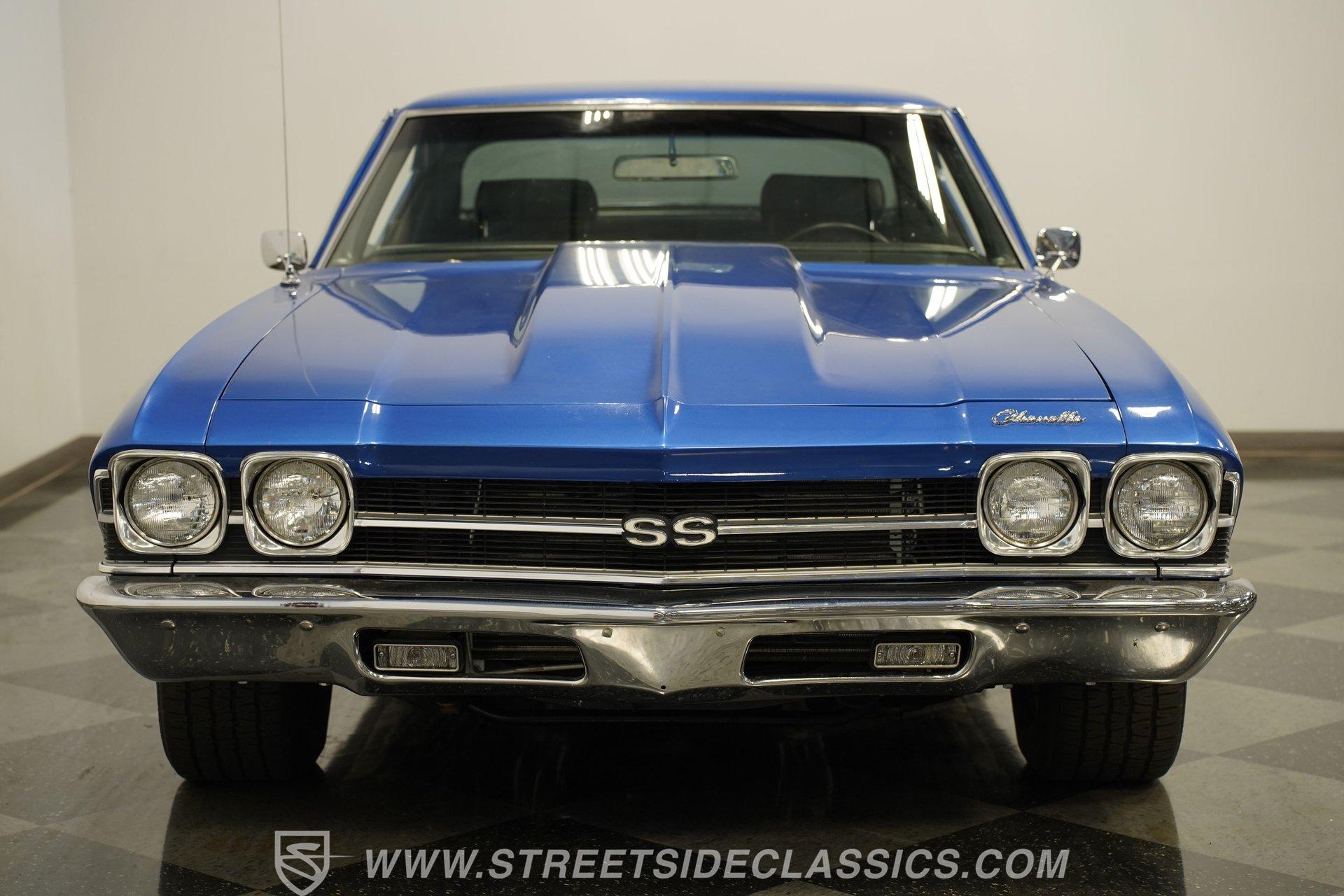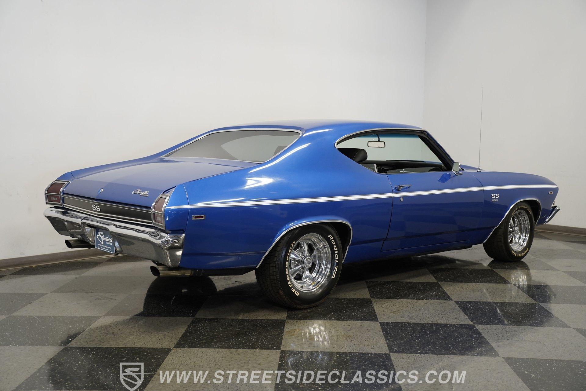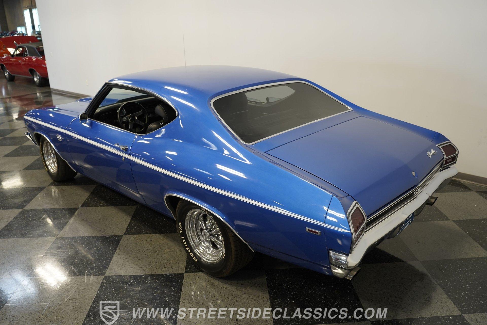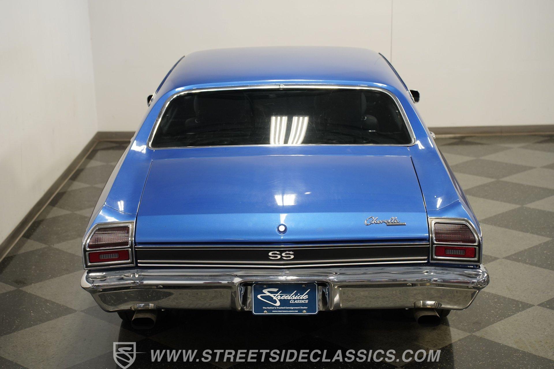 It is amazing how, when it comes to classic cars, two letters and three numbers can instantly open up a floodgate of memories and a rush of adrenaline. Fully repainted in this stunning royal blue, complete with dual white side stripes, this 1969 Chevrolet Chevelle SS 396 Tribute looks every bit the boulevard bruiser as it would have half a century ago. Inside, we find a nicely redone black vinyl interior. A center console separates dual bucket seats, while a four-spoke power-assisted wheel sits just ahead of a massive 8,000-rpm column-mounted tachometer, and a trio of white-faced auxiliary gauges are situated under the dash, displaying engine volts, water temperature, and oil pressure. Power windows and air conditioning add a bit of civility. At the same time, an AM/FM/CD player also offers Bluetooth connectivity, but truth be told, as good as that stereo is, that big Hurst T-bar shifter provides more entertainment than speakers ever could. Under that expansive cowl hood, we find a clean engine bay with a big 396-cubic-inch V-8. A chrome air cleaner and matching valve covers contrast the old-school primer-orange block and intake manifold. Fed by a FItech TBI electronic fuel injection system, this big block does away with spent gases through a set of long tube headers and dual exhaust capped off with a pair of sweet-sounding FlowMaster mufflers to give this Chevelle its muscle car rumble. That power is routed through a tried-and-true Richmond five-speed manual transmission before heading to the 12-bolt rear end, which transfers those ponies to the pavement via a set of 15-inch SS wheels shod with BFGoodrich Radial T/A tires. HIGHLIGHTS: Full Blue Repaint SS Badging White Side Stripes Cowl Hood 396 CID V8 EFI Long Tubes FlowMaster Dual Exhaust Richmond Five Speed Manual Hurst Shifter 12 Bolt Rear Lowered Suspension Front Coilovers Power Brakes Front Disc Brakes Cragar SS Wheels Power Steering Redone Black Vinyl Interior Power Windows Bucket Seats Aux Gauges AC AM/FM/CD Bluetooth This 1969 Chevrolet Chevelle SS 396 Tribute rides on a factory-style suspension, features upgraded coilovers up front, and has been lowered to not only increase handling prowess but also give this muscle car an even more intimidating stance. Power brakes feature front discs that are ready to scrub off speed without drama, allowing you to simply enjoy cruising to anywhere-or nowhere-at any time you want. If you are one of the many whose heart begins beating just a little faster whenever you see the 'SS 396', then maybe it's time you are the one behind the wheel, bringing alphanumeric joy to onlookers everywhere. But don't wait, call today!
