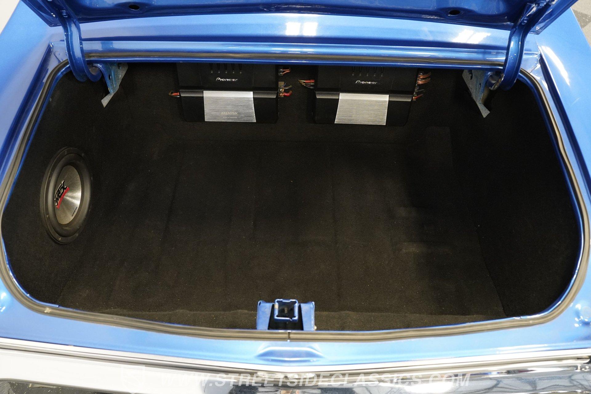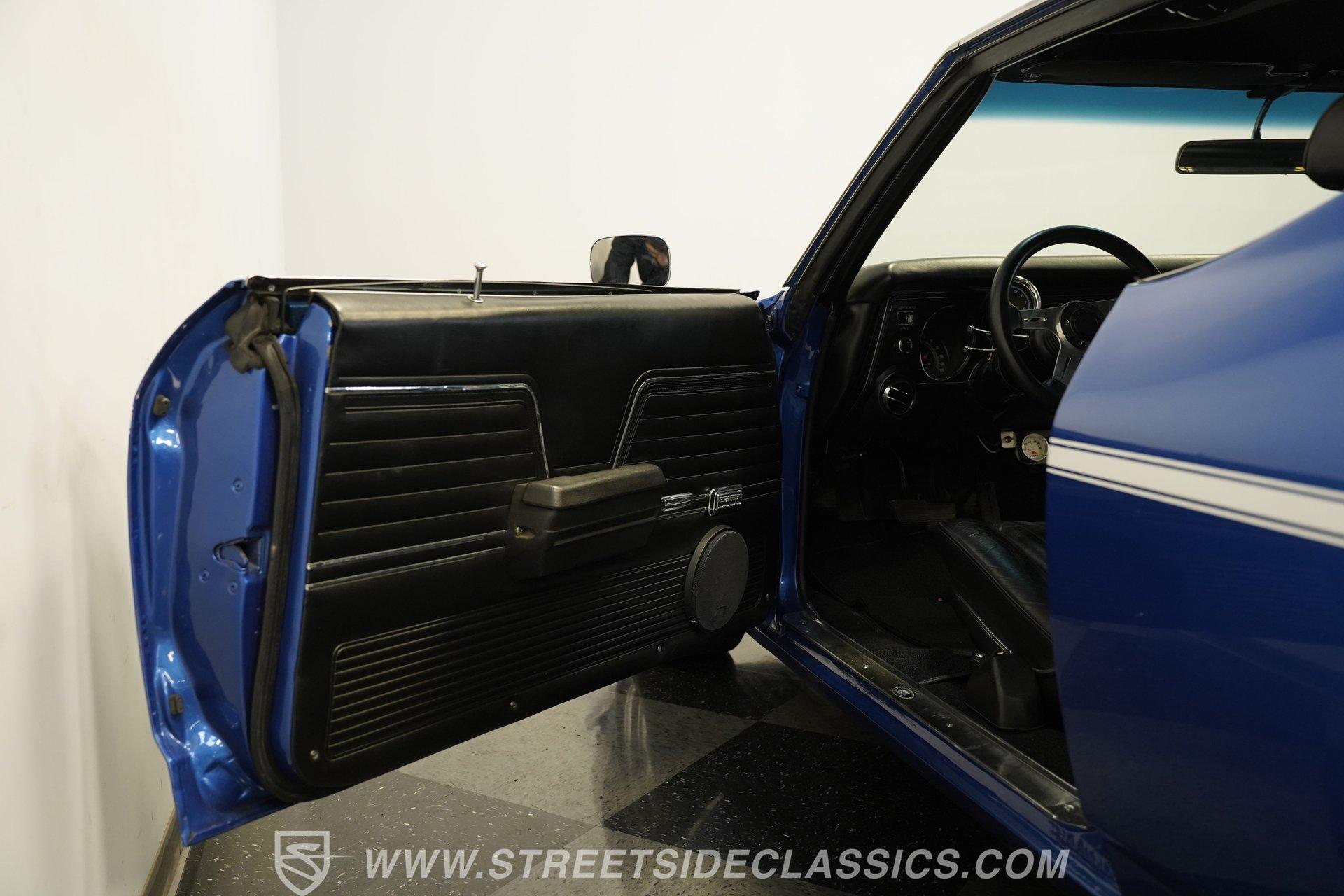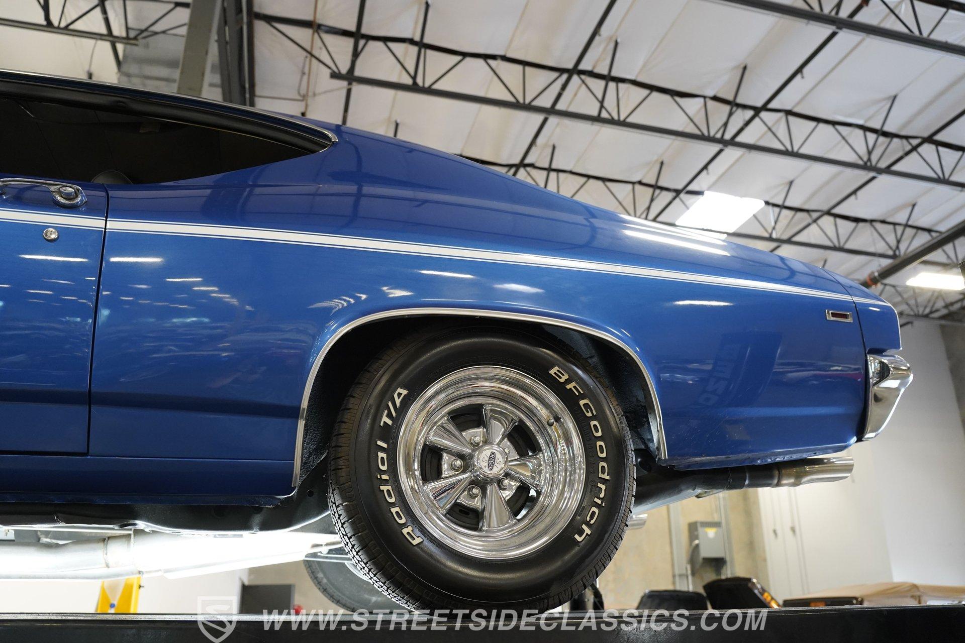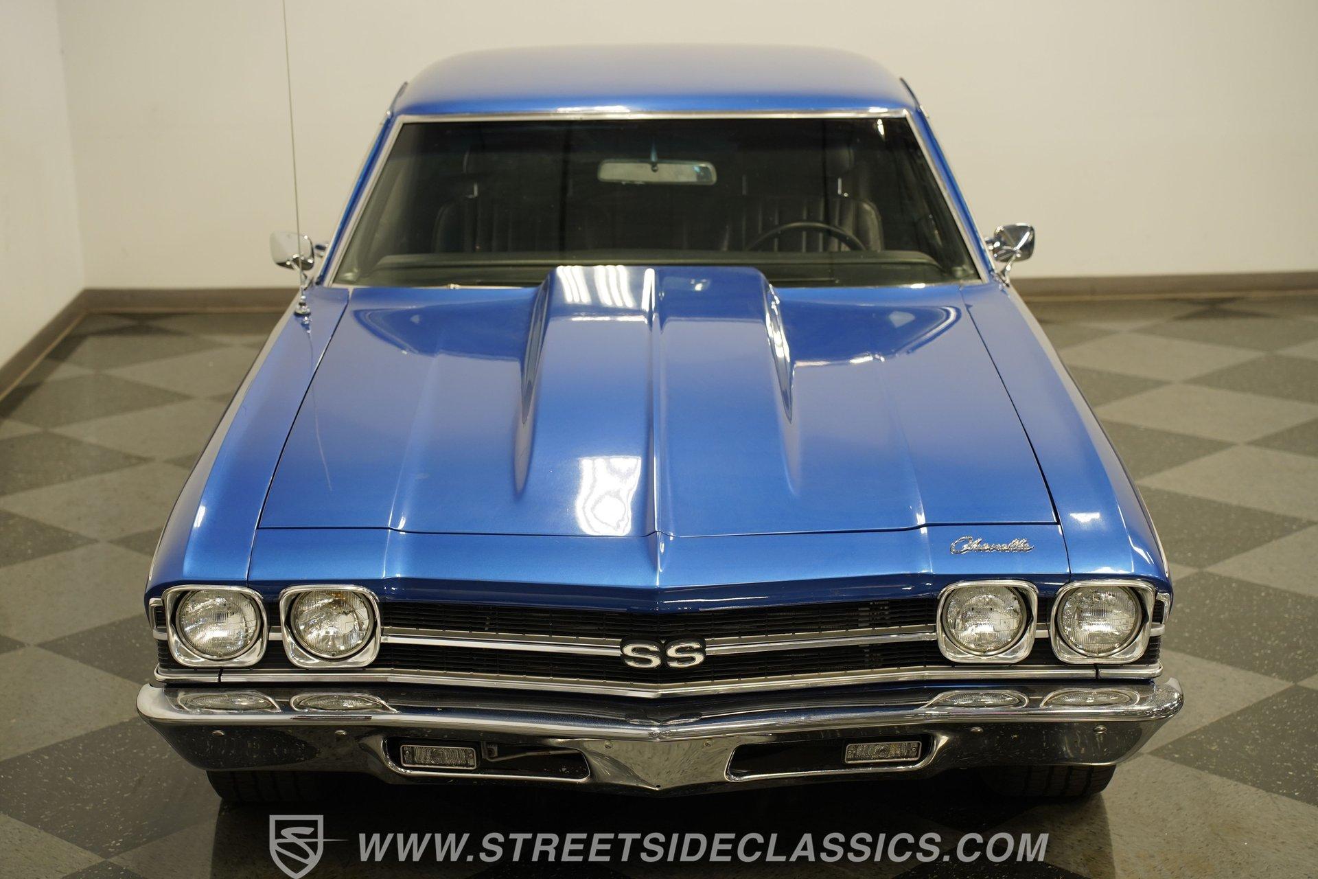 It is amazing how, when it comes to classic cars, two letters and three numbers can instantly open up a floodgate of memories and a rush of adrenaline. Fully repainted in this stunning royal blue, complete with dual white side stripes, this 1969 Chevrolet Chevelle SS 396 Tribute looks every bit the boulevard bruiser as it would have half a century ago. Inside, we find a nicely redone black vinyl interior. A center console separates dual bucket seats, while a four-spoke power-assisted wheel sits just ahead of a massive 8,000-rpm column-mounted tachometer, and a trio of white-faced auxiliary gauges are situated under the dash, displaying engine volts, water temperature, and oil pressure. Power windows and air conditioning add a bit of civility. At the same time, an AM/FM/CD player also offers Bluetooth connectivity, but truth be told, as good as that stereo is, that big Hurst T-bar shifter provides more entertainment than speakers ever could. Under that expansive cowl hood, we find a clean engine bay with a big 396-cubic-inch V-8. A chrome air cleaner and matching valve covers contrast the old-school primer-orange block and intake manifold. Fed by a FItech TBI electronic fuel injection system, this big block does away with spent gases through a set of long tube headers and dual exhaust capped off with a pair of sweet-sounding FlowMaster mufflers to give this Chevelle its muscle car rumble. That power is routed through a tried-and-true Richmond five-speed manual transmission before heading to the 12-bolt rear end, which transfers those ponies to the pavement via a set of 15-inch SS wheels shod with BFGoodrich Radial T/A tires. HIGHLIGHTS: Full Blue Repaint SS Badging White Side Stripes Cowl Hood 396 CID V8 EFI Long Tubes FlowMaster Dual Exhaust Richmond Five Speed Manual Hurst Shifter 12 Bolt Rear Lowered Suspension Front Coilovers Power Brakes Front Disc Brakes Cragar SS Wheels Power Steering Redone Black Vinyl Interior Power Windows Bucket Seats Aux Gauges AC AM/FM/CD Bluetooth This 1969 Chevrolet Chevelle SS 396 Tribute rides on a factory-style suspension, features upgraded coilovers up front, and has been lowered to not only increase handling prowess but also give this muscle car an even more intimidating stance. Power brakes feature front discs that are ready to scrub off speed without drama, allowing you to simply enjoy cruising to anywhere-or nowhere-at any time you want. If you are one of the many whose heart begins beating just a little faster whenever you see the 'SS 396', then maybe it's time you are the one behind the wheel, bringing alphanumeric joy to onlookers everywhere. But don't wait, call today!