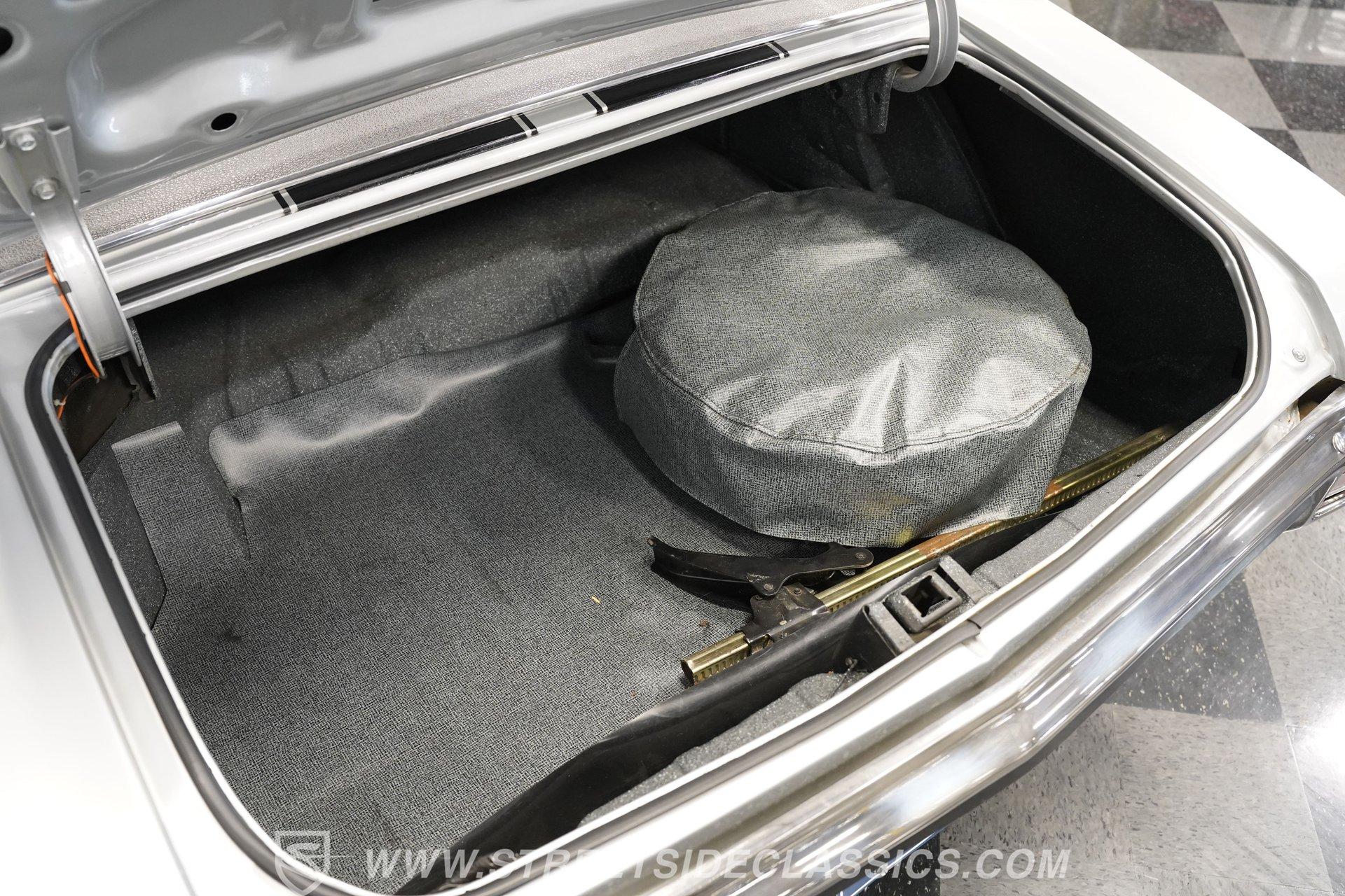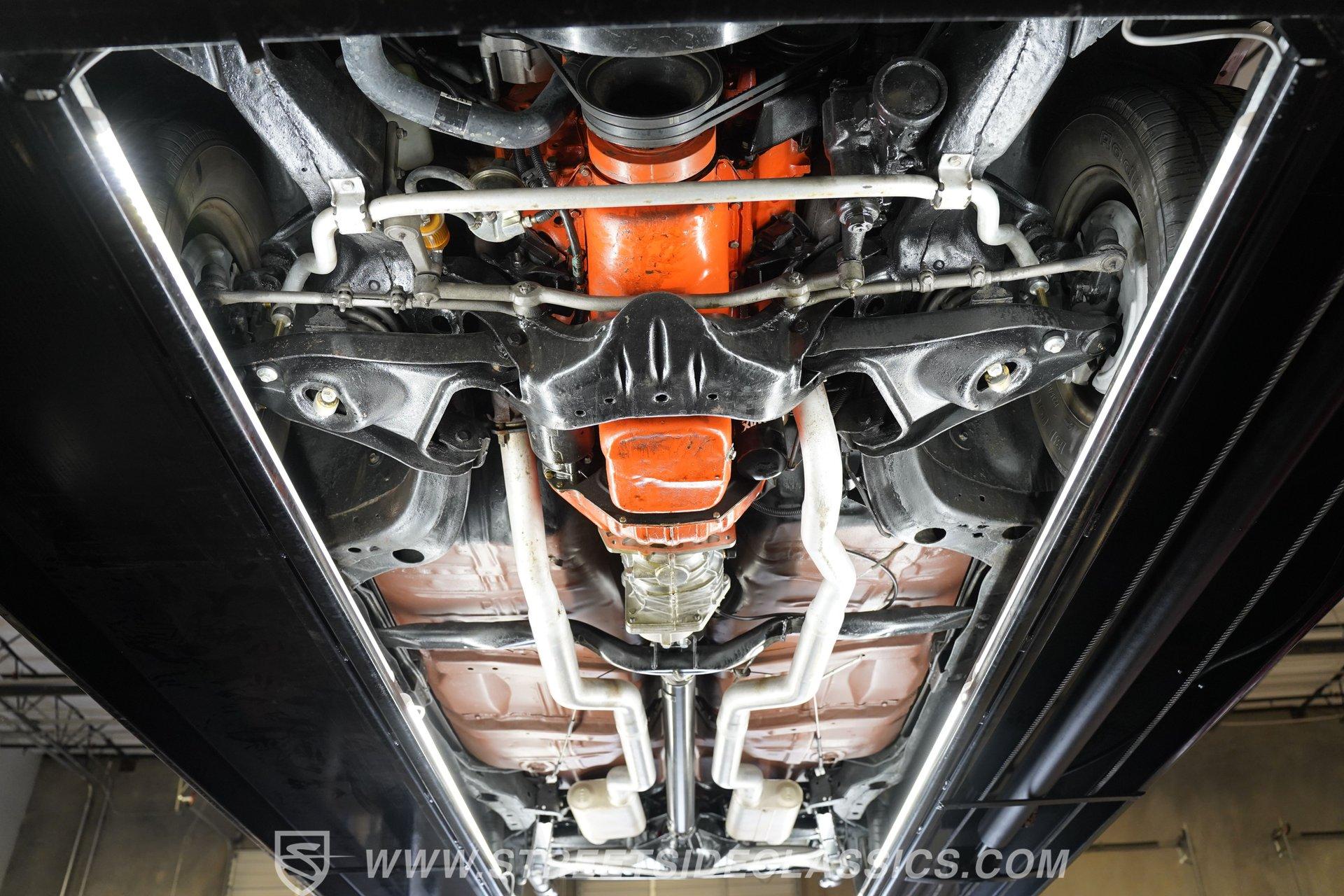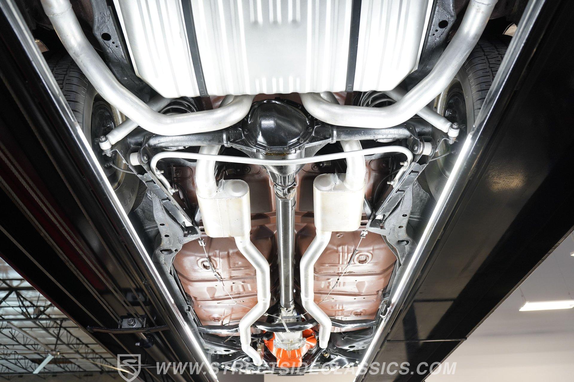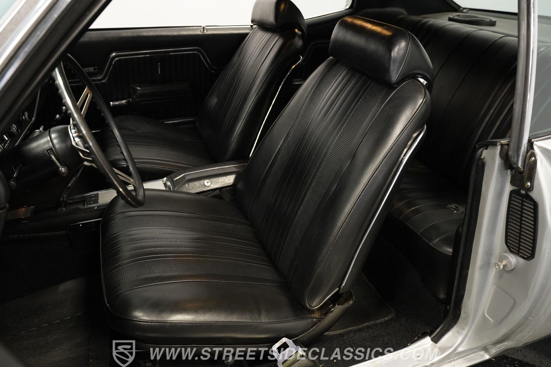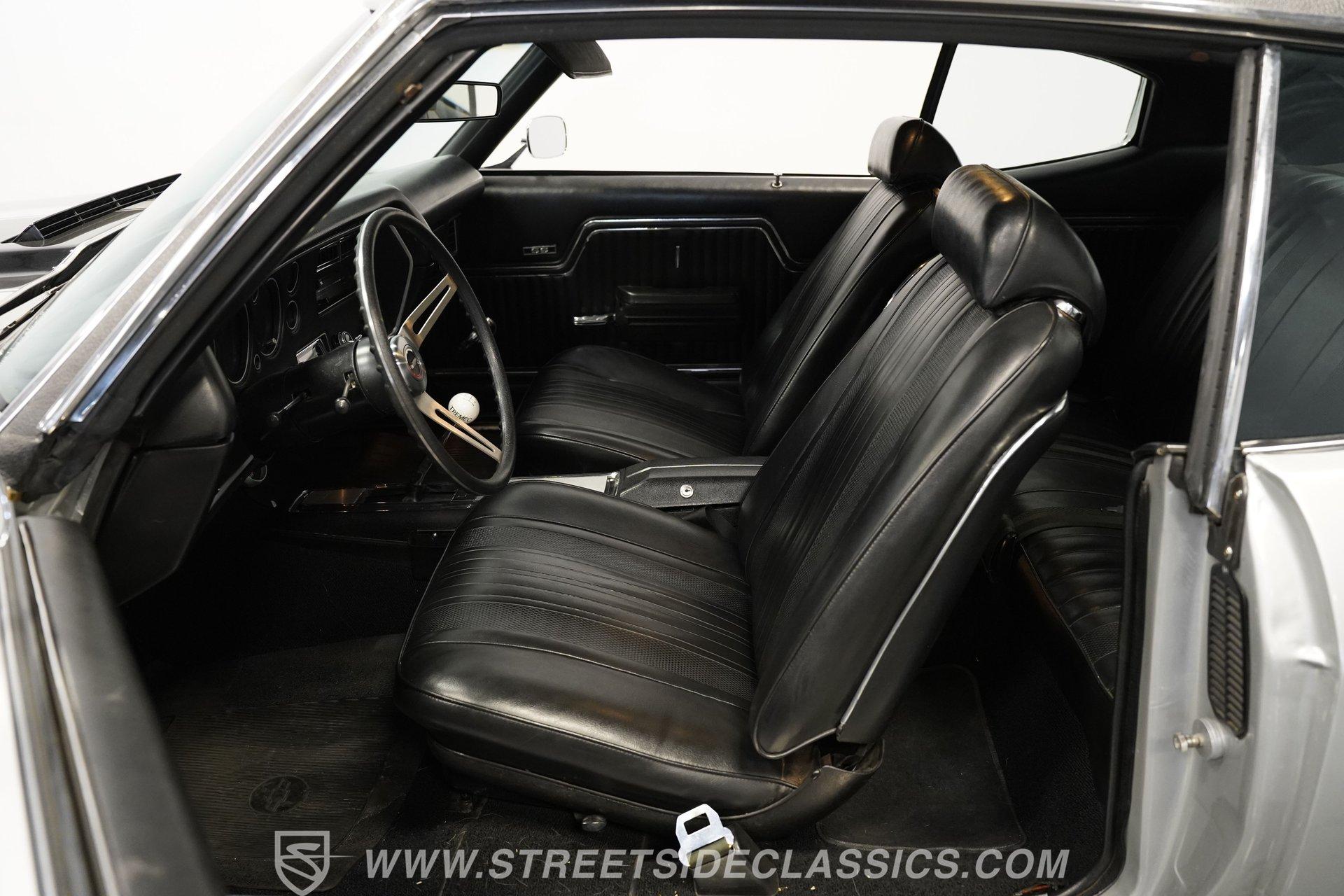 Black vinyl bucket seats anchor the performance-focused cockpit. The floor-mounted Hurst 5-speed shifter rises from the center console, ready for quick gear changes. Amenities include a modern Classic Auto Air air conditioning system, factory-style in-dash tach and gauge cluster, tilt steering column and a factory-style three-spoke sport steering wheel. An upgraded retro AM/FM/AUX/Bluetooth stereo provides music for cruising. The healthy 396 cubic-inch V8 pairs with a 5-speed manual transmission, channeling power through a stout 12-bolt rear end. The engine compartment is detailed and largely stock in appearance. Features include a GM aluminum intake manifold, Edelbrock AVS2 four-barrel carburetor, functional cowl induction hood, serpentine belt system, stock chrome valve covers, power steering, power brakes with front discs and a Champion aluminum radiator. A rumbling dual exhaust system equipped with chambered Flowmaster-style mufflers provides the perfect muscle car sound. The suspension setup includes coil springs, shocks, and a rear sway bar with heavy-duty boxed rear lower control arms for improved handling and street performance. HIGHLIGHTS: 396 V8 Engine 5-Speed Manual Transmission Edelbrock 4-Barrel Carburetor 12-Bolt Rear End Front Power Disc Brakes Dual Exhaust Aluminum Radiator Rear Sway Bar with Boxed Control Arms Cortez Silver Paint SS Badging Modern Air Conditioning 15-inch Chrome SS-Style Wheels Functional Cowl Induction Hood Black Interior with Bucket Seats Center Console Hurst Shifter Power Steering Retro AM/FM/AUX Stereo Tilt Steering Column Factory-Style Tach and Gauge Cluster Serpentine Belt System This 1970 Chevelle SS 396 Tribute combines V8 muscle, manual shifting action, and street-ready style in one potent package. The silver-on-black color scheme and upgraded audio system make this classic perfect for both cruising and showing. Call today!