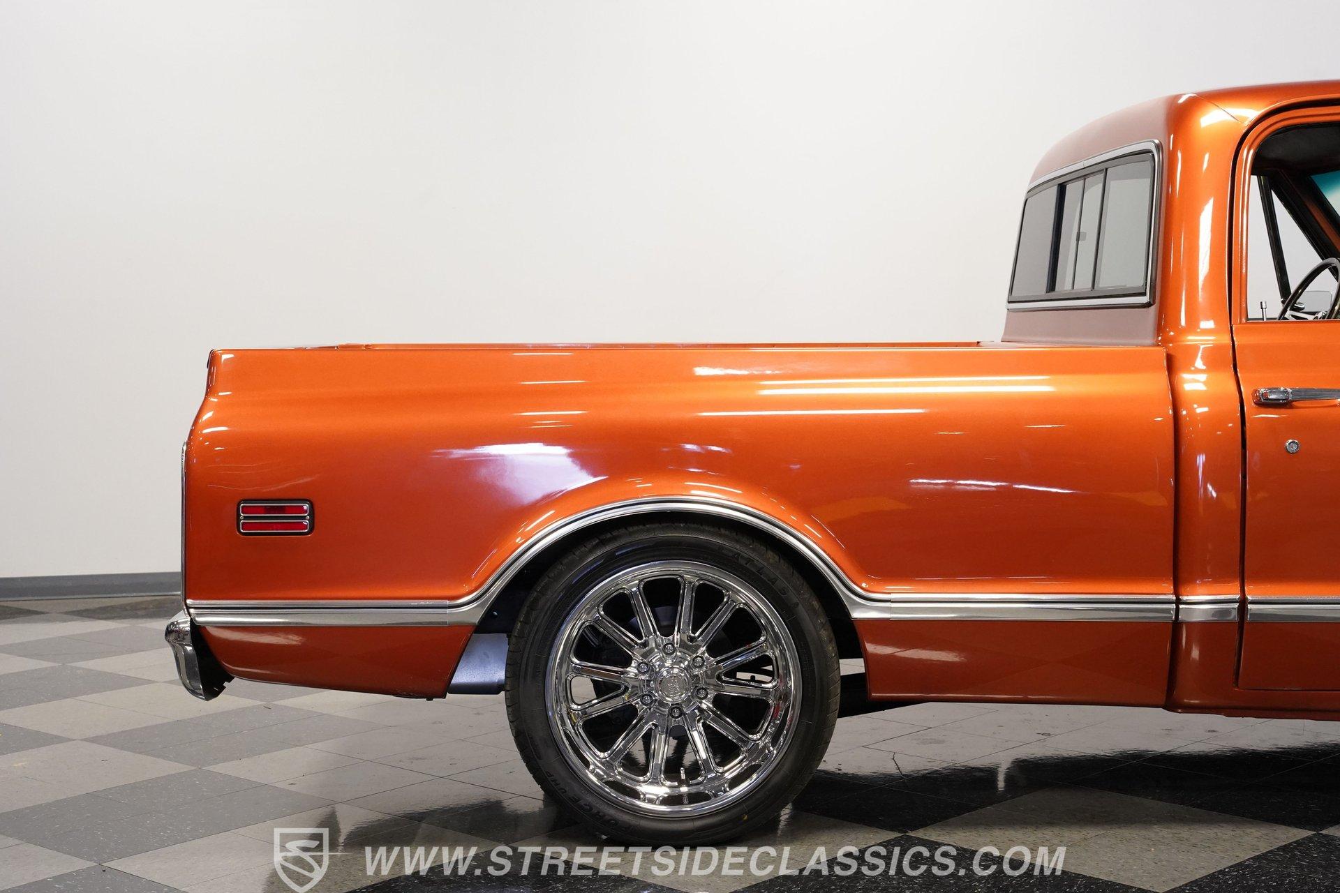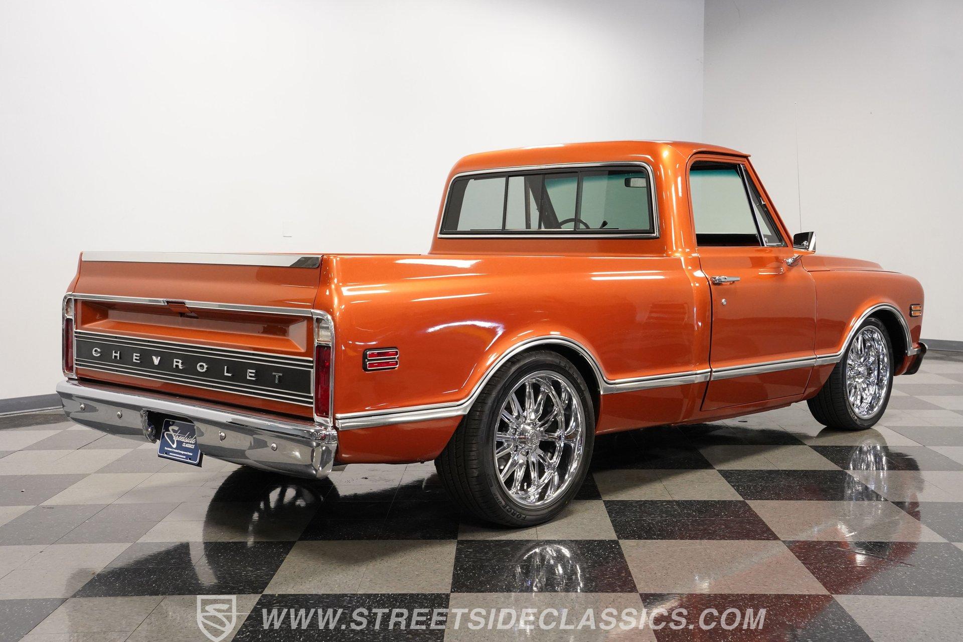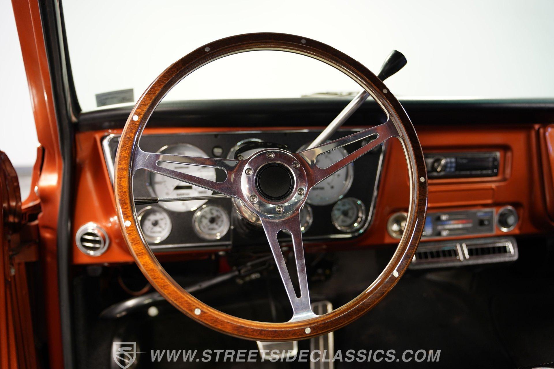 Some vehicles are more than transportation; they are time machines that remind us of the golden era of American craftsmanship. Picture yourself behind the wheel of a classic pickup that turns heads at every stoplight, a truck that blends vintage appeal with modern confidence. Imagine the stories you'll tell and the memories you'll create cruising to shows, hauling weekend finds, or simply enjoying the open road. The 1968 Chevrolet C10 LS 5.3L Restomod is not just a truck... it's a statement, ready for its next chapter with you in the driver's seat. Step inside and experience a thoughtfully restored interior that invites you to settle in and stay awhile. The diamond-stitched bench seat with integrated cupholders offers both comfort and style, complemented by matching diamond-stitched door panels. The fresh carpet, clean glass, and modern touches like an aftermarket Alpine radio and Intellitronix digital gauges blend classic charm with contemporary convenience. An under-dash mounted AC system ensures you stay cool, while the woodgrain steering wheel adds a touch of sophistication to every drive. Under the hood, you'll find a 5.3L LS V8 Vortec engine paired with a 4L60E 4-speed automatic transmission, delivering a smooth yet spirited driving experience. The engine bay presents well with stainless shorty headers and FlowMaster mufflers providing a satisfying rumble. Power steering and four-wheel power disc brakes ensure confident handling, while lowering springs and a 12-bolt rear axle complete the performance upgrades. This truck is built to cruise, offering reliability and excitement whether you're headed across town or across state lines. Highlights 5.3L LS V8 Vortec Engine 4L60E 4-Speed Automatic Transmission Four-Wheel Power Disc Brakes Power Steering Stainless Shorty Headers Lowered Suspension 20" Chrome U.S. Mags Wheels Spray-In X-LINE Bedliner FlowMaster Mufflers Diamond-Stitched Bench Seat With Cupholders Alpine Radio, Intellitronix Gauges Under-Dash Mounted Air Conditioning (R-134A) Relocated Gas Tank Under Bed Financing Available Vehicle Protection Plans Available Worldwide Shipping This 1968 Chevrolet C10 LS 5.3L Restomod is the perfect blend of classic style and modern upgrades, making it a standout choice for enthusiasts and collectors alike. Don't miss your chance to own a true piece of automotive history that's ready to drive and enjoy today. Call, email, or come visit our showroom today!