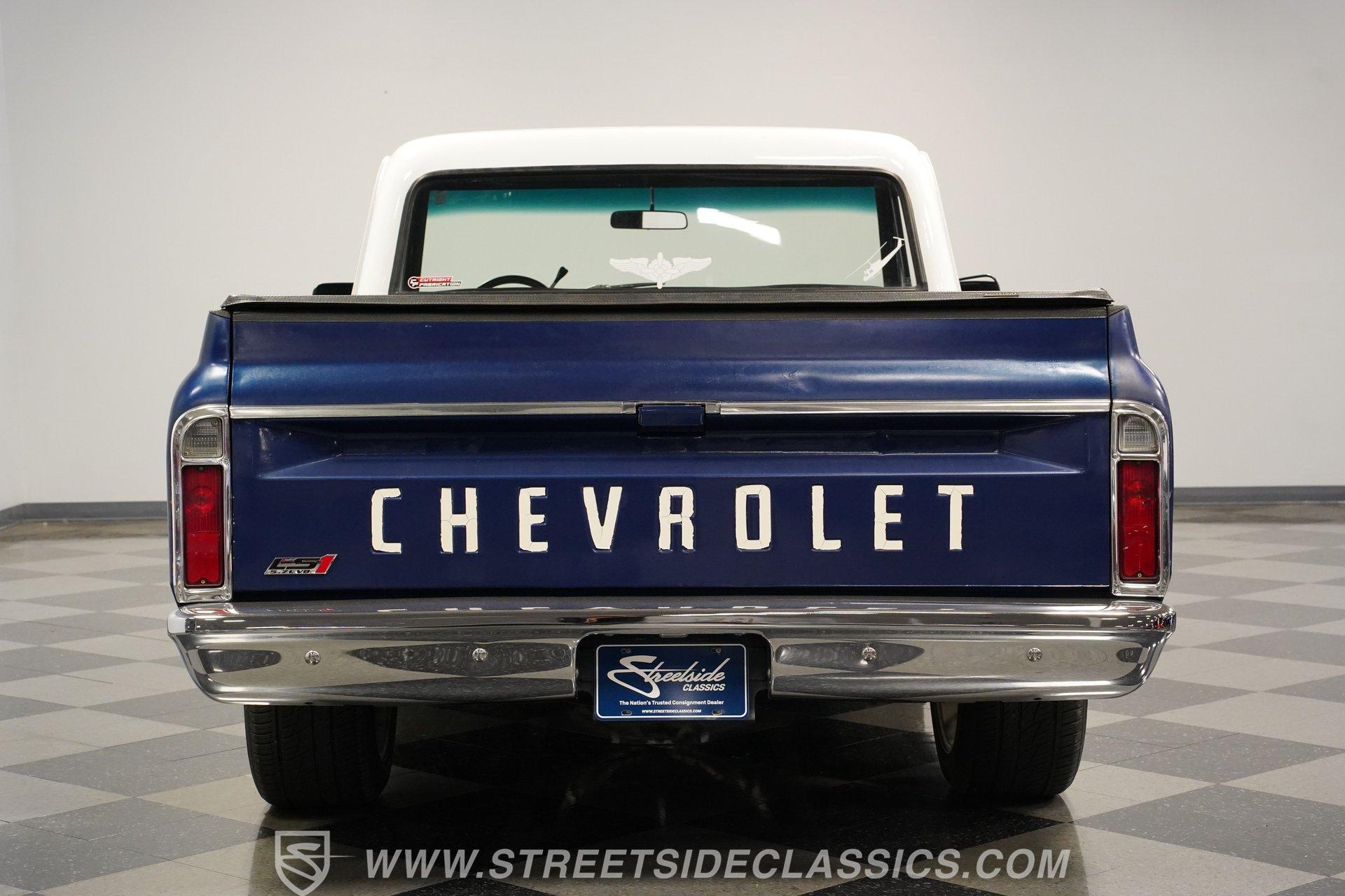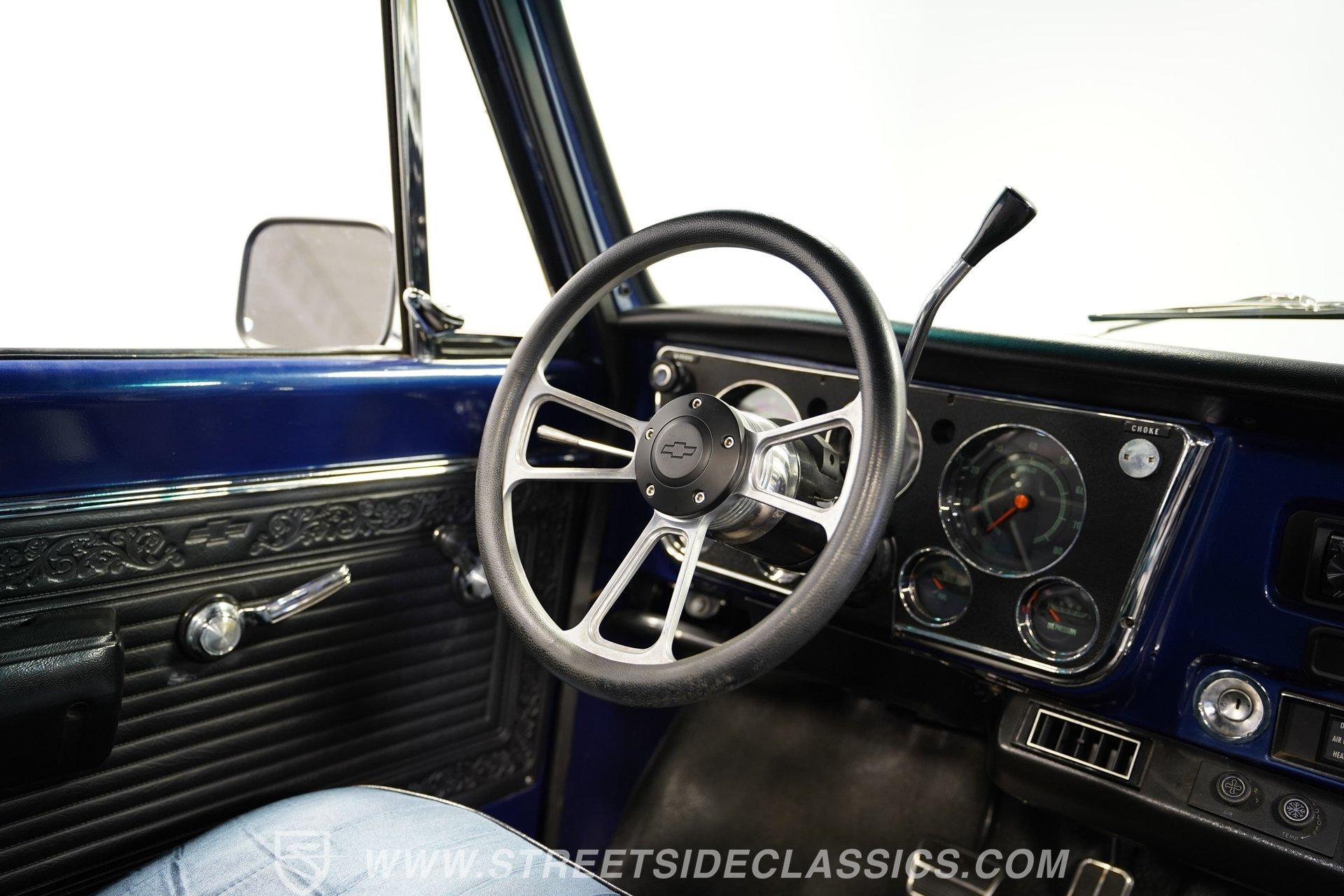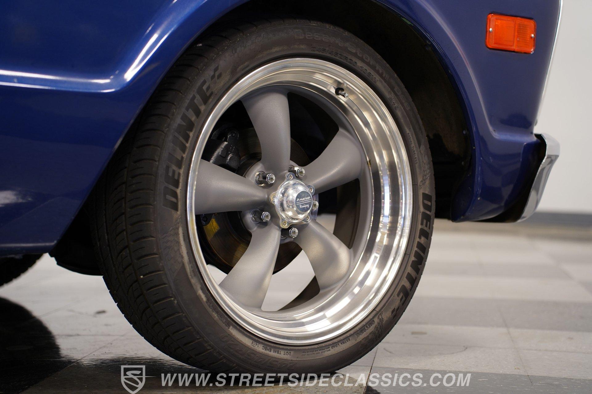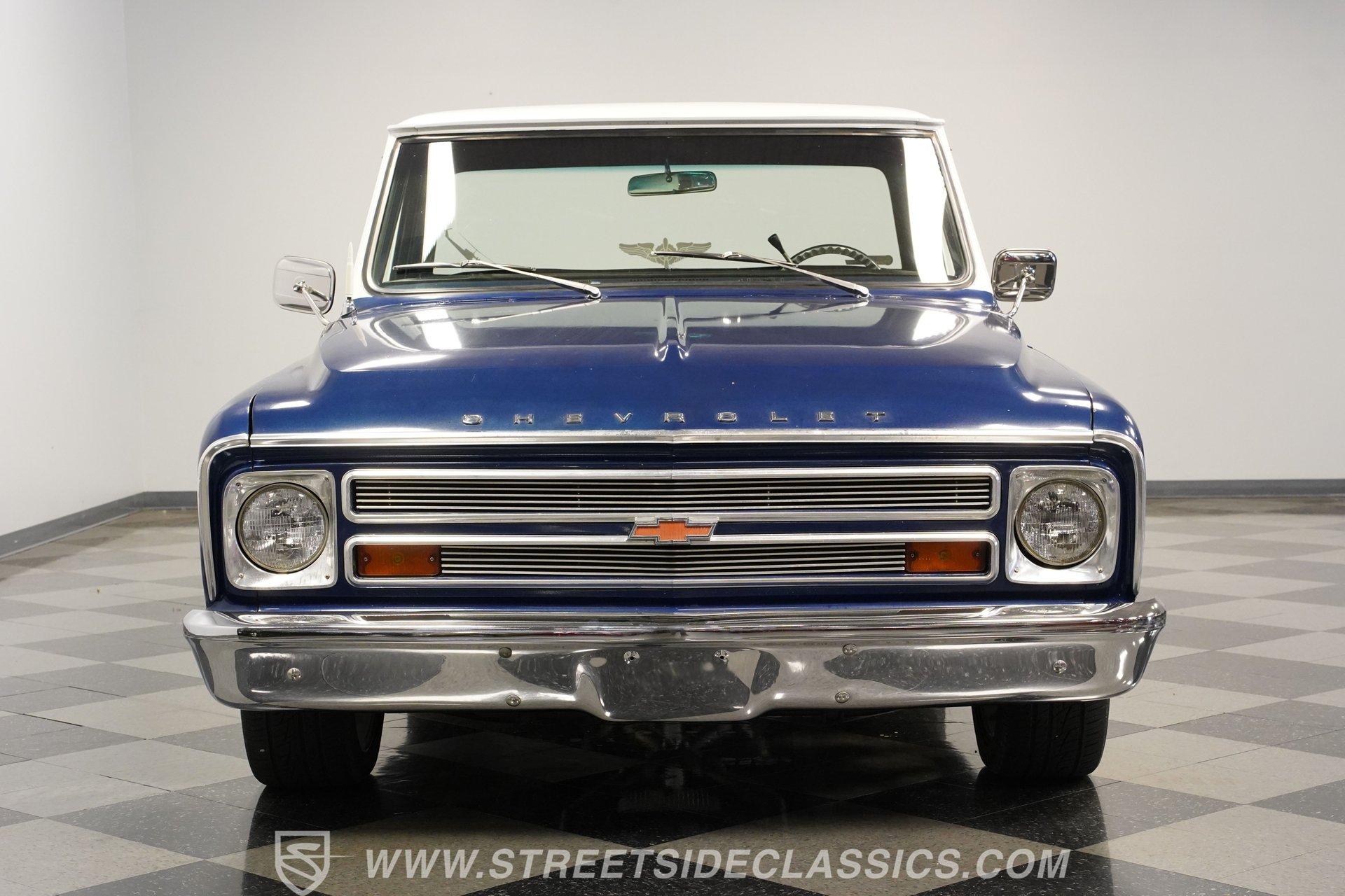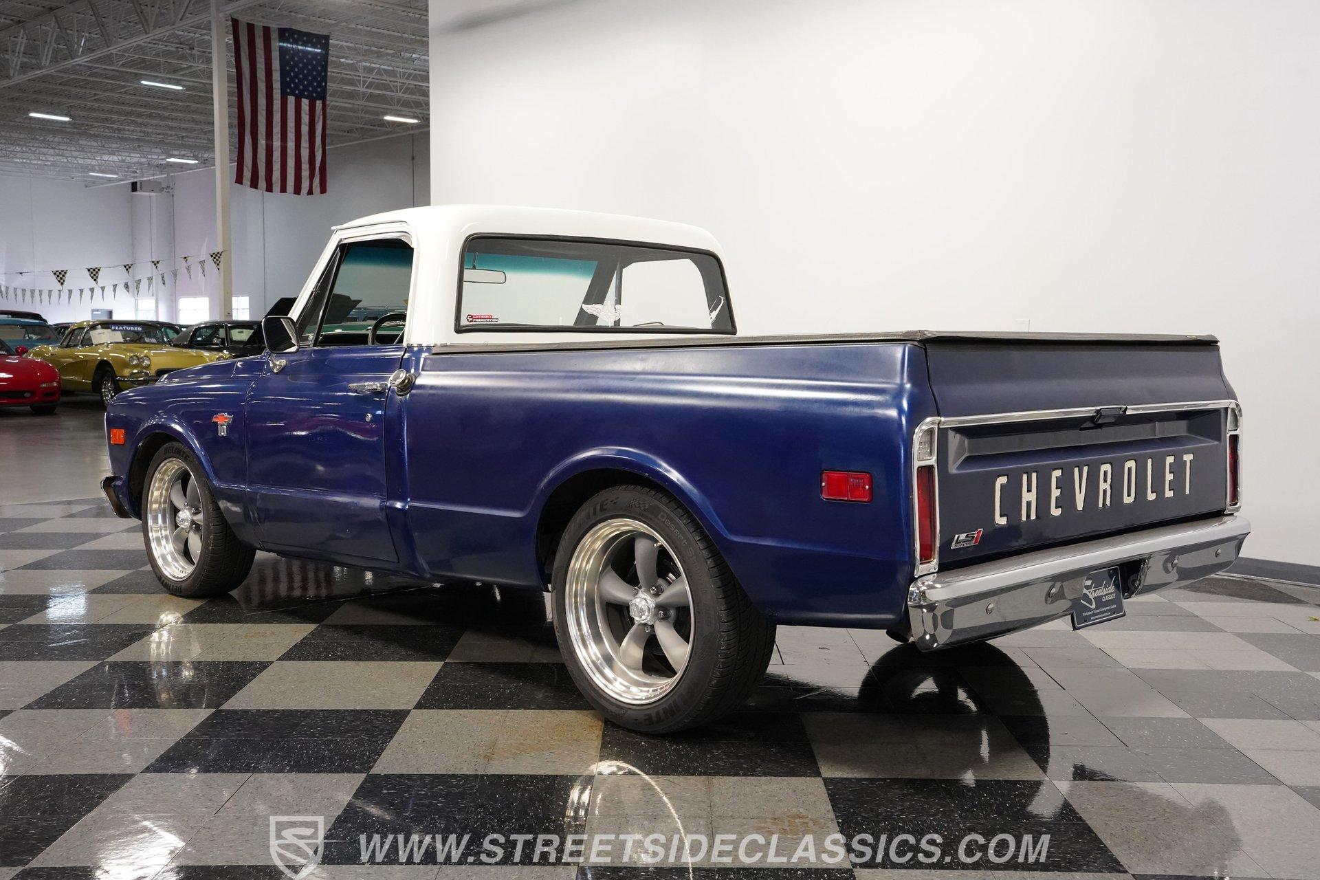 While most older trucks are put out to pasture after their tenure as ranch hands or construction laborers is over, a few occasionally get to experience a second life. Whether that be as a fully stock restoration or something more fun like this 1968 Chevrolet C10 LS1 Restomod, sometimes, just as in human life, retirement can be far more exciting. One look at its gorgeous blue-and-white motif and big 20-inch wheels mounted on low-profile rubber, and it's not hard to tell this truck is something special. Inside, we find a color-matched blue-and-black interior. An aftermarket center console separates the plush bench seating. A six-spoke power-assisted wheel sits just ahead of a Dakota Digital gauge cluster, while the upgraded Pioneer AM/FM/AUX head unit also offers Bluetooth connectivity and a bit more modern entertainment than its predecessor. The old-school HVAC levers remind you how far this truck has come over time, while the Vintage Air setup makes them operate more efficiently than ever before. Under the hood is where this truck turns from laid back to aggressive. A modern 5.7-liter LS1 V-8 sits comfortably in the clean and spacious engine bay. Professionally built by an HMS Race Team engineer and fabricator, this small block features a new BLK powder-coated billet front drive and serpentine belt, ceramic-coated shorty headers, and a new GM CPU. This LS1 does away with spent gases via a stainless-steel dual exhaust and Borla sweet-sounding mufflers. Power from that small block is then sent through a built 4L60E four-speed automatic transmission and a custom driveshaft before heading to the 3.08-geared 12-bolt rear end. HIGHLIGHTS: Professionally Rebuilt LS1V8 GM CPU Injectors and Plug Wires BLK Front Drive Serpentine Belt Ceramic Coated Shorty Headers Stainless Steel Exhaust Borla Mufflers Custom Overflow Tank LS Mounts and Crossmember Built 4L60E Four Speed Auto Custom Driveshaft 3.08 Geared Posi Rear Power Front Disc Brakes Power Steering Dakota Digital Gauges Vintage Air Pioneer AM/FM/AUX Head Unit Receipts This 1968 Chevrolet C10 LS1 Restomod rides on a set of 20-inch American Racing Torq Thrust wheels shod in Z-rated tires, while power brakes, featuring a pair of front discs, stand ready to scrub off speed whenever called upon. We may never know what this truck's first life was all about, but one thing is for sure: this resurrected version is definitely a lot more fun. The only thing it's missing is an owner to enjoy the ride. Call today!