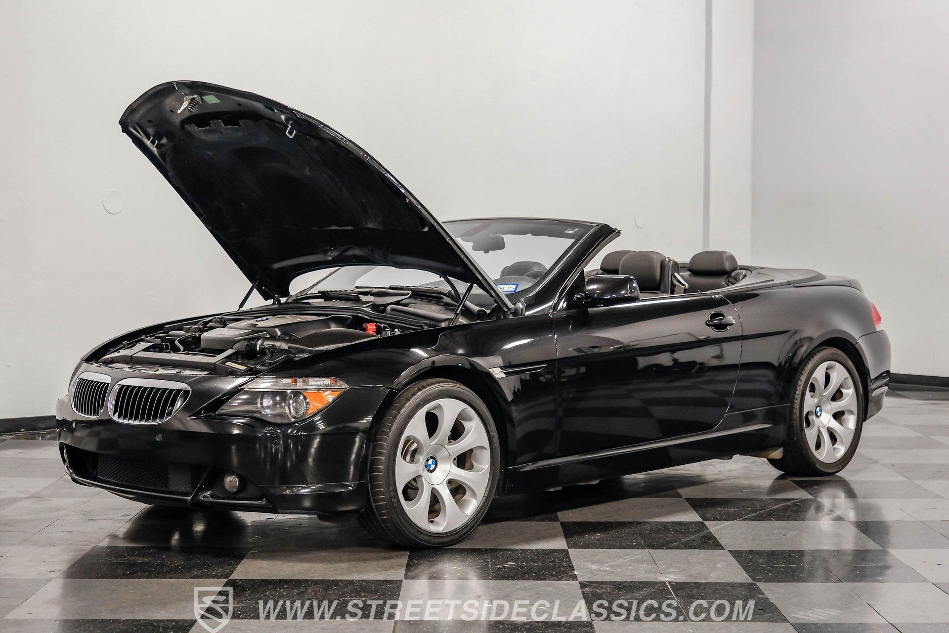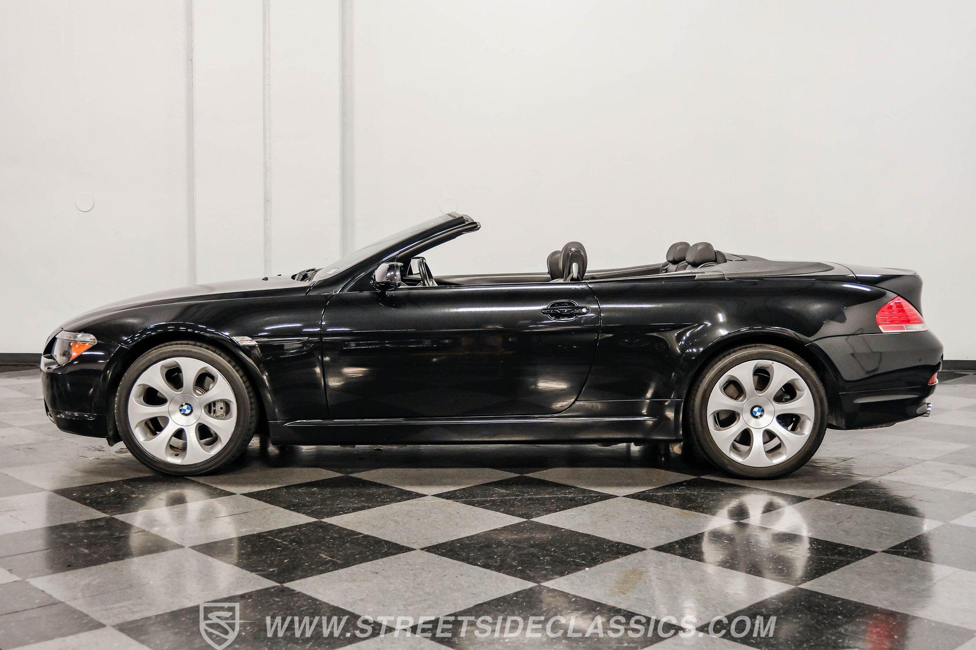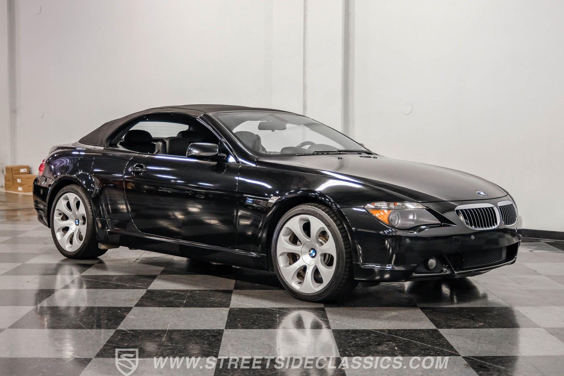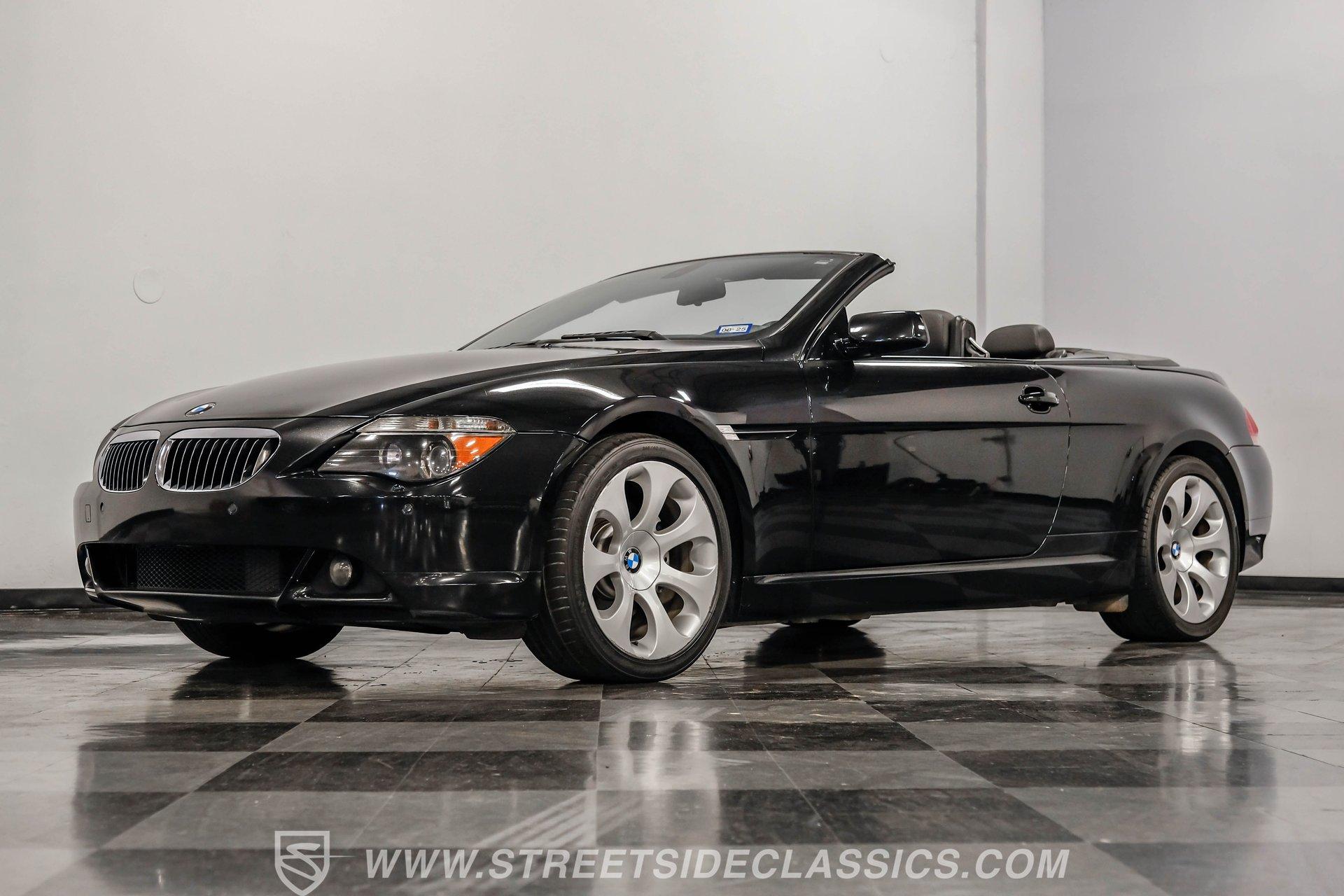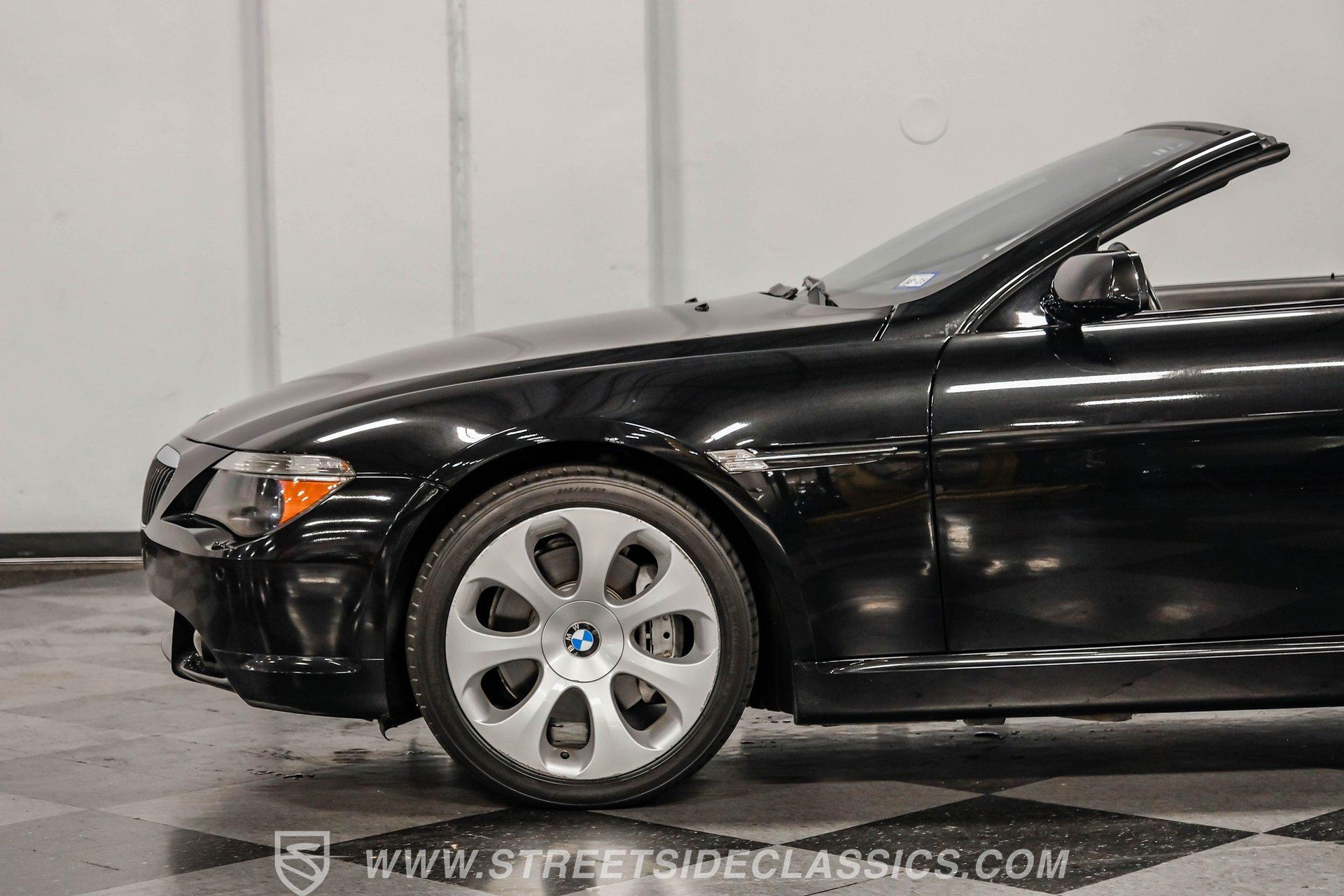 Sleek, sophisticated, and ready for the road, this 2006 BMW 650i Convertible shows off its Black Diamond metallic paint with understated elegance. German craftsmanship is evident in every curve and angle of this high-performance convertible. The black power-operated soft top gives you two cars in one – an open-air cruiser when down or a sleek coupe when up. Sitting on 19-inch alloy wheels, this BMW gives a planted, confident stance. The rubber meets the road with 245/40R19 Michelin tires up front and wider 275/35ZR19 Continental tires at the rear for optimal handling. Inside this BMW, black leather covers the supportive bucket seats that keep you planted during spirited driving. The driver-centric layout puts all controls at your fingertips, with the floor-mounted shifter and steering wheel paddle shifters offering multiple ways to control the transmission. The heads-up display projects speed and navigation information directly onto the windshield, keeping your eyes on the road. Dual-zone climate control maintains your ideal cabin temperature, while the power-adjustable heated seats offer personalized comfort for driver and passenger alike. Powering this 650i is a potent 4.8-liter V8 engine that generates strong acceleration and passing power. The 6-speed automatic transmission with SMG technology shifts smoothly in automatic mode or gives you direct control via the paddle shifters. This BMW's independent suspension system at all four corners absorbs bumps while keeping the car firmly planted in corners. When it's time to slow down, the four-wheel power disc brakes with anti-lock technology provide sure-footed stopping ability. The dual exhaust system produces a refined note that never overwhelms the luxury experience. HIGHLIGHTS: 4.8L V8 Engine 6-Speed Automatic Transmission with SMG Technology Independent Front and Rear Suspension Dual Exhaust System Black Diamond Metallic Paint Power Convertible Top 19" Alloy Wheels 245/40R19 Michelin Front, 275/35ZR19 Continental Rear Tires Black Leather Interior with Power Heated Bucket Seats Memory Seat Package Dual Zone Air Conditioning Paddle Shift AM/FM/XM Radio with CD Changer Heads-Up Display Navigation System Back-Up Camera Clean CarFax With just 81,456 miles on the odometer and a clean Carfax report, this 2006 BMW 650i Convertible combines V8 power, luxury appointments, and open-air enjoyment in one exceptional package. Call today!