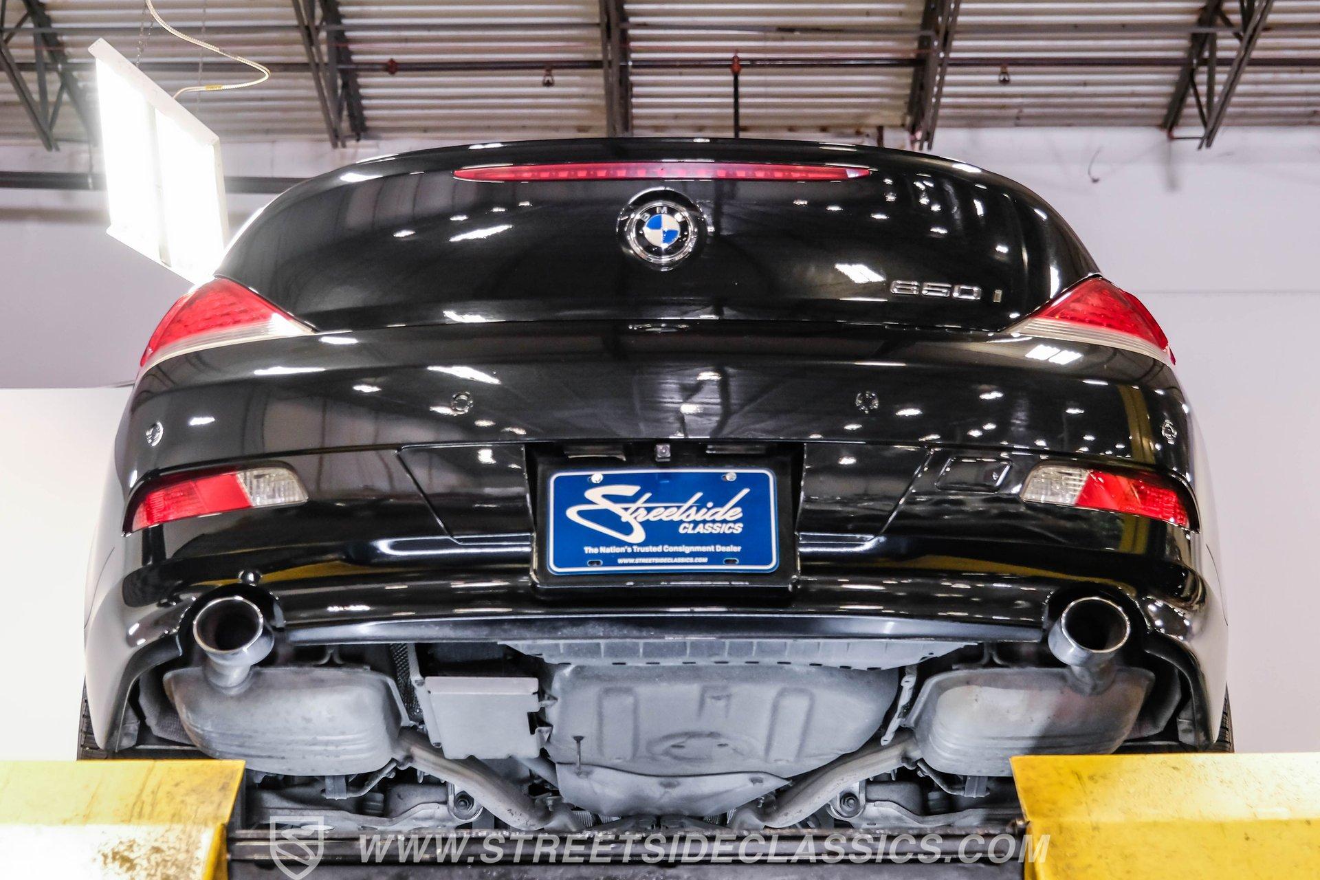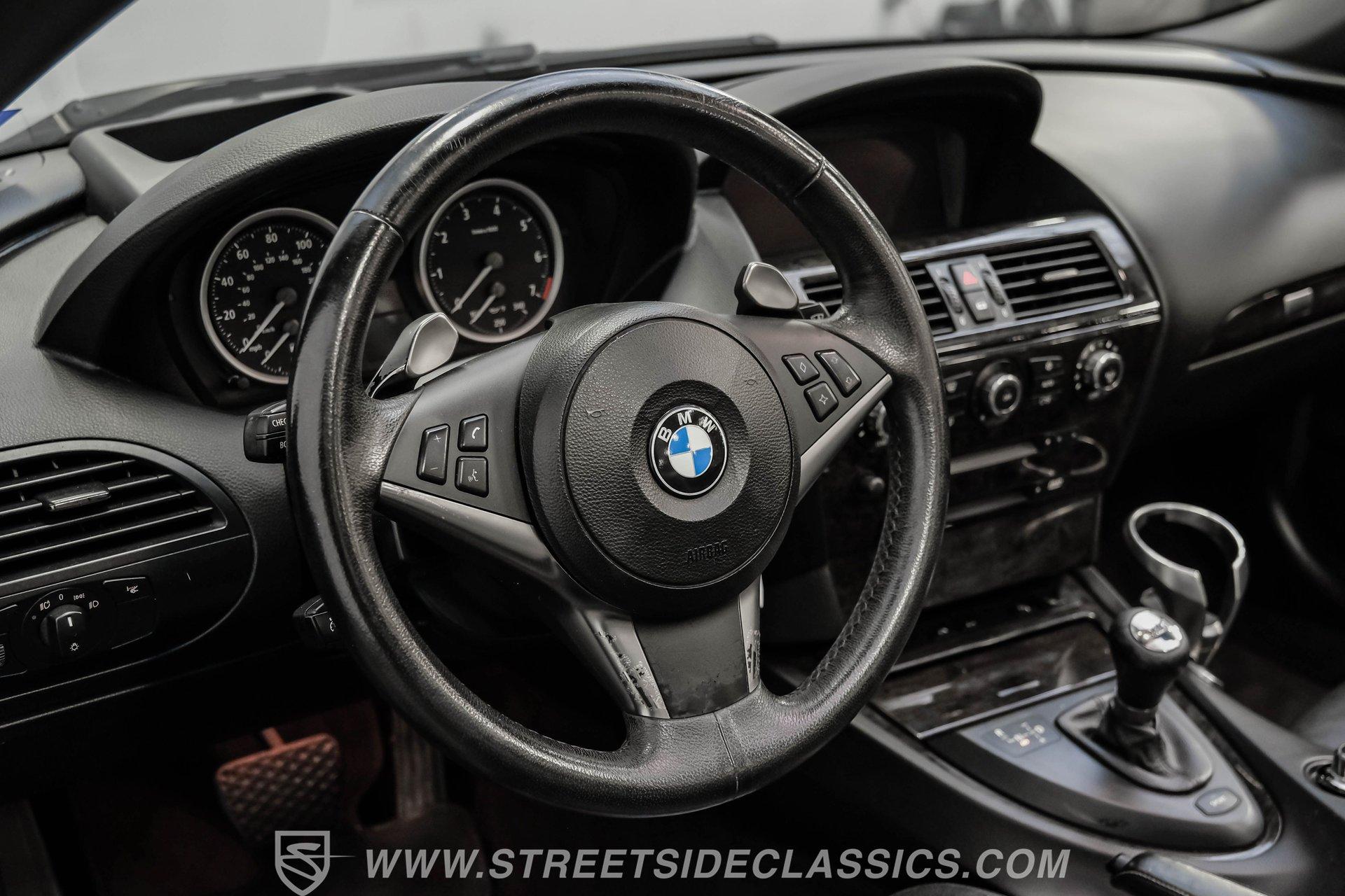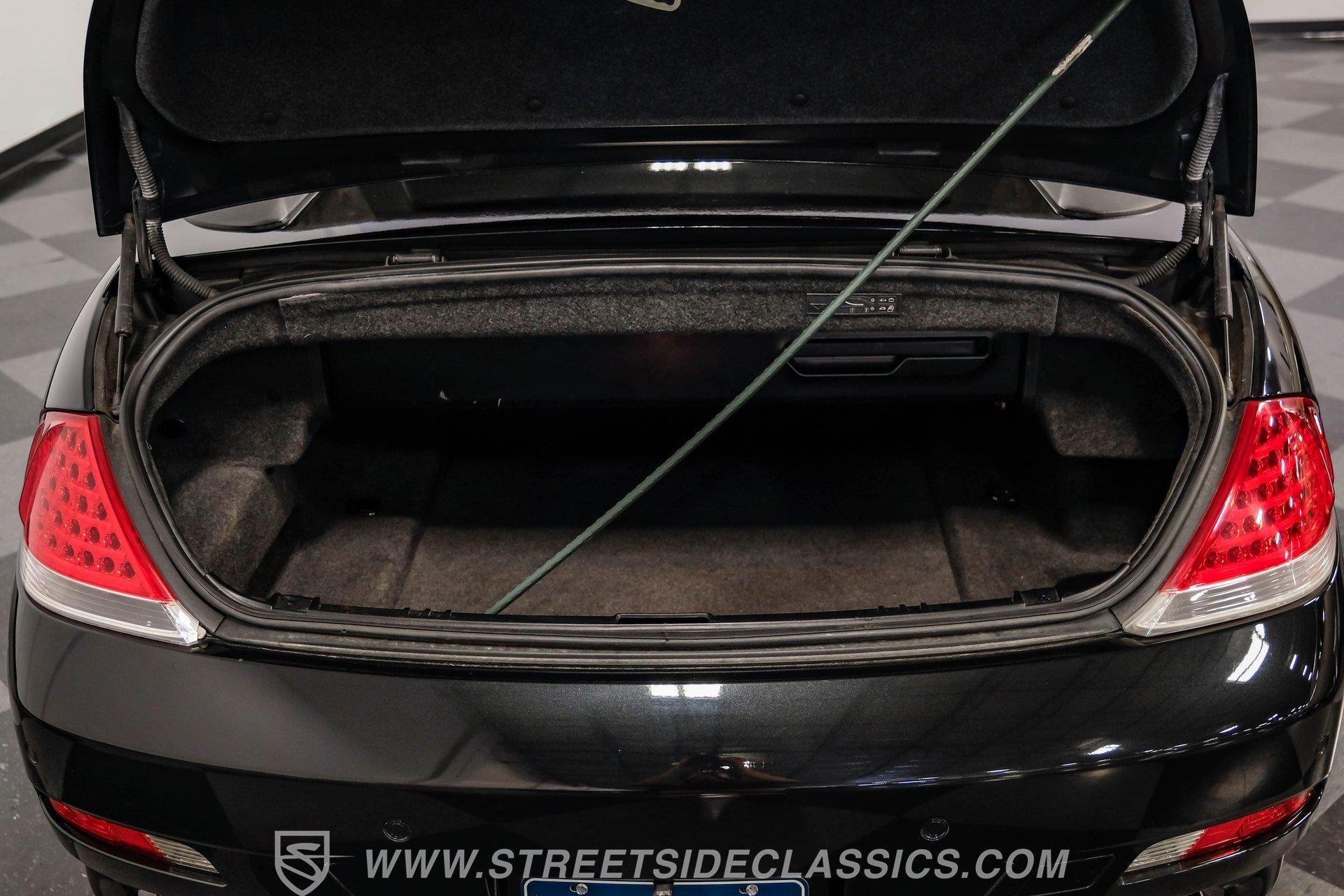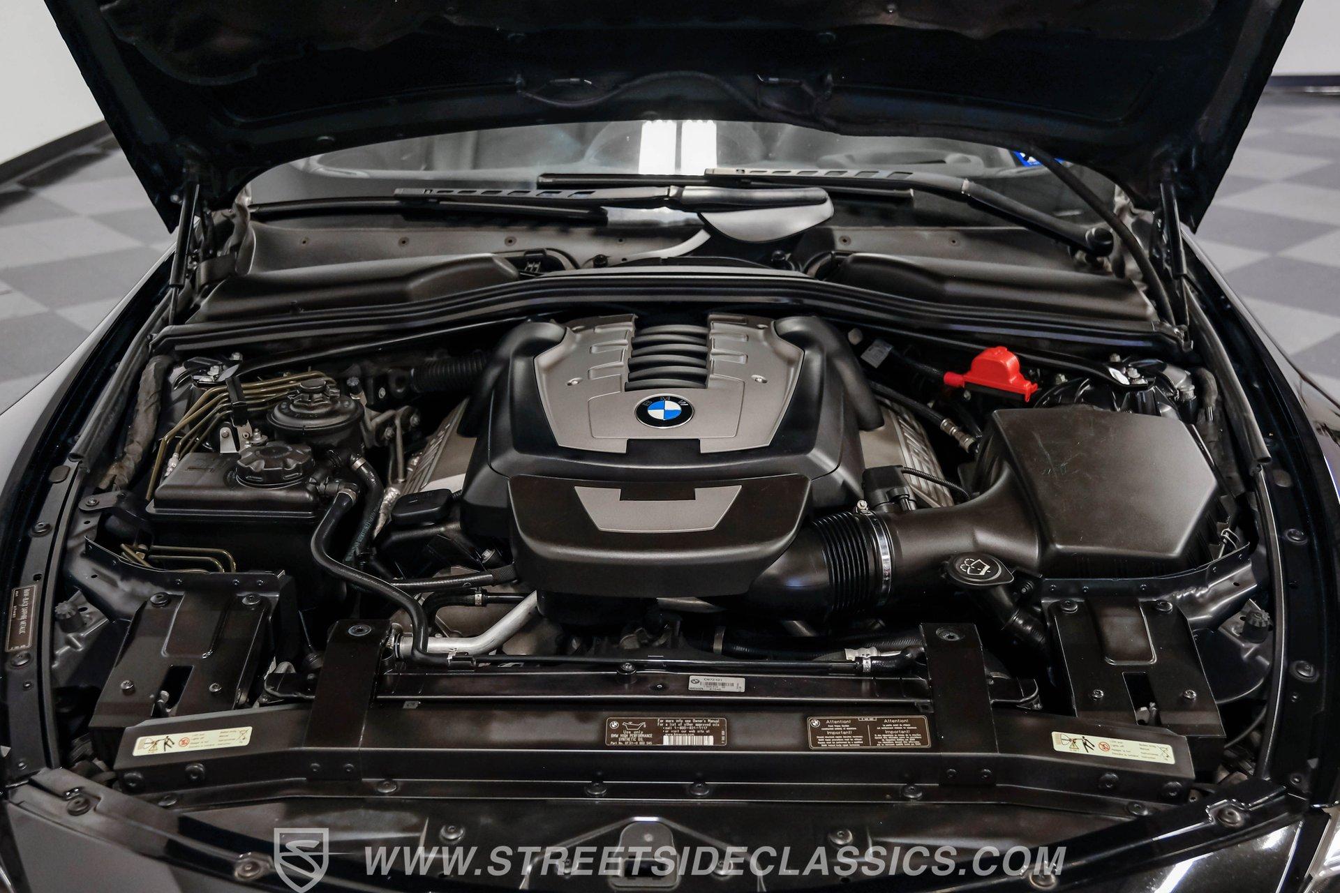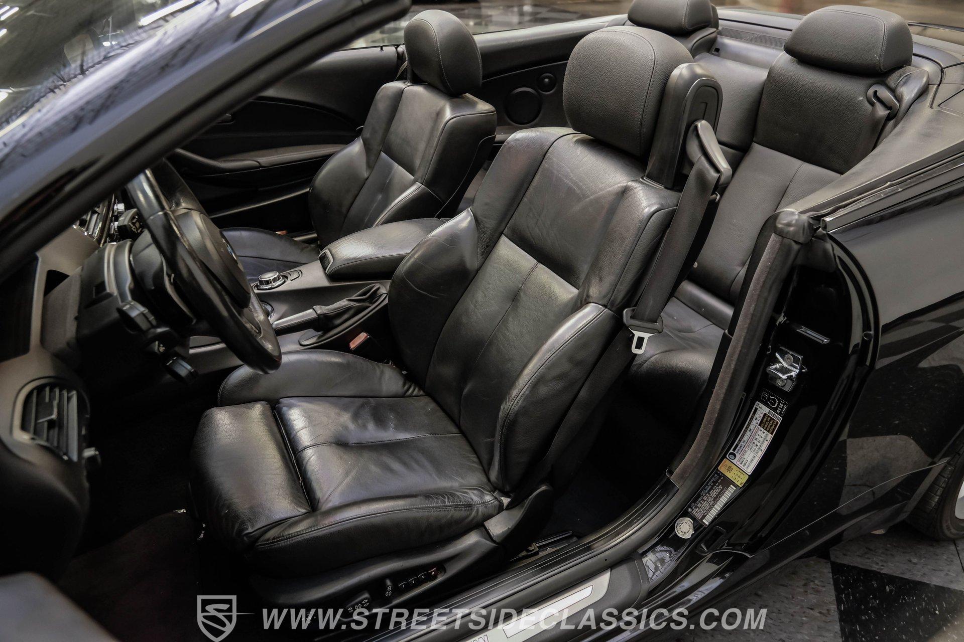 Sleek, sophisticated, and ready for the road, this 2006 BMW 650i Convertible shows off its Black Diamond metallic paint with understated elegance. German craftsmanship is evident in every curve and angle of this high-performance convertible. The black power-operated soft top gives you two cars in one – an open-air cruiser when down or a sleek coupe when up. Sitting on 19-inch alloy wheels, this BMW gives a planted, confident stance. The rubber meets the road with 245/40R19 Michelin tires up front and wider 275/35ZR19 Continental tires at the rear for optimal handling. Inside this BMW, black leather covers the supportive bucket seats that keep you planted during spirited driving. The driver-centric layout puts all controls at your fingertips, with the floor-mounted shifter and steering wheel paddle shifters offering multiple ways to control the transmission. The heads-up display projects speed and navigation information directly onto the windshield, keeping your eyes on the road. Dual-zone climate control maintains your ideal cabin temperature, while the power-adjustable heated seats offer personalized comfort for driver and passenger alike. Powering this 650i is a potent 4.8-liter V8 engine that generates strong acceleration and passing power. The 6-speed automatic transmission with SMG technology shifts smoothly in automatic mode or gives you direct control via the paddle shifters. This BMW's independent suspension system at all four corners absorbs bumps while keeping the car firmly planted in corners. When it's time to slow down, the four-wheel power disc brakes with anti-lock technology provide sure-footed stopping ability. The dual exhaust system produces a refined note that never overwhelms the luxury experience. HIGHLIGHTS: 4.8L V8 Engine 6-Speed Automatic Transmission with SMG Technology Independent Front and Rear Suspension Dual Exhaust System Black Diamond Metallic Paint Power Convertible Top 19" Alloy Wheels 245/40R19 Michelin Front, 275/35ZR19 Continental Rear Tires Black Leather Interior with Power Heated Bucket Seats Memory Seat Package Dual Zone Air Conditioning Paddle Shift AM/FM/XM Radio with CD Changer Heads-Up Display Navigation System Back-Up Camera Clean CarFax With just 81,456 miles on the odometer and a clean Carfax report, this 2006 BMW 650i Convertible combines V8 power, luxury appointments, and open-air enjoyment in one exceptional package. Call today!