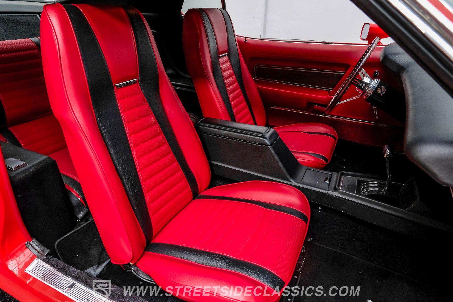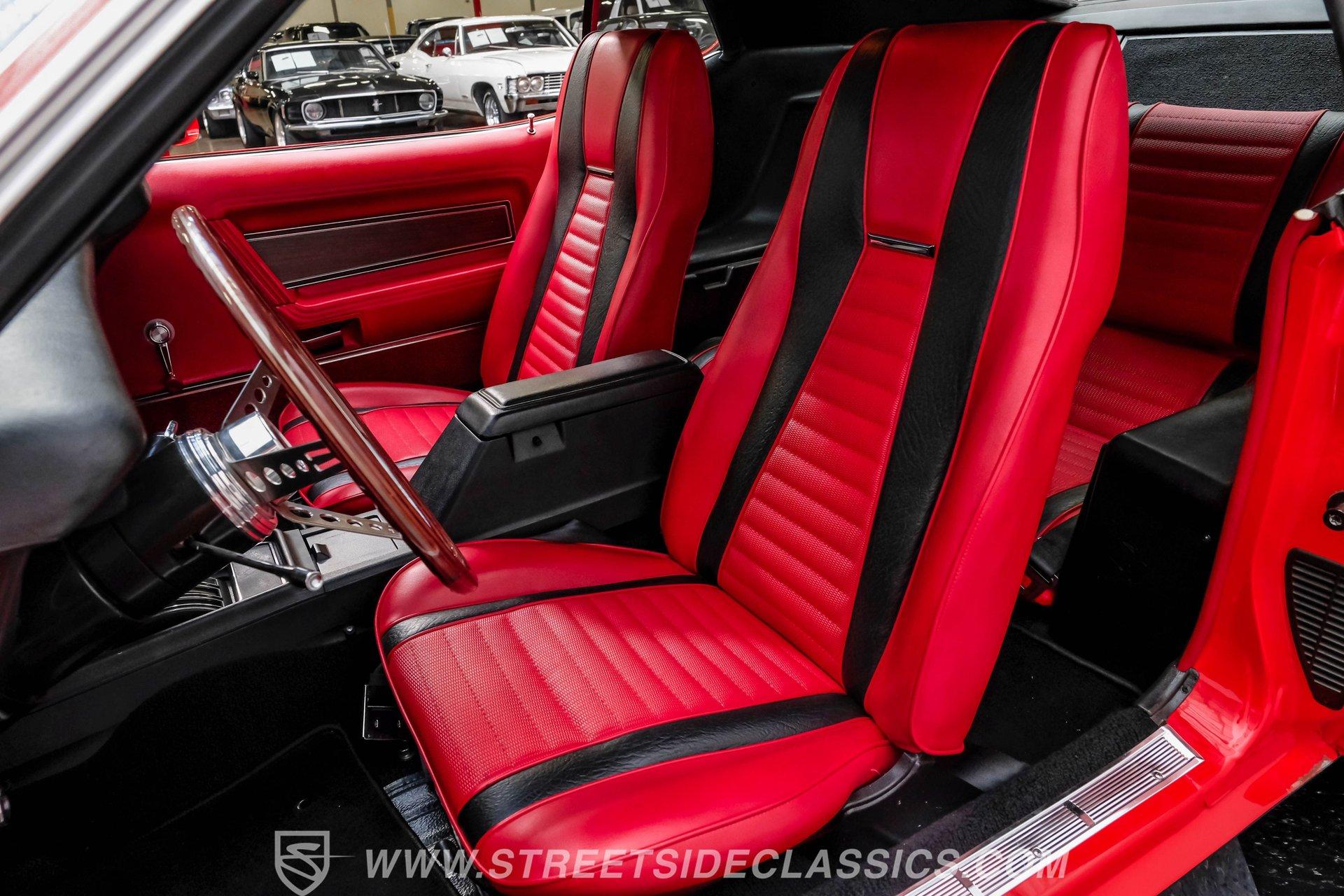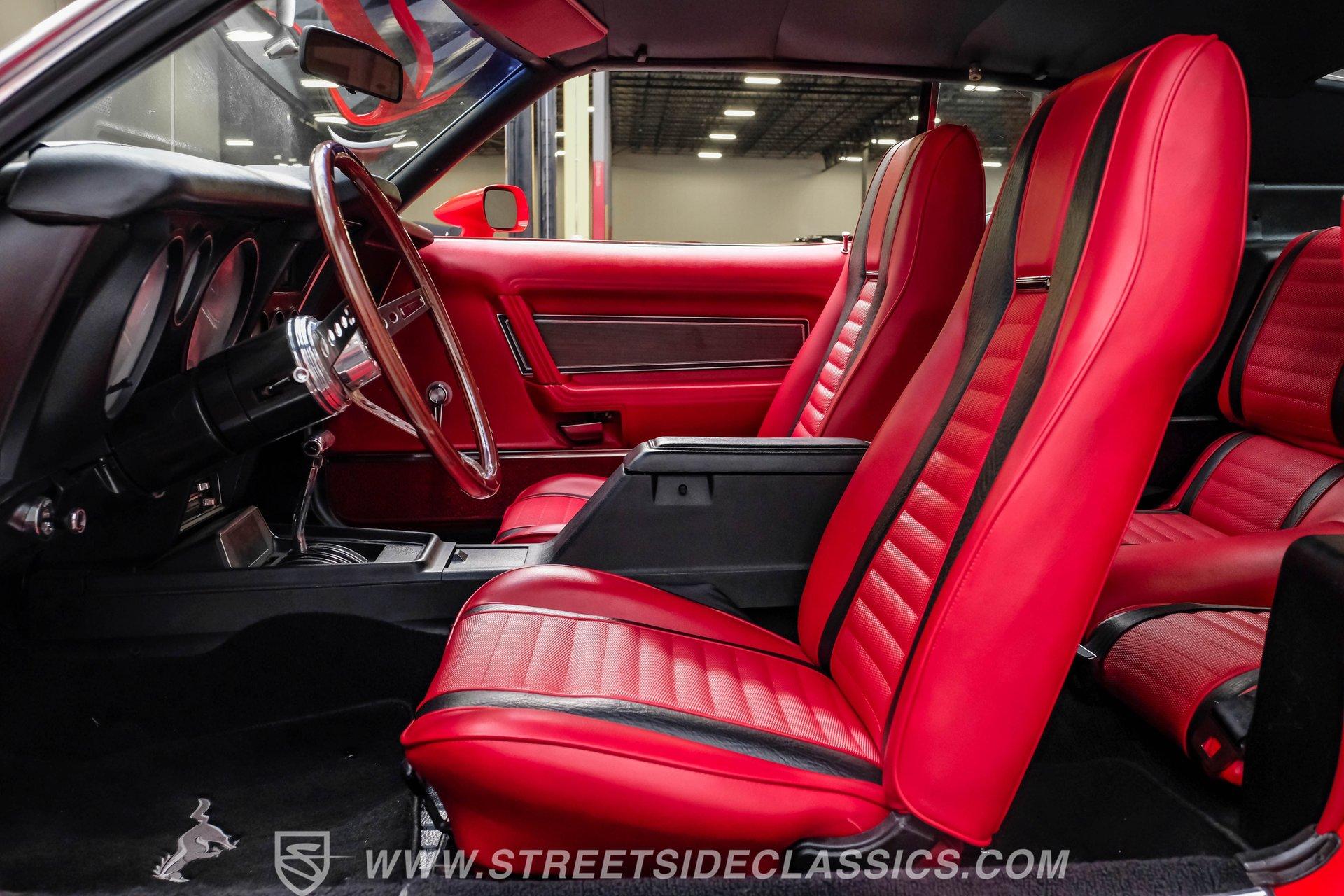 The 1971 Ford Mustang Mach 1 is an icon of American muscle-bold, powerful, and timeless. This fully restored classic features a Calypso Coral repaint, black stripes, front and rear spoilers, a functional ram air hood, and chrome accents. Built for enthusiasts who value heritage and performance, it's ready for its next chapter on the open road. Step inside and you are greeted by a factory-style interior that blends vintage charm with tasteful upgrades. Red and black vinyl bucket seats provide classic comfort and eye-catching appeal, while matching door panels and a wood grain steering wheel complete the authentic look. The center console houses the factory shifter, and the dash features original gauges, all complemented by a RetroSounds AM/FM/Aux/BT radio for modern connectivity. Under the hood sits a period-correct 351 Cleveland V8, enhanced with a mild performance cam and an Edelbrock 4-barrel carburetor for a robust driving experience. The engine bay is very detailed, and the engine starts up with ease, idling smoothly and offering impressive acceleration. Paired with a C6 3-speed automatic transmission and Ford 8" rear axle, this Mach 1 delivers both reliability and excitement. Power disc brakes in the front and power steering ensure confident handling and control. HIGHLIGHTS: Restored Approx. 3 yrs Ago, Same Family Owners Last 46 Years 351 Cleveland V8 With Mild Cam Edelbrock 4-Barrel Carburetor C6 3-Speed Automatic Transmission Ford 8-Inch Rear Axle Power Disc Front Brakes Power Steering American Racing 17-Inch Wheels Professional Repaint in Calypso Coral Factory Style Red and Black Vinyl Interior RetroSounds AM/FM/Aux/BT Radio Aftermarket Air Conditioning (Needs servicing) Functional Ram Air Hood Financing Available Vehicle Protection Plans Available Worldwide Shipping This 1971 Ford Mustang Mach 1 stands as a testament to expert restoration and classic American muscle. With its striking presentation, period-correct upgrades, and show-quality finish, it is ready to create new memories with its next owner. Call, email, or come visit our showroom today!