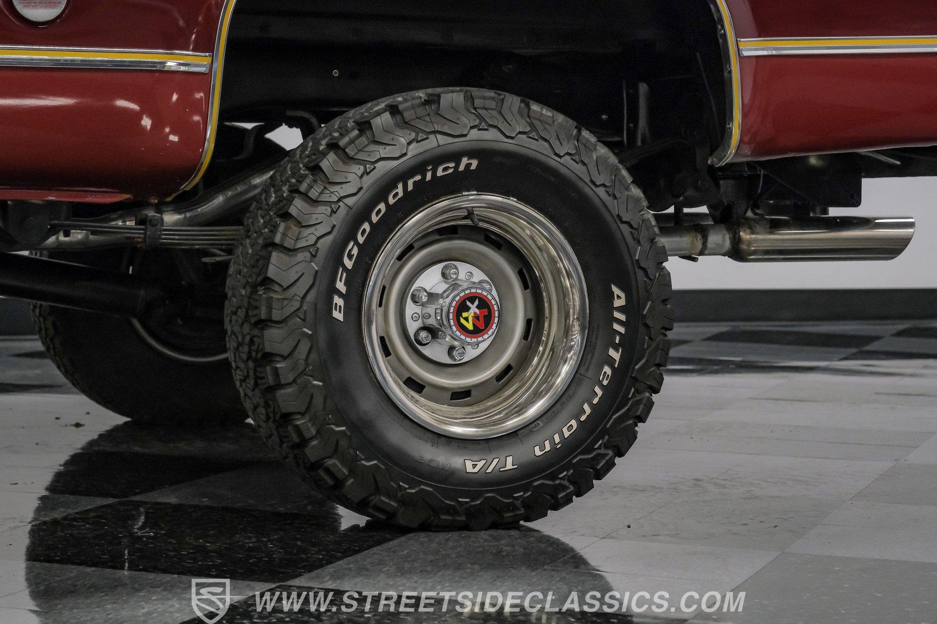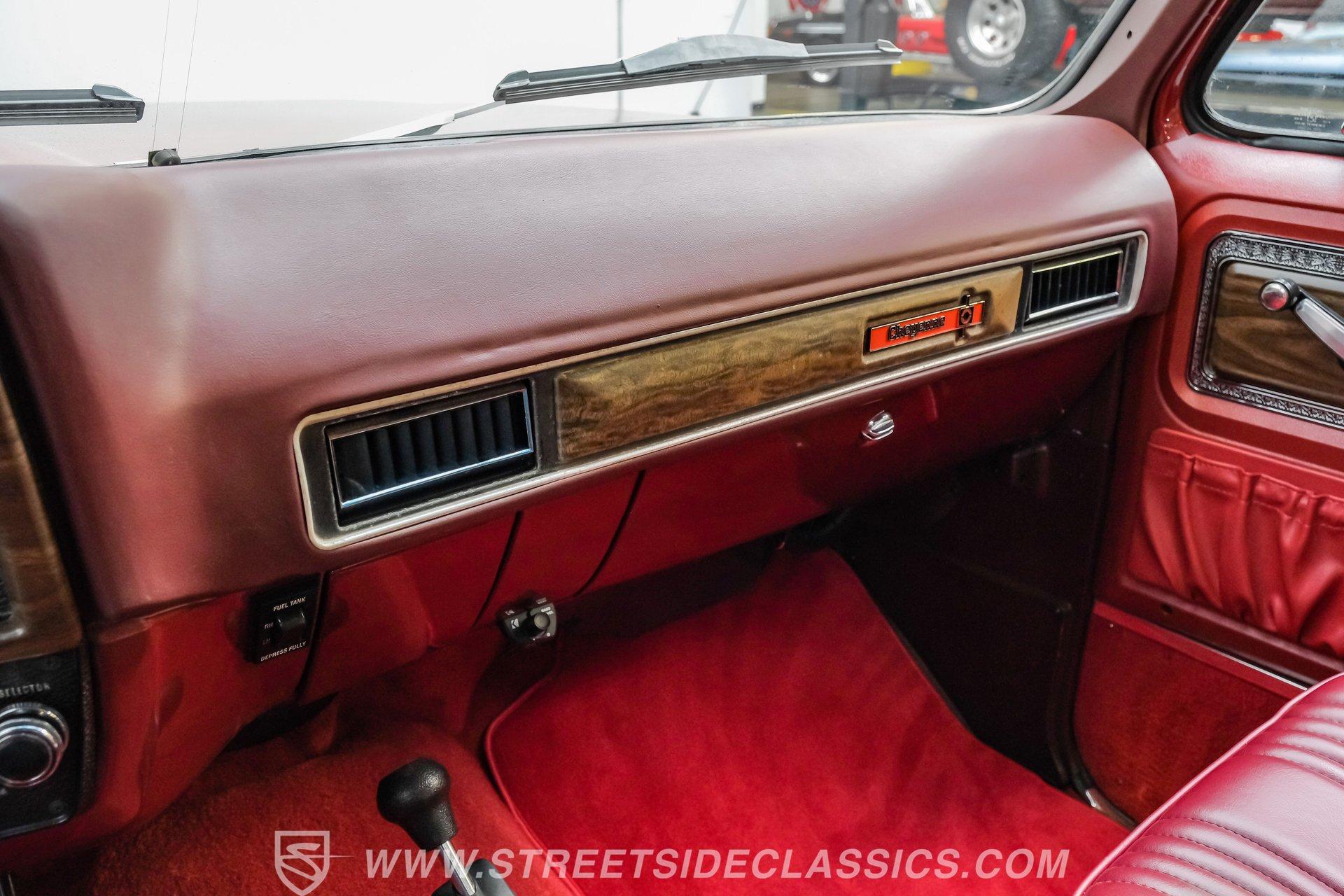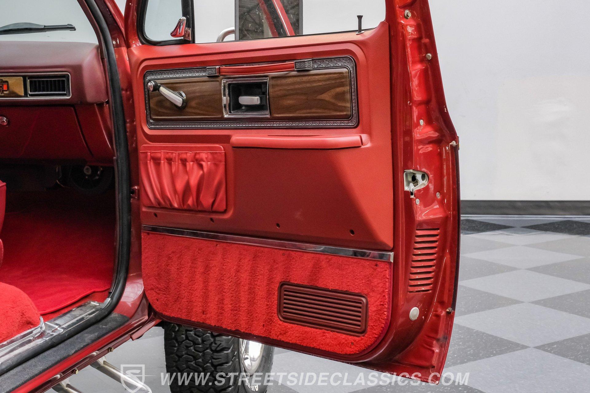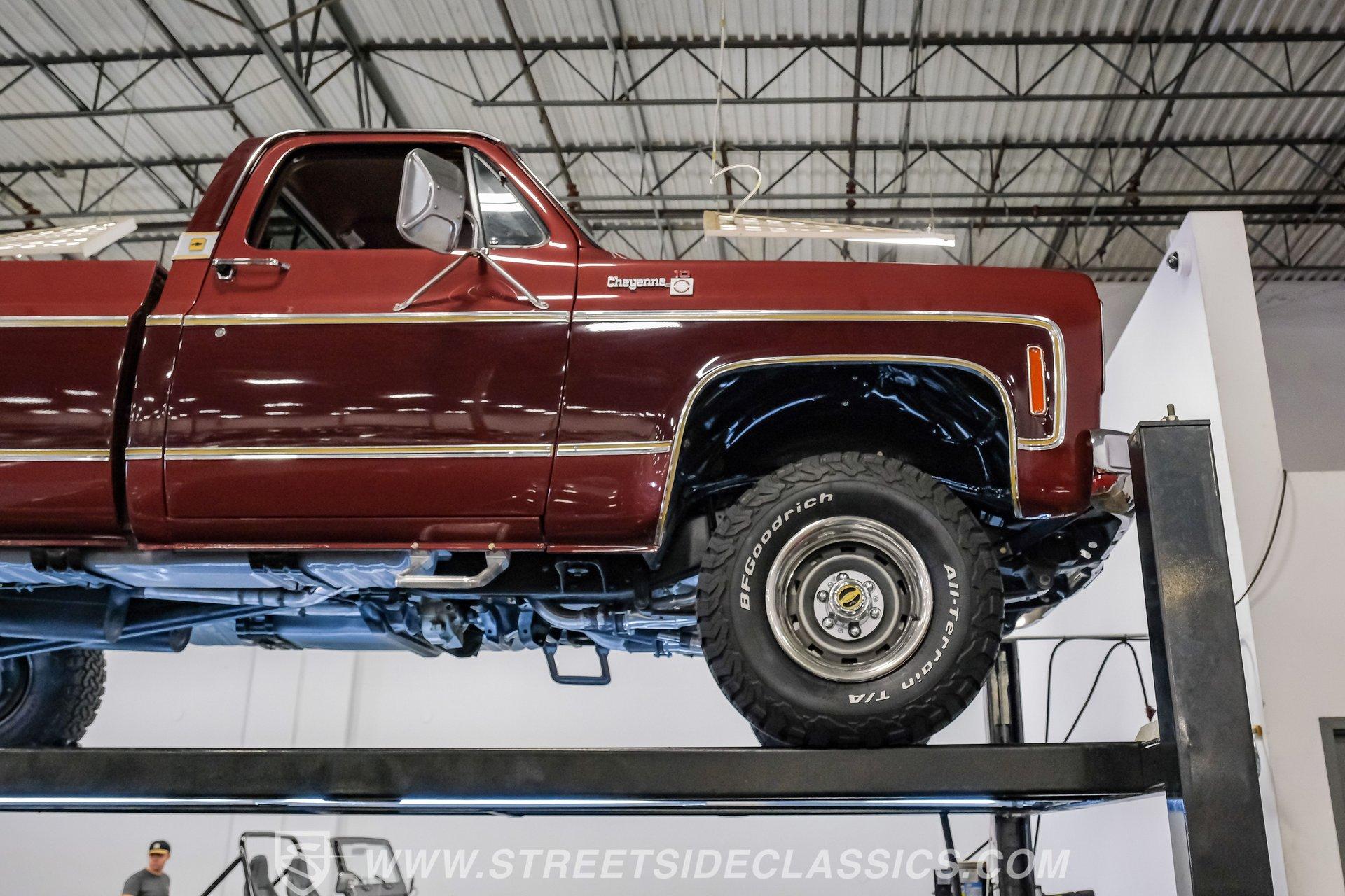 A classic truck brings back simpler times and the promise of adventure. The 1977 Chevrolet K10 Cheyenne 4x4 is more than transportation-it's a rugged American icon. With a full two-tone Red and Burgundy repaint, chrome bumpers, factory grille, Rhino-lined bed, and receiver hitch, this restored legend is ready for the road. Step inside and discover a thoughtfully restored red interior that blends vintage charm with modern comfort. Newly upholstered bucket seats and a center console provide support and style, while the factory red dash features classic wood applique and updated Classic Instruments gauges. Enjoy tunes from a retro-style AM/FM/Aux/BT radio and stay comfortable with Vintage Air A/C. Red carpets, door panels, and headliner complete the inviting, factory-inspired cabin, and a Kicker subwoofer system adds a modern touch for your favorite soundtrack. Under the hood, this K10 is powered by a Blueprint Engines 350 V8 crate engine, equipped with aluminum heads, an Edelbrock 4-barrel carburetor, and Edelbrock intake for reliable performance. The 700R4 4-speed automatic transmission with column shifter ensures smooth, confident shifts, while dual electric fans and a Griffin radiator keep things cool even on demanding drives. Hedman headers and a well-organized engine bay reflect careful attention to detail, and the drivetrain upgrades deliver strong acceleration and a responsive driving experience. HIGHLIGHTS: Blueprint Engines 350 V8 Crate Engine Edelbrock 4-Barrel Carburetor and Intake 700R4 4-Speed Automatic Transmission 1,231 Miles Since Built Full Two-Tone Red and Burgundy Repaint Chrome Bumpers, Factory Grille, Receiver Hitch Rhino-Liner Painted Bed Factory-Style Lifted Suspension 15" Wheels with BFG 31x10.50R15 Tires Power Front Disc Brakes, Power Steering Vintage Air A/C, Blows Cold Newly Upholstered Red Vinyl Bucket Seats Classic Instruments Gauges, Retro Radio with Bluetooth Financing Available Vehicle Protection Plans Available Worldwide Shipping This 1977 Chevrolet K10 Cheyenne 4x4 is a standout example of classic American trucks, blending vintage style with modern upgrades and reliable performance. If you're seeking a restored square-body that's ready for both daily drives and weekend adventures, this is the truck for you. Call, email, or come visit our showroom today!